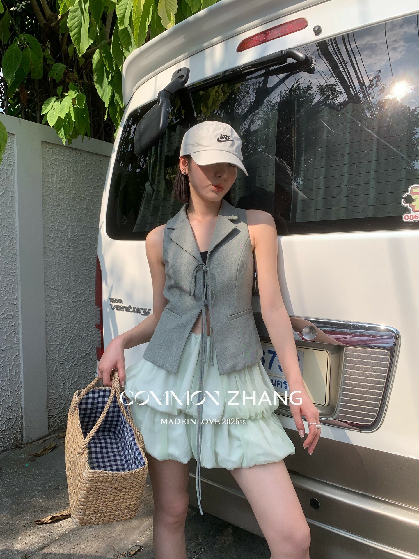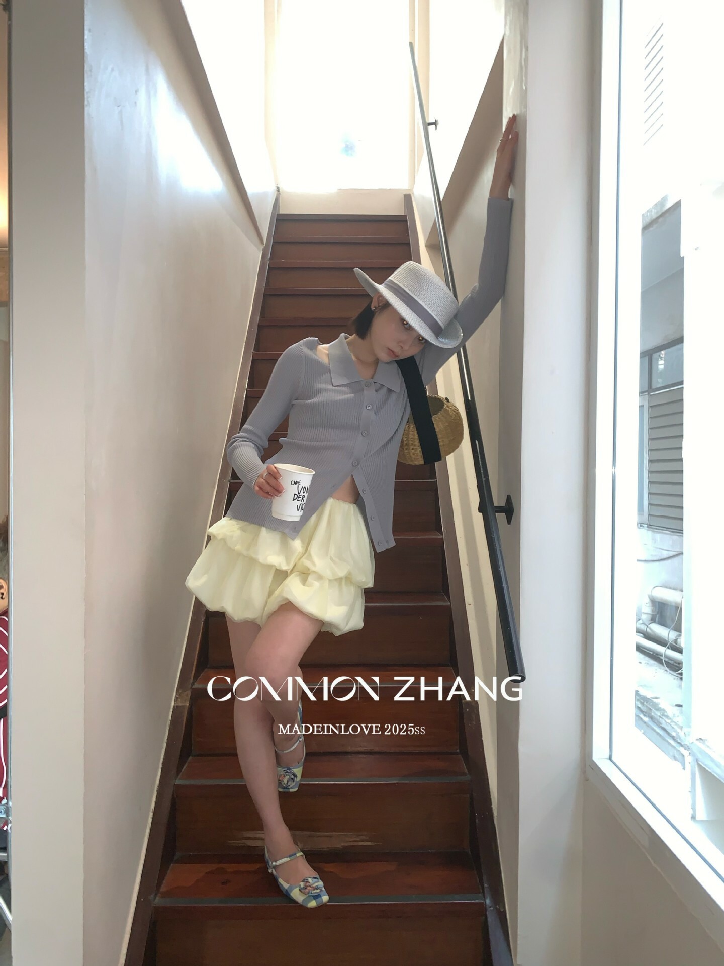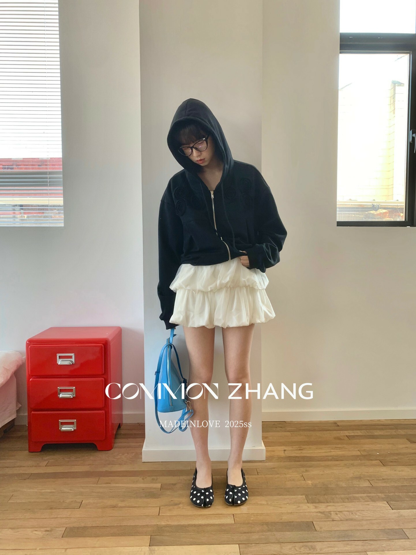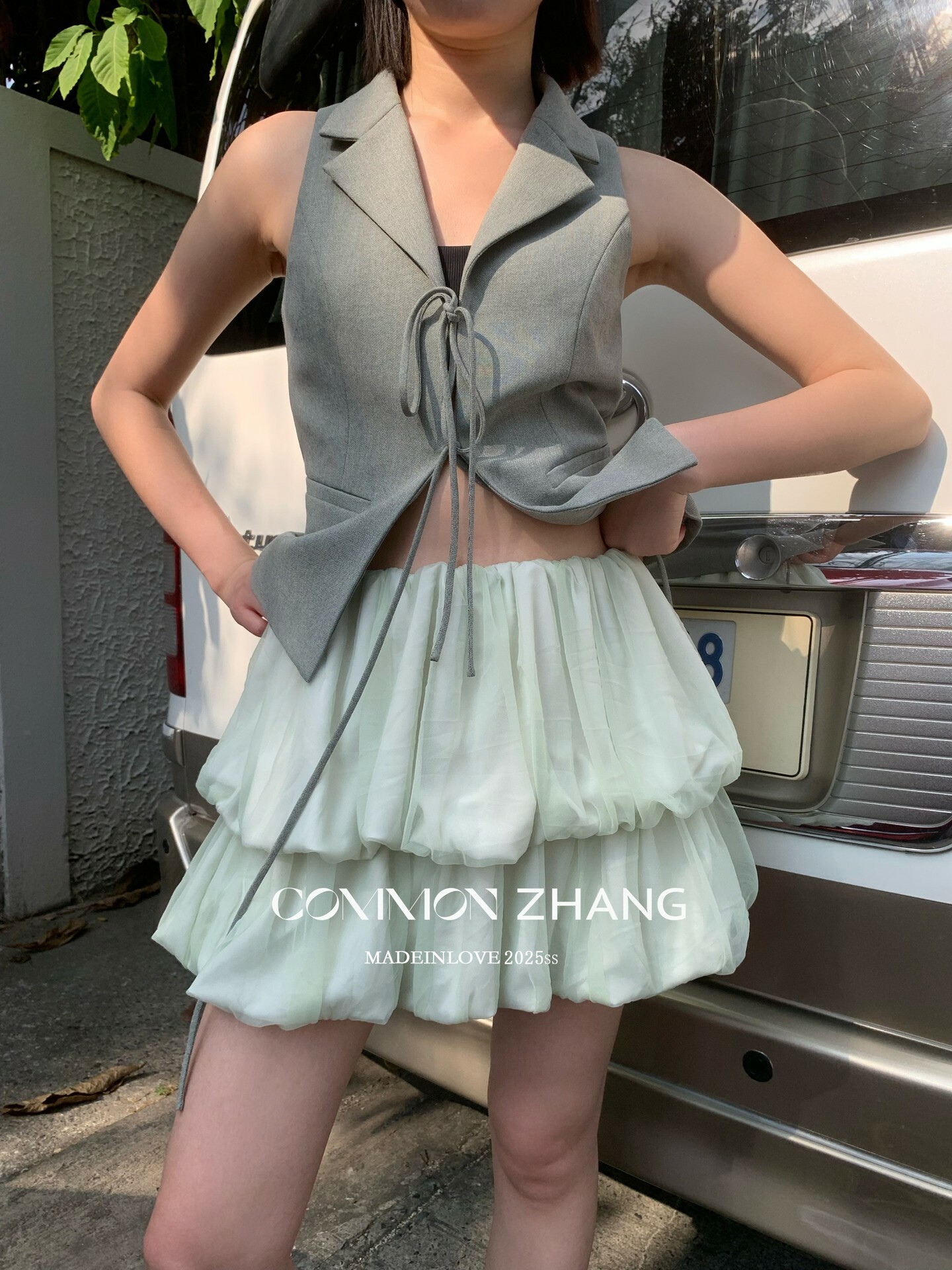 *o-ha-you*【FCZ102387】歐根紗層次垂感壓褶甜美少女純色高腰百搭蛋糕短裙-4色-如有需要請先諮詢