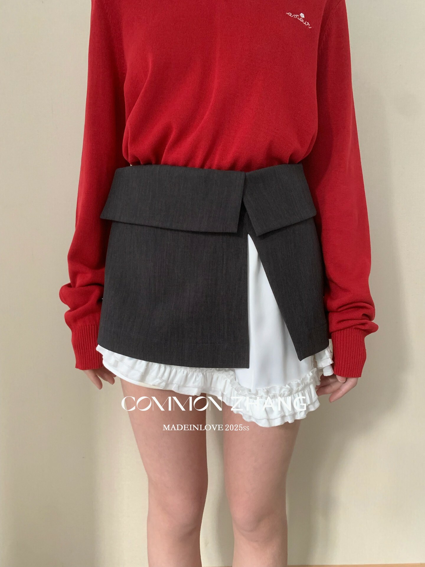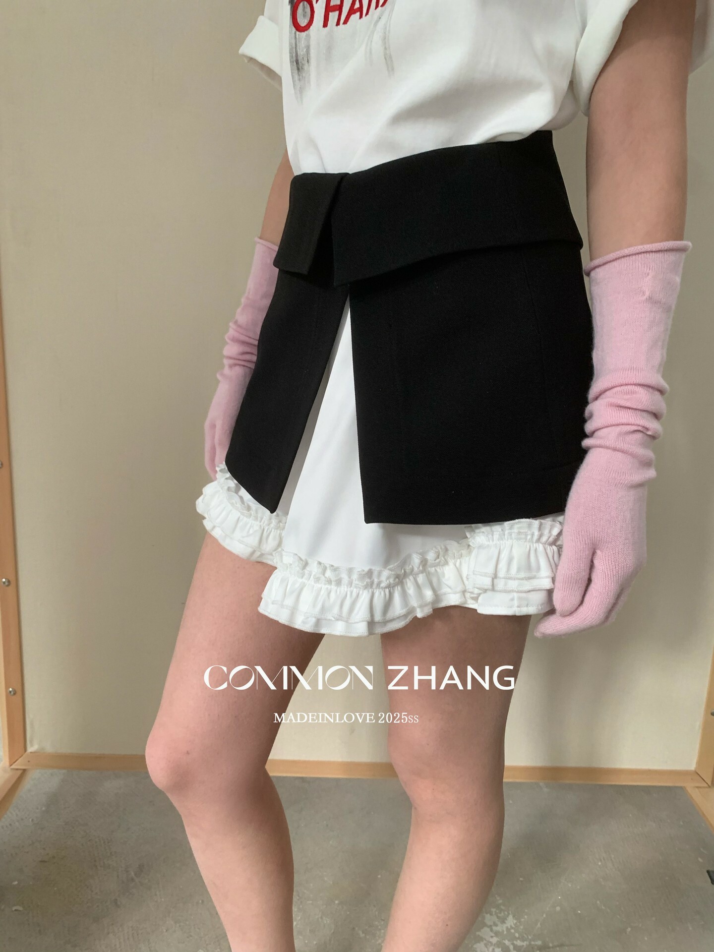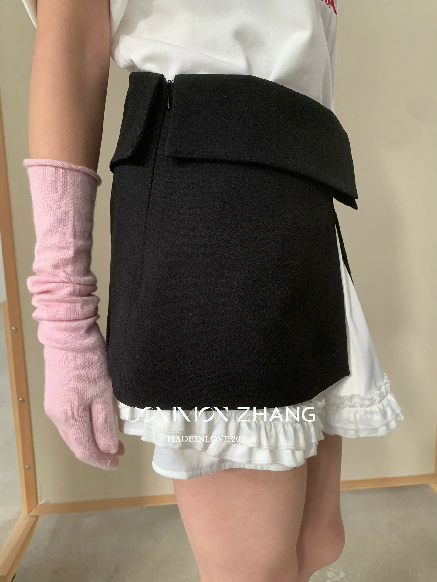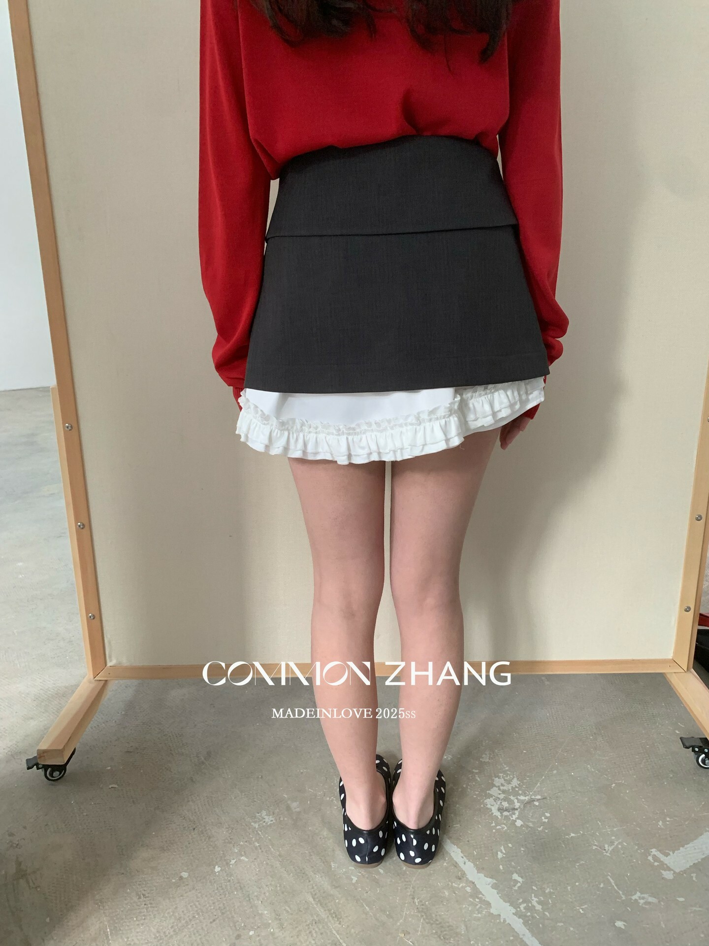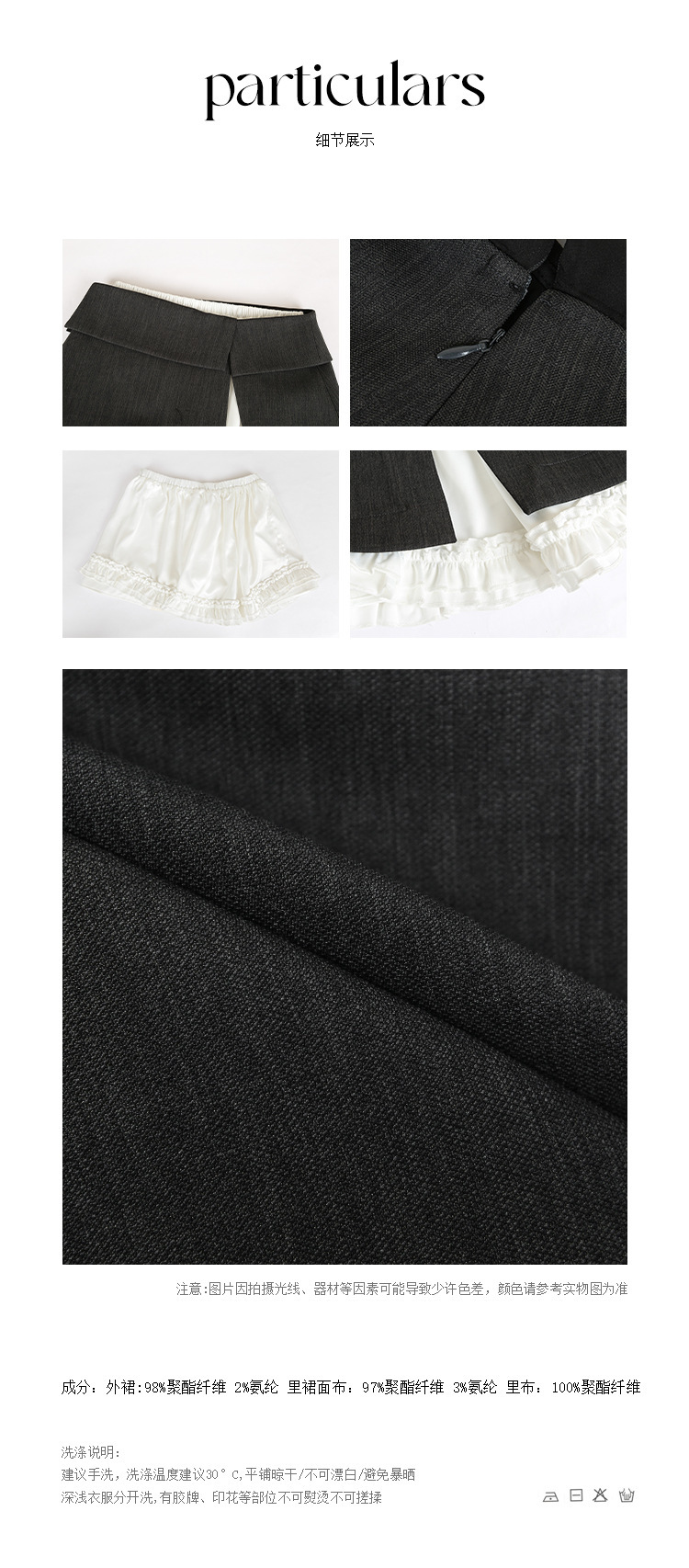 *o-ha-you*【FCZ102438】春季韓風設計感開叉花邊拼接內搭高腰A字兩件套短裙-2色-如有需要請先諮詢