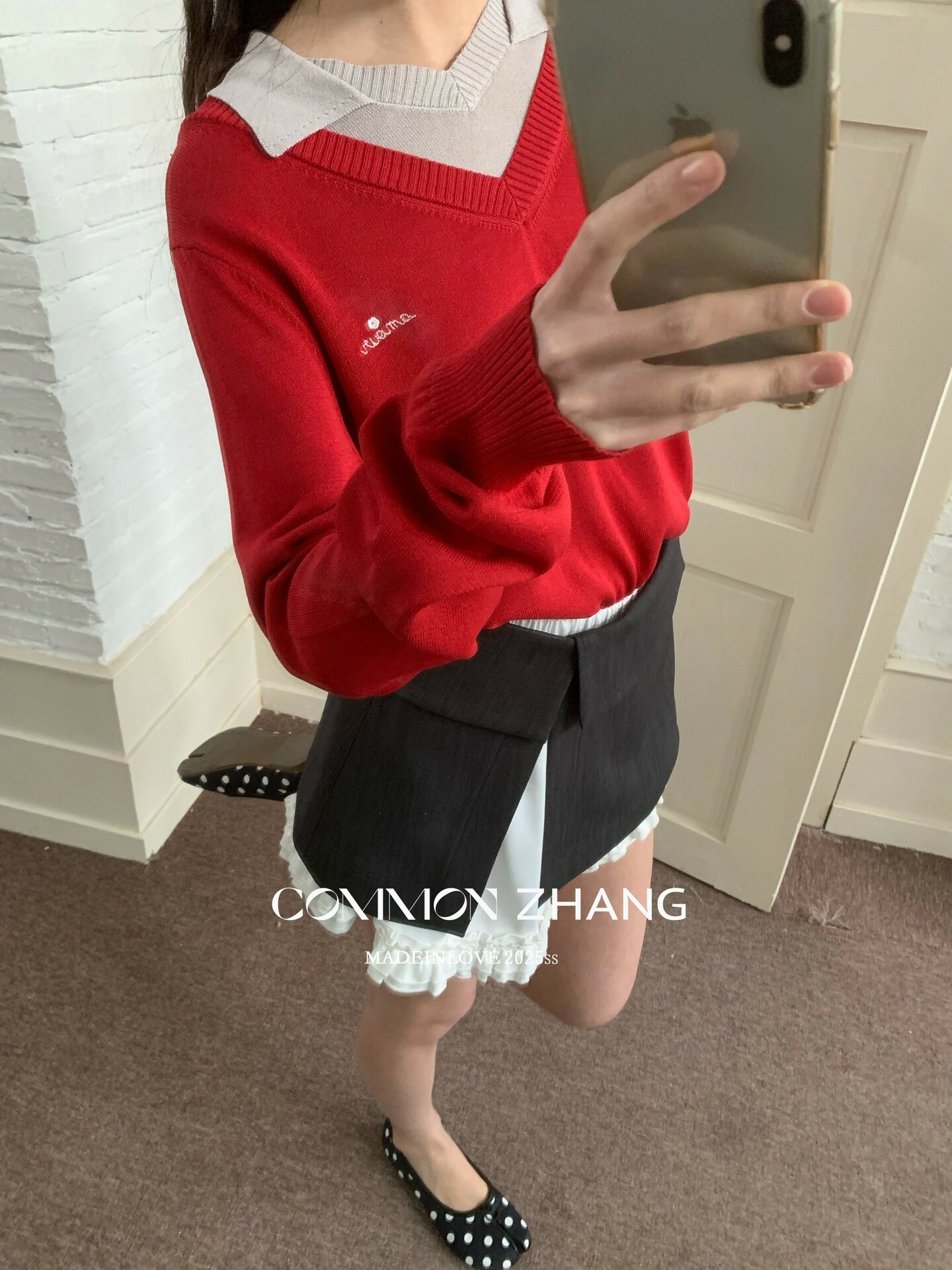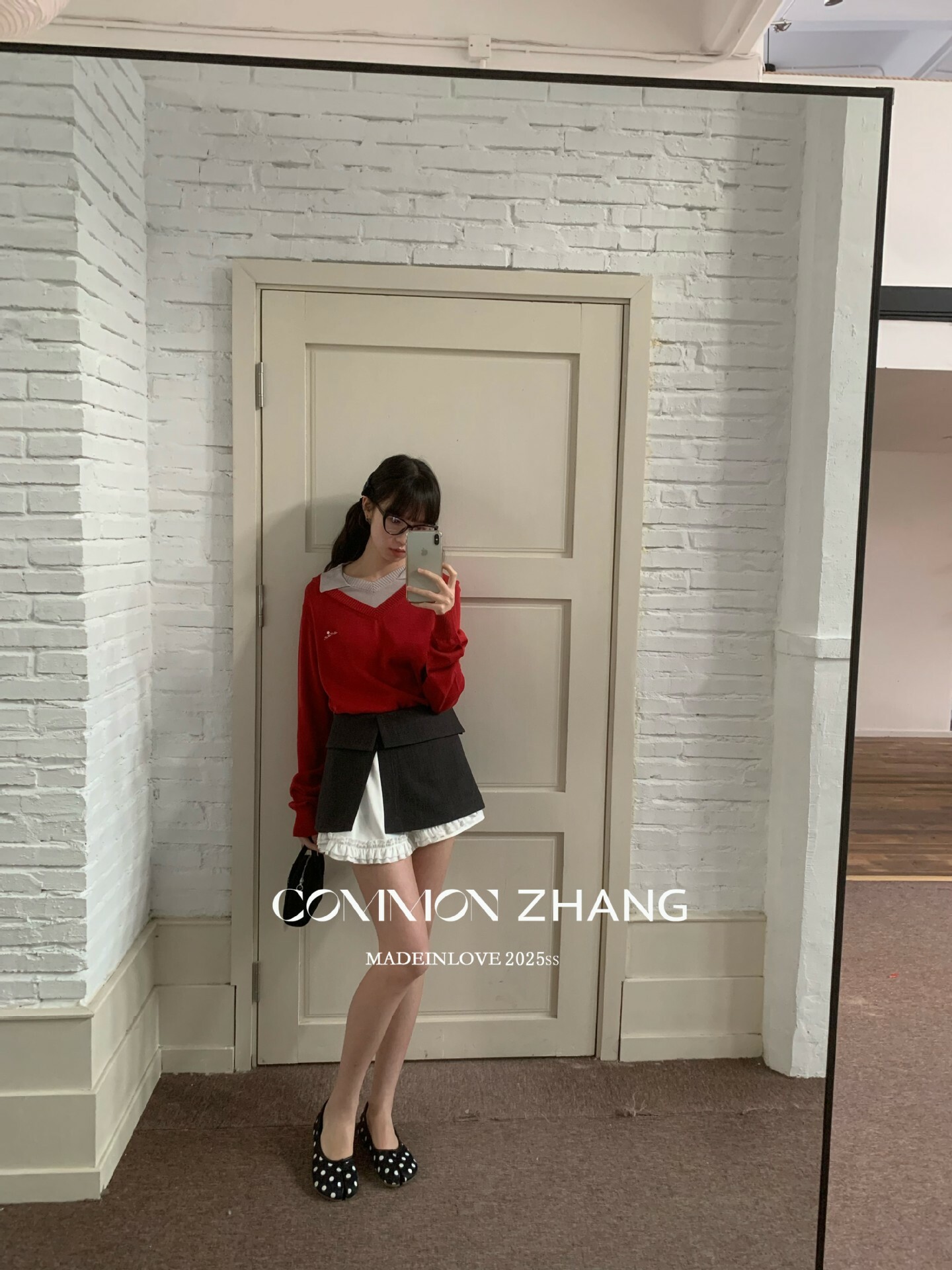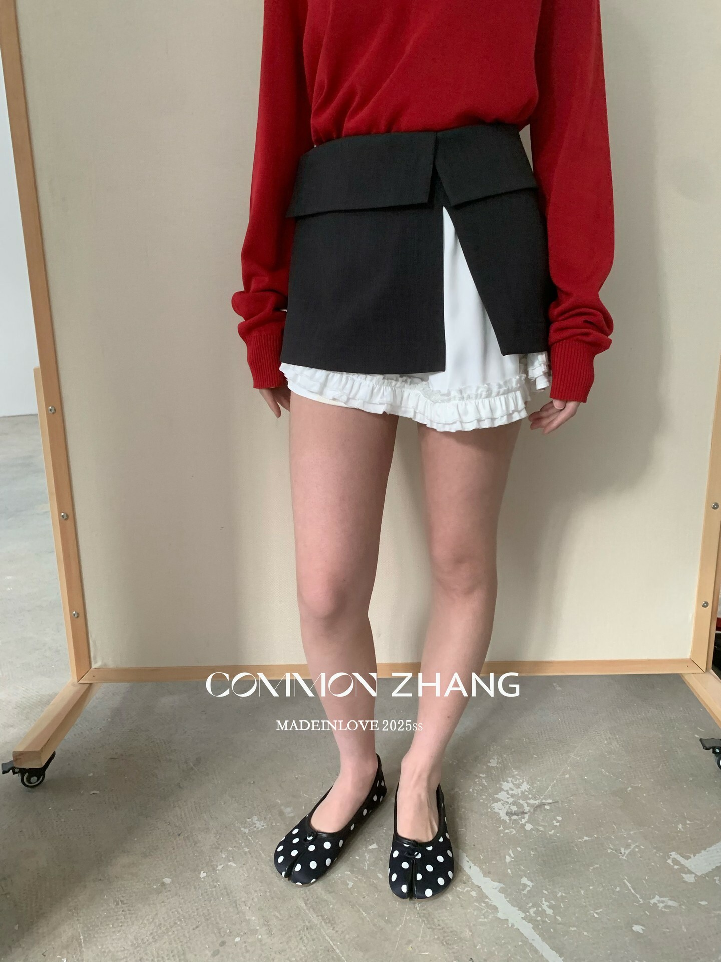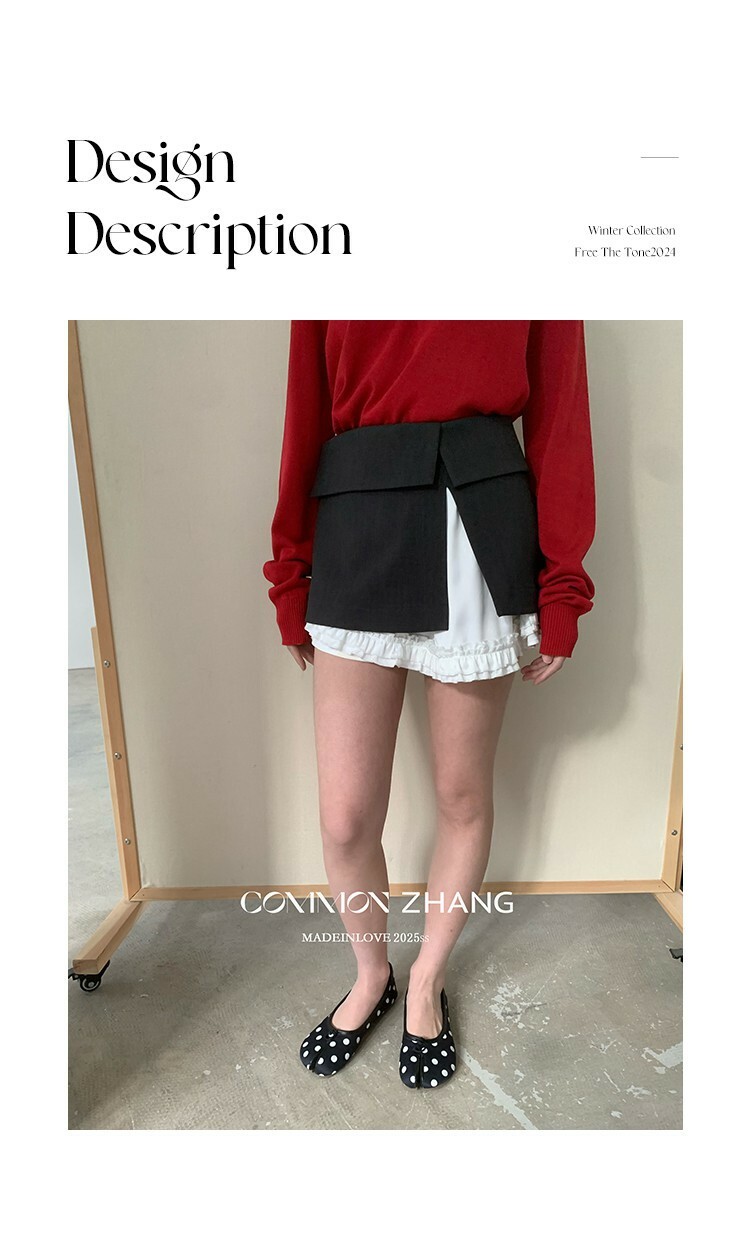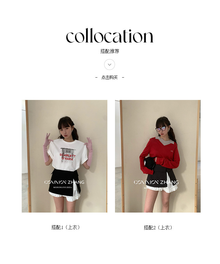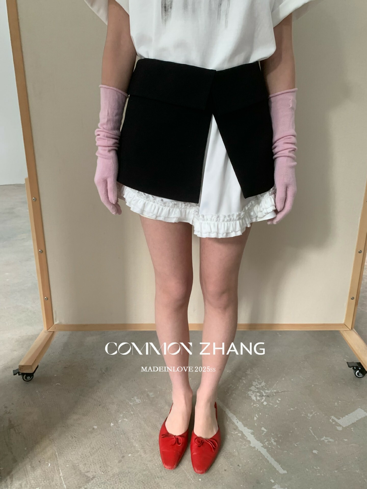 *o-ha-you*【FCZ102438】春季韓風設計感開叉花邊拼接內搭高腰A字兩件套短裙-2色-如有需要請先諮詢