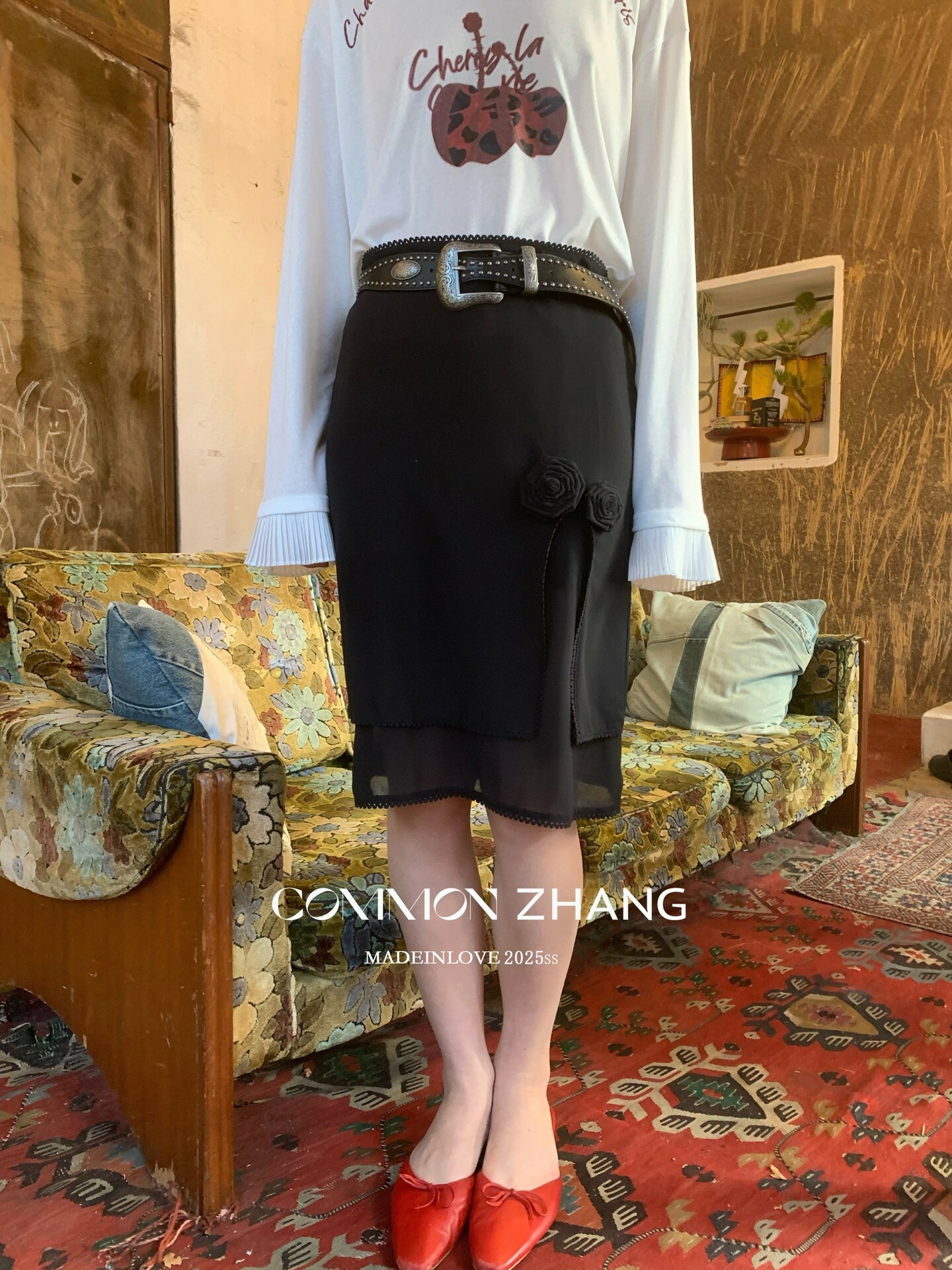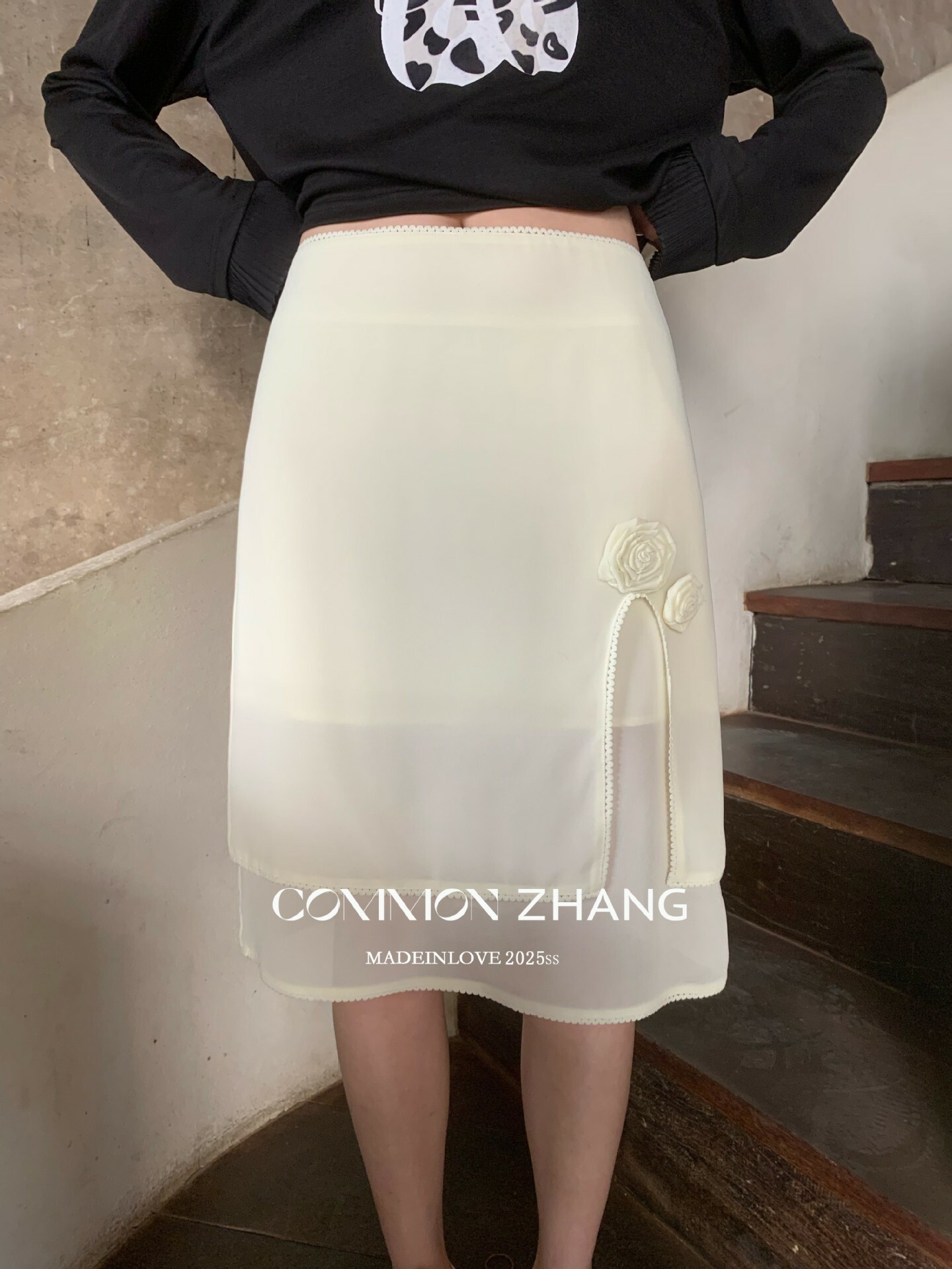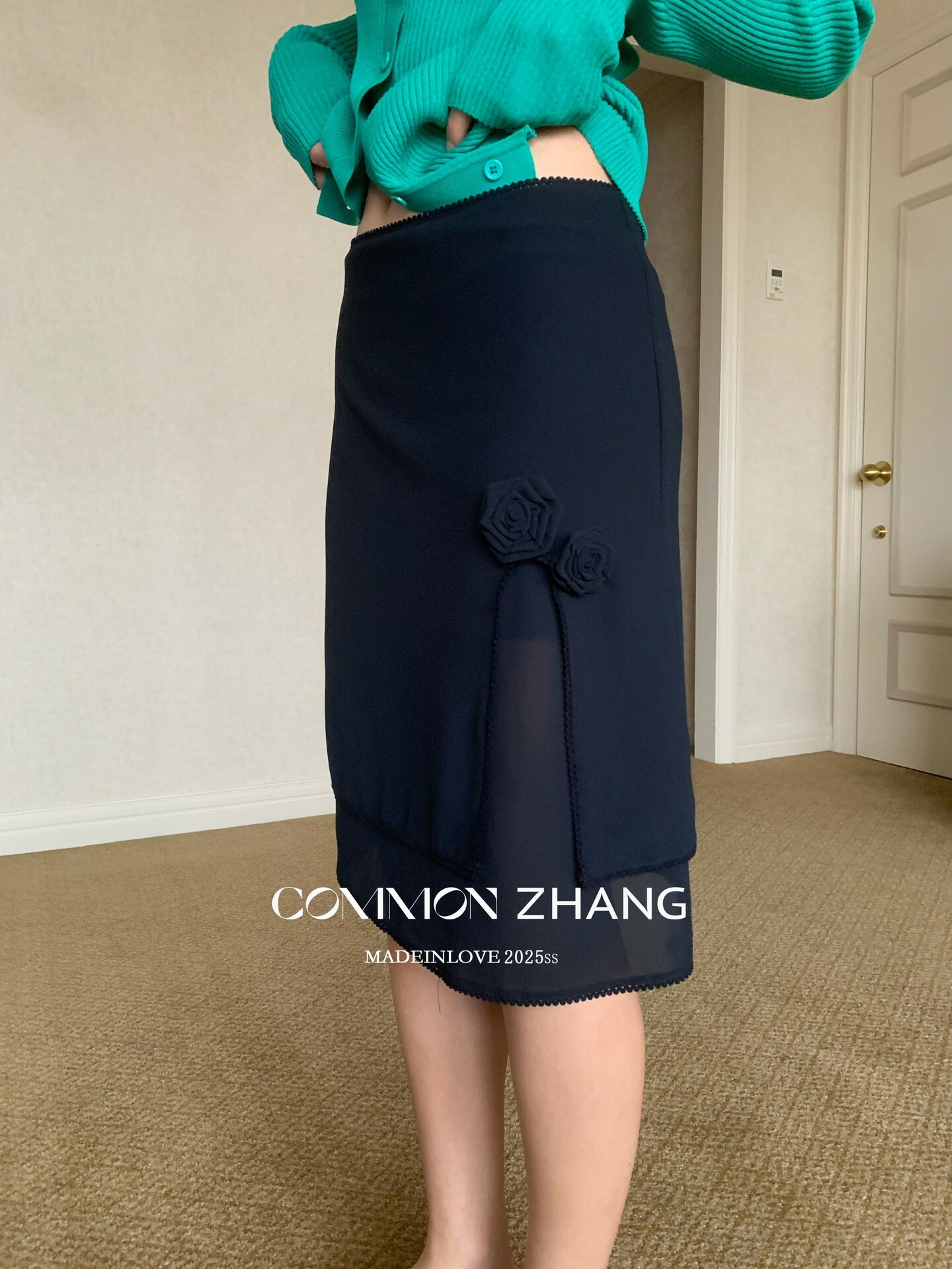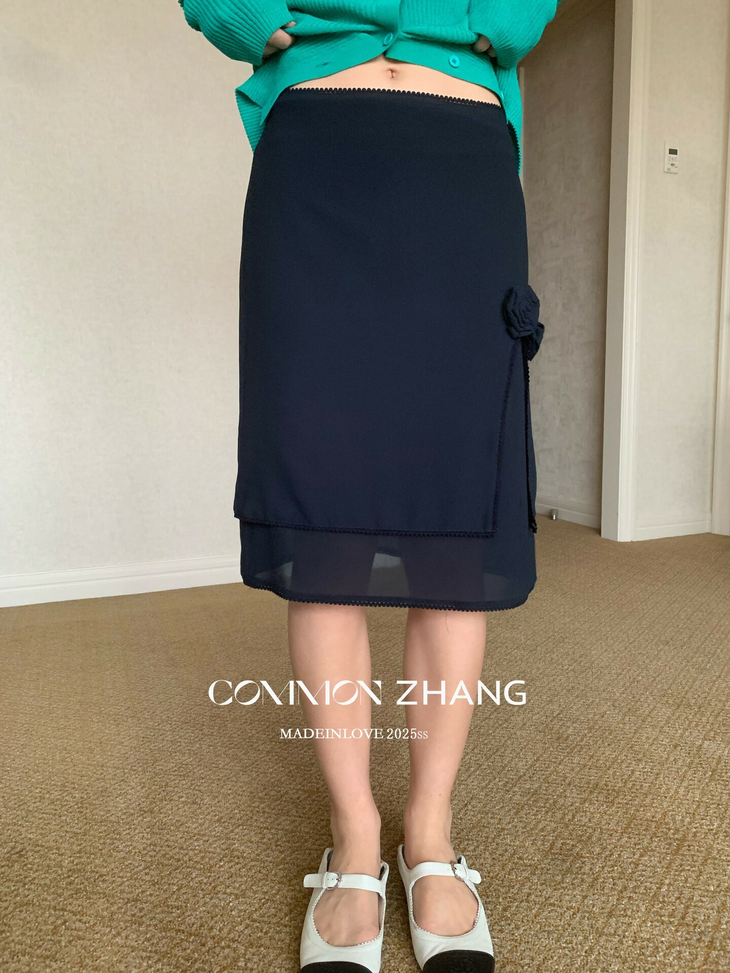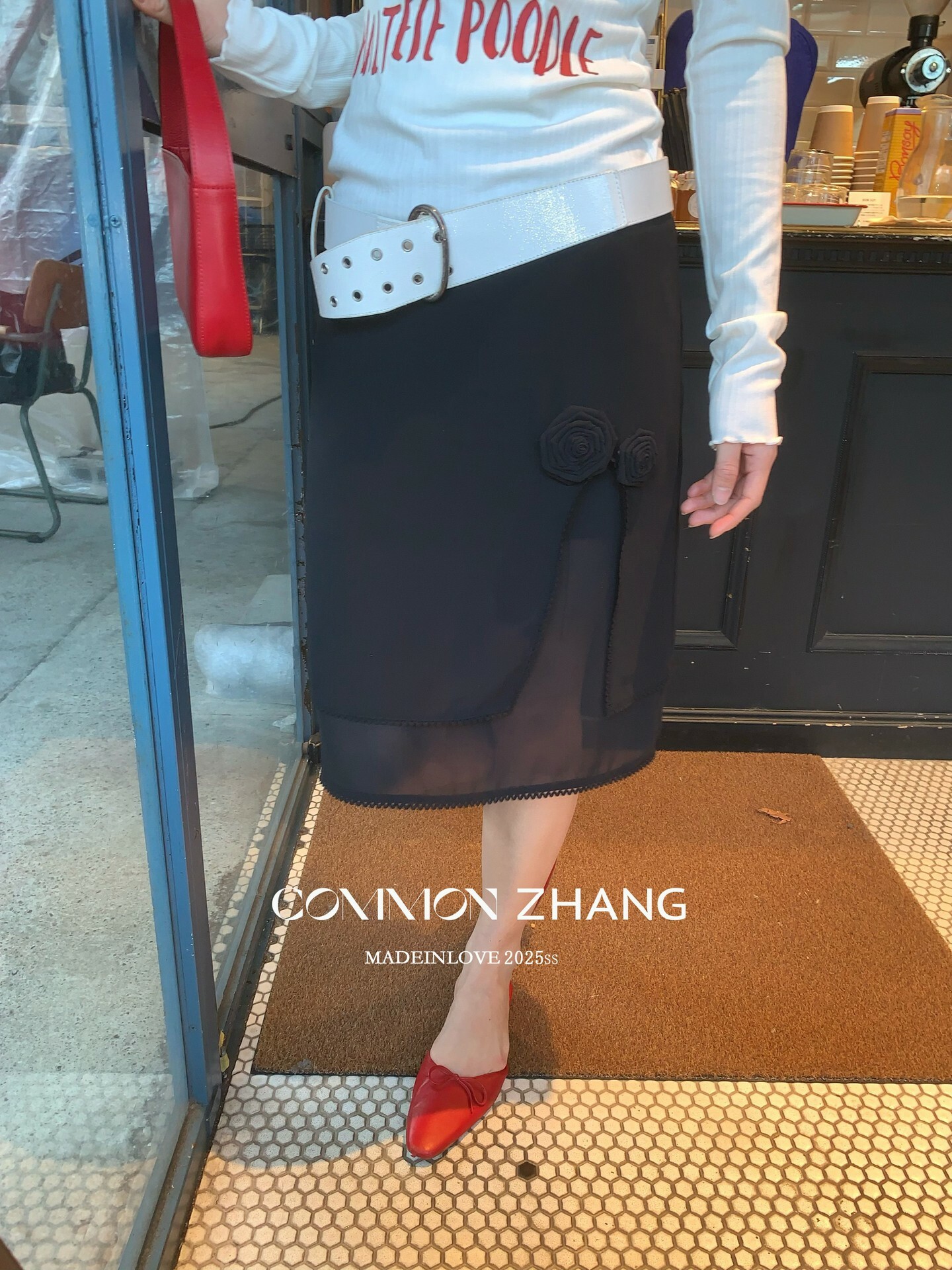 *o-ha-you*【FCZ102525】純色立體花拼接層次感高腰遮胯顯瘦A字包臀半身裙-3色-如有需要請先諮詢
