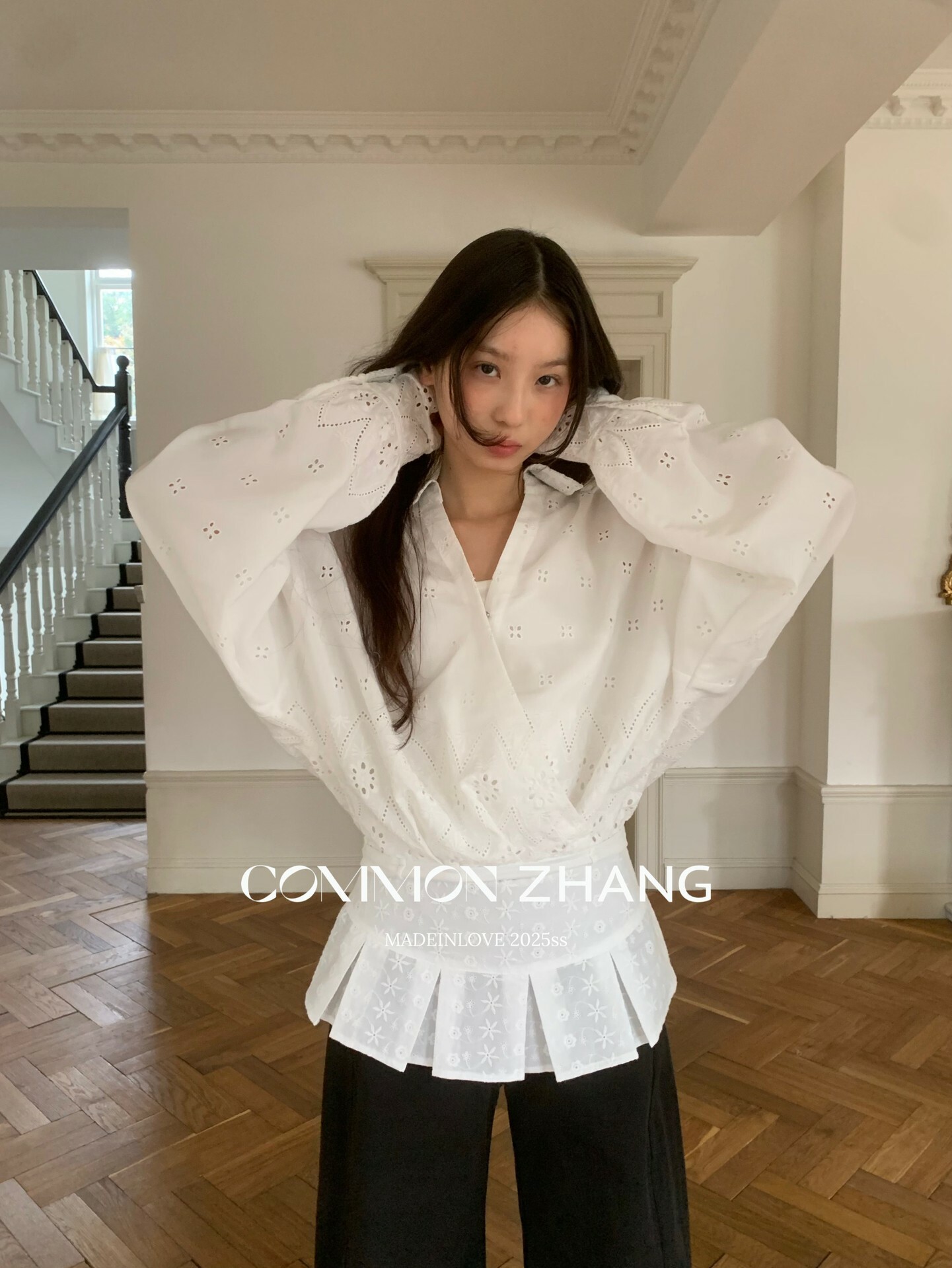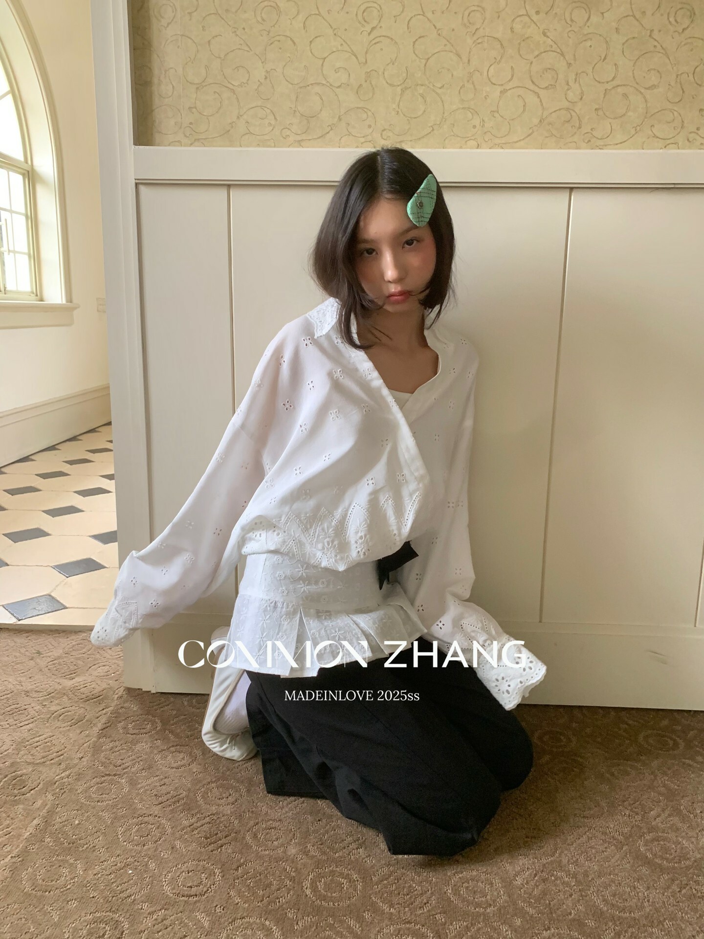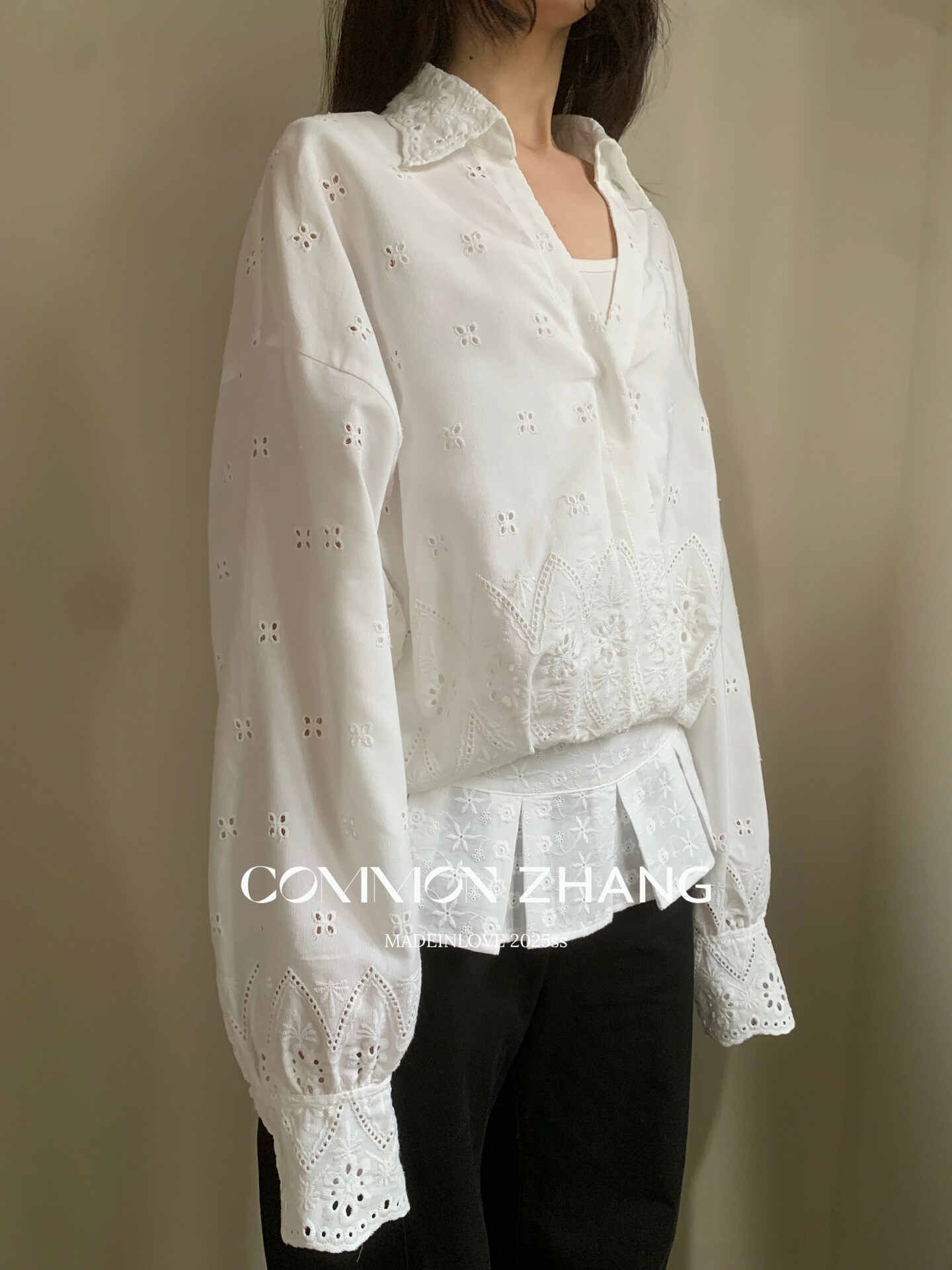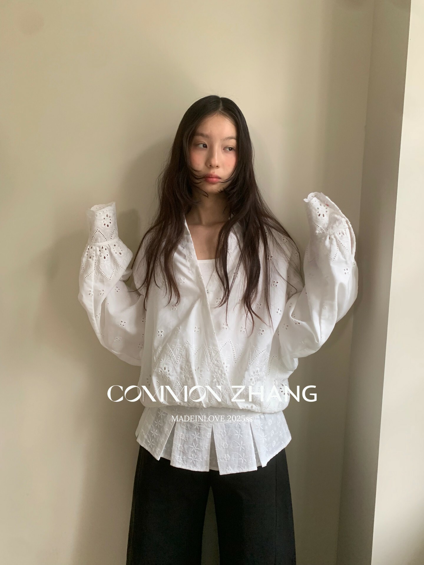 *o-ha-you*【FCZ103001】夏季新款減齡鏤空U領假兩件襯衫-2色