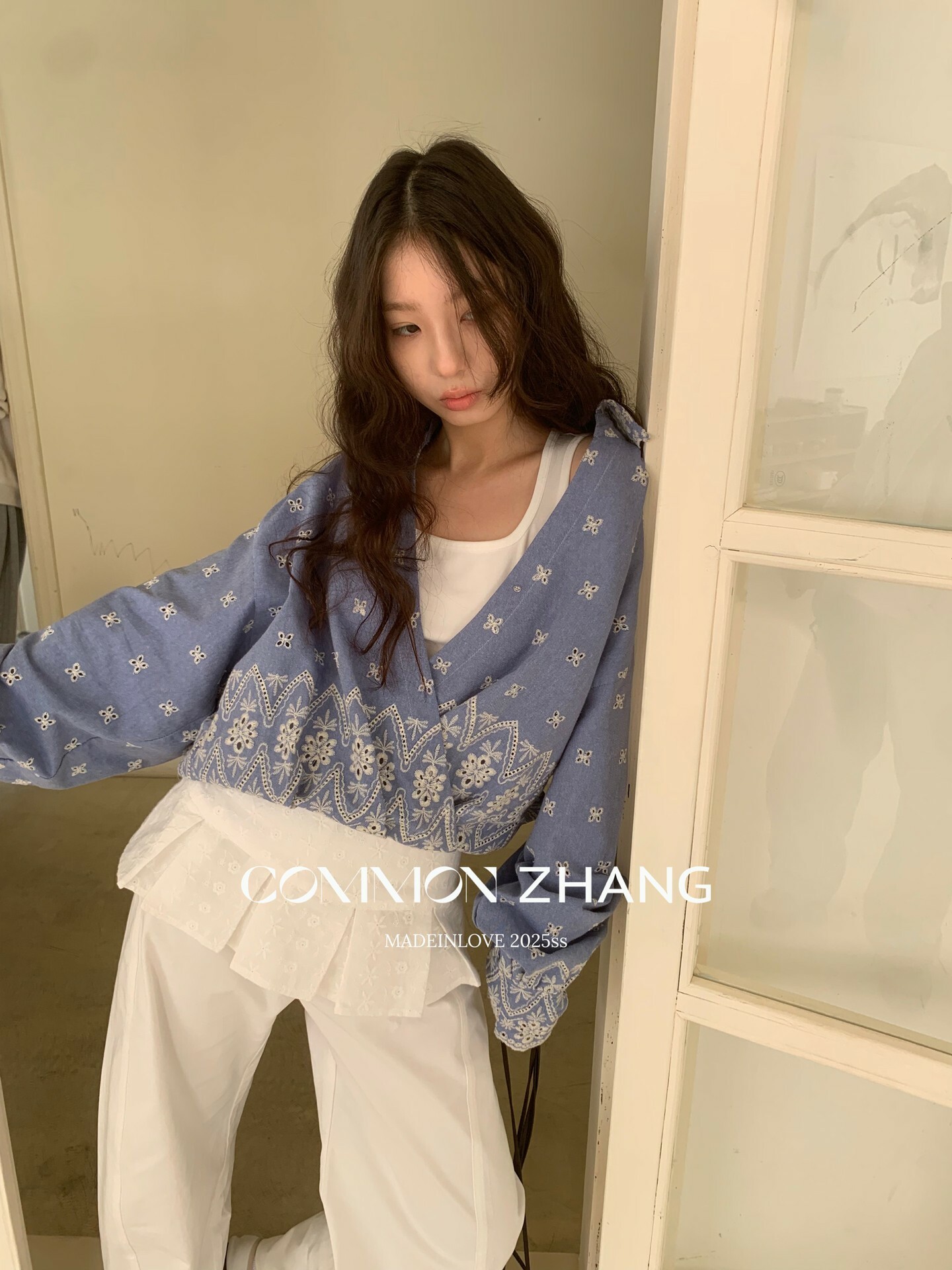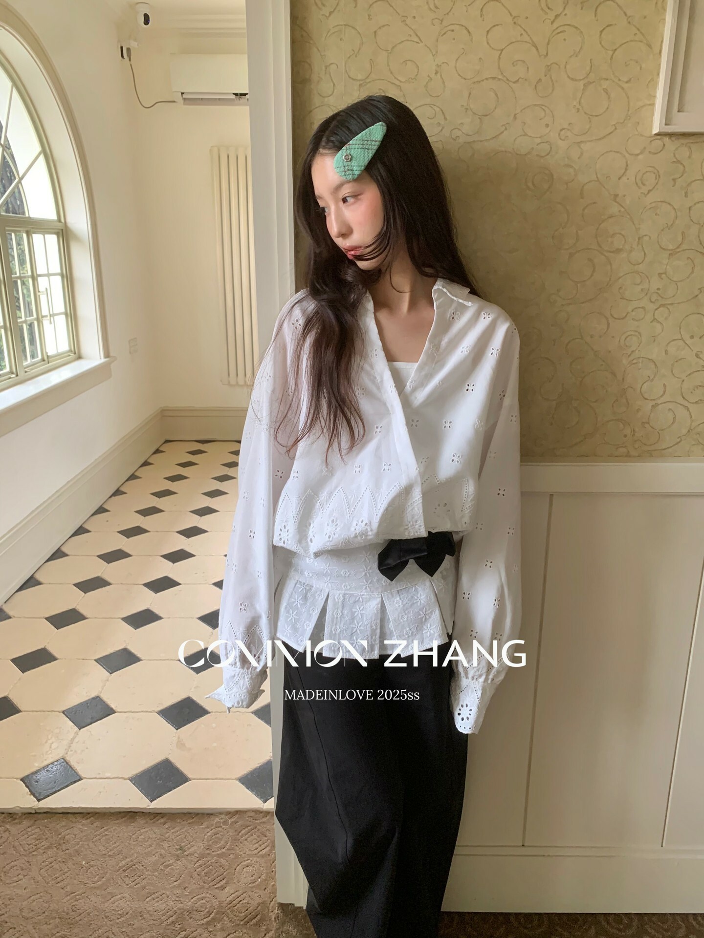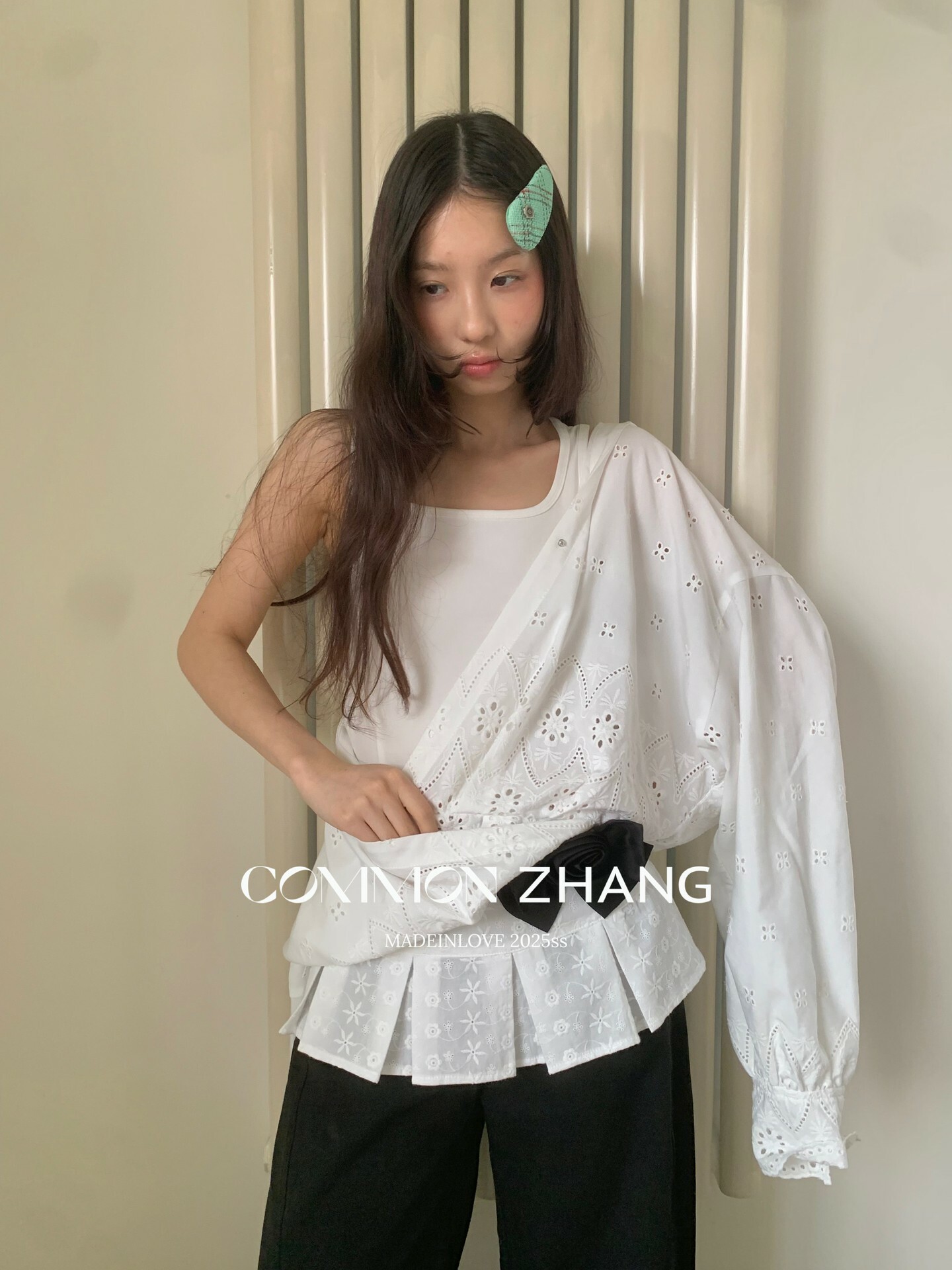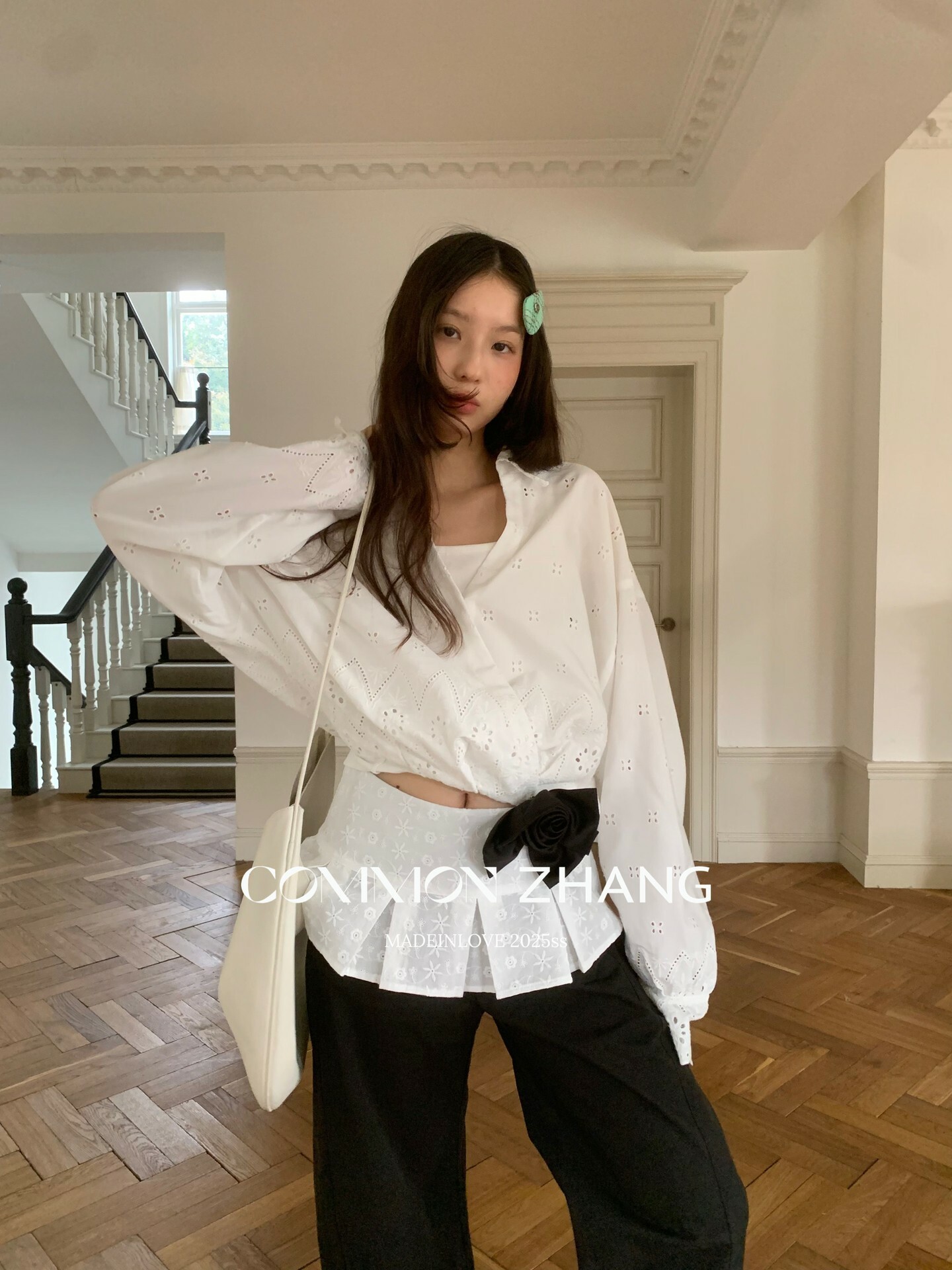 *o-ha-you*【FCZ103001】夏季新款減齡鏤空U領假兩件襯衫-2色