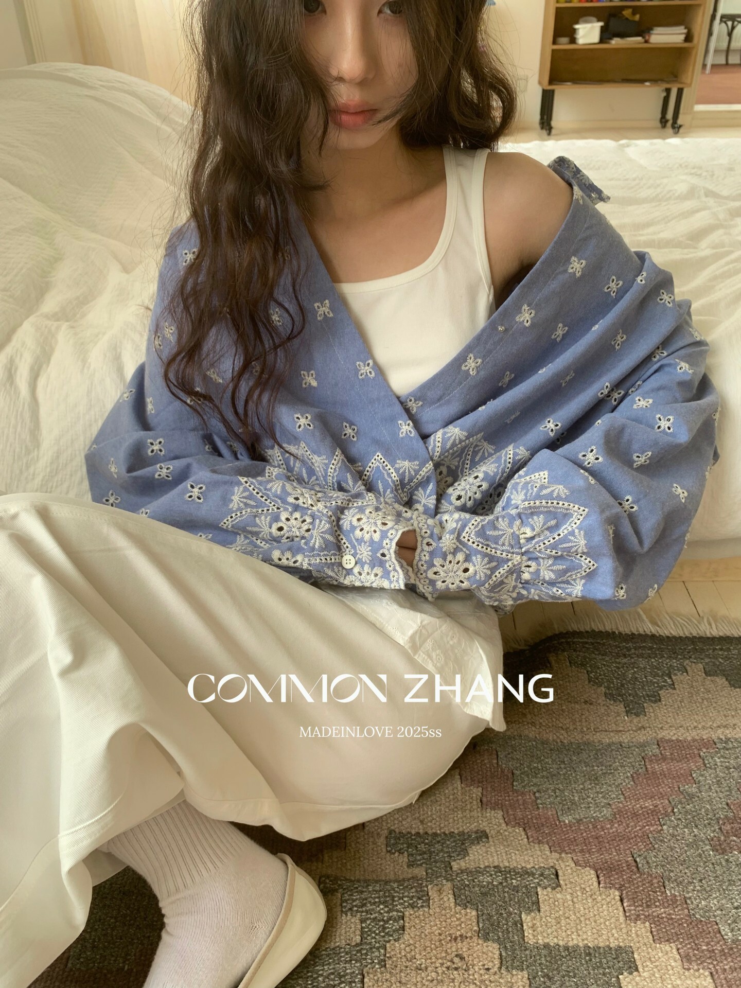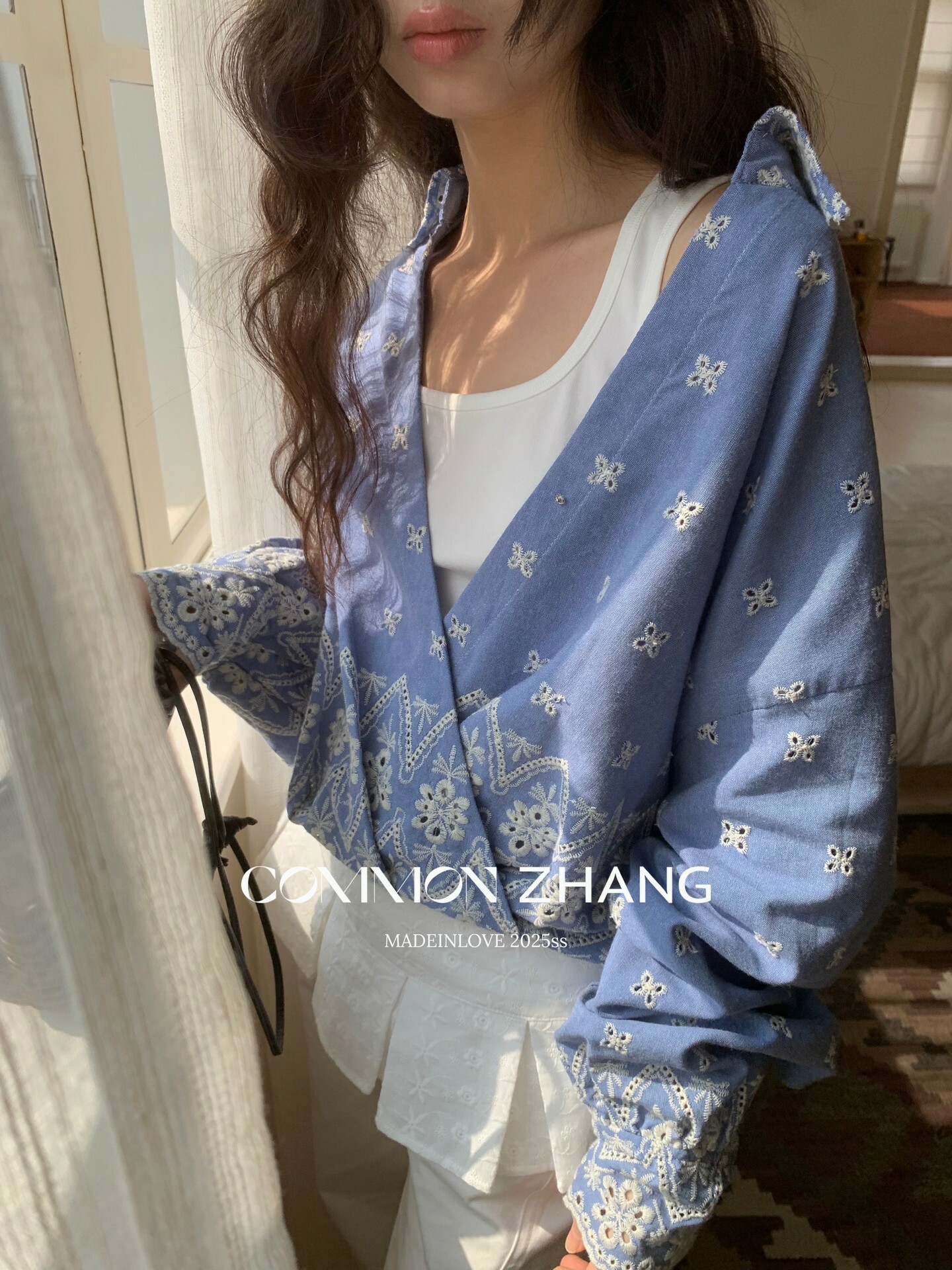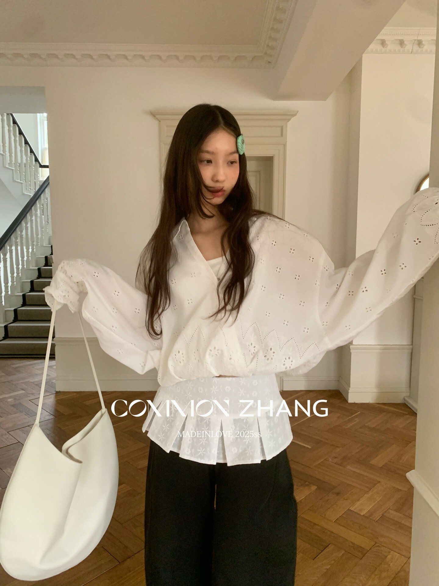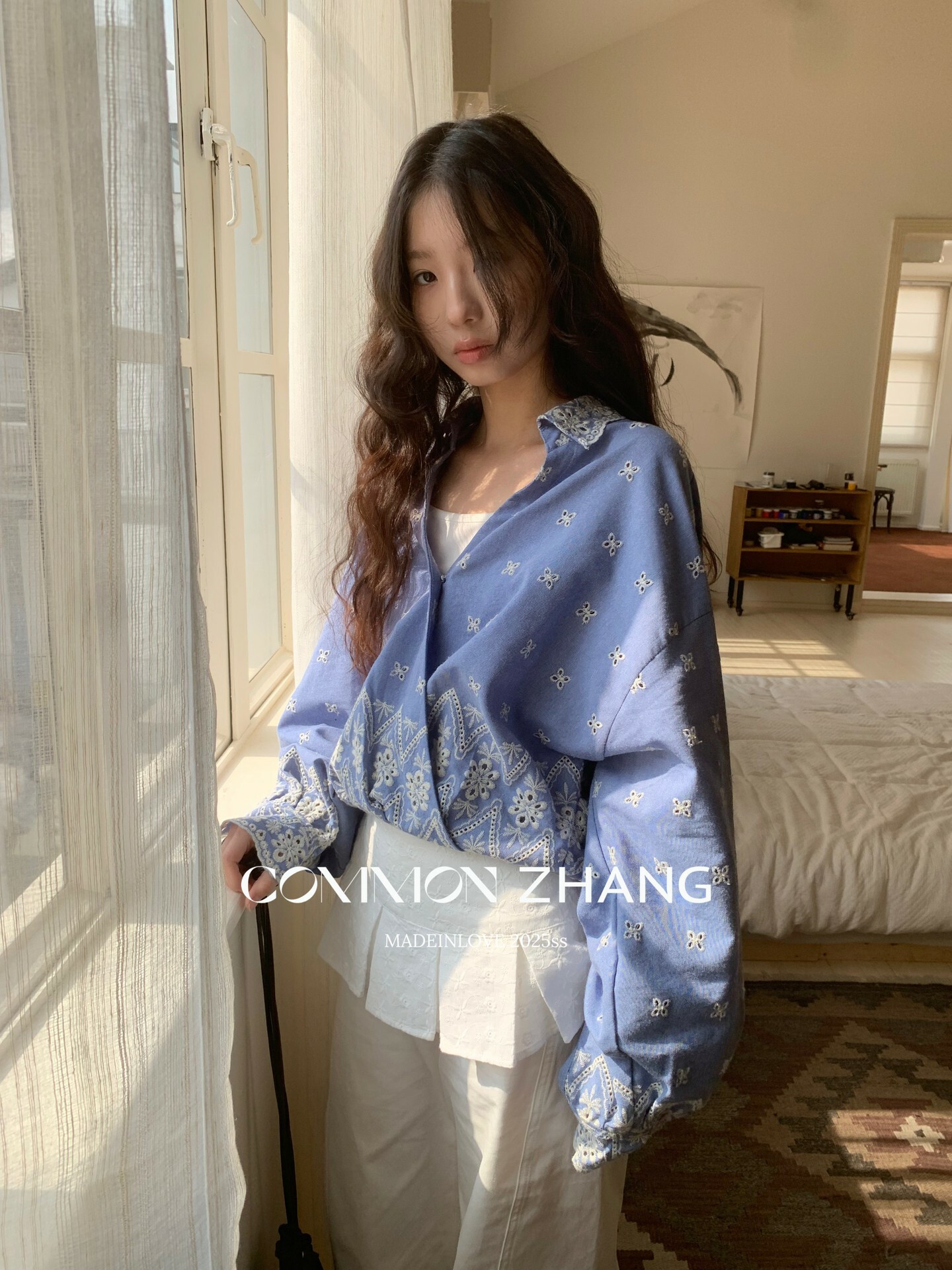 *o-ha-you*【FCZ103001】夏季新款減齡鏤空U領假兩件襯衫-2色