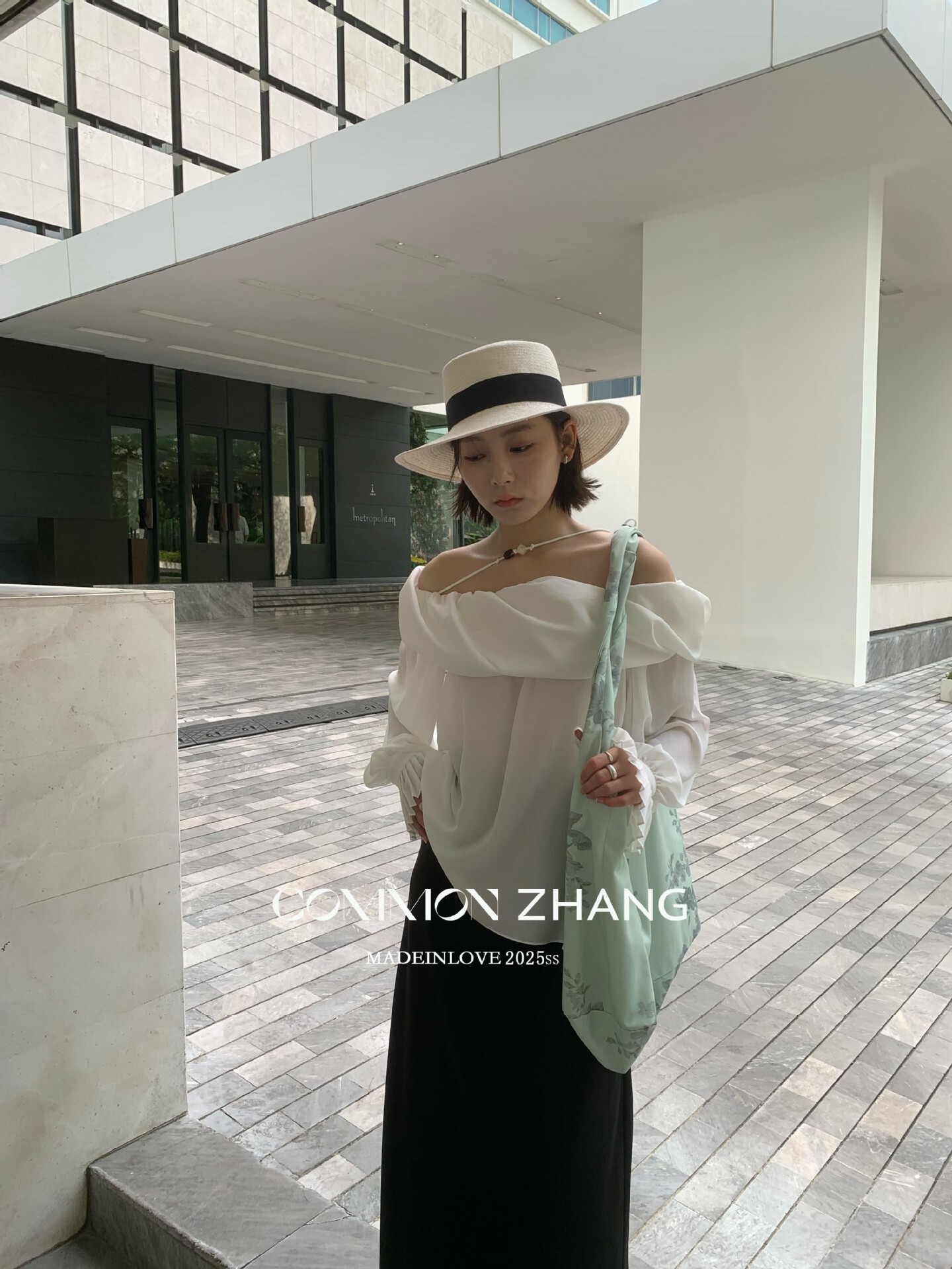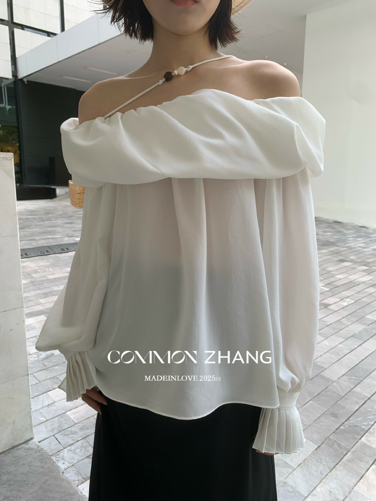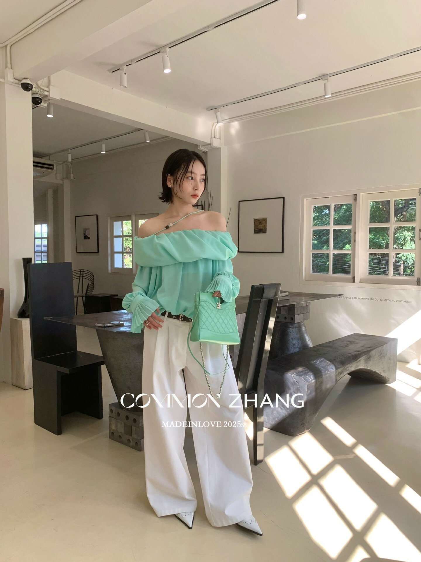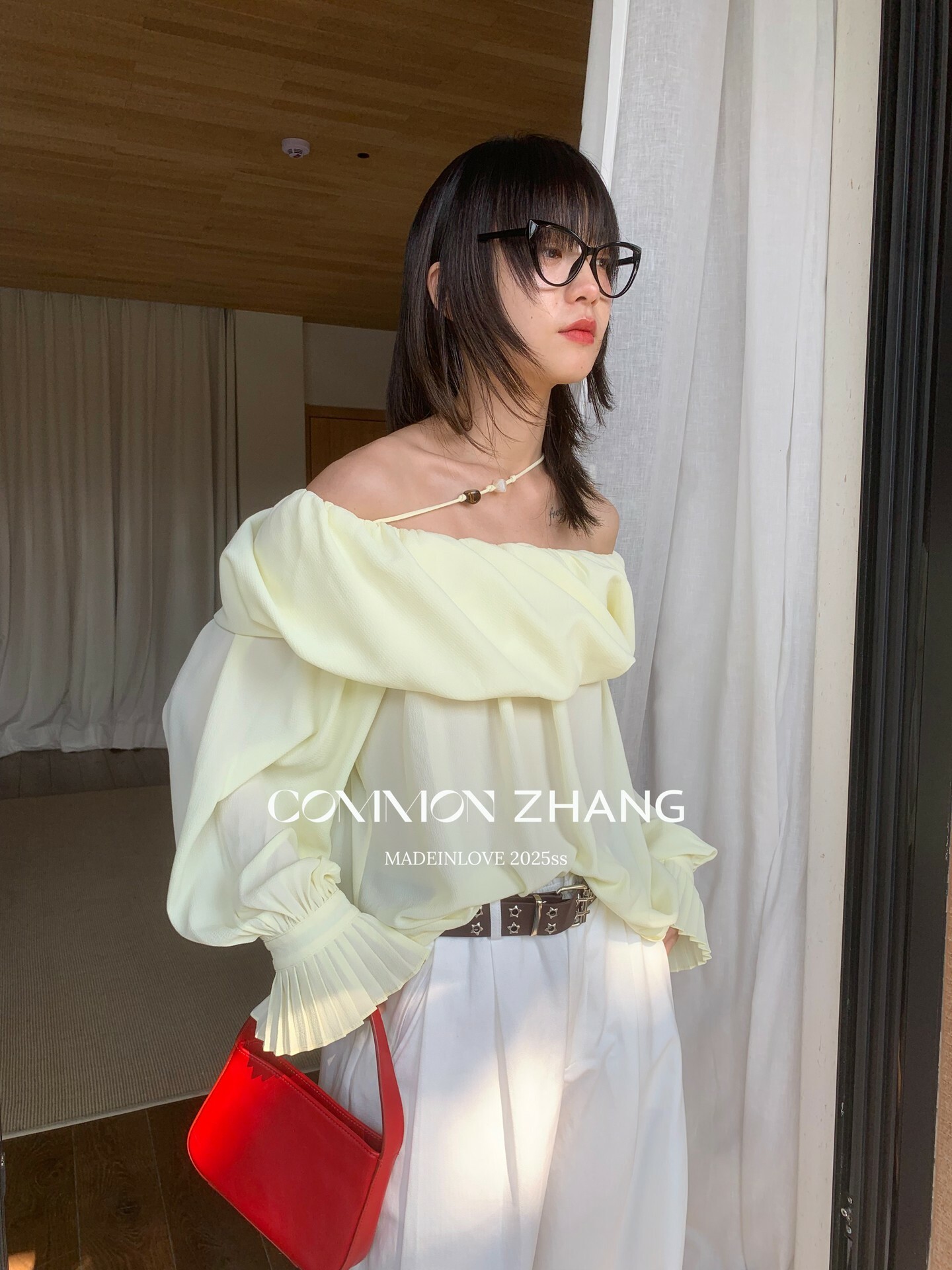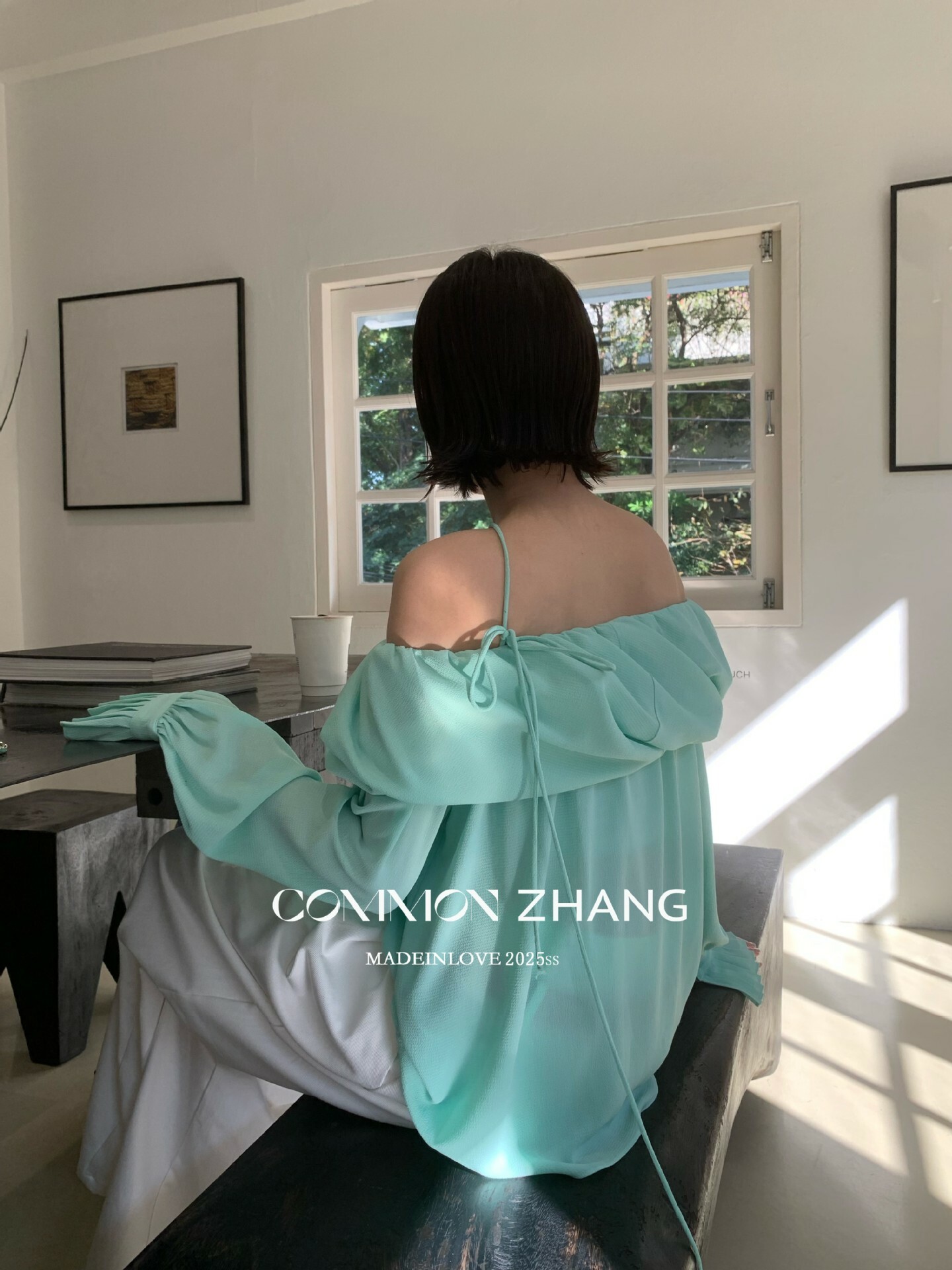 *o-ha-you*【FCZ103401】韓風淺春系一字領露肩花瓣袖慵懶度假性感網紗小衫-4色-如有需要請先諮詢