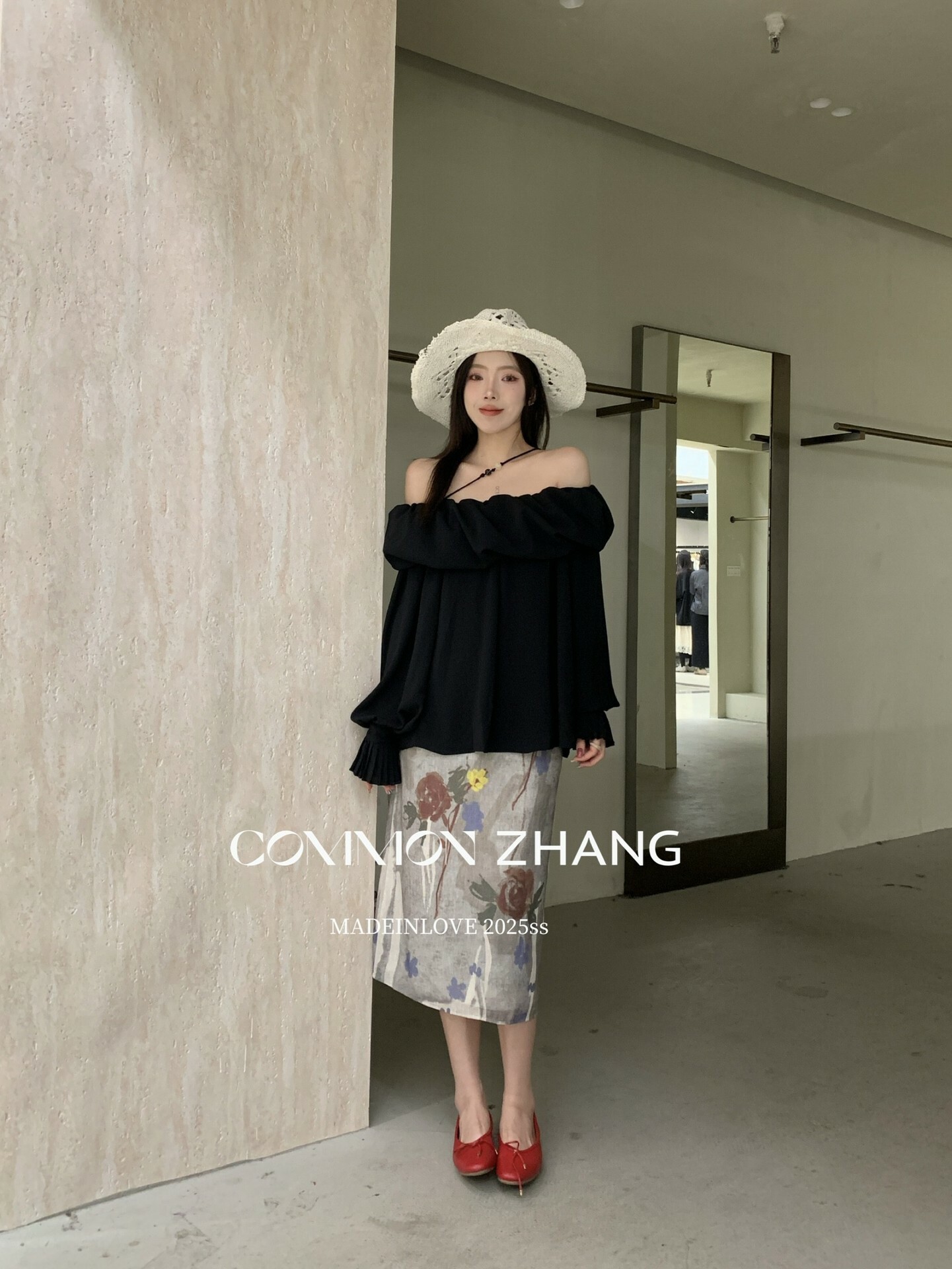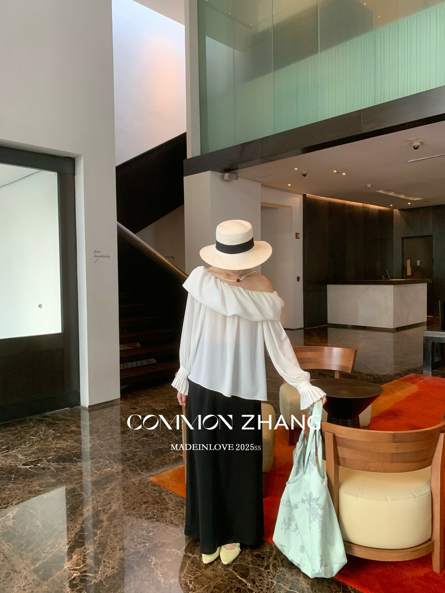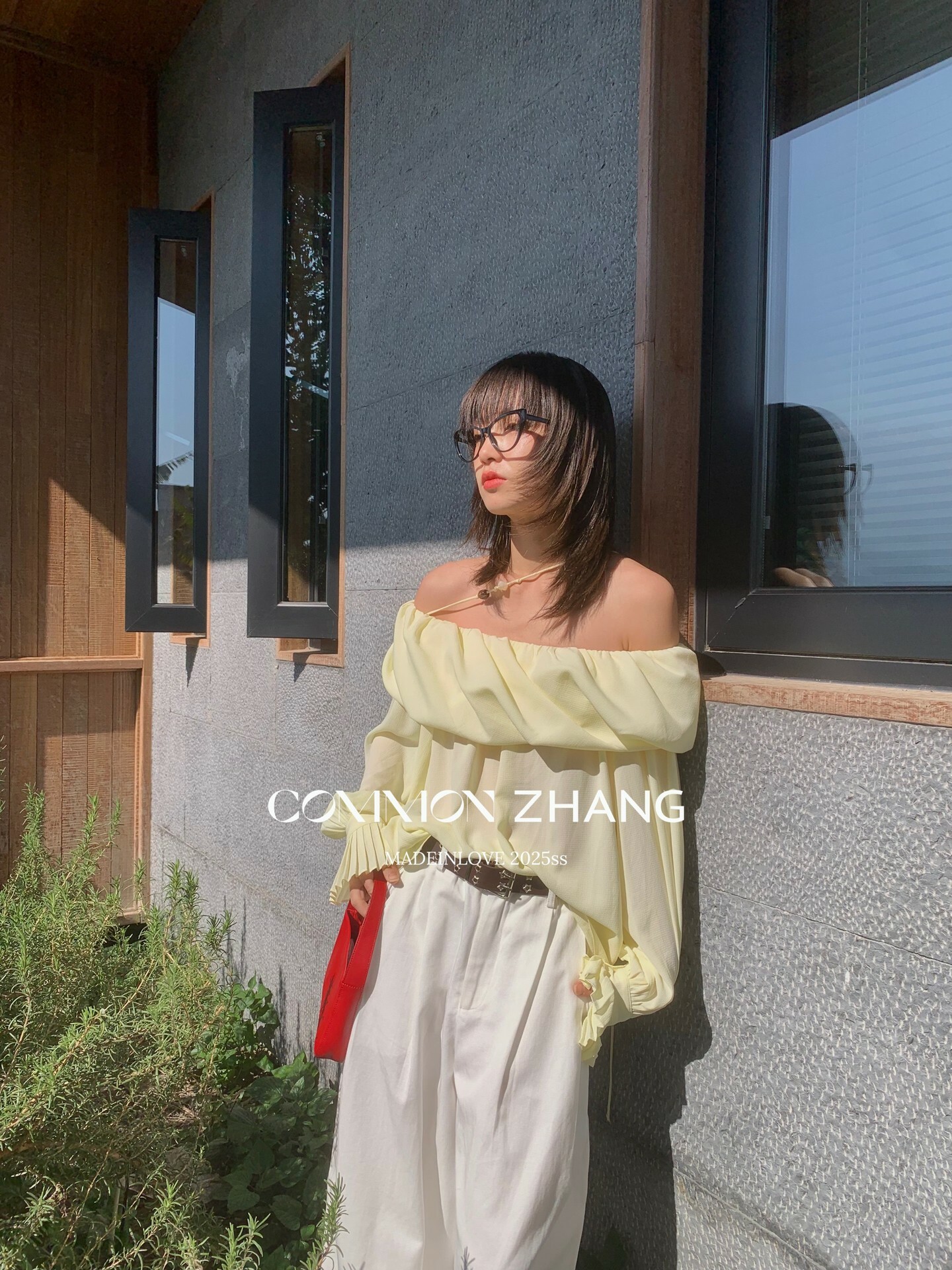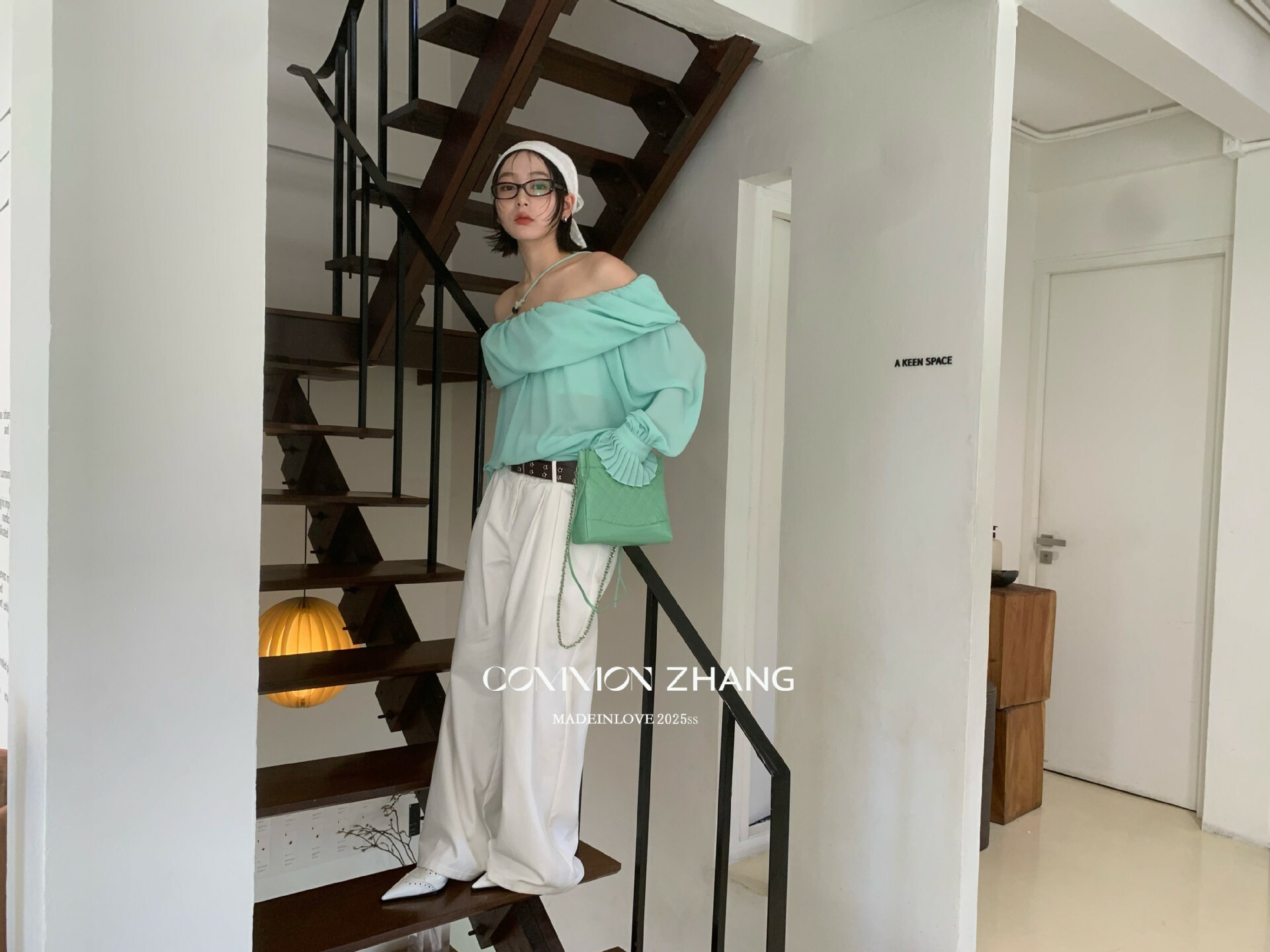 *o-ha-you*【FCZ103401】韓風淺春系一字領露肩花瓣袖慵懶度假性感網紗小衫-4色-如有需要請先諮詢