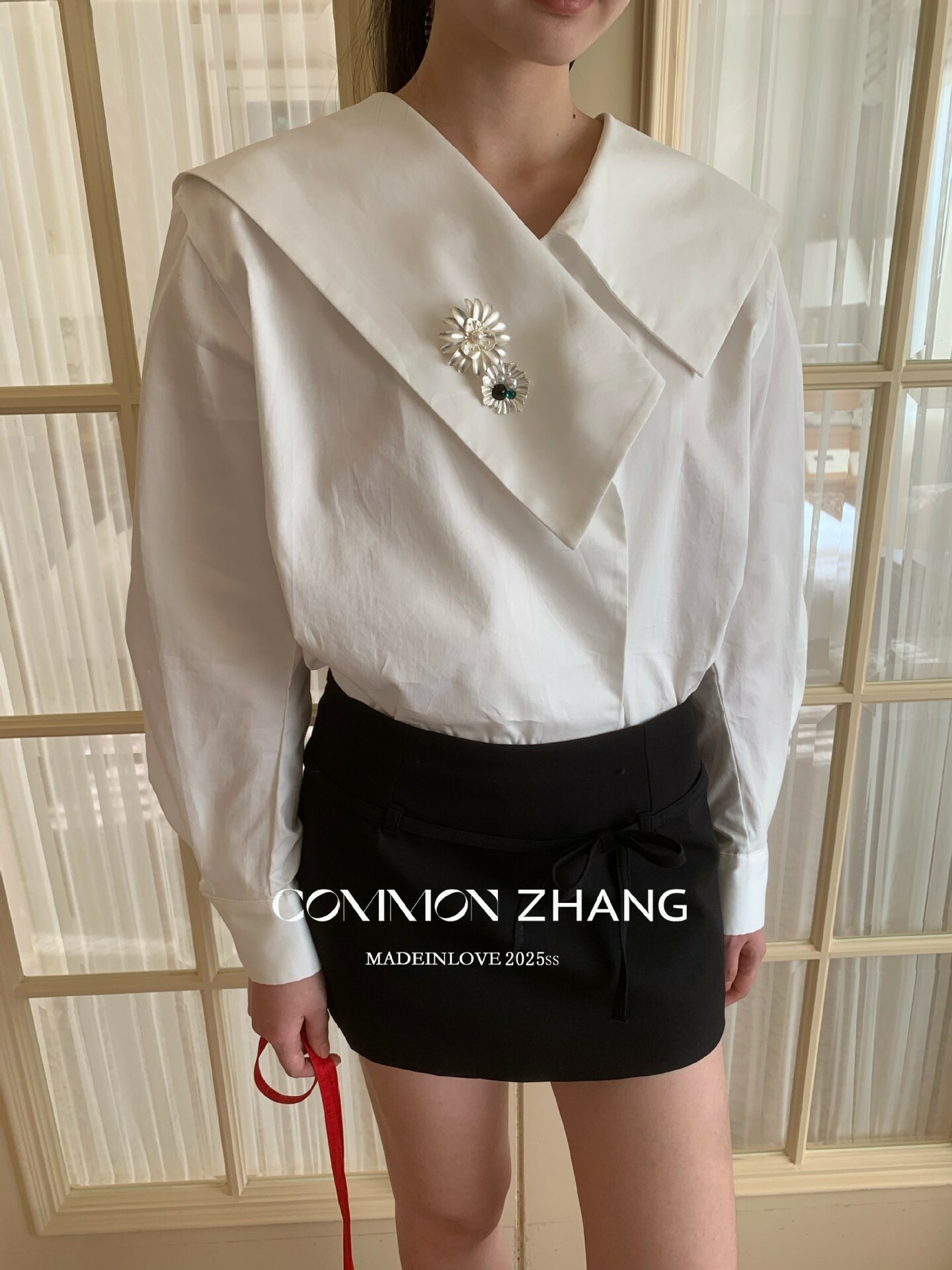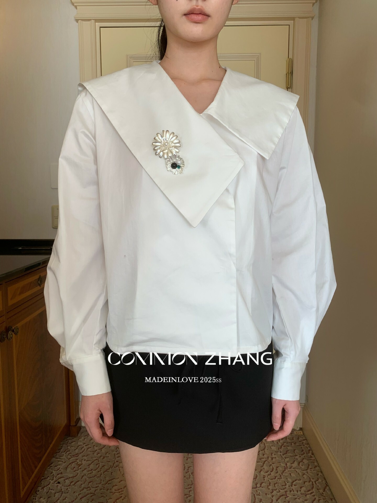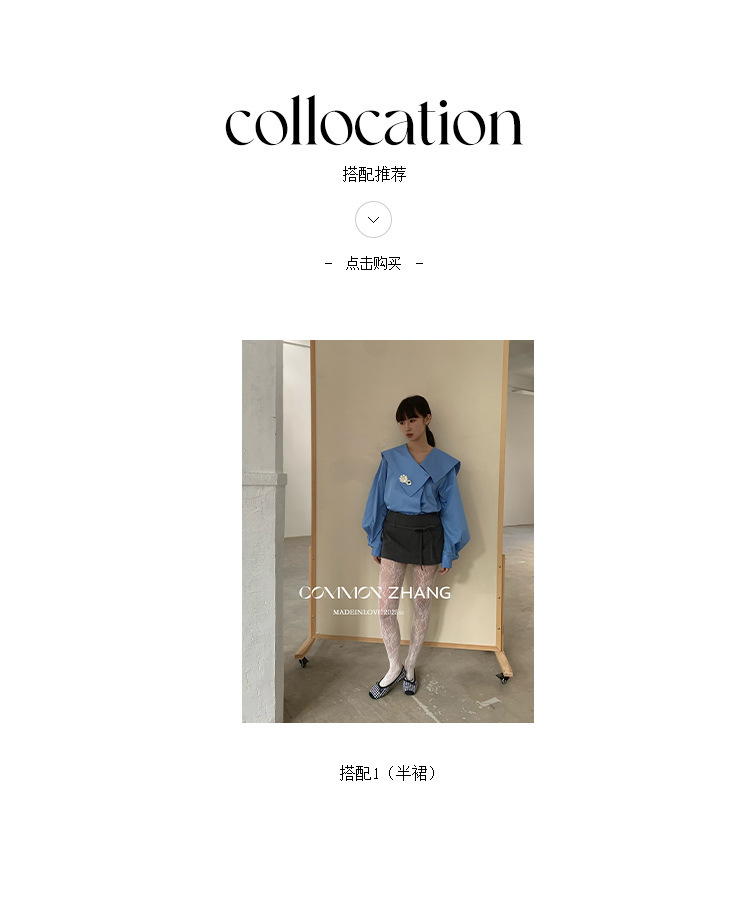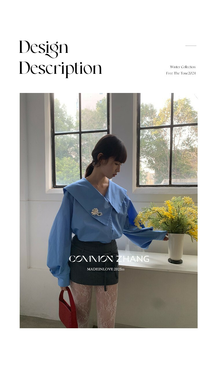 *o-ha-you*【FCZ103427】春季新海軍領質感氣質寬鬆送太陽花配件襯衫-2色-如有需要請先諮詢