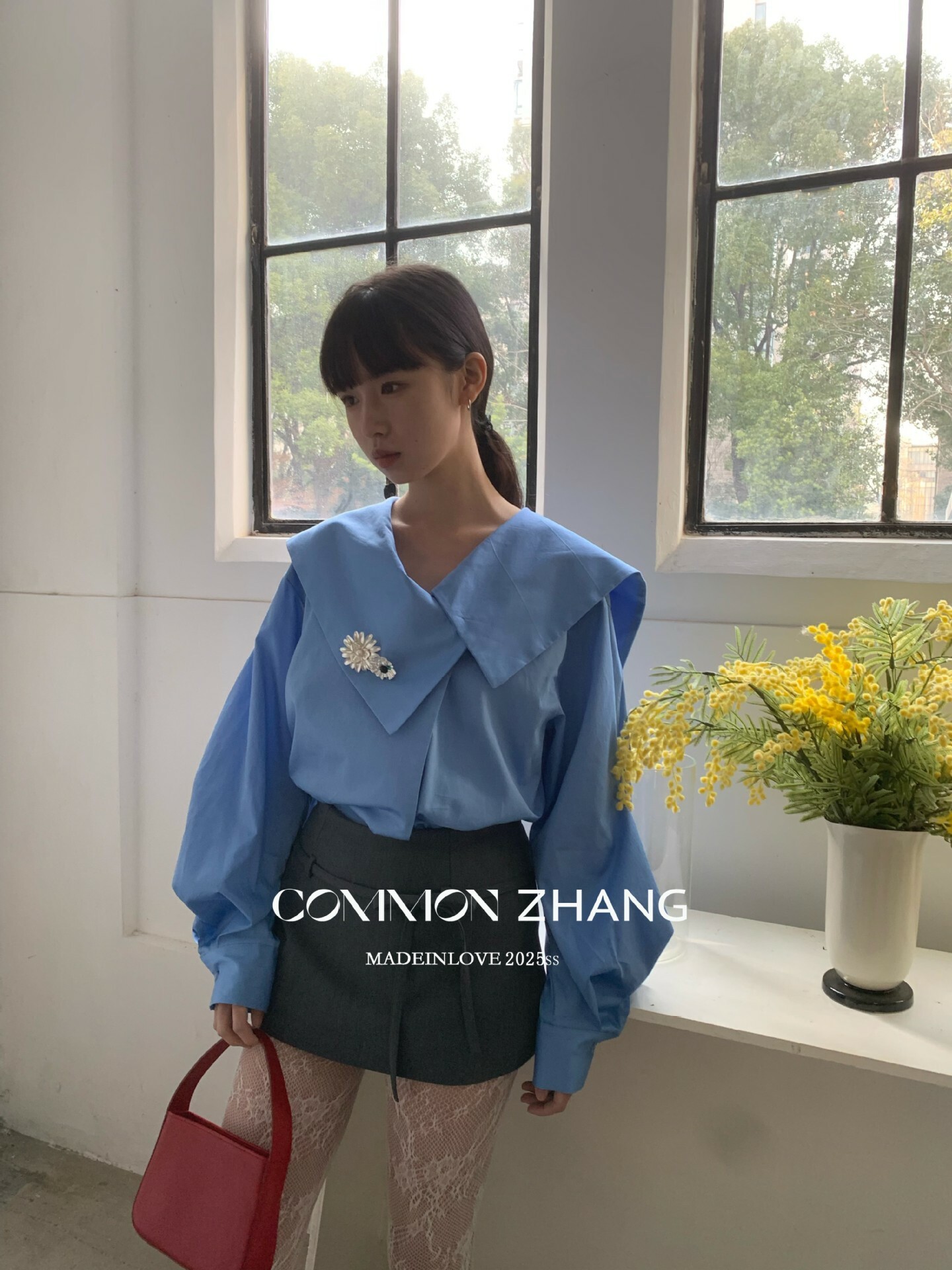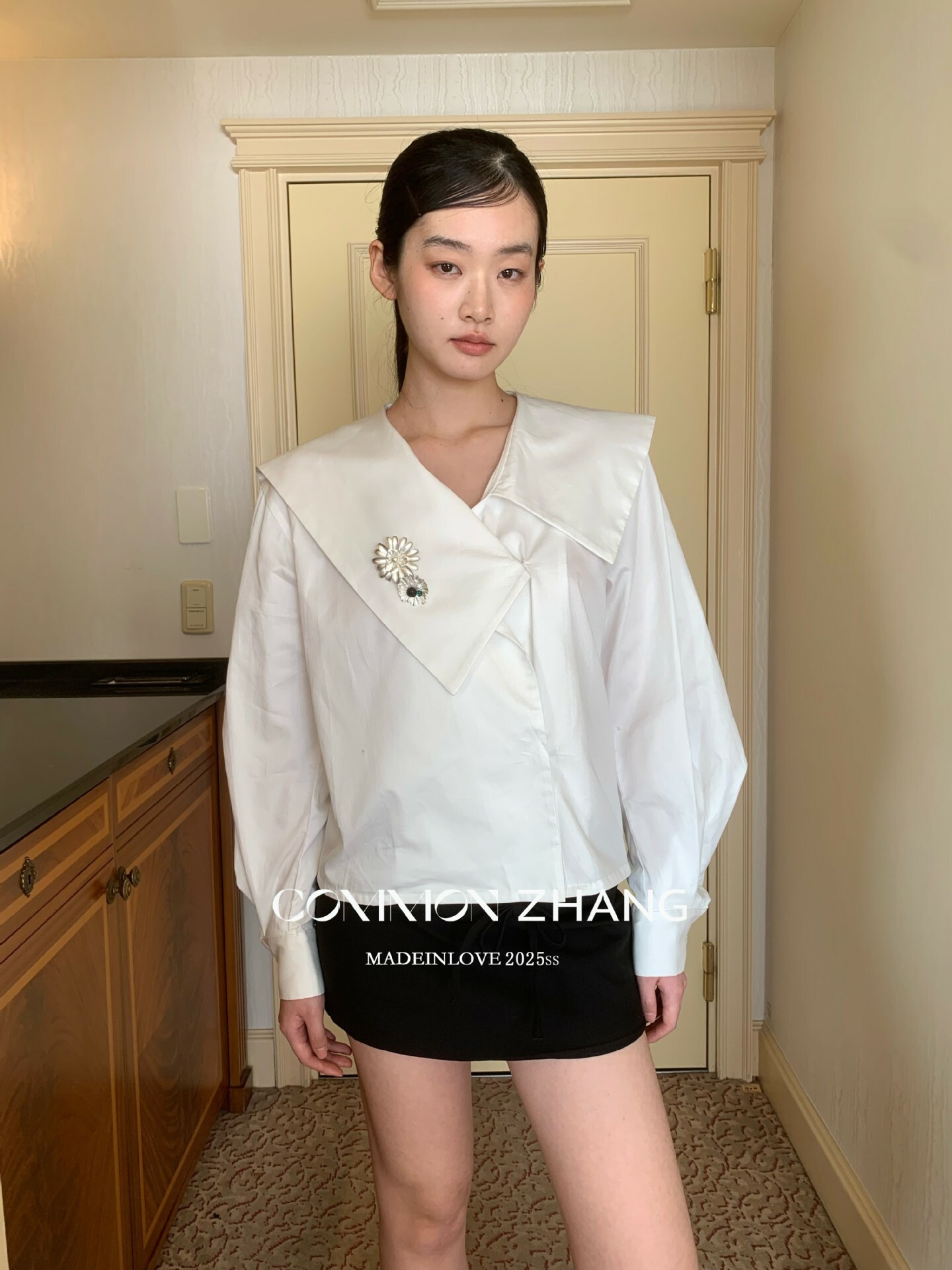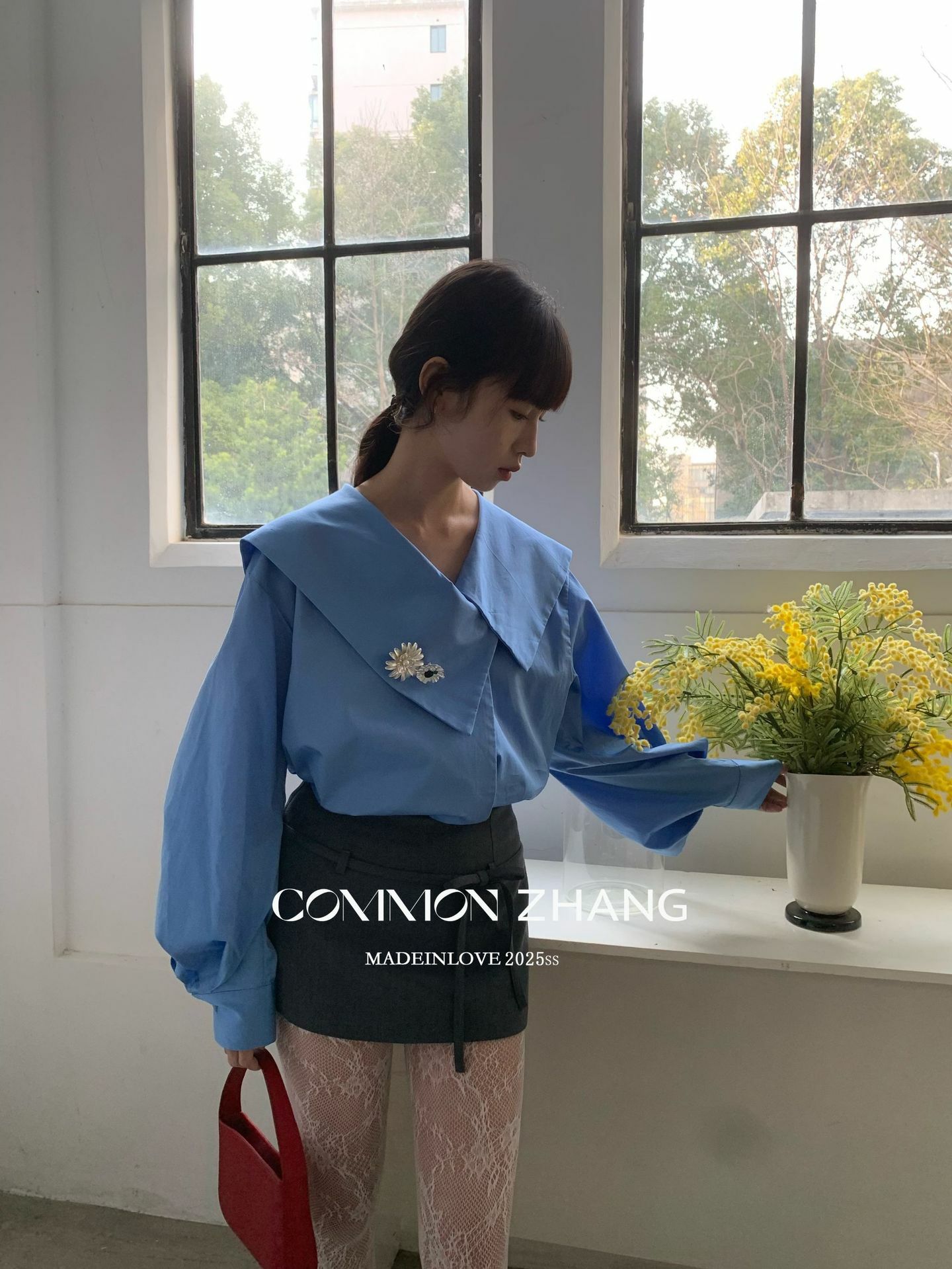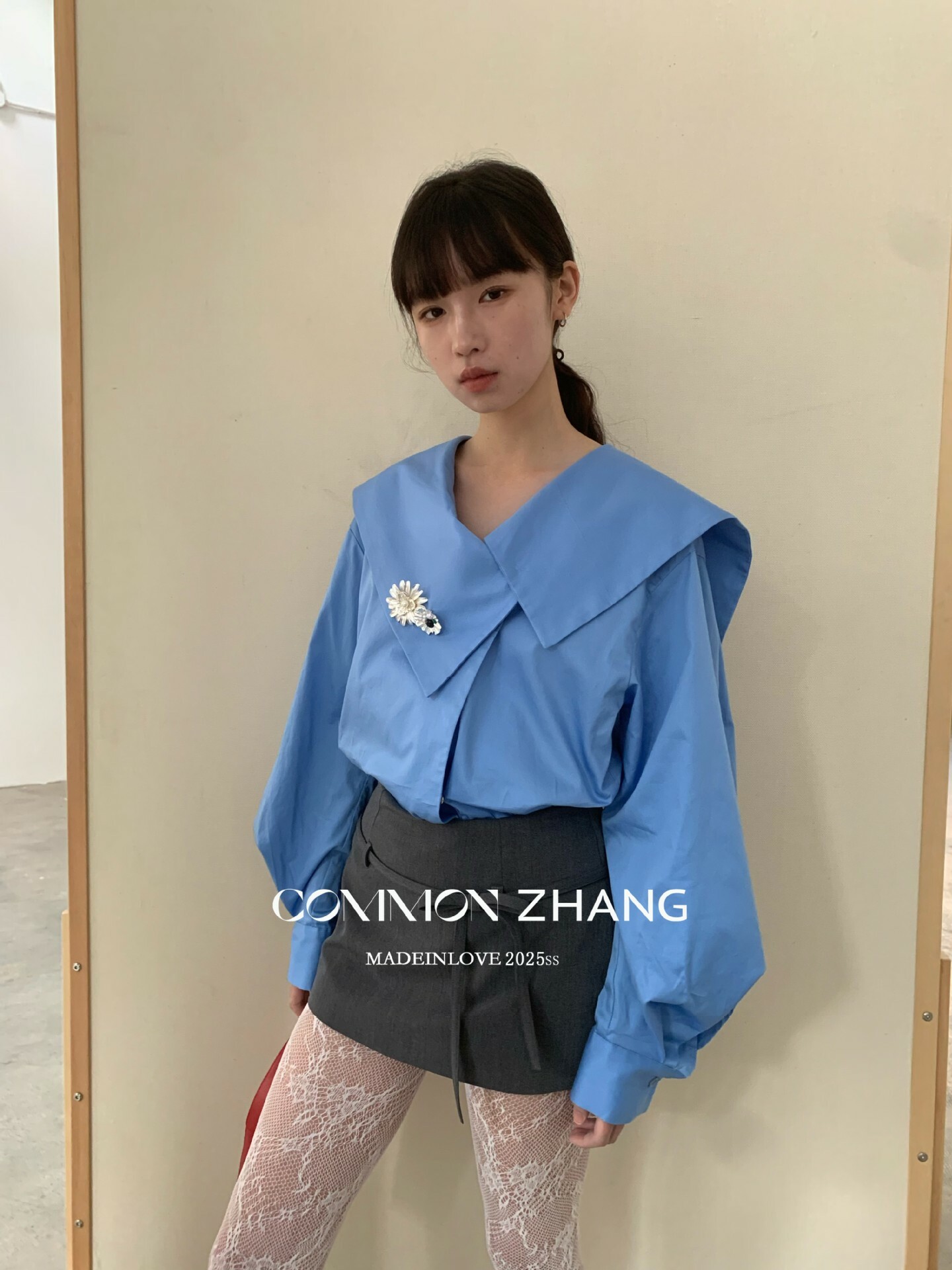 *o-ha-you*【FCZ103427】春季新海軍領質感氣質寬鬆送太陽花配件襯衫-2色-如有需要請先諮詢