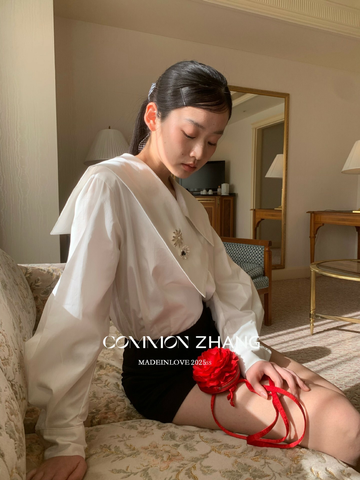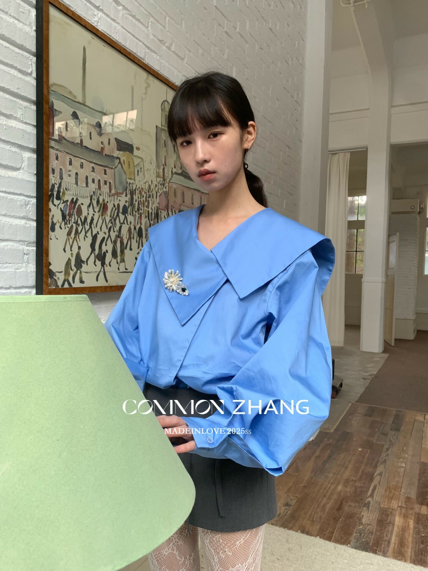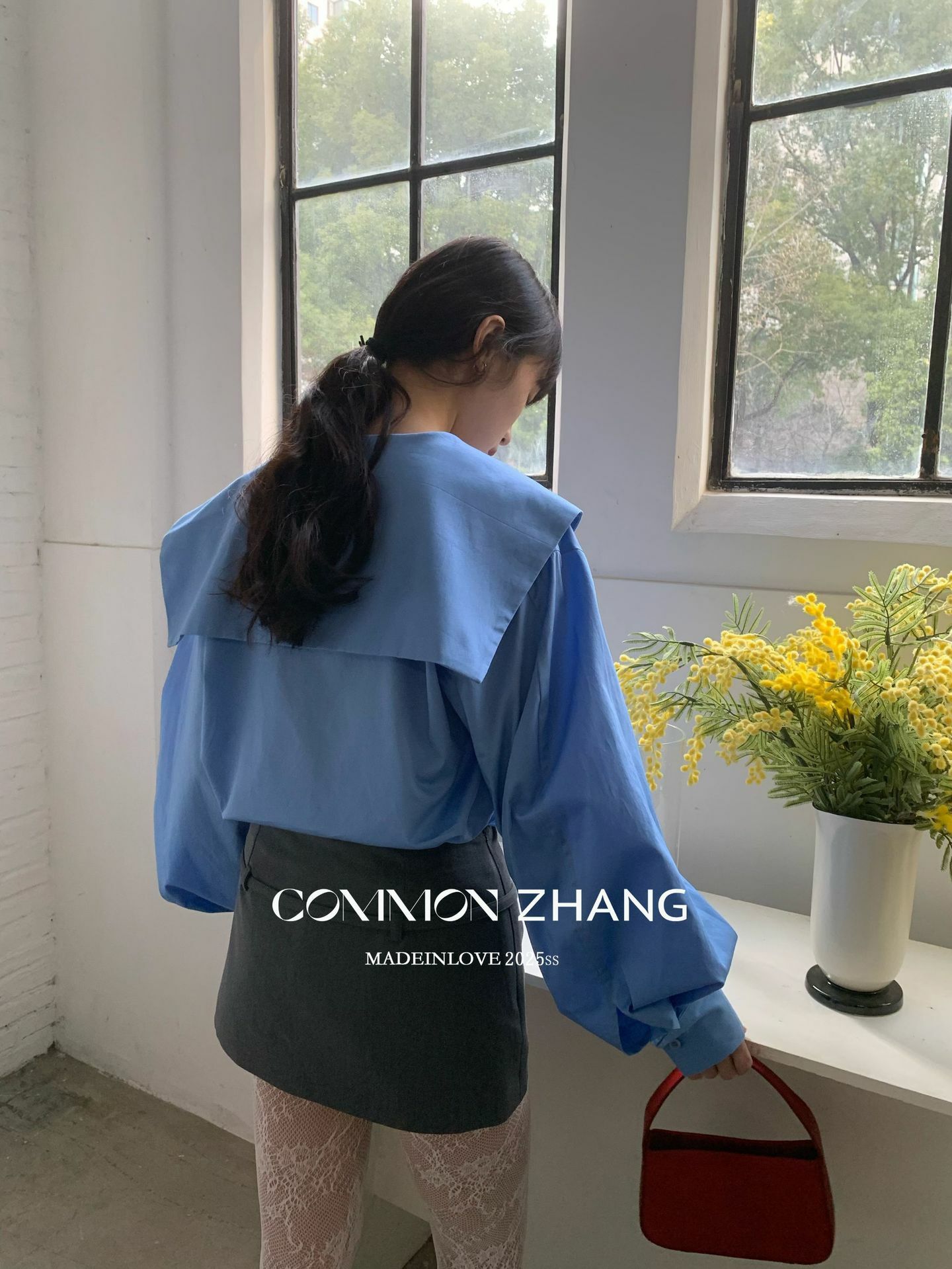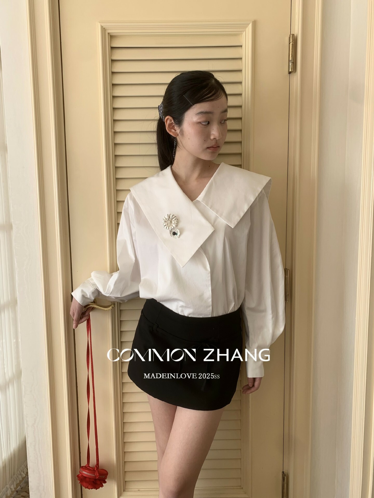 *o-ha-you*【FCZ103427】春季新海軍領質感氣質寬鬆送太陽花配件襯衫-2色-如有需要請先諮詢