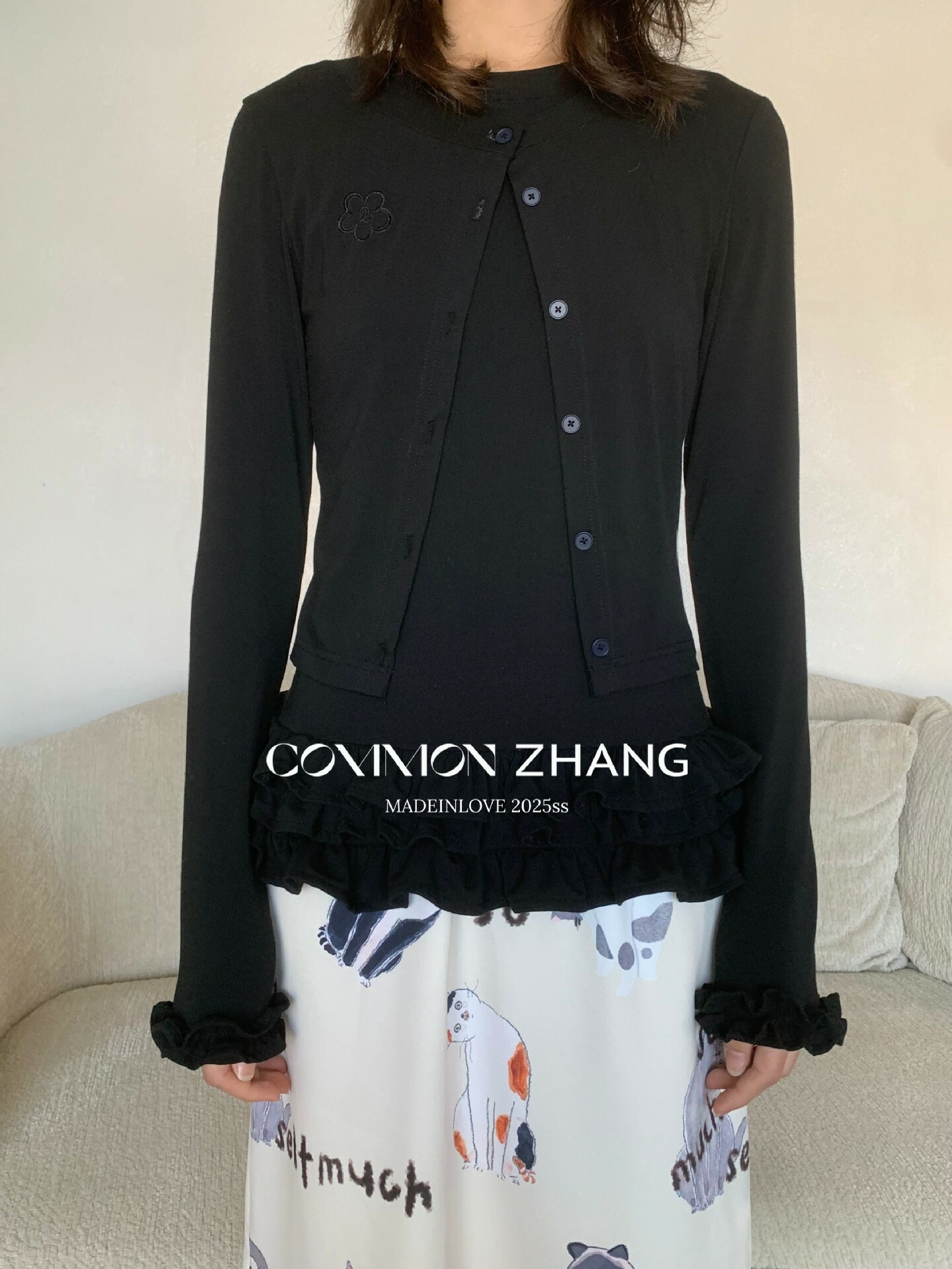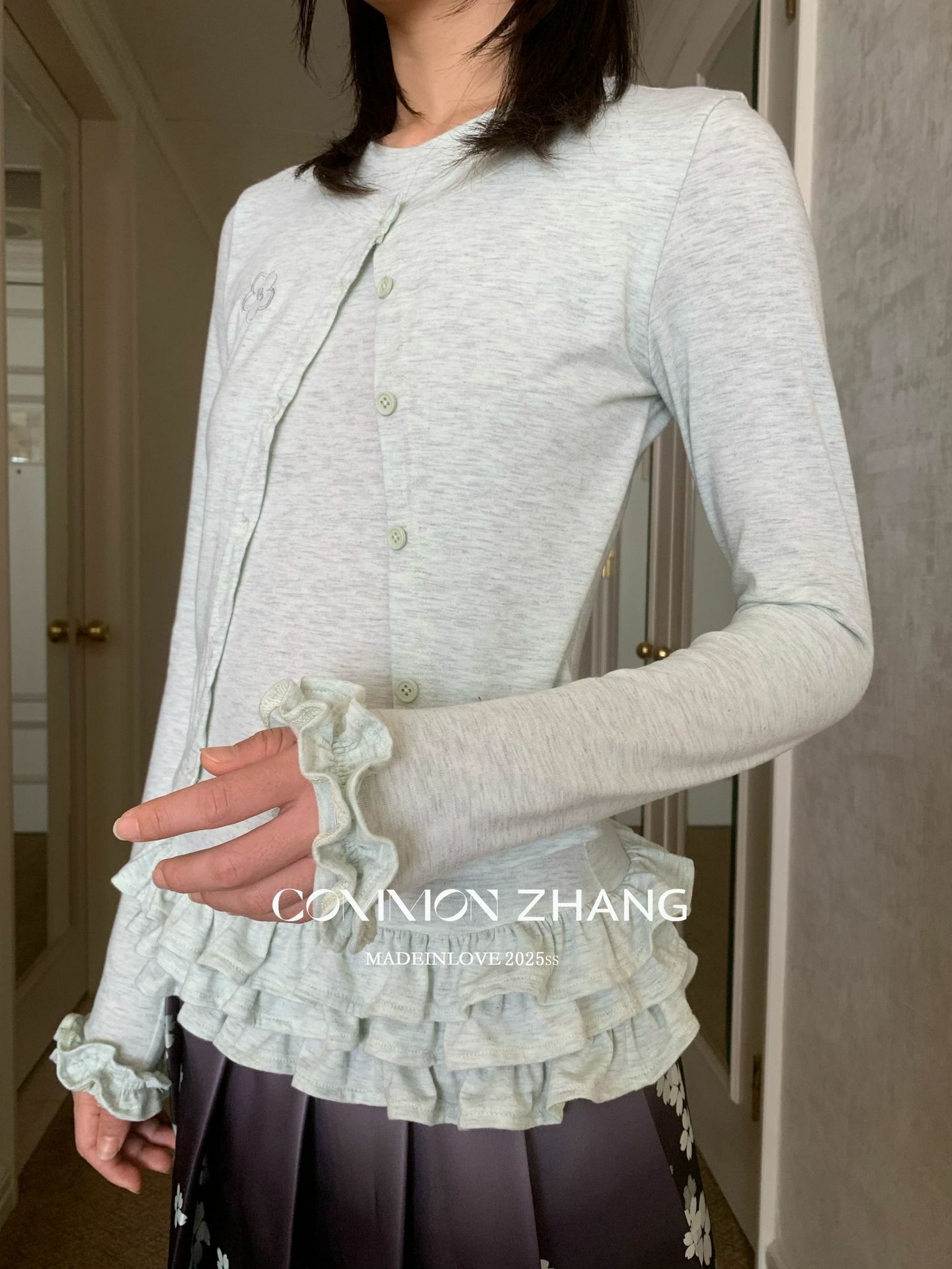 *o-ha-you*【FCZ103455】春季少女感減齡圓領花邊拼接背心配花瓣袖針織衫外套-3色-如有需要請先諮詢