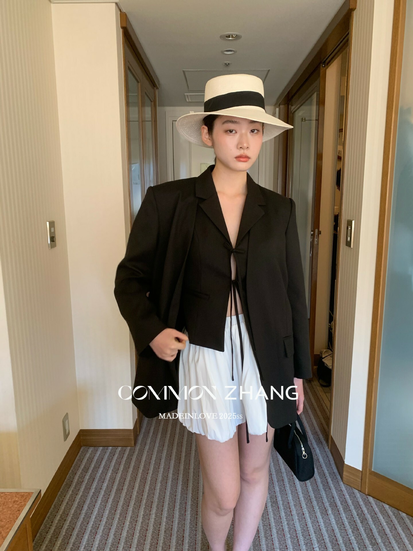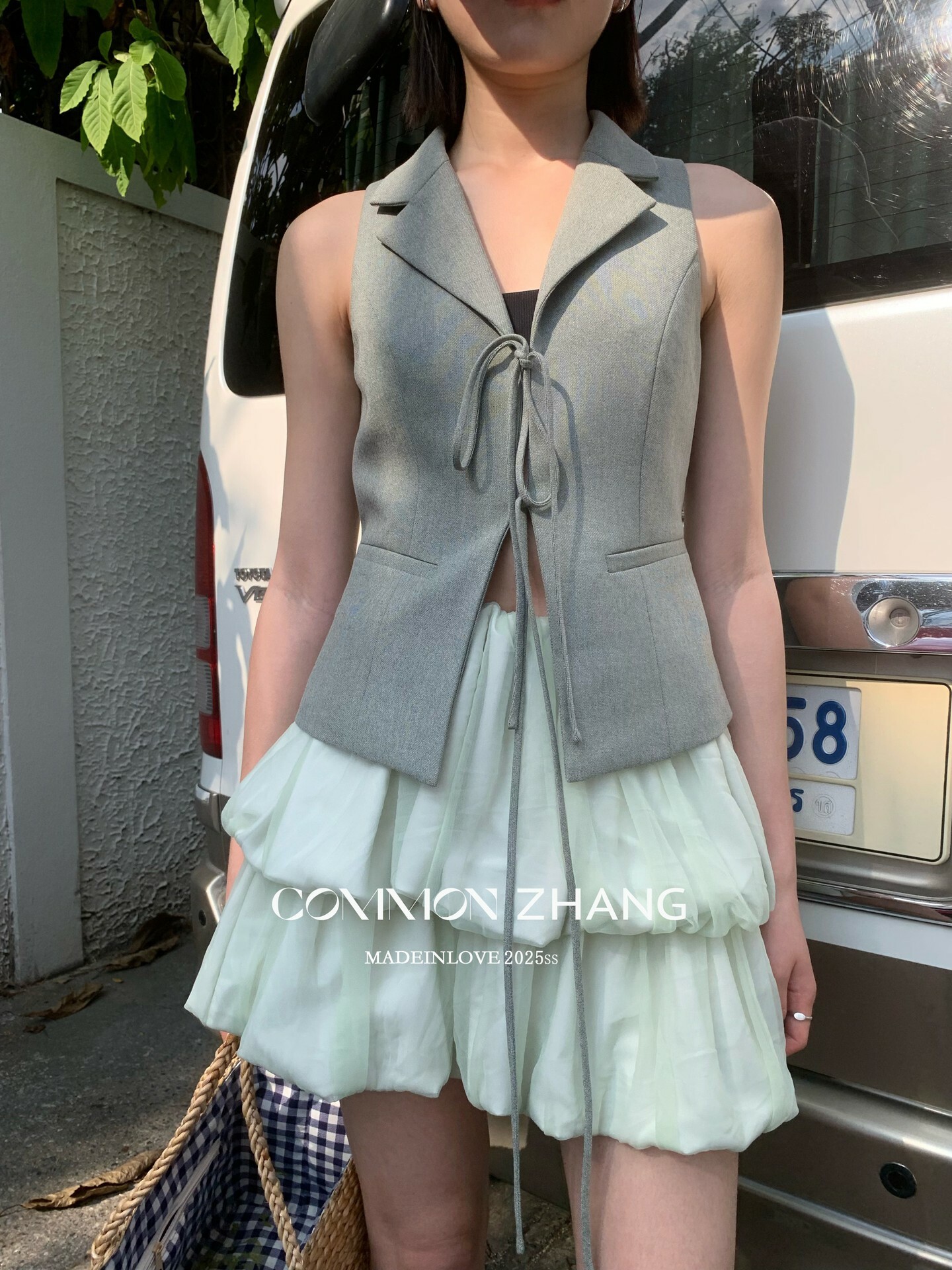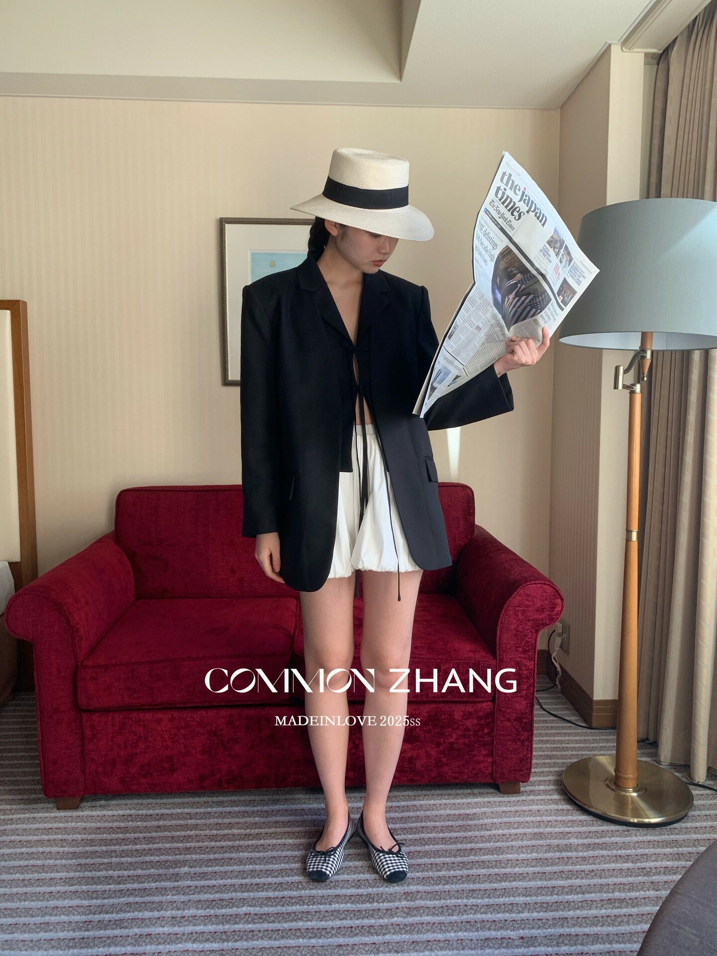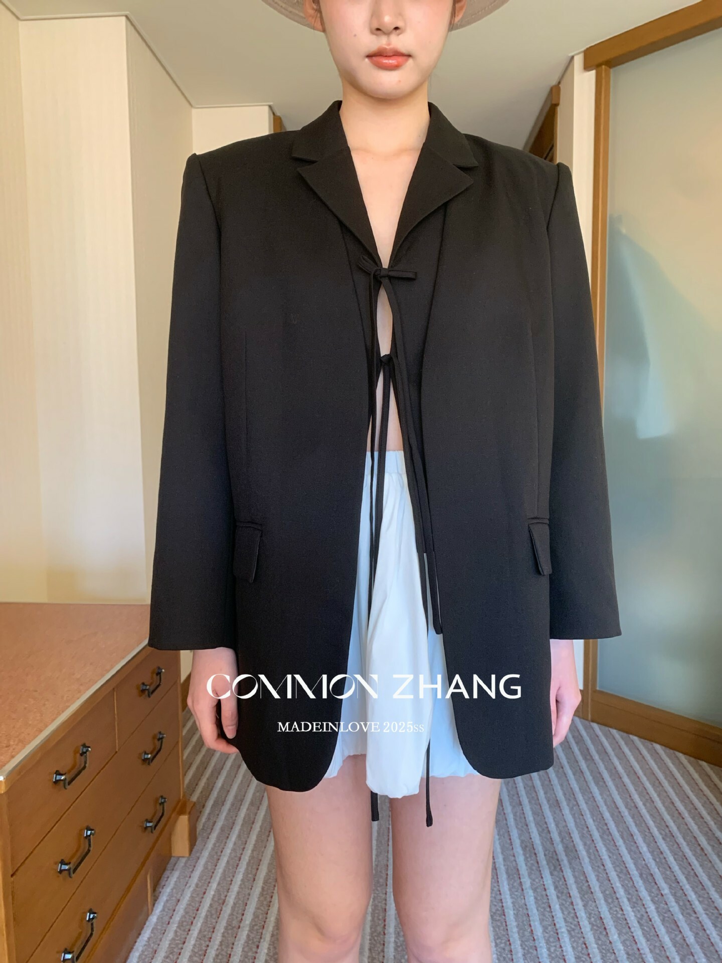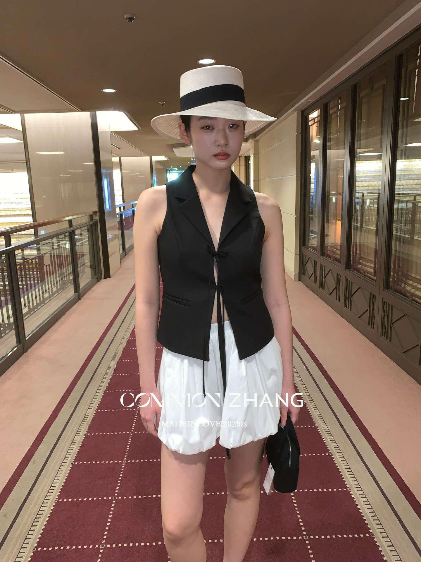 *o-ha-you*【FCZ104443】法式通勤時髦繫帶開襟衫馬甲背心純色寬鬆百搭套裝西裝外套套裝-2色-如有需要請先諮詢