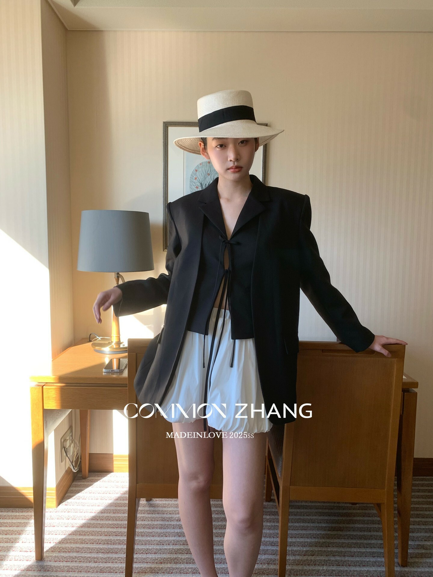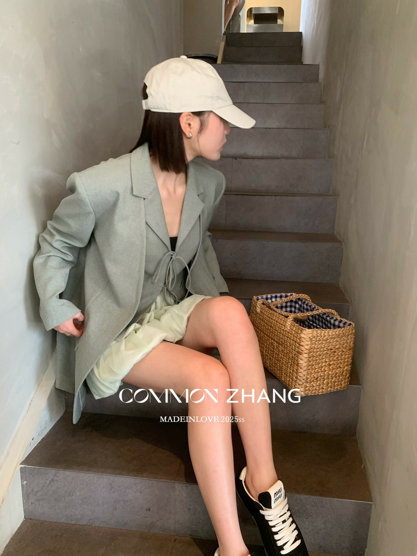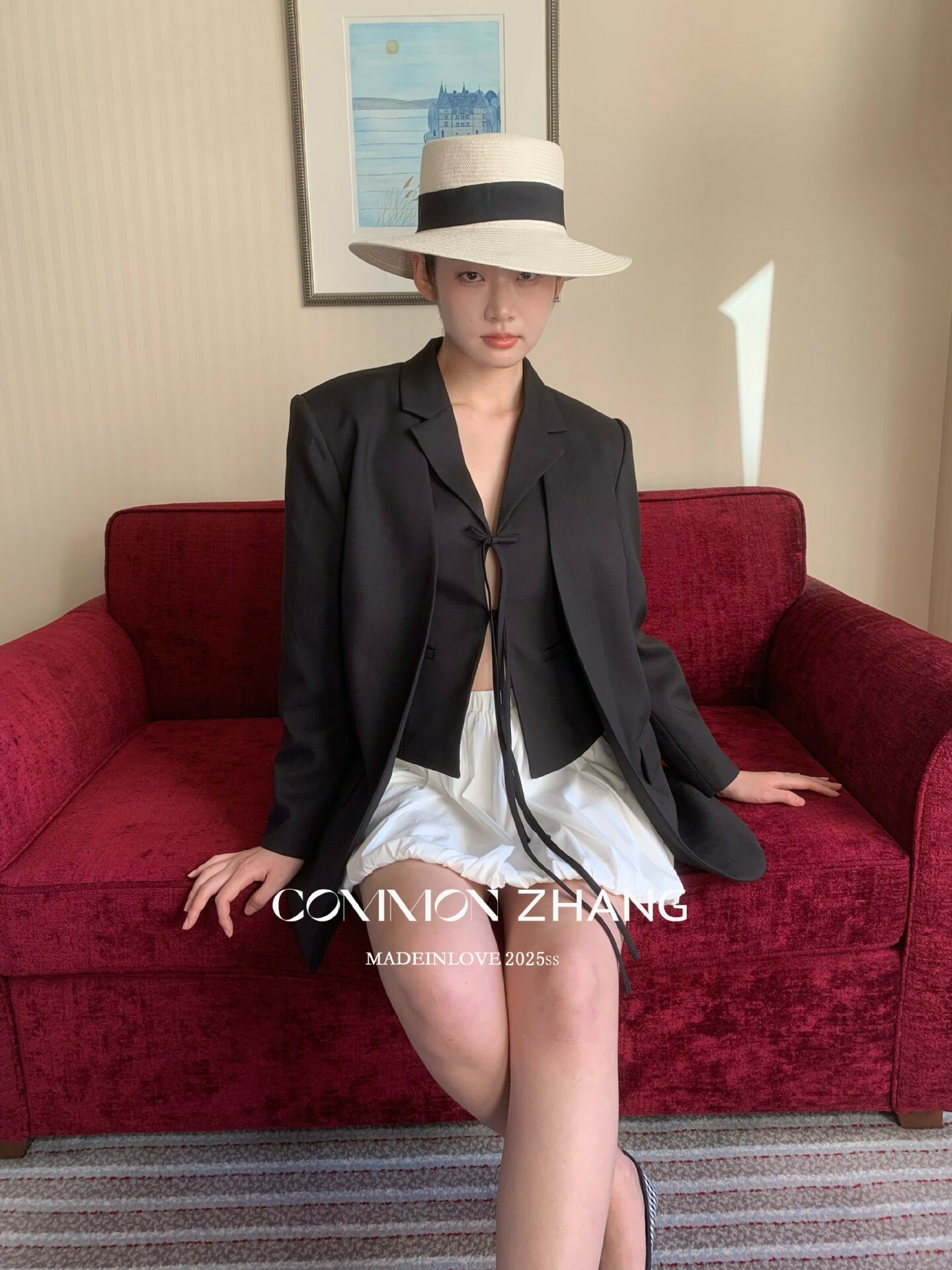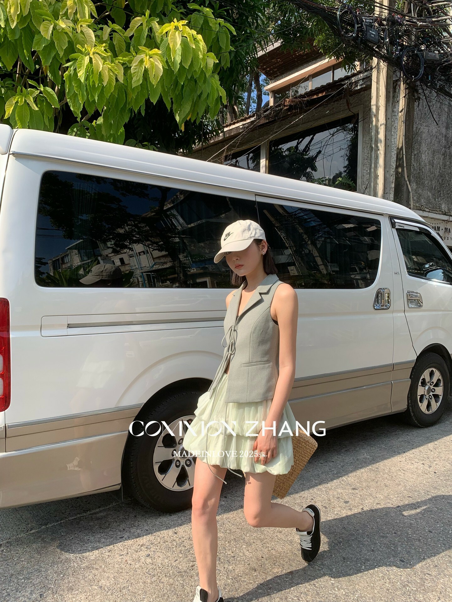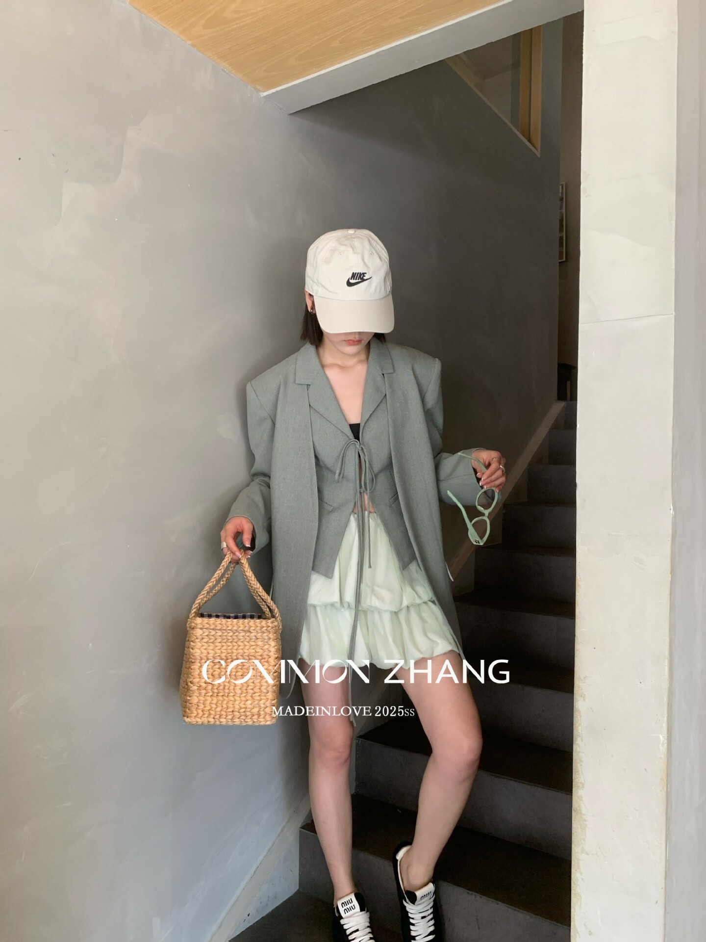 *o-ha-you*【FCZ104443】法式通勤時髦繫帶開襟衫馬甲背心純色寬鬆百搭套裝西裝外套套裝-2色-如有需要請先諮詢