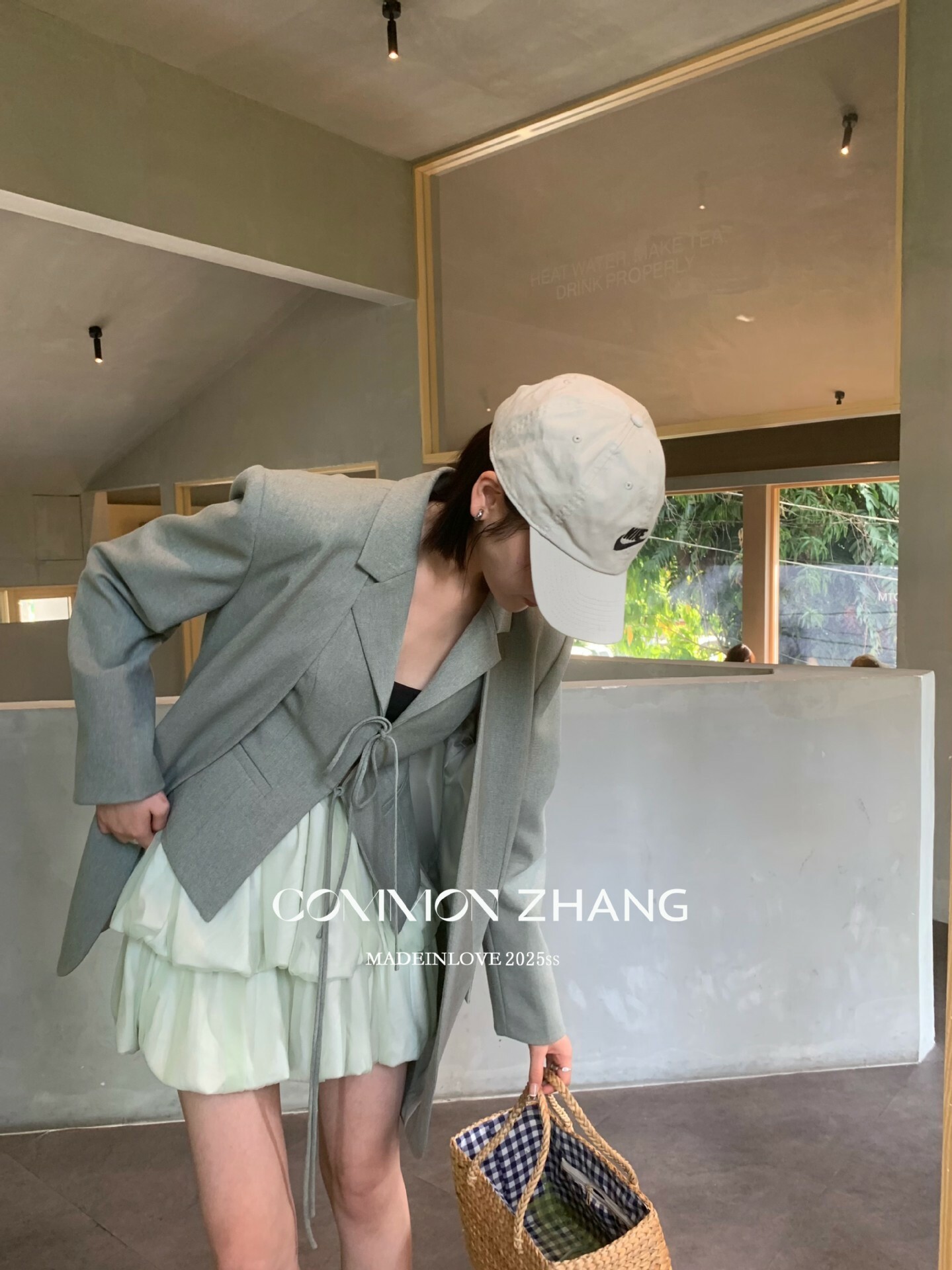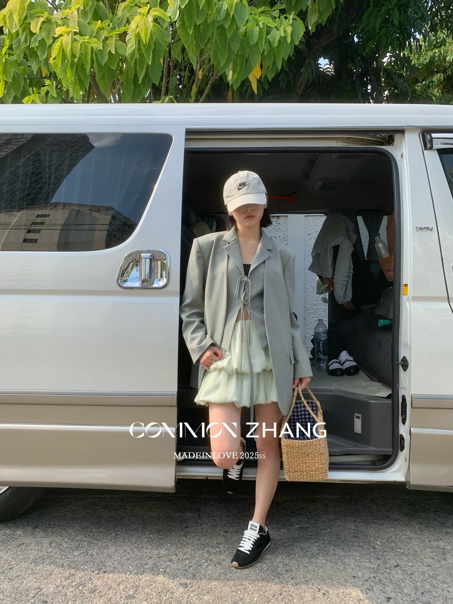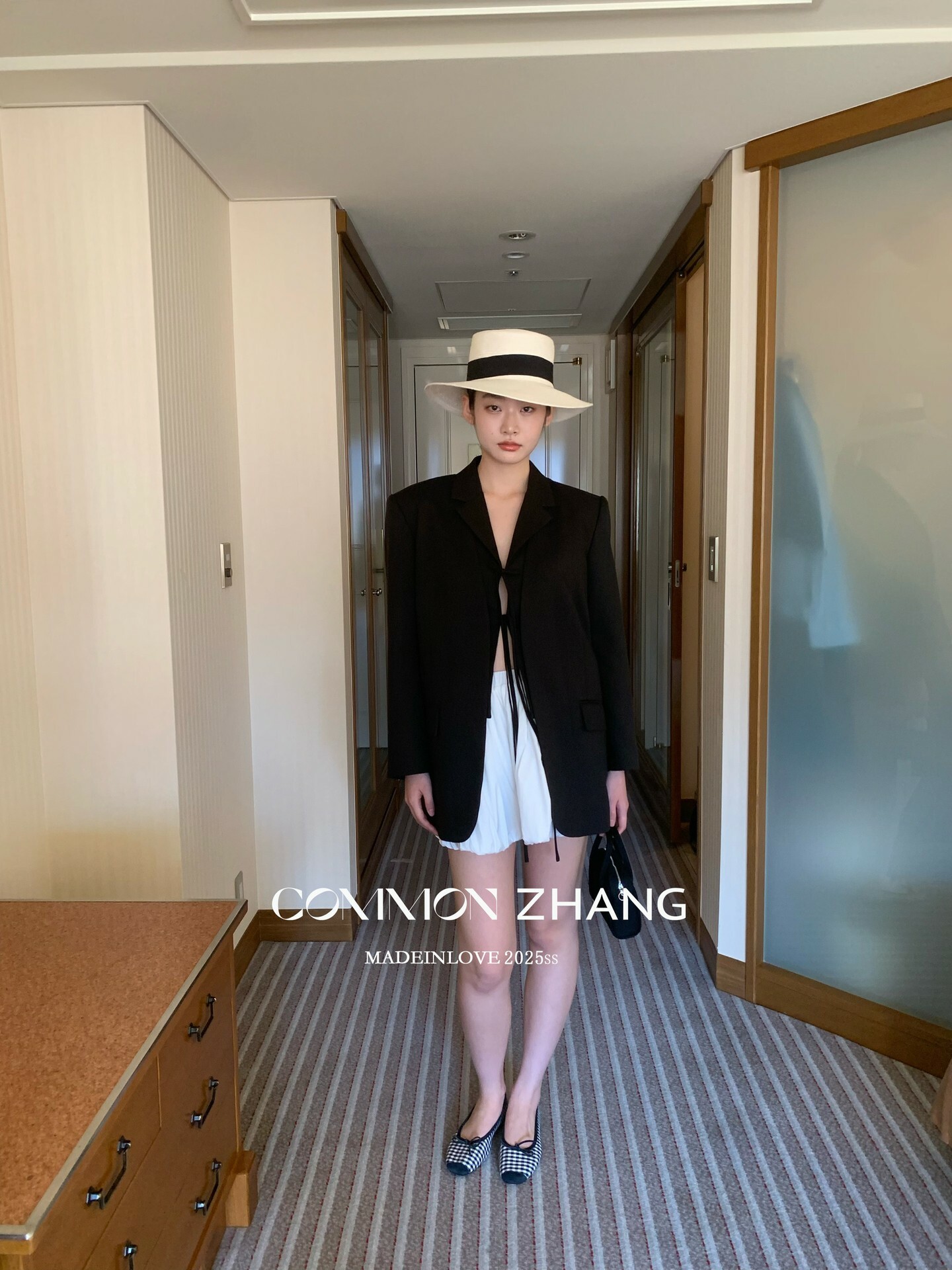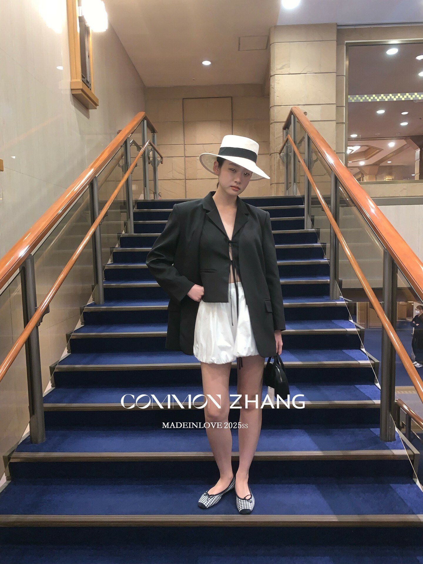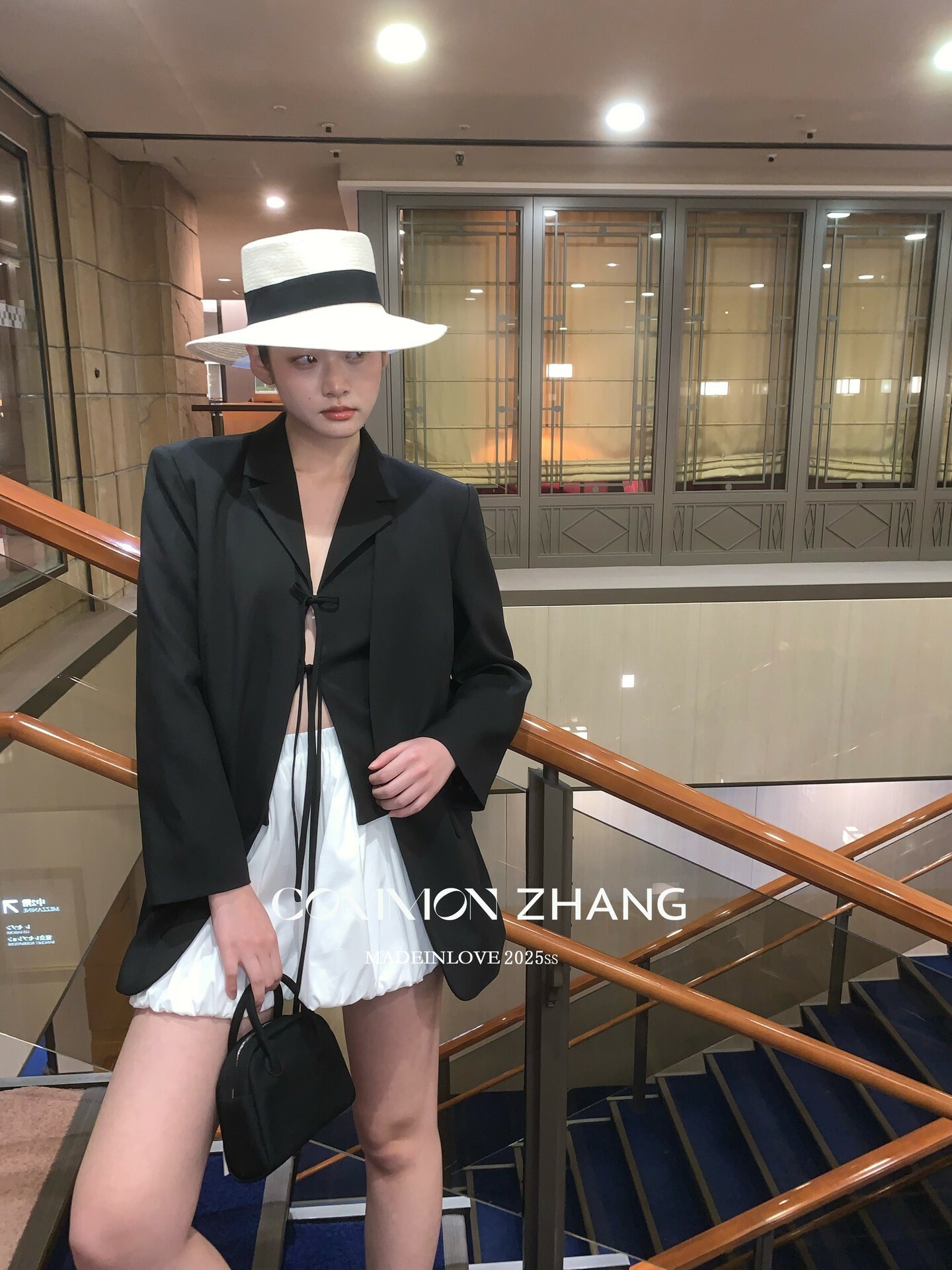 *o-ha-you*【FCZ104443】法式通勤時髦繫帶開襟衫馬甲背心純色寬鬆百搭套裝西裝外套套裝-2色-如有需要請先諮詢