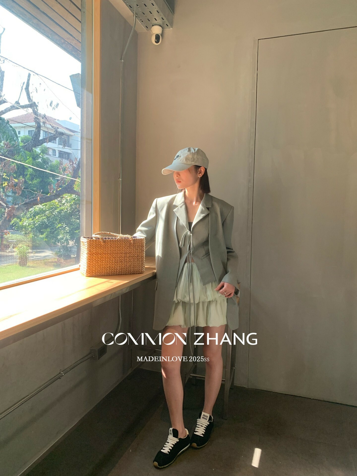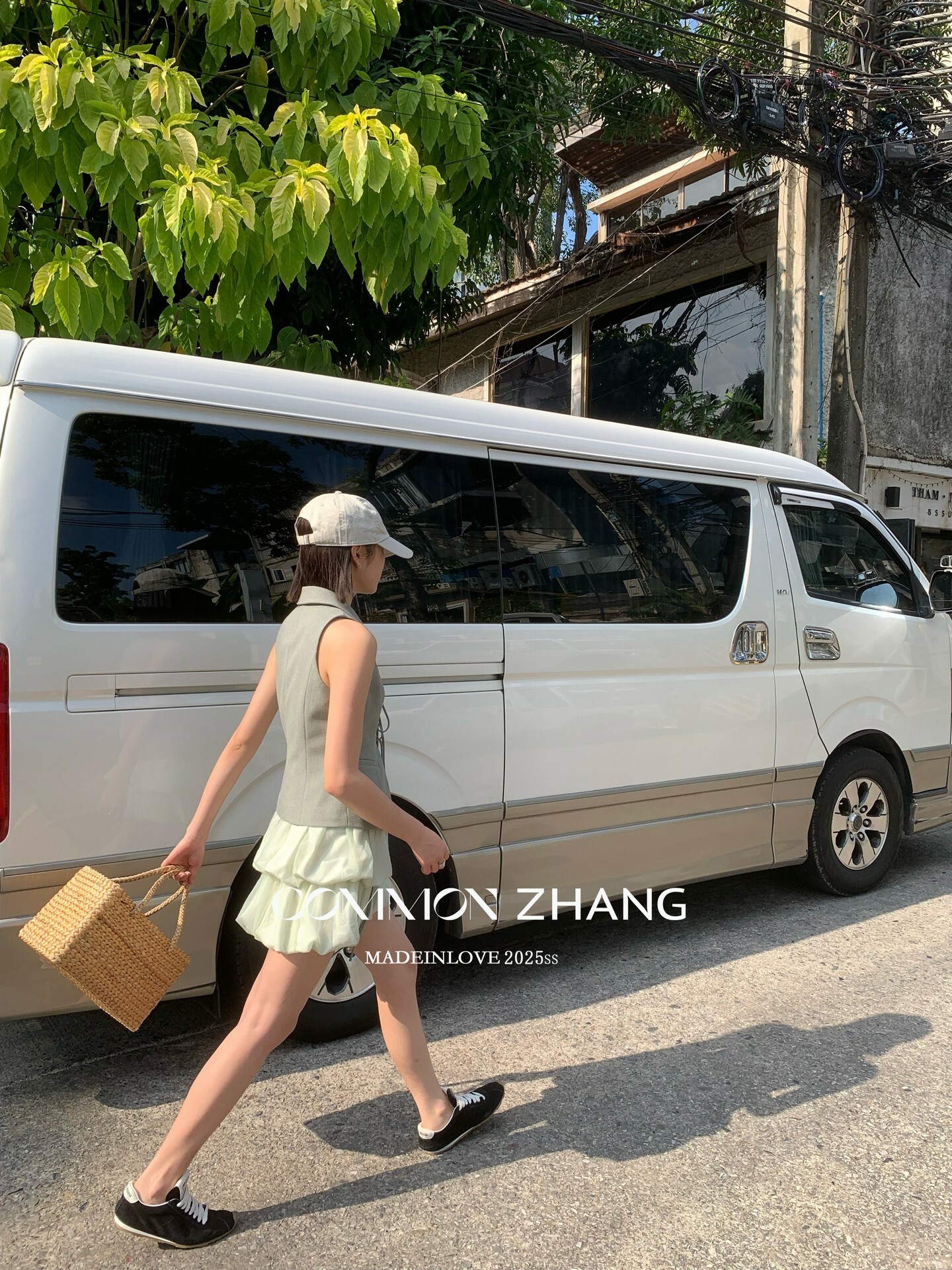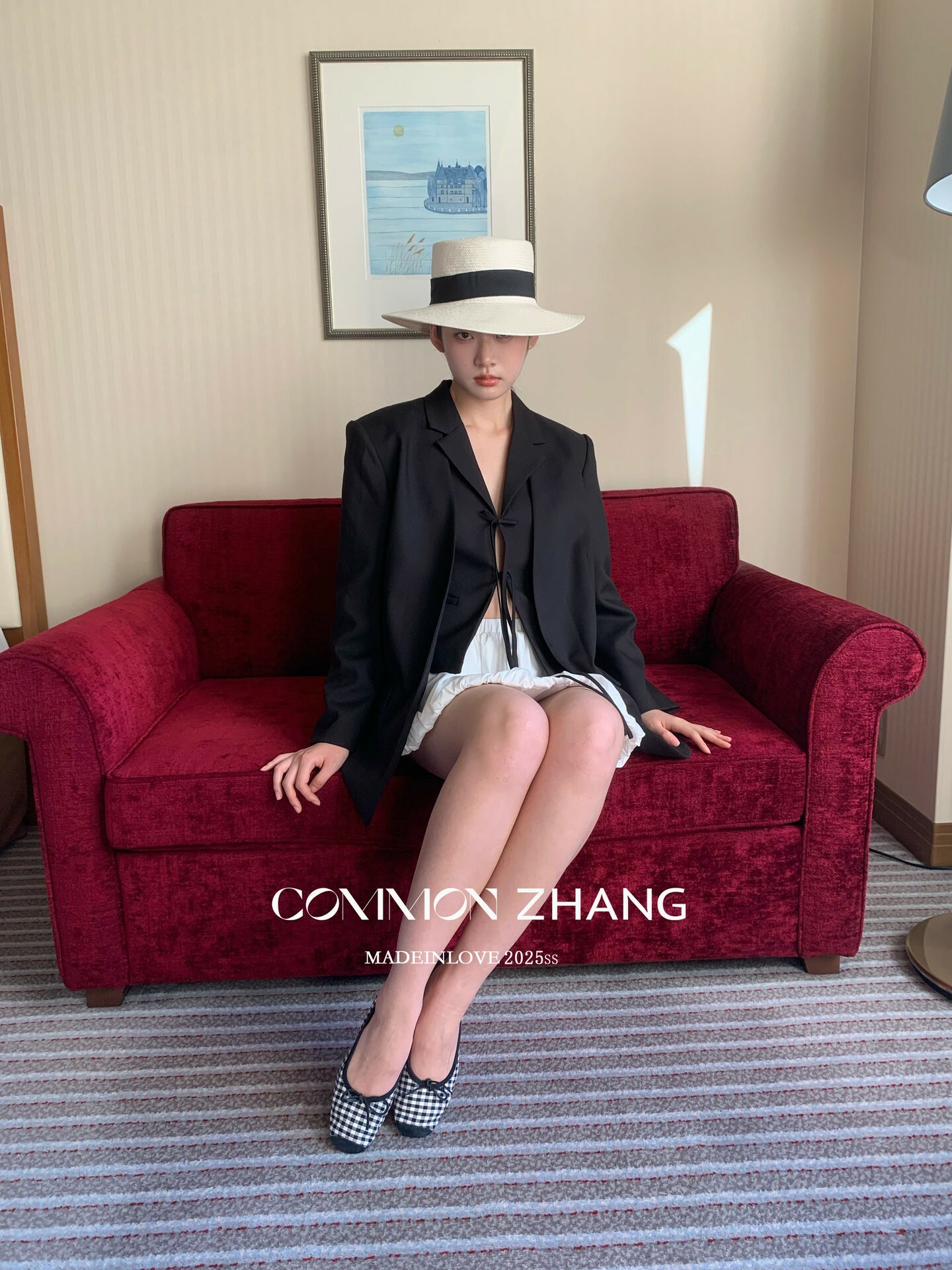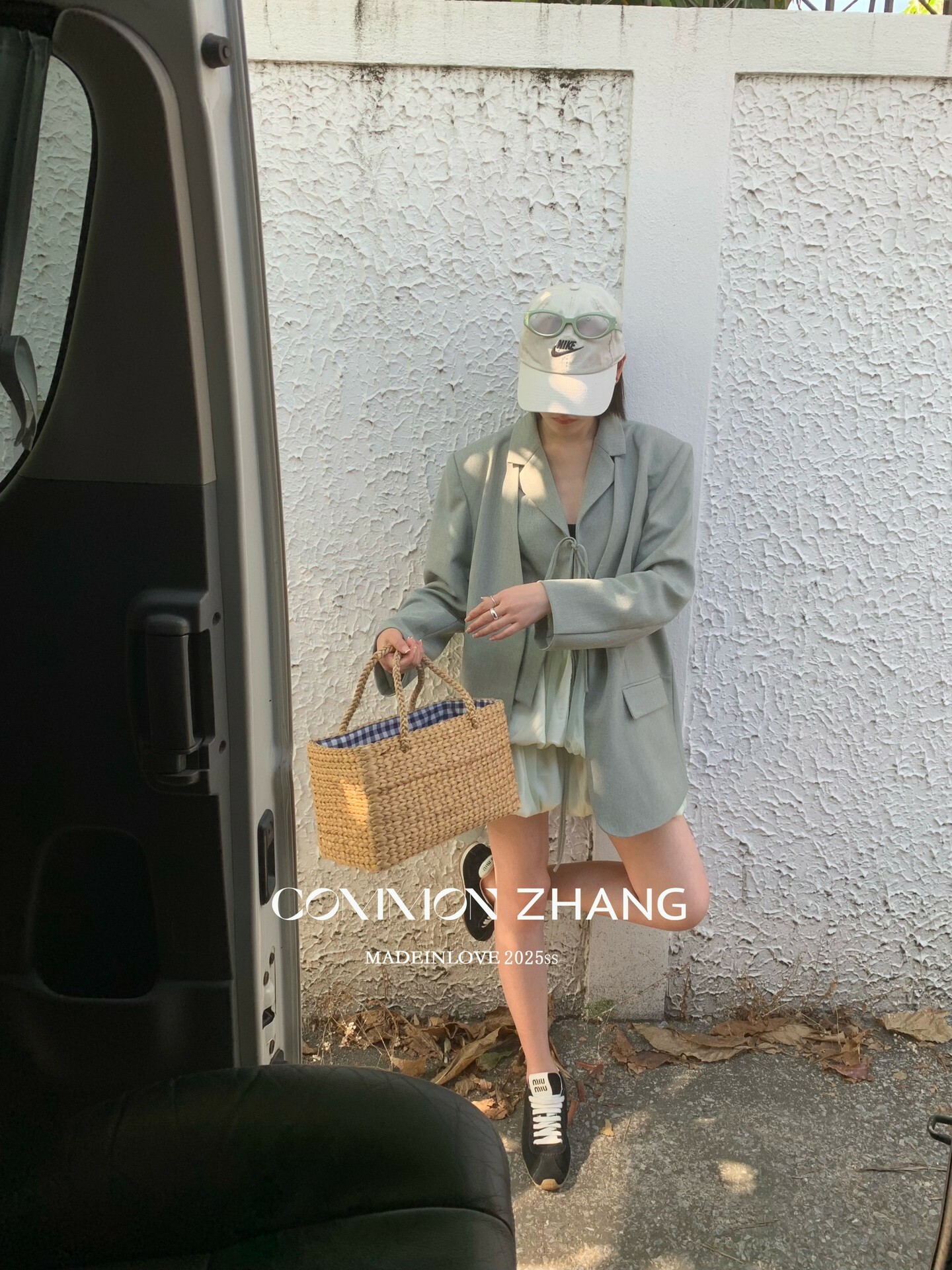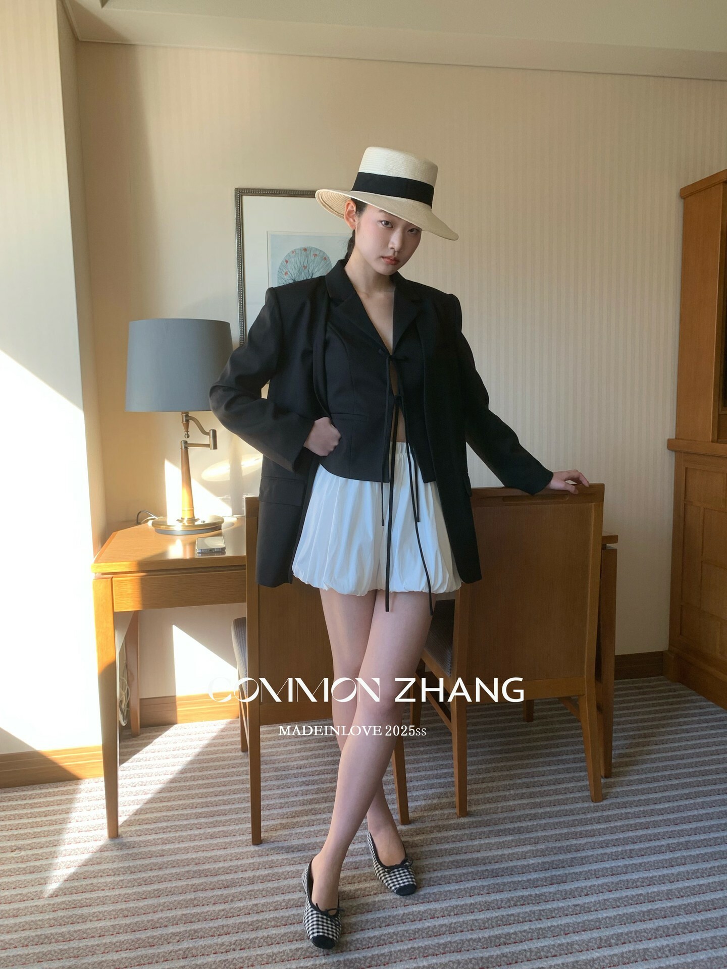 *o-ha-you*【FCZ104443】法式通勤時髦繫帶開襟衫馬甲背心純色寬鬆百搭套裝西裝外套套裝-2色-如有需要請先諮詢