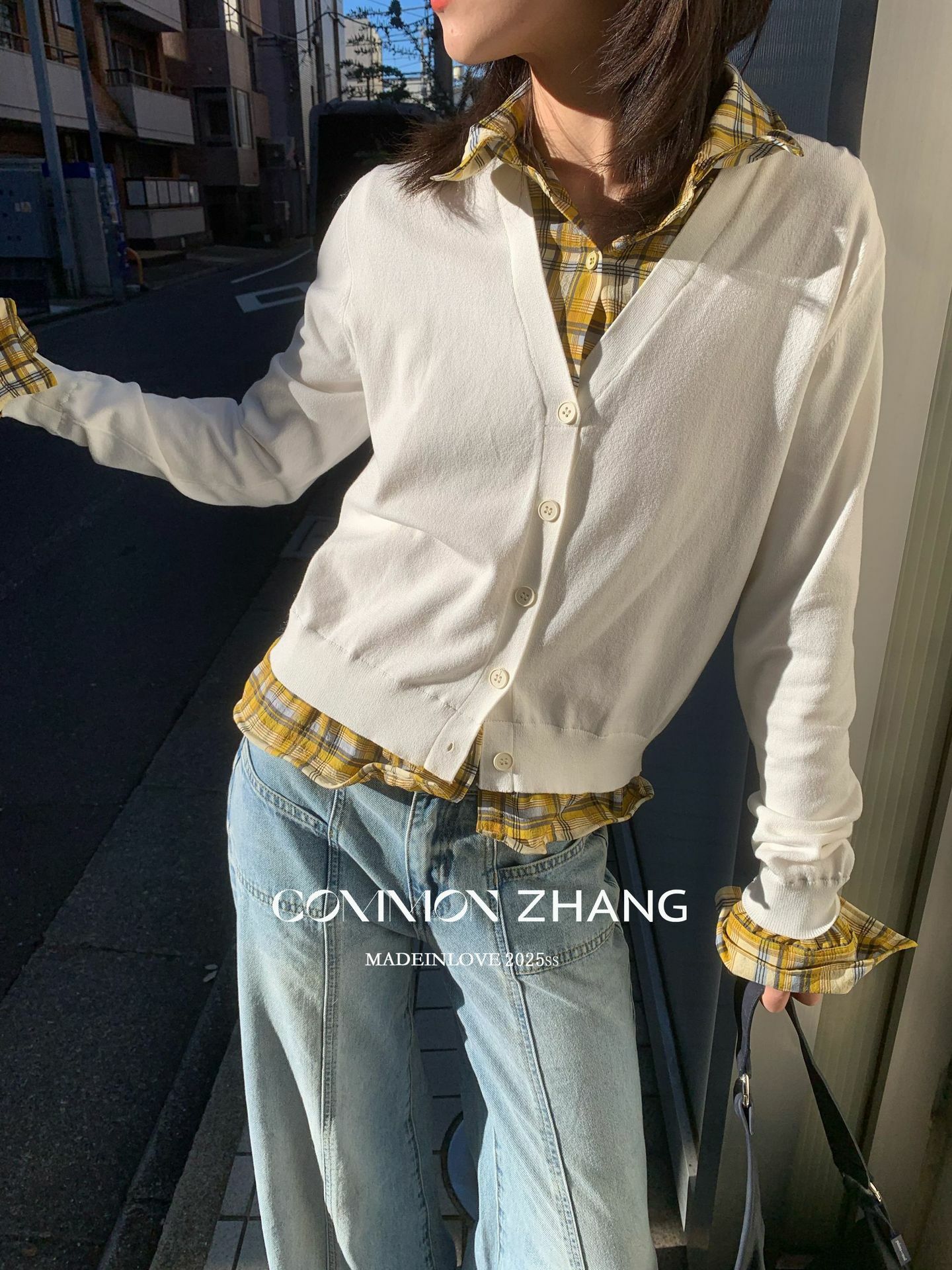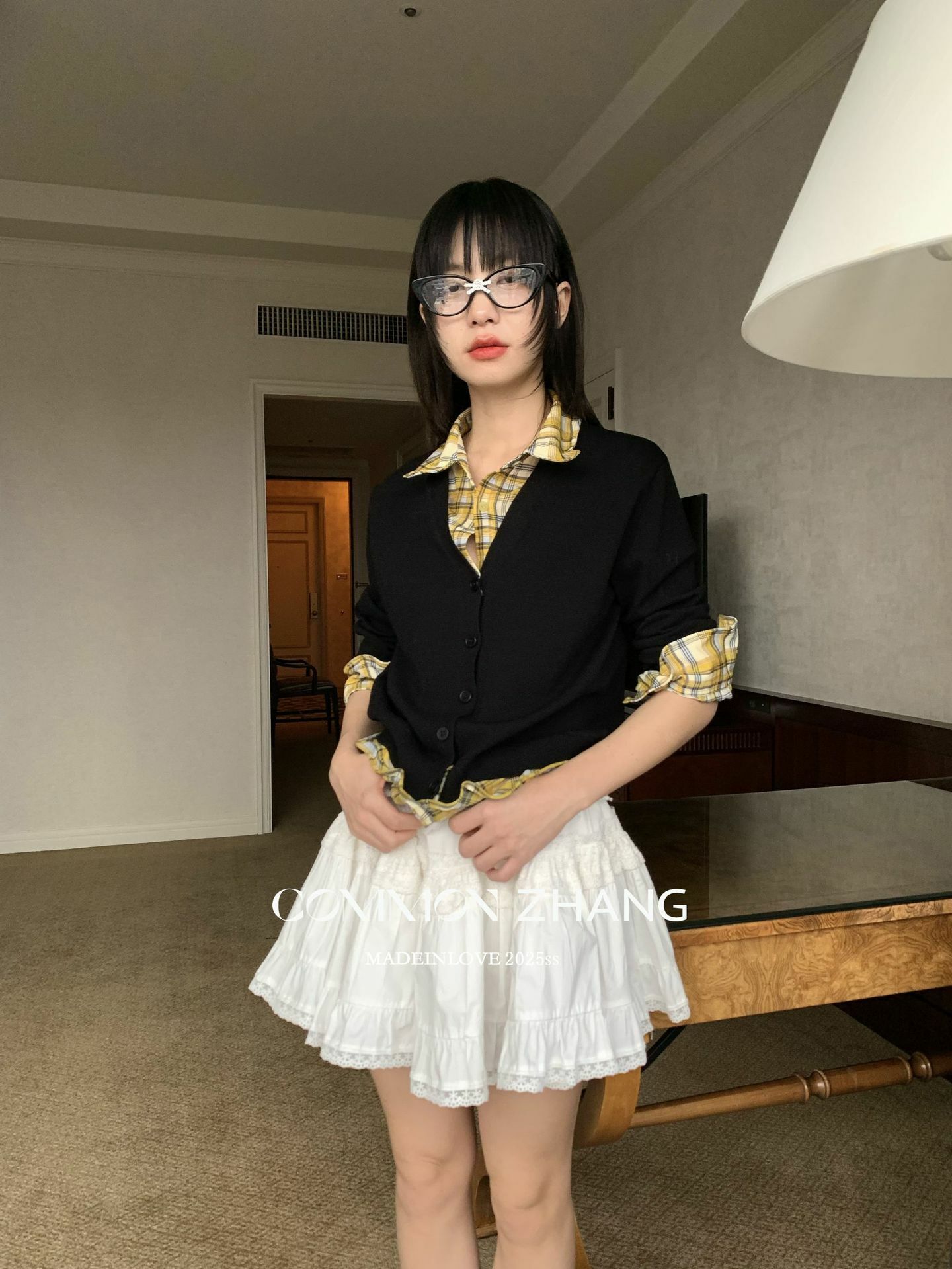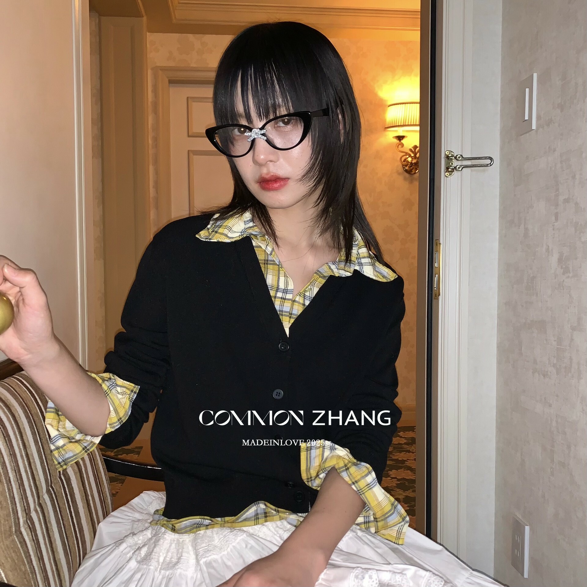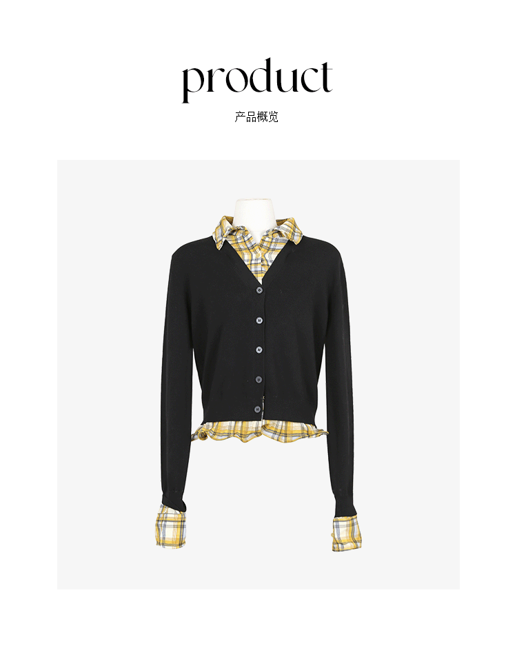 *o-ha-you*【FCZ105147】復古通勤休閒格紋襯衫領拼接針織衫假兩件式-2色-如有需要請先諮詢