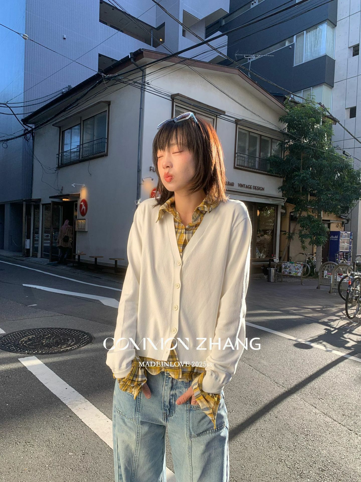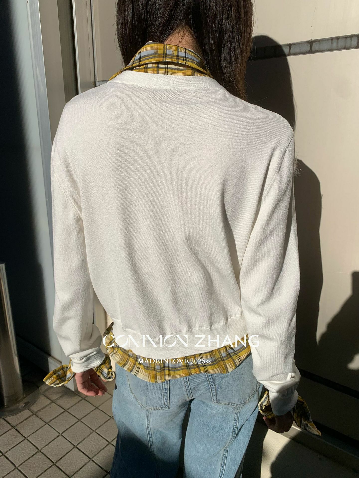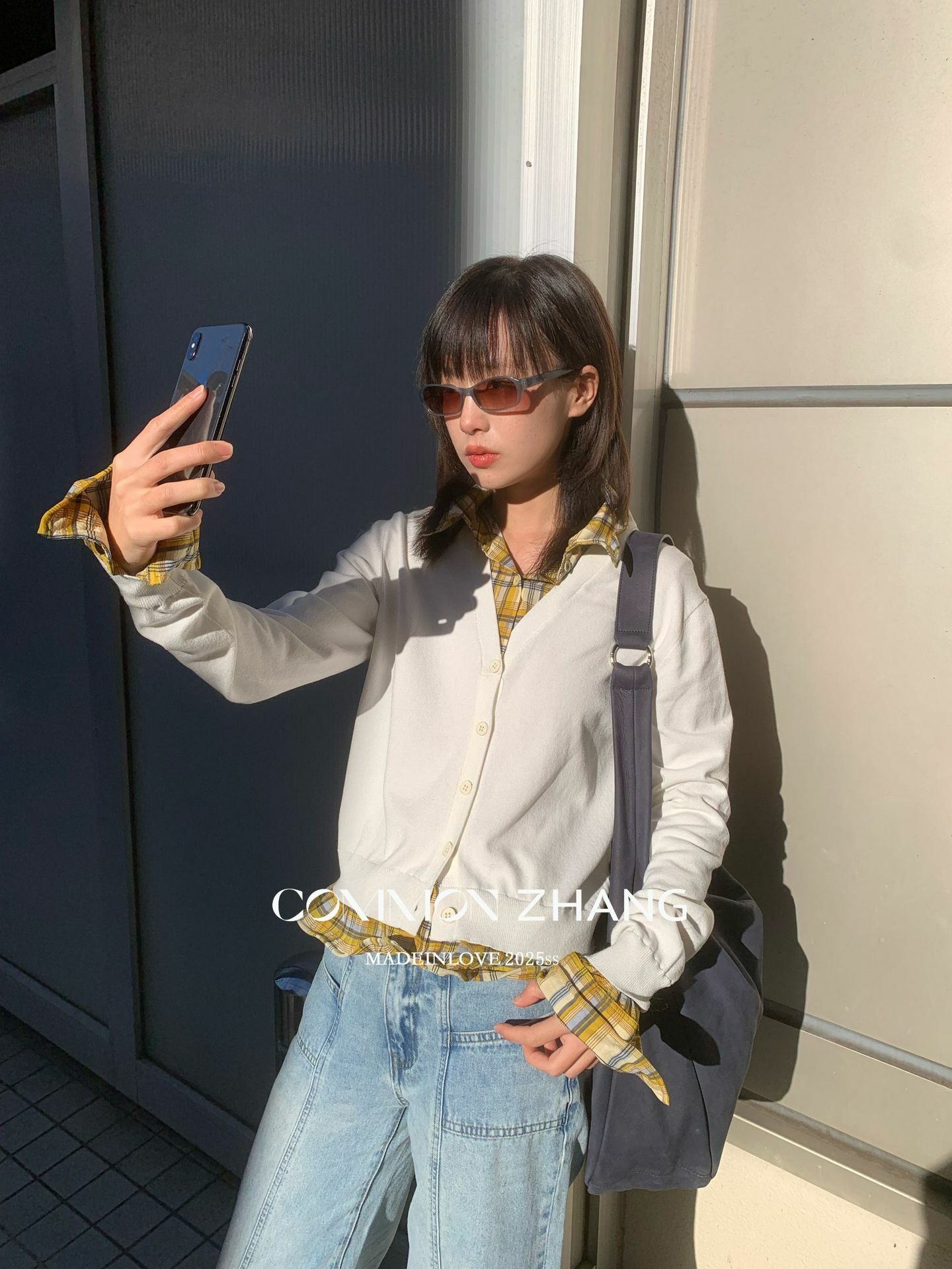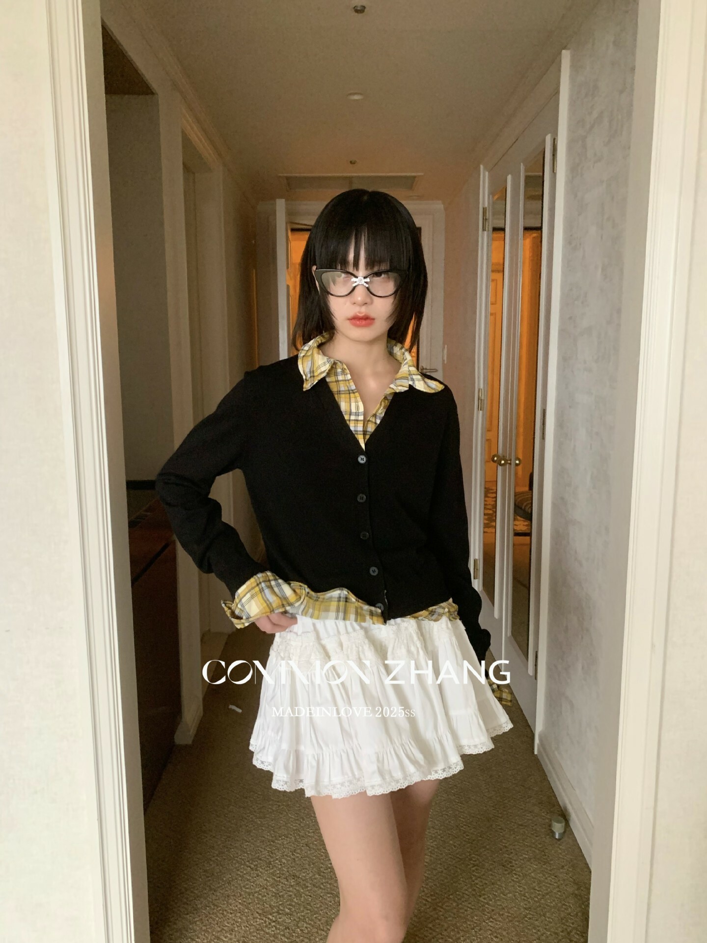 *o-ha-you*【FCZ105147】復古通勤休閒格紋襯衫領拼接針織衫假兩件式-2色-如有需要請先諮詢