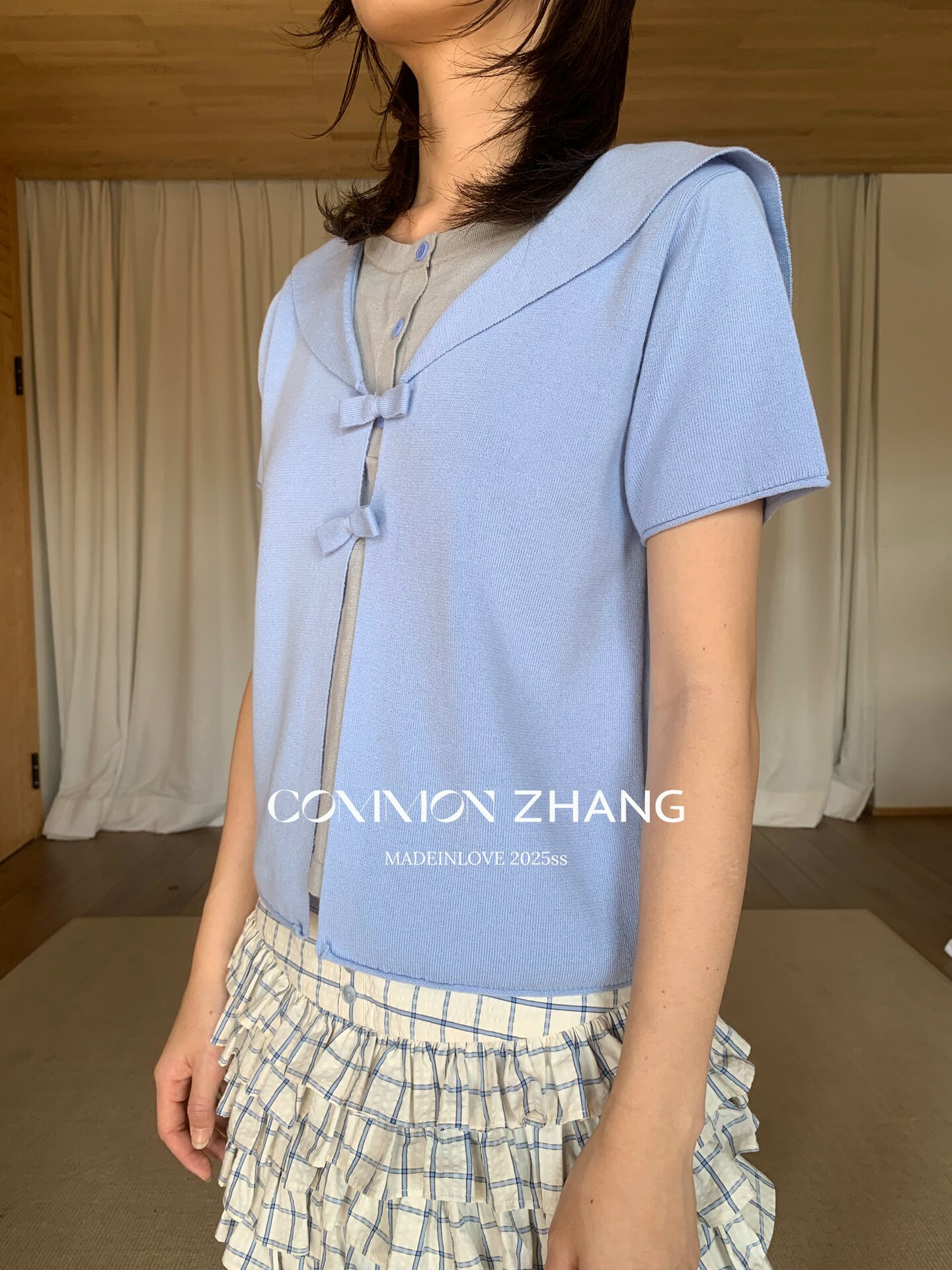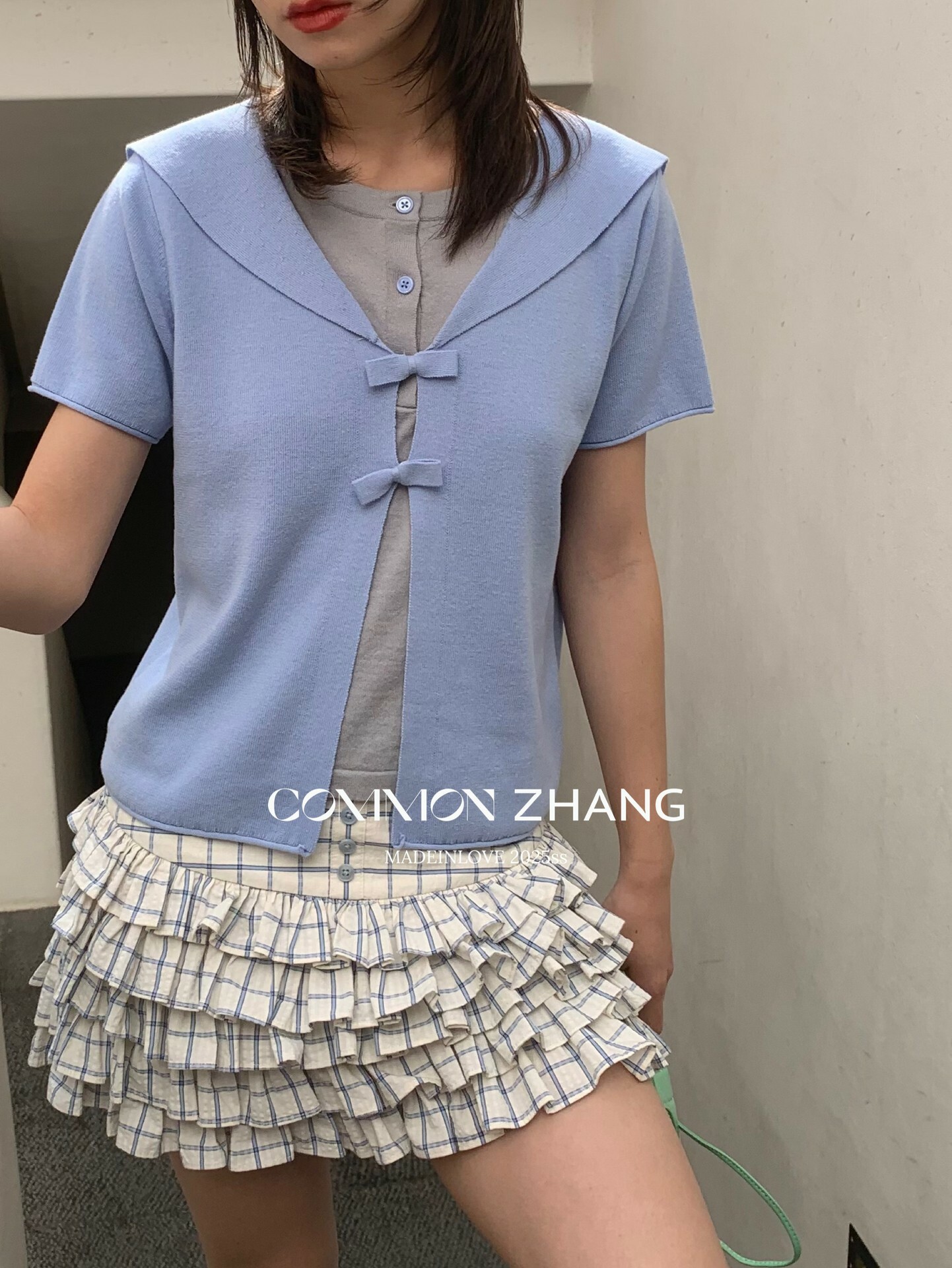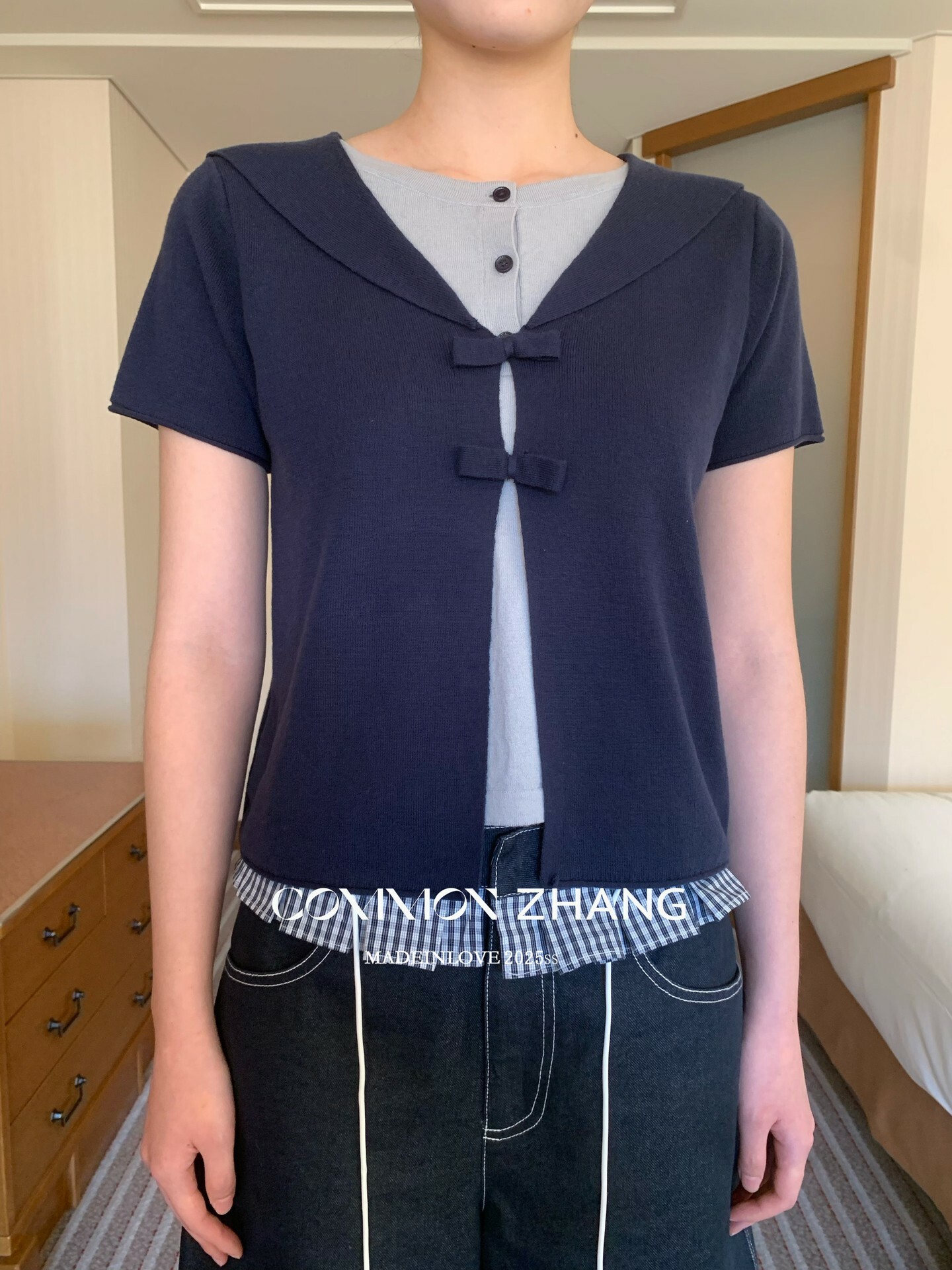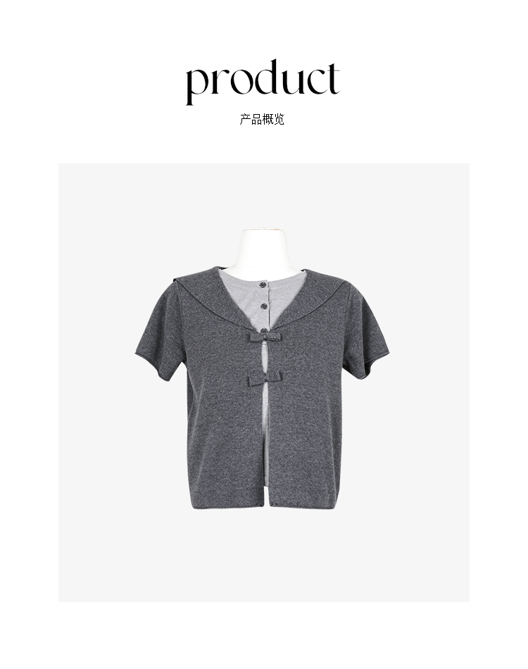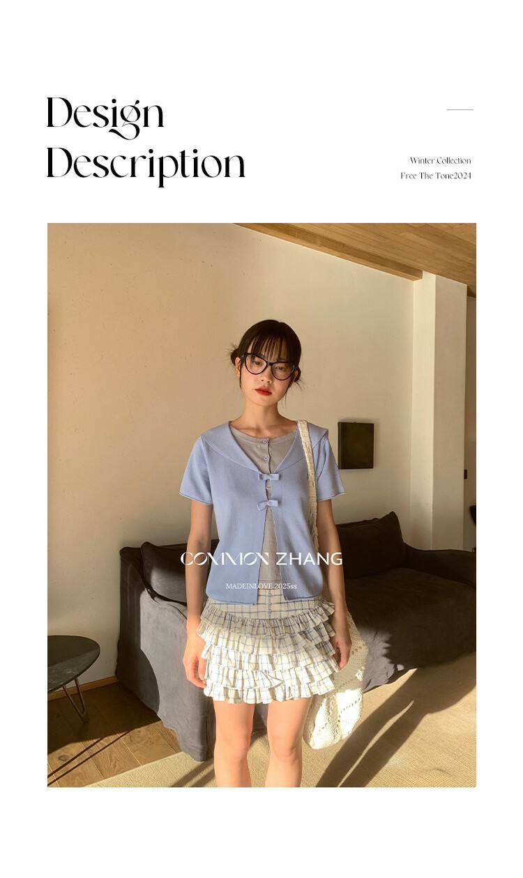 *o-ha-you*【FCZ105317】春季韓風少女蝴蝶結設計感圓領短袖假兩件針織衫-3色