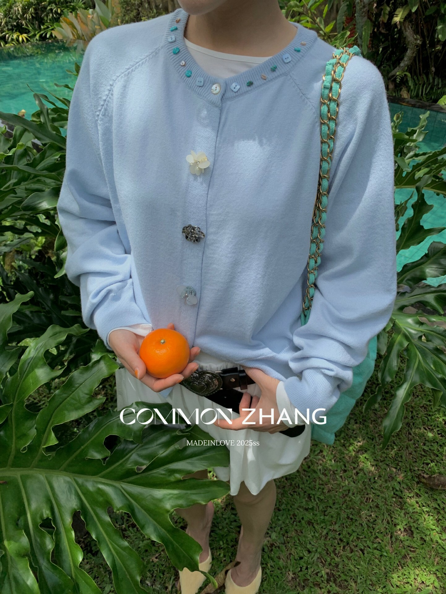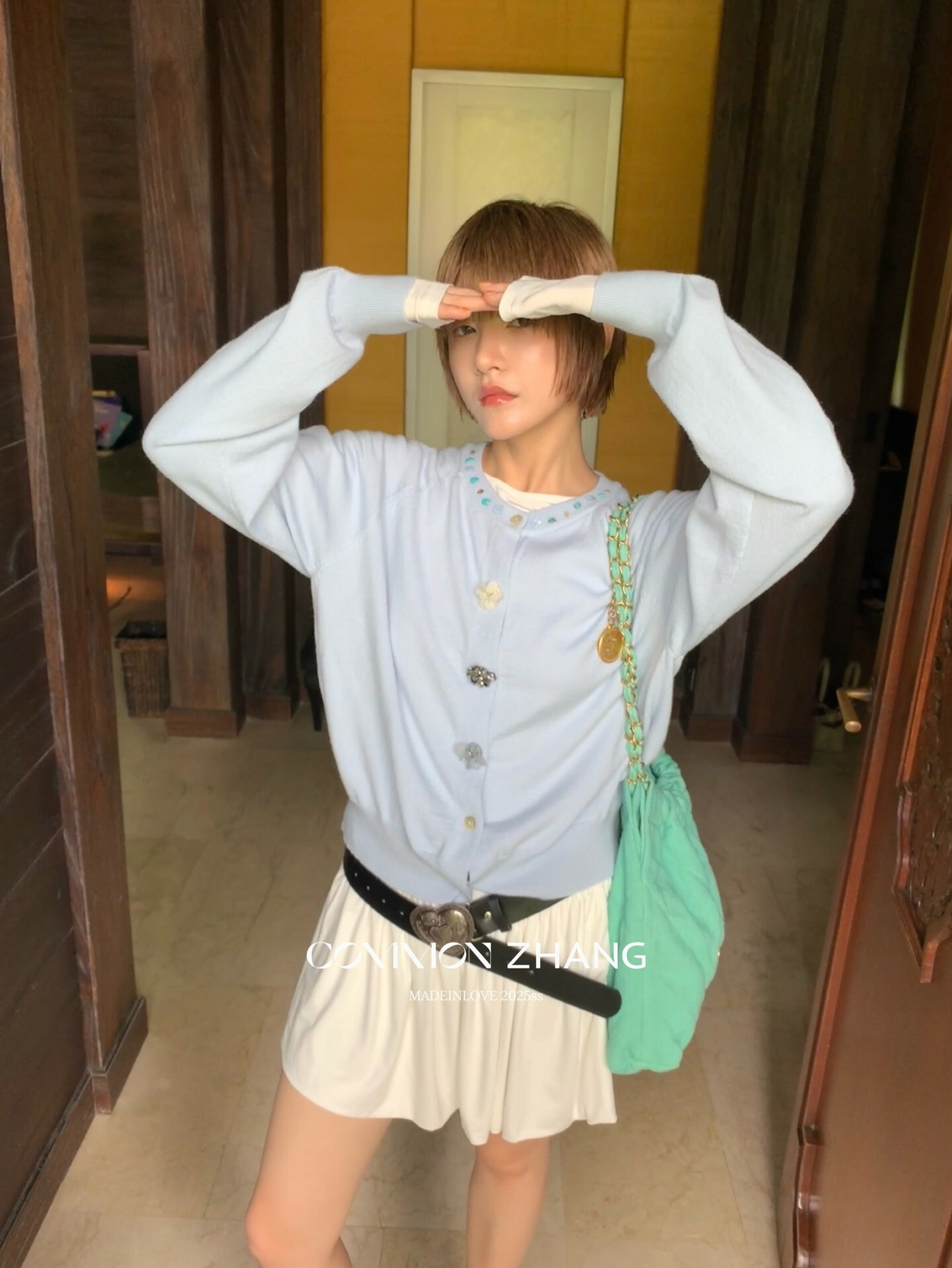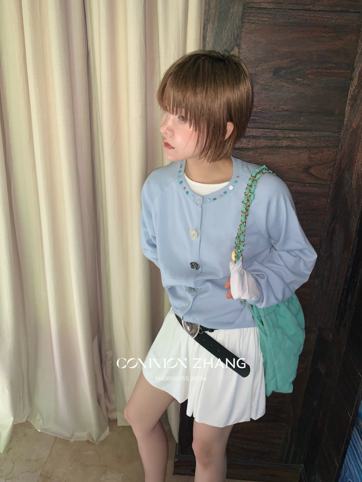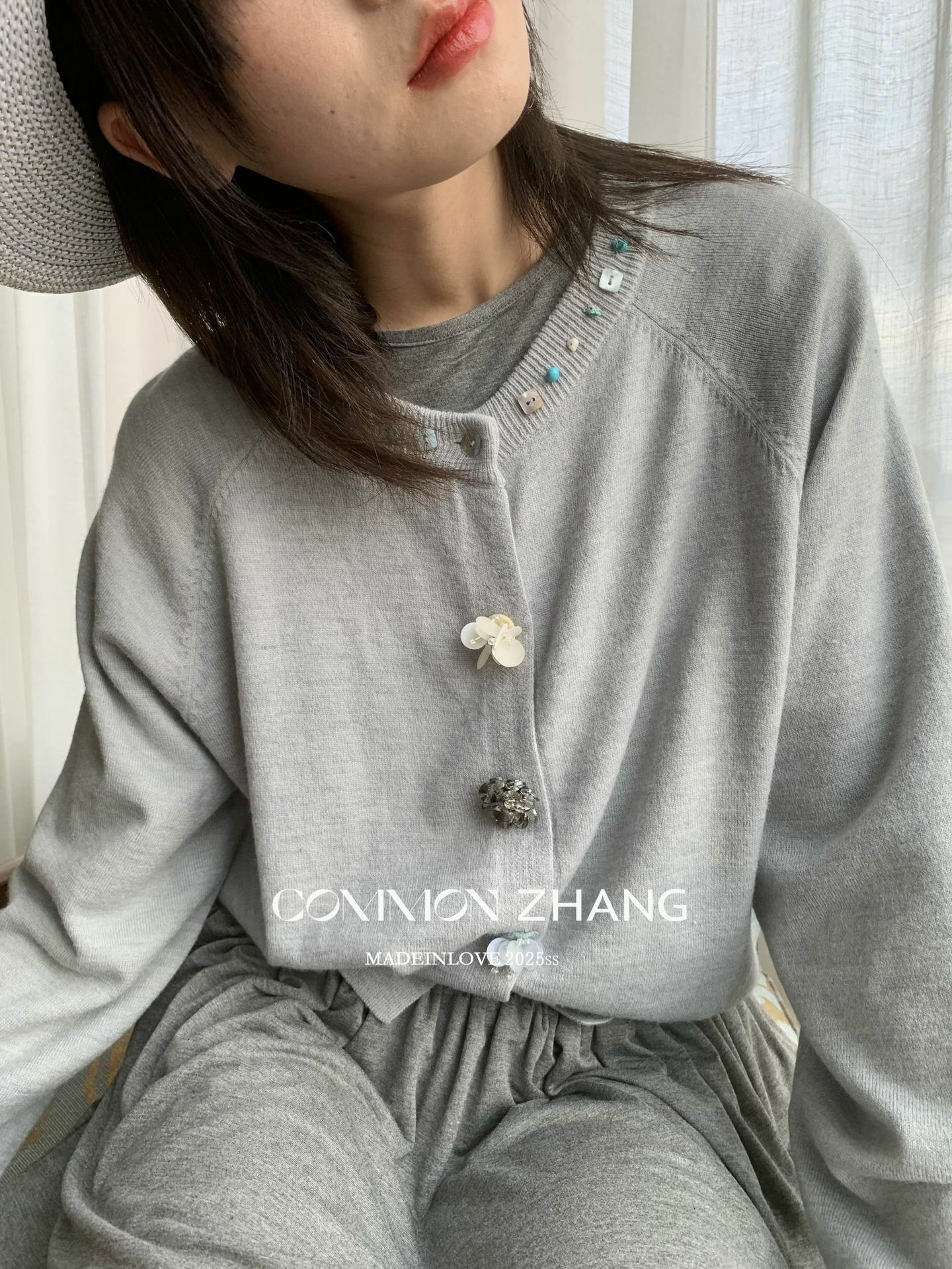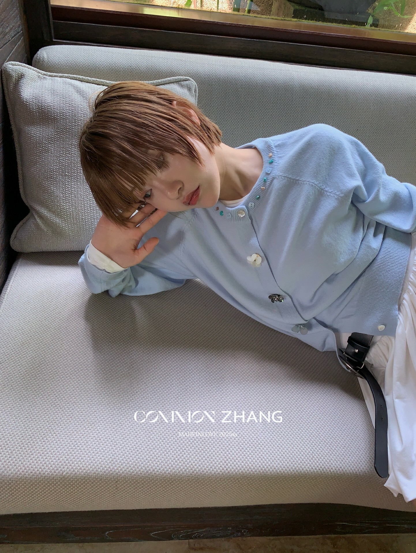 *o-ha-you*【FCZ105530】春季小眾減齡彩色貝殼扣拼接圓領開襟衫純色針織衫-4色-如有需要請先諮詢