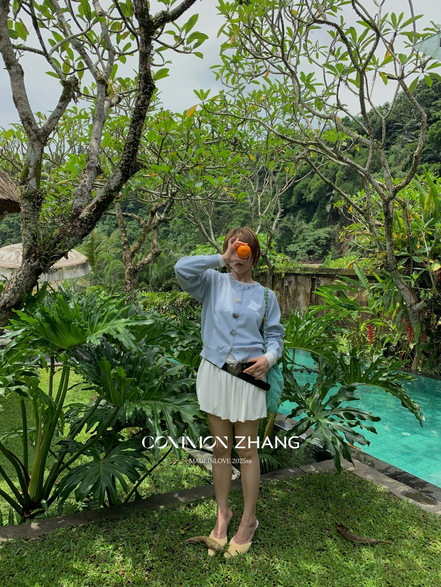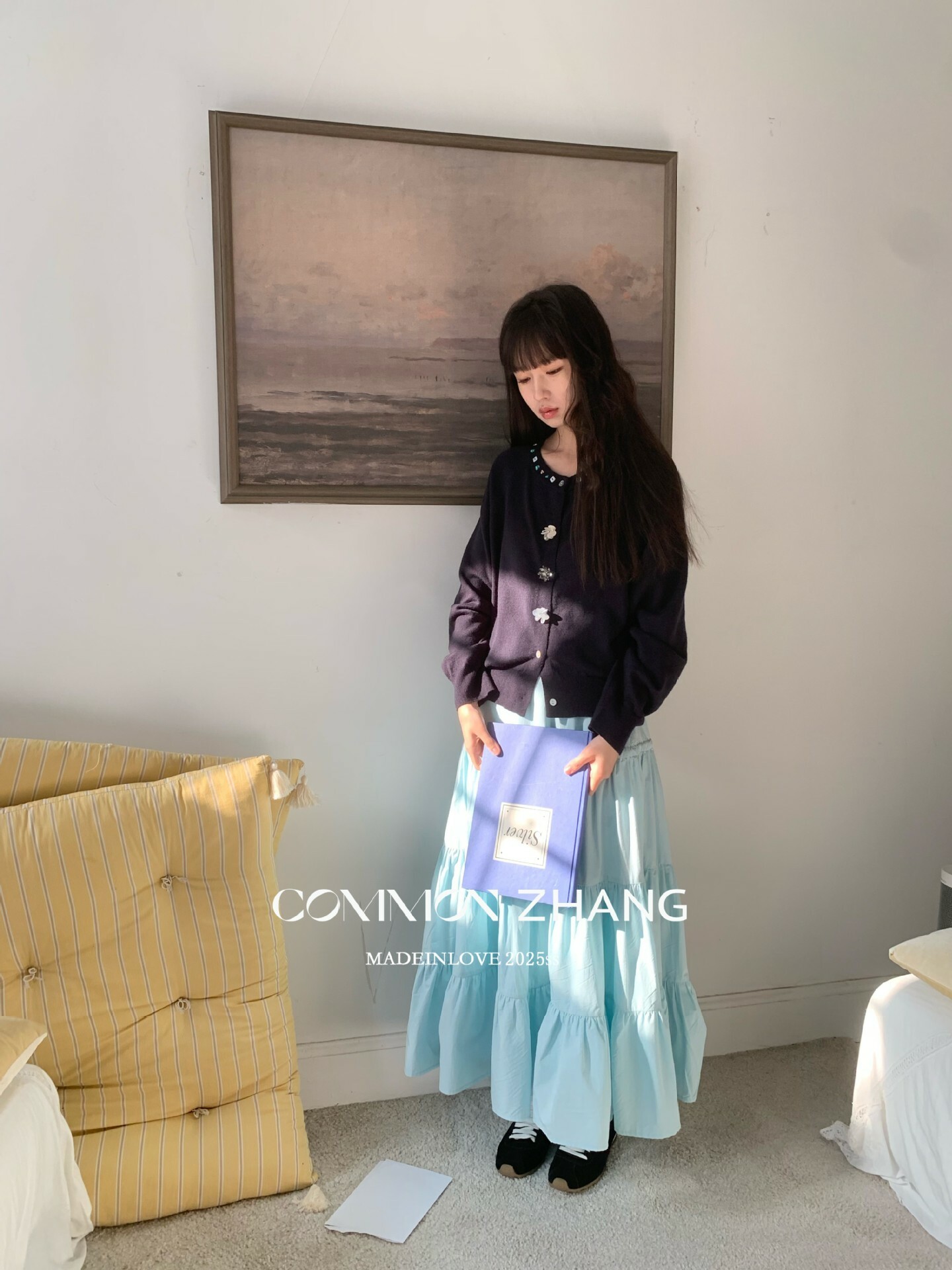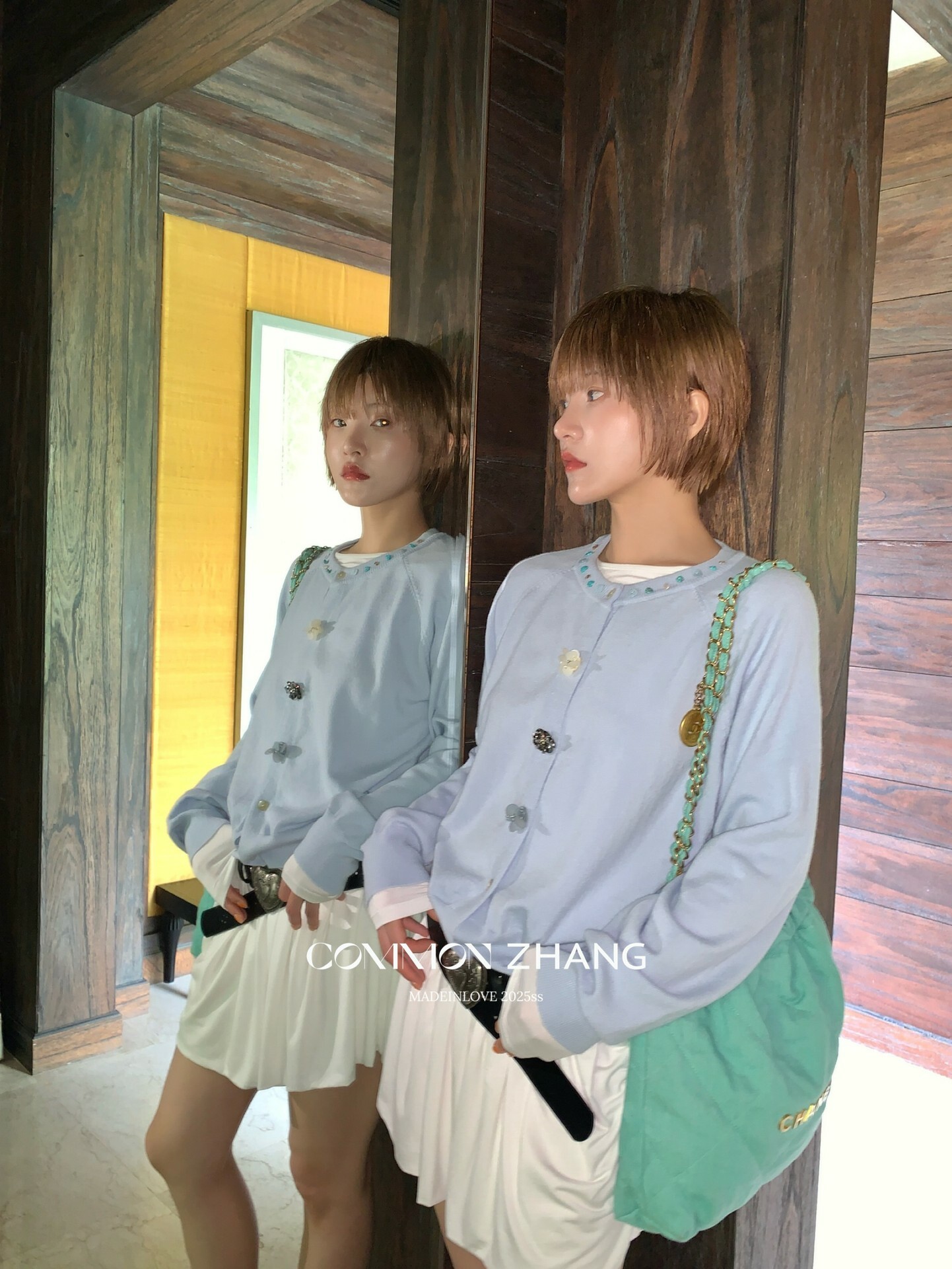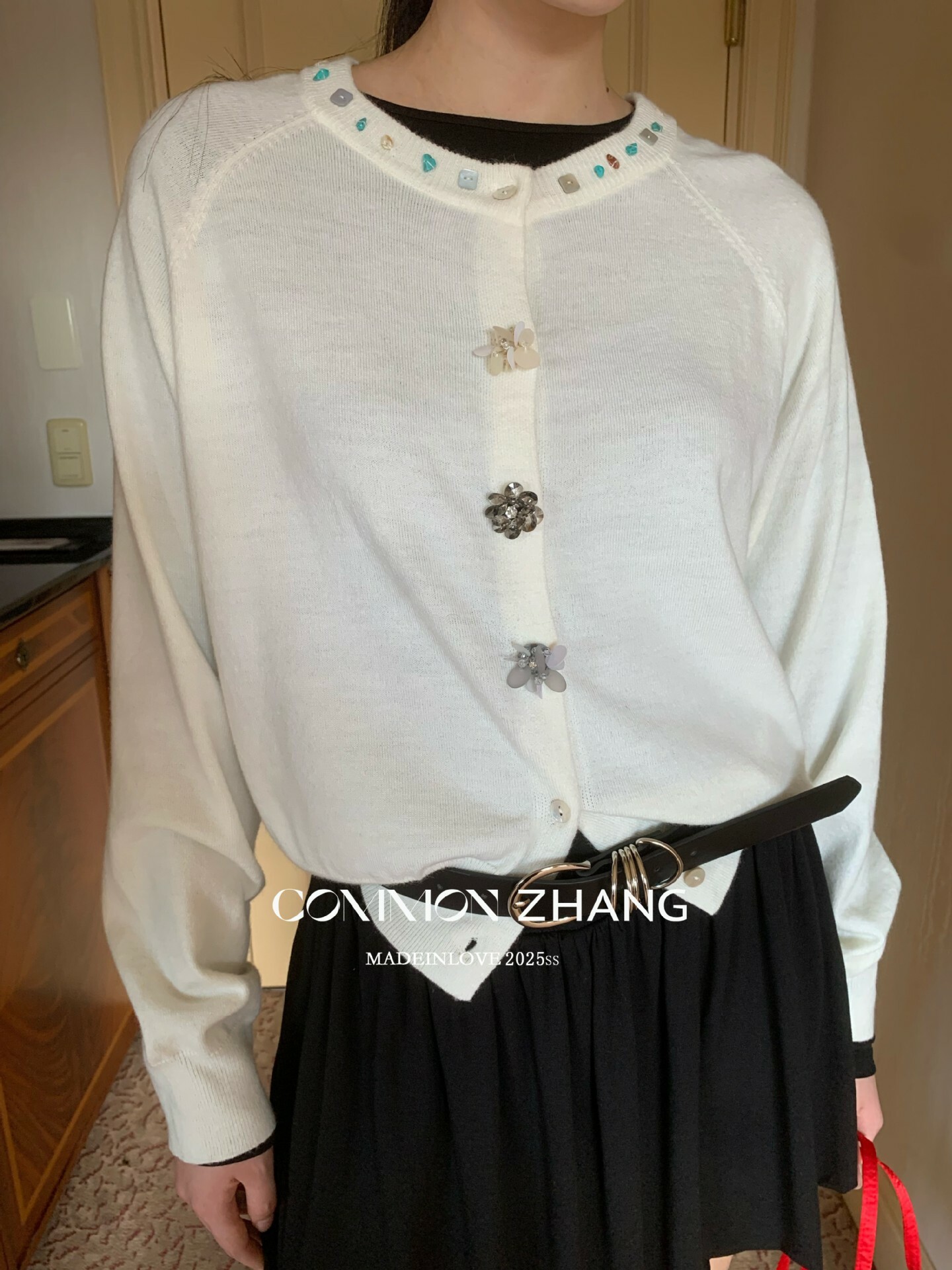 *o-ha-you*【FCZ105530】春季小眾減齡彩色貝殼扣拼接圓領開襟衫純色針織衫-4色-如有需要請先諮詢