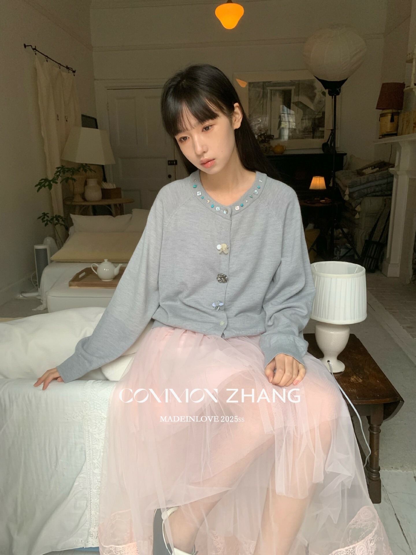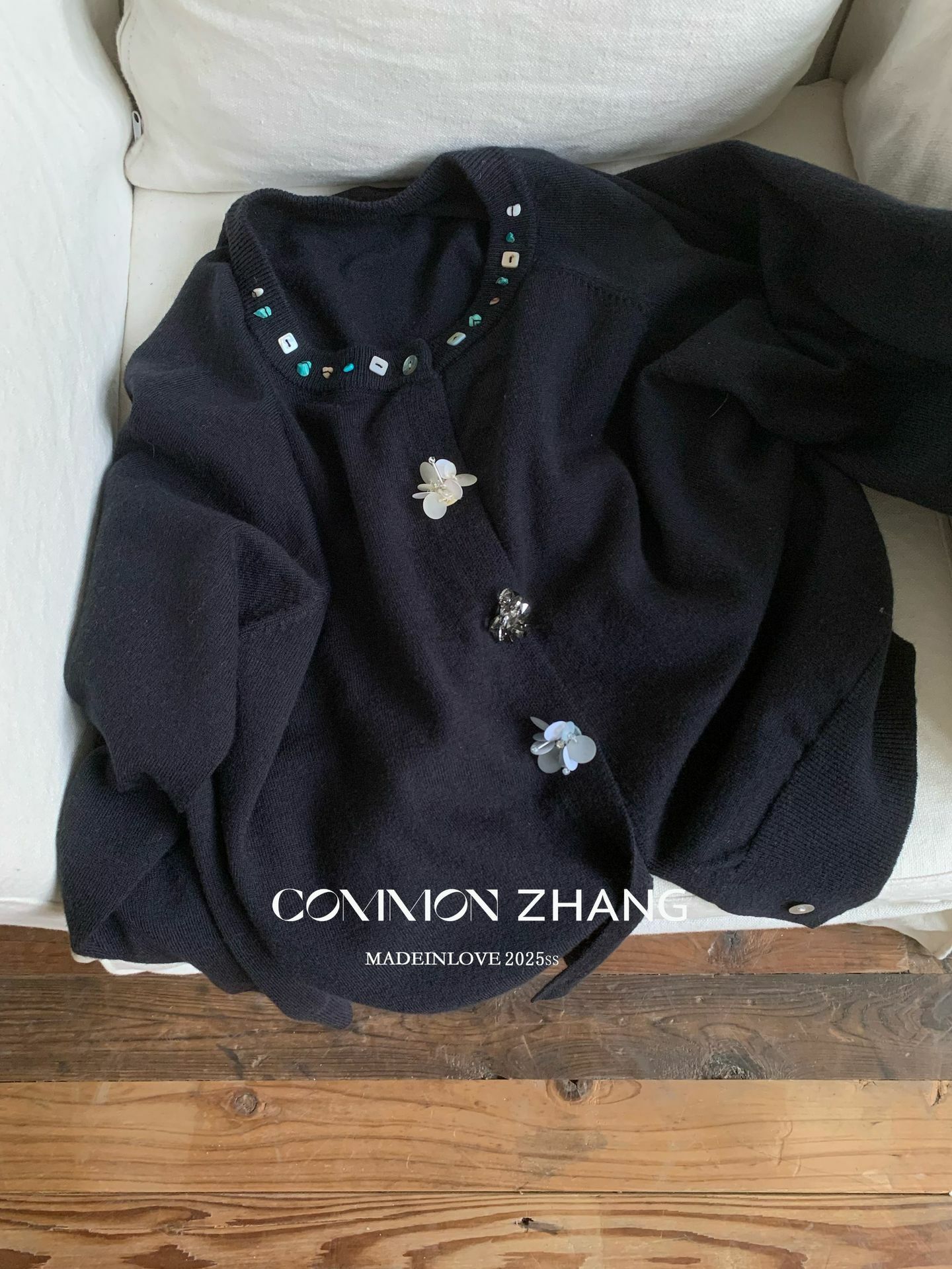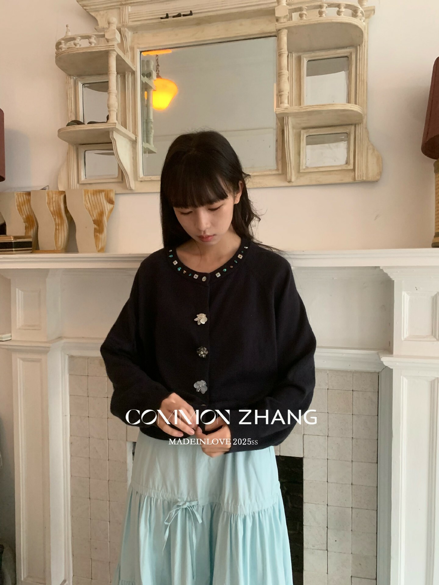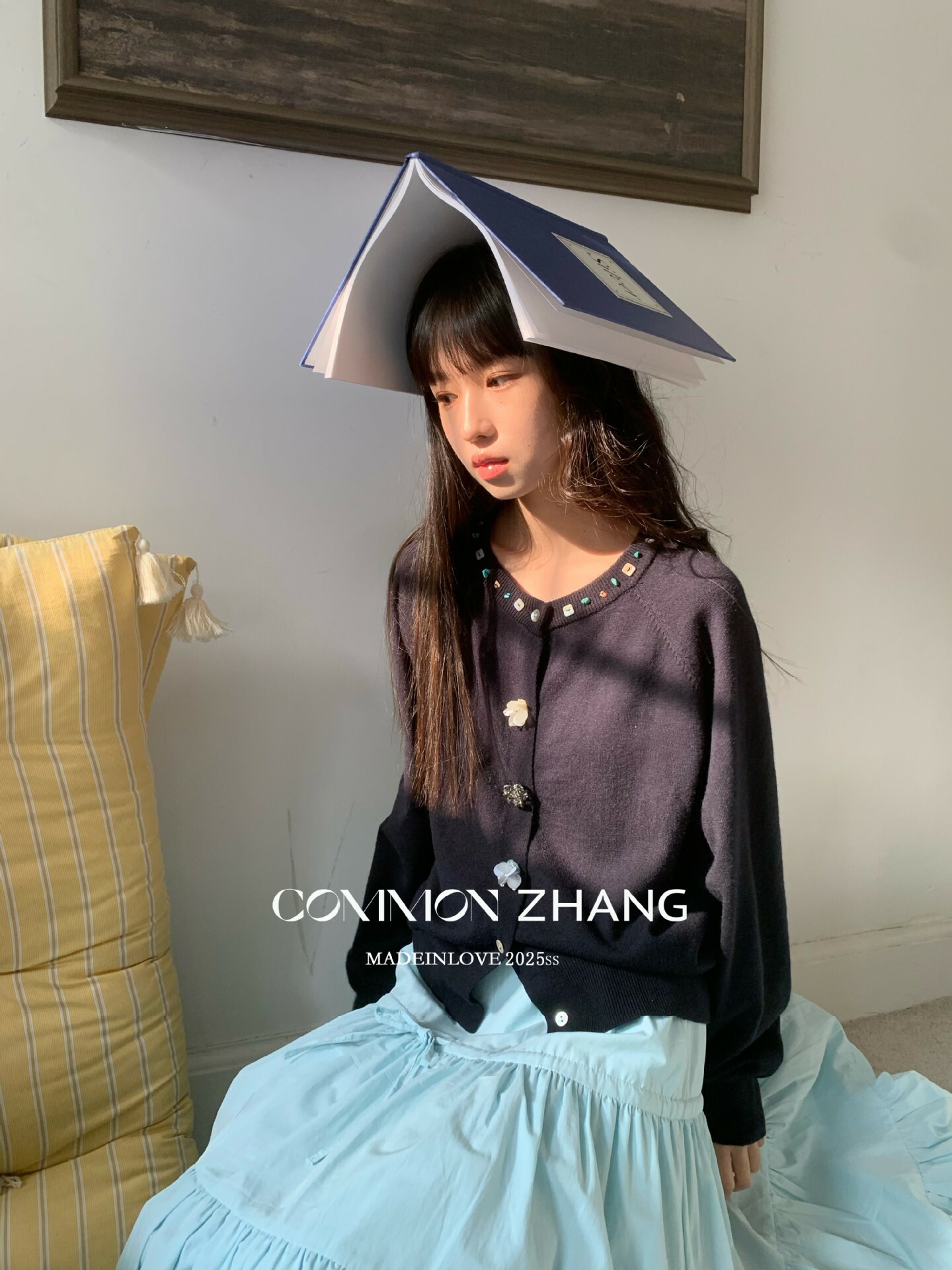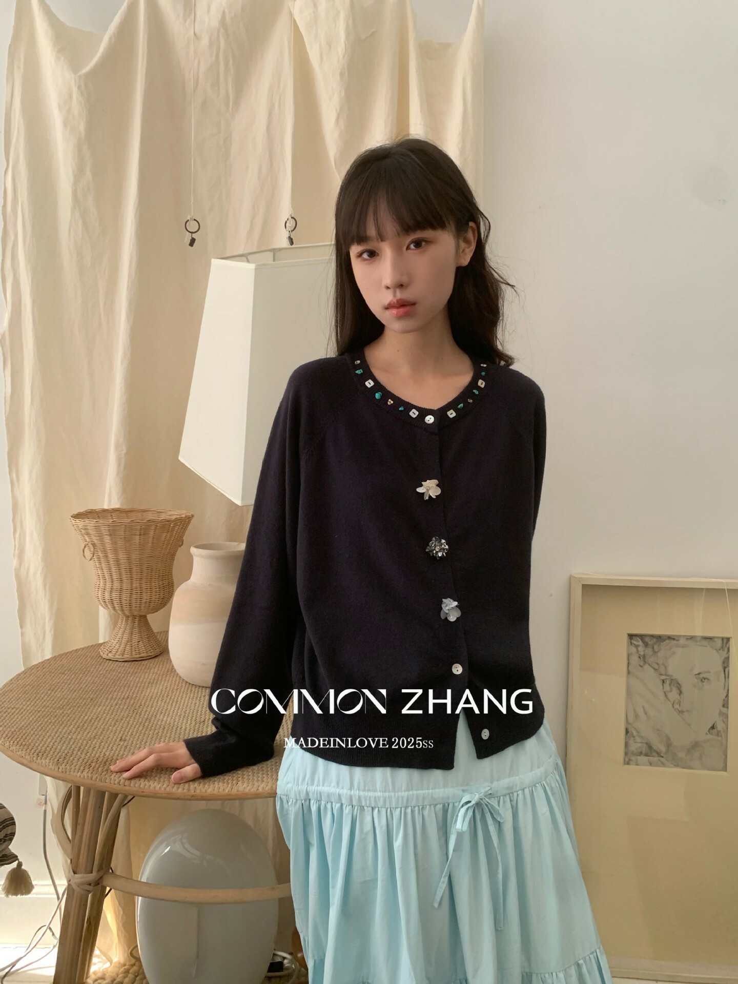 *o-ha-you*【FCZ105530】春季小眾減齡彩色貝殼扣拼接圓領開襟衫純色針織衫-4色-如有需要請先諮詢