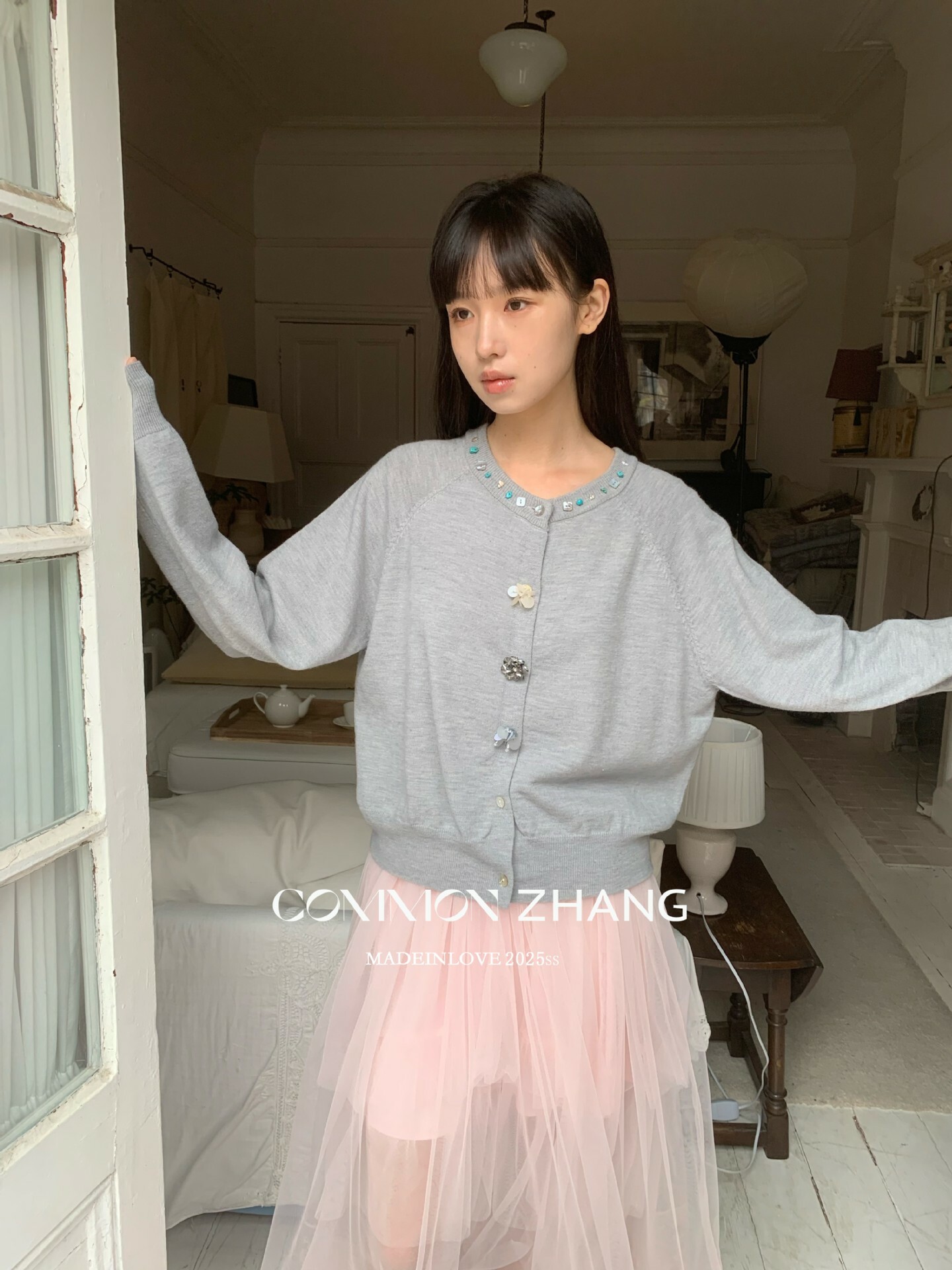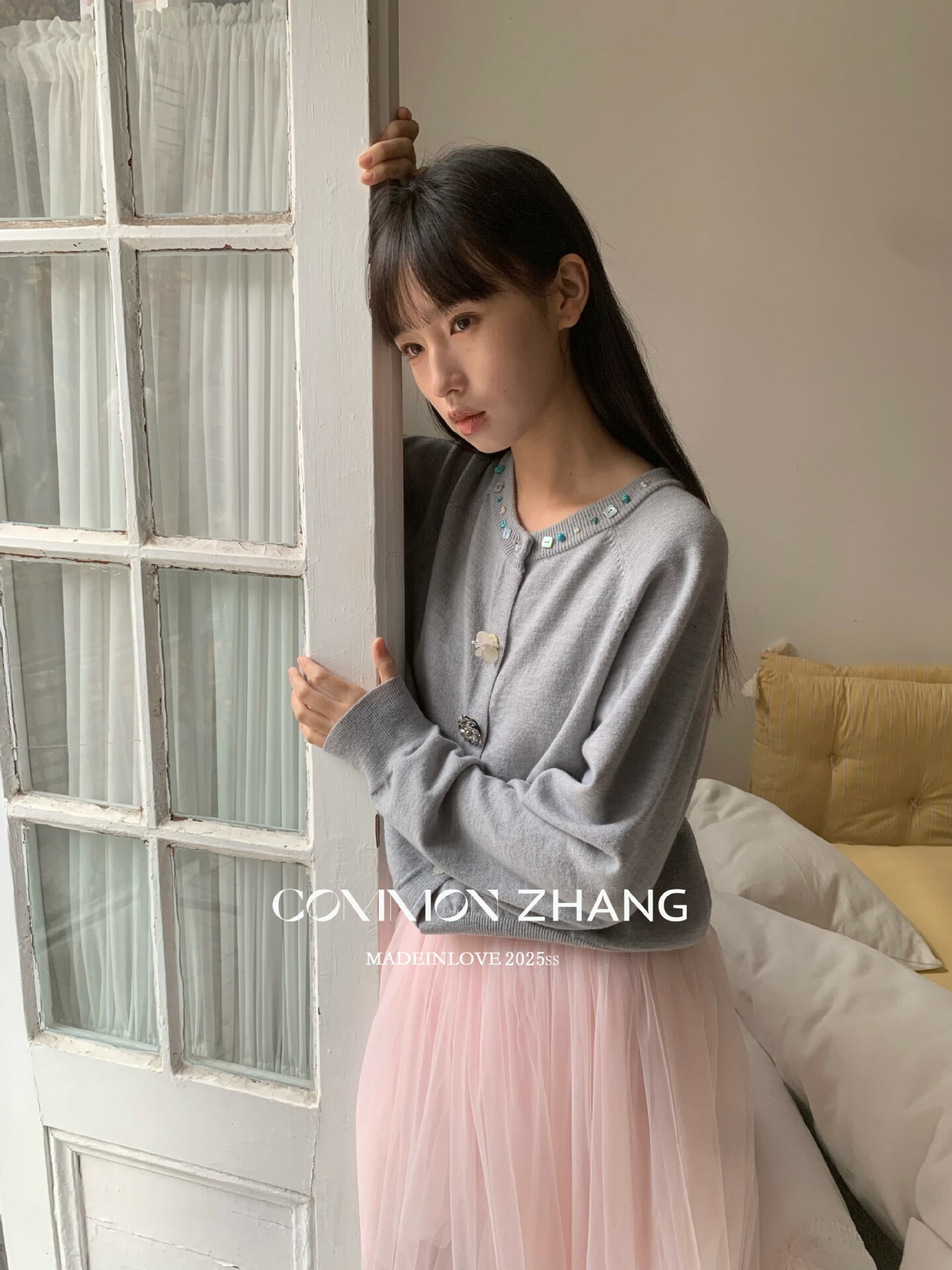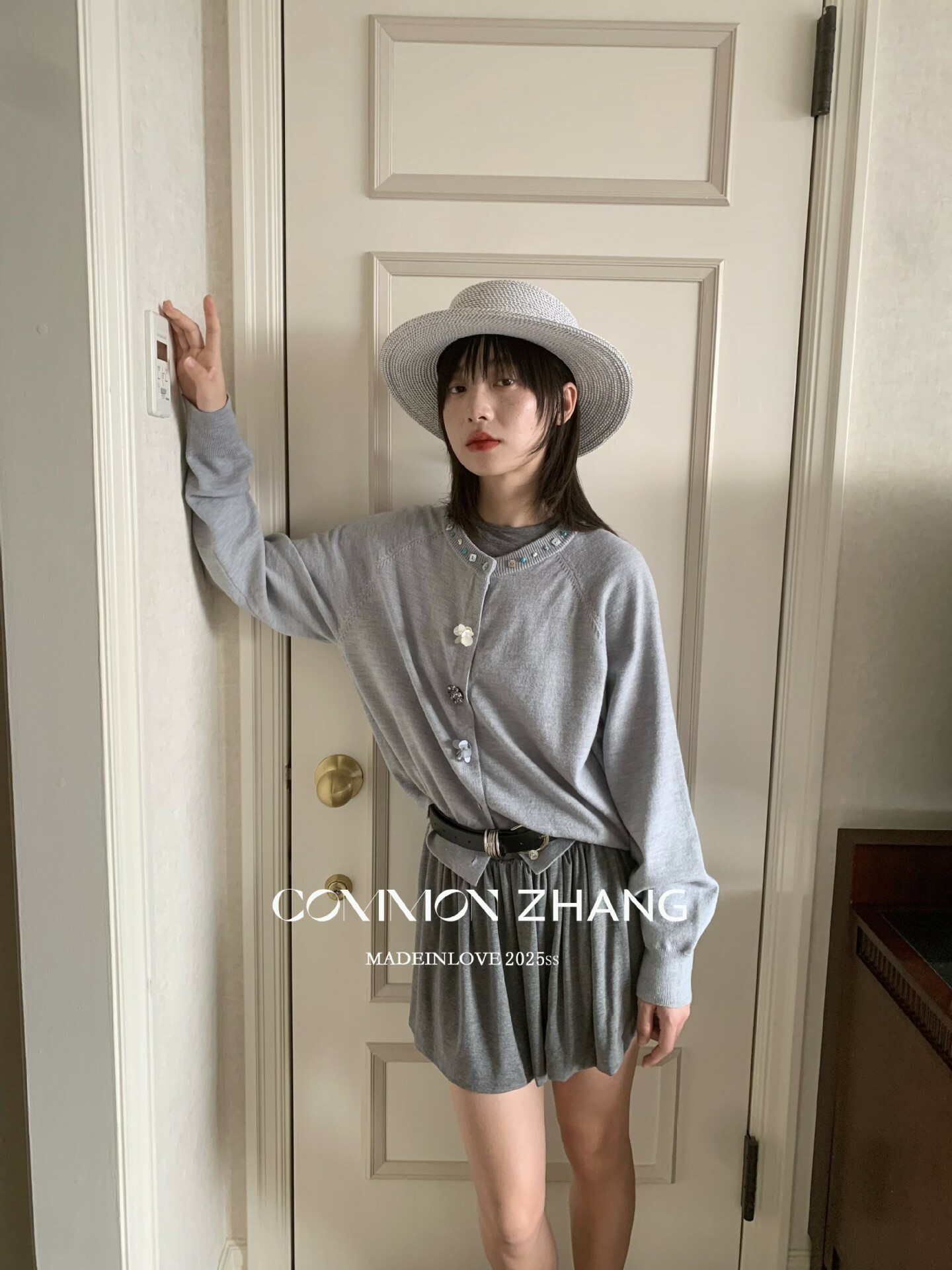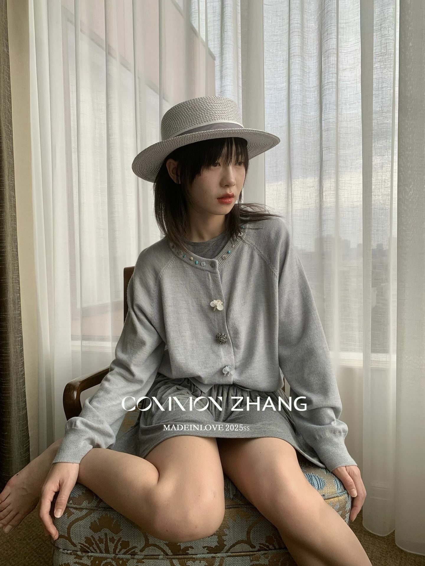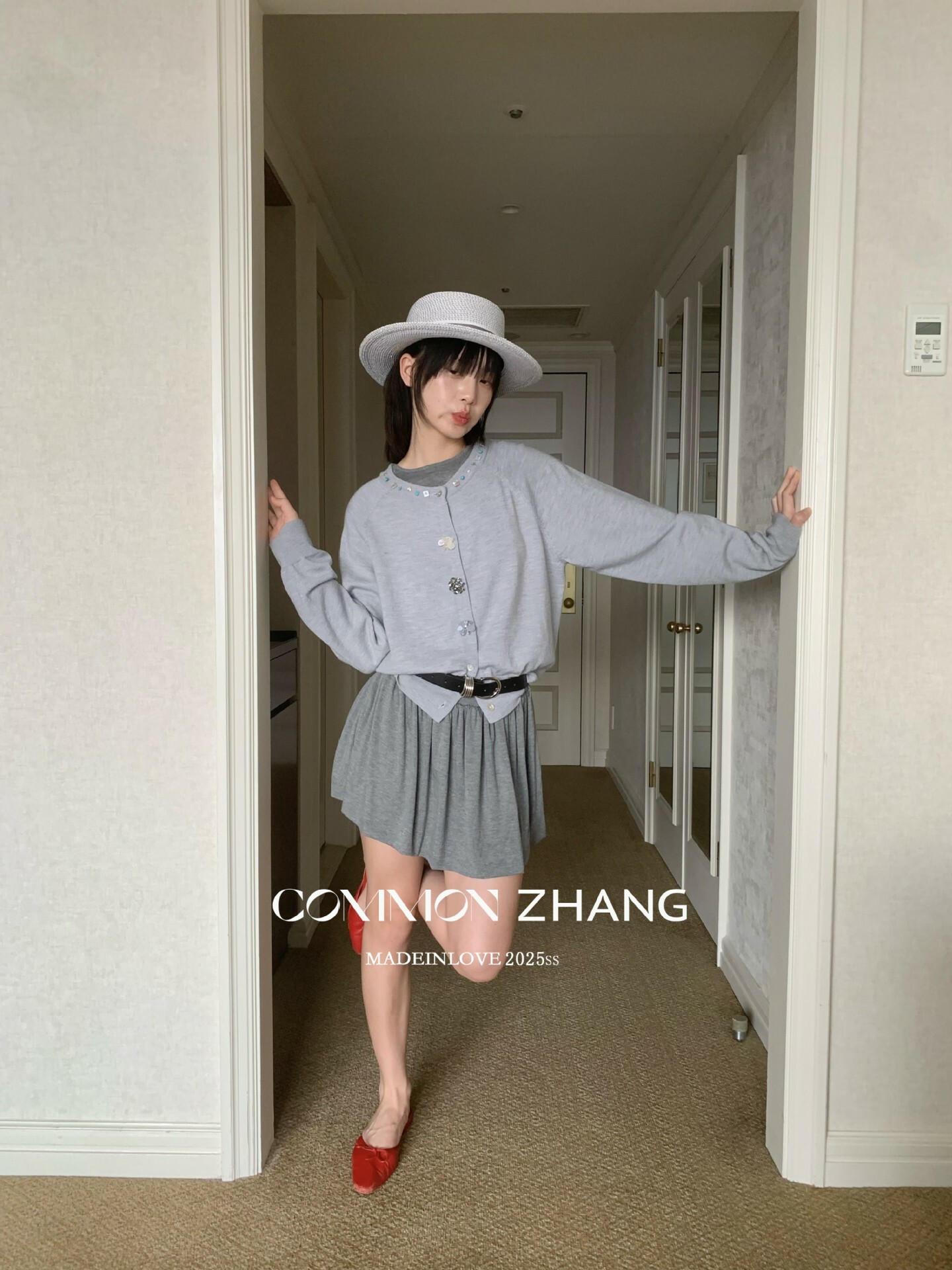 *o-ha-you*【FCZ105530】春季小眾減齡彩色貝殼扣拼接圓領開襟衫純色針織衫-4色-如有需要請先諮詢