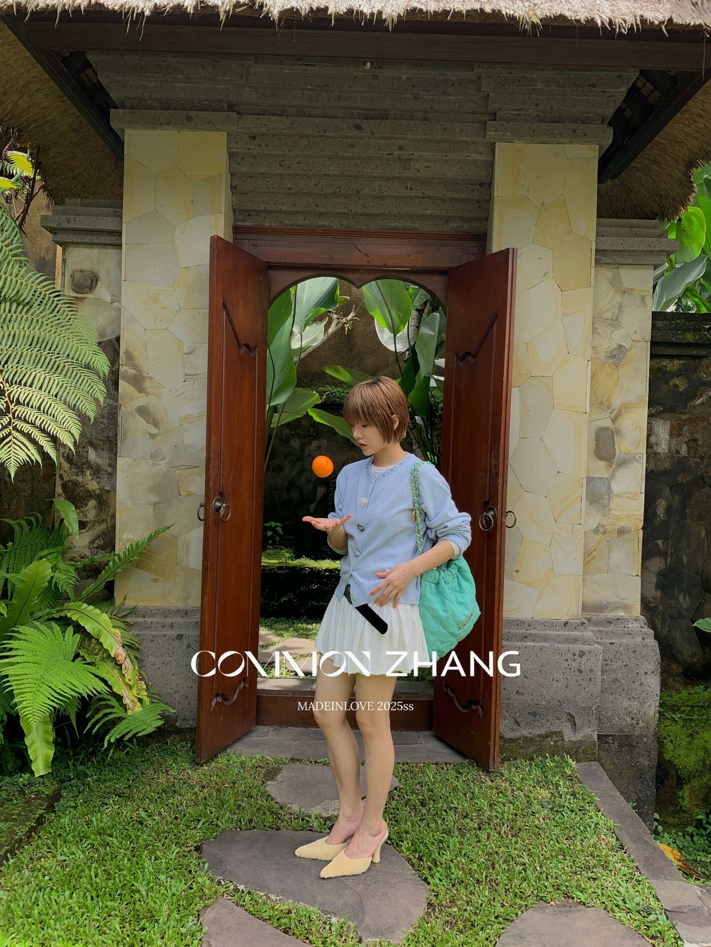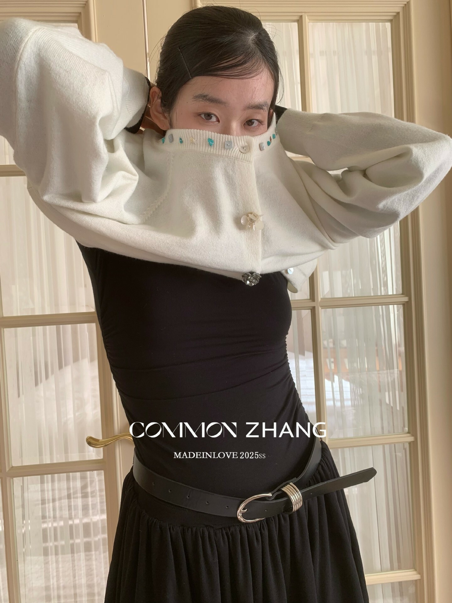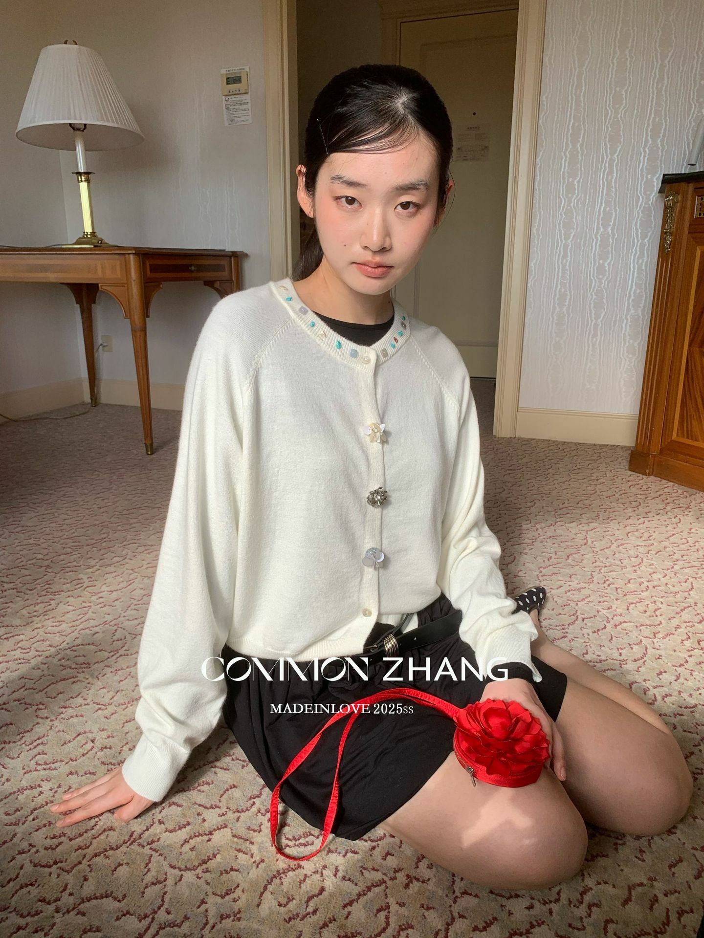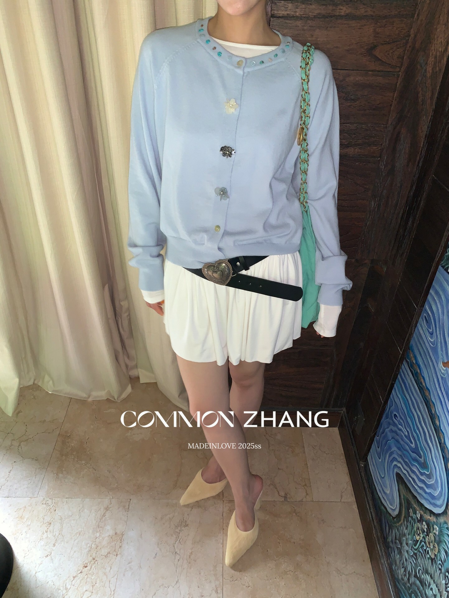 *o-ha-you*【FCZ105530】春季小眾減齡彩色貝殼扣拼接圓領開襟衫純色針織衫-4色-如有需要請先諮詢