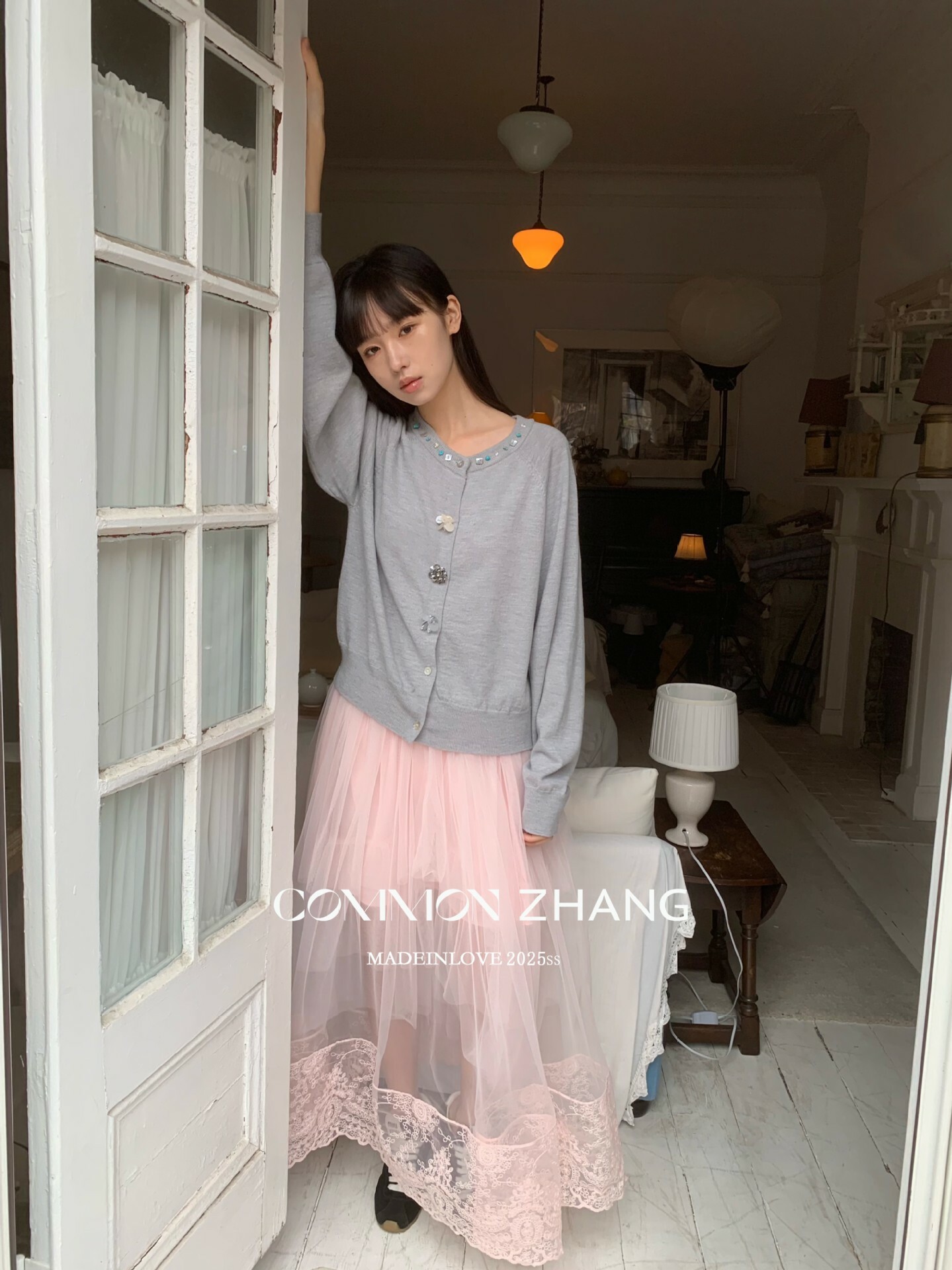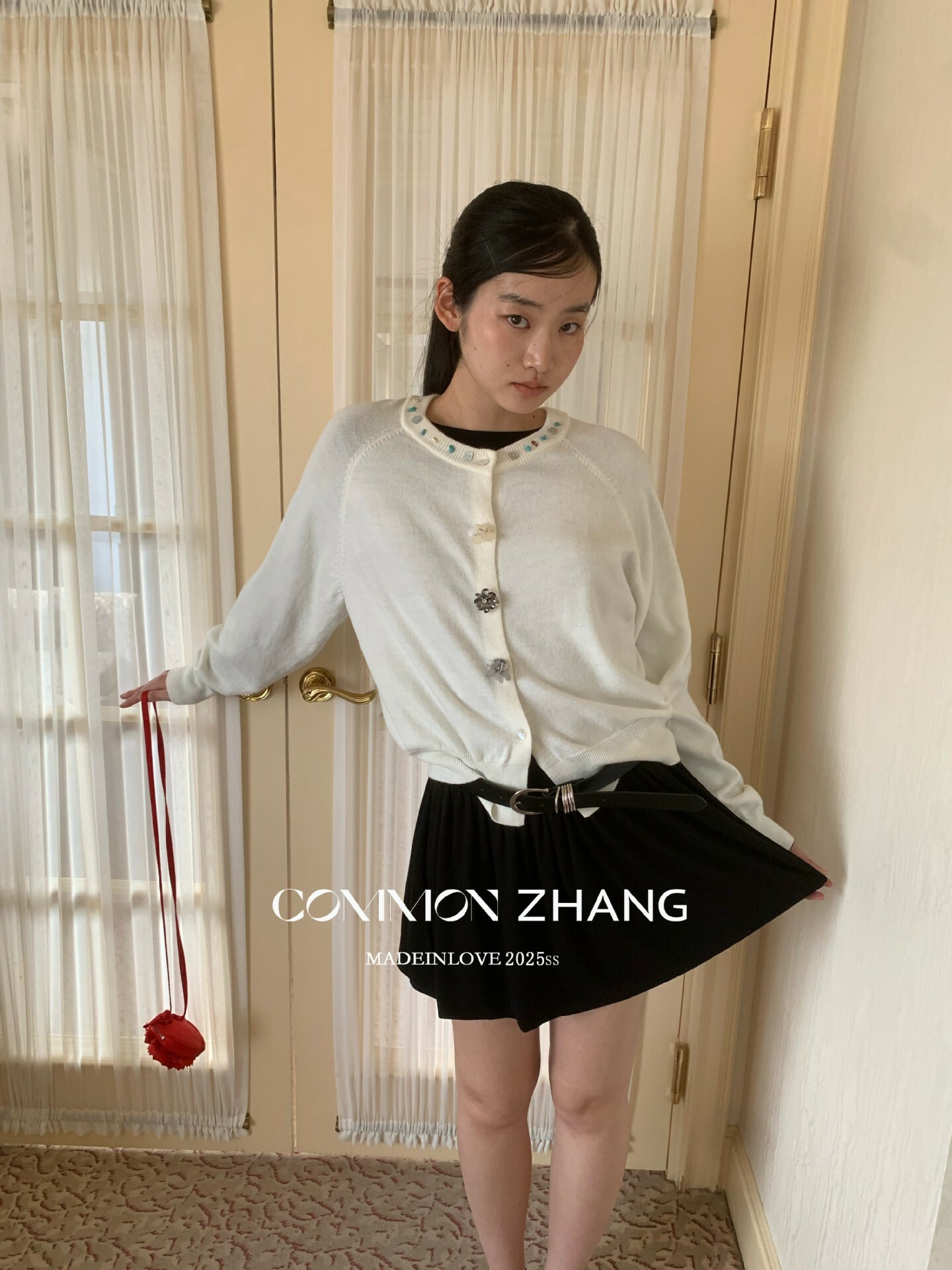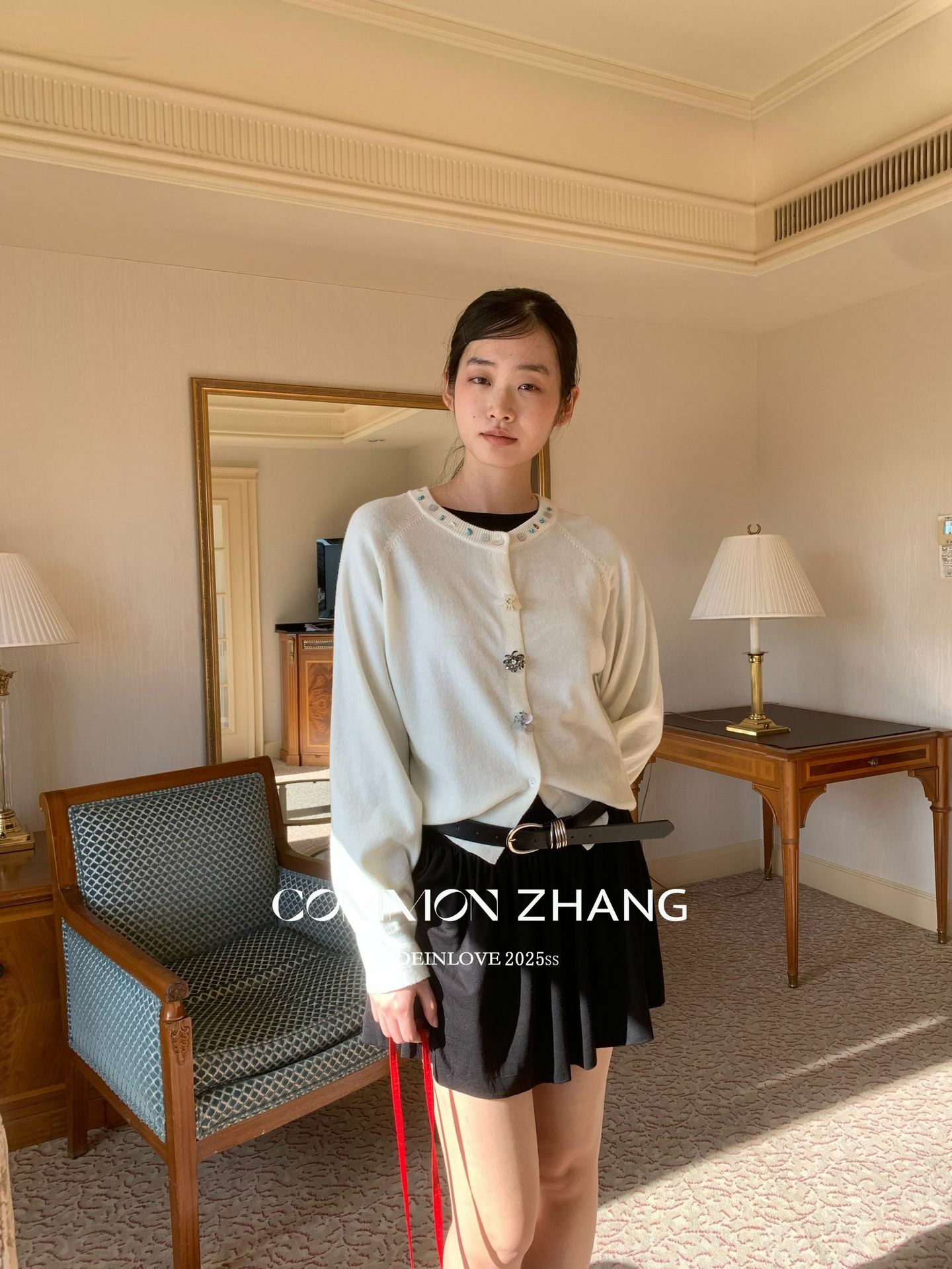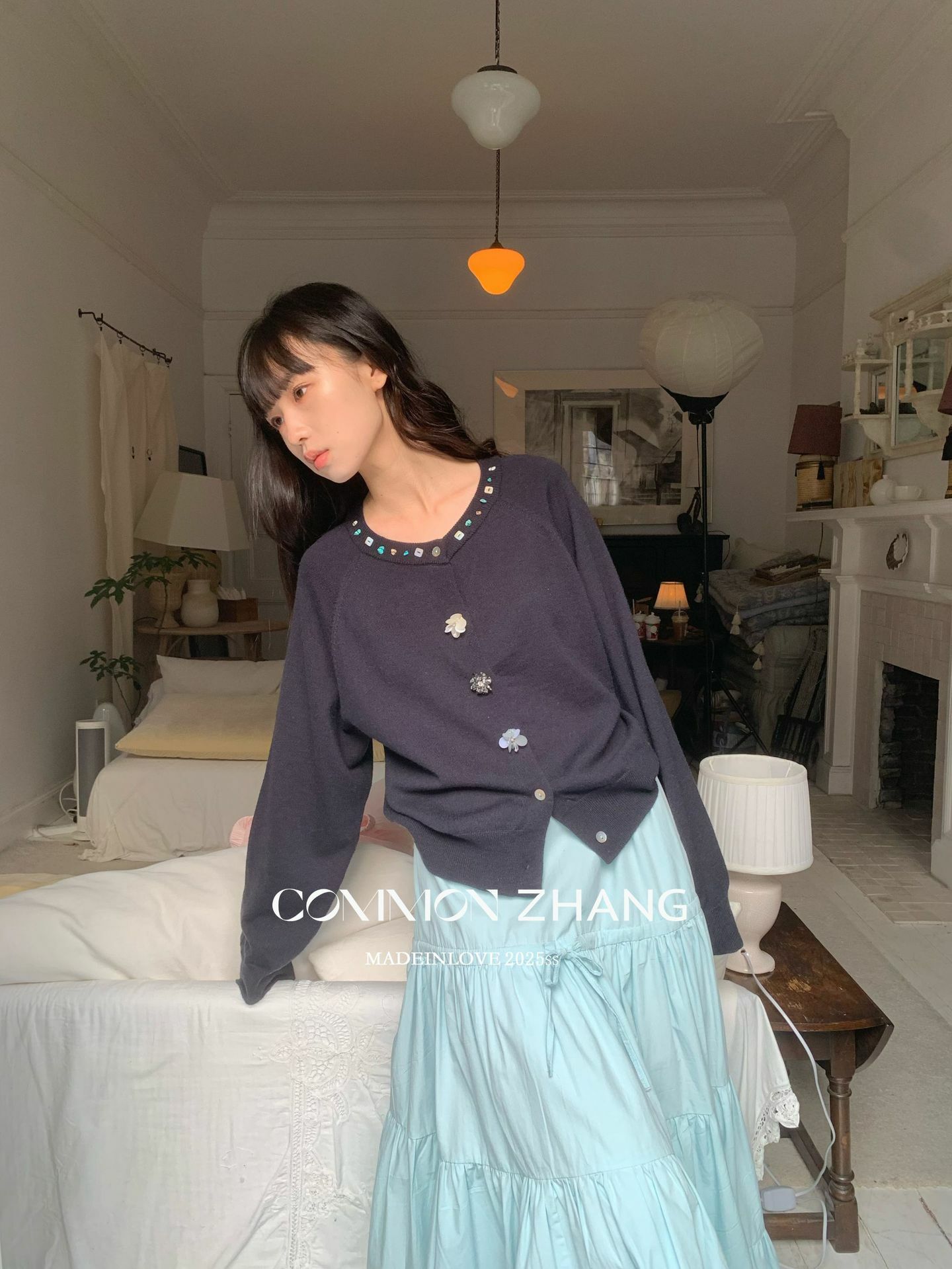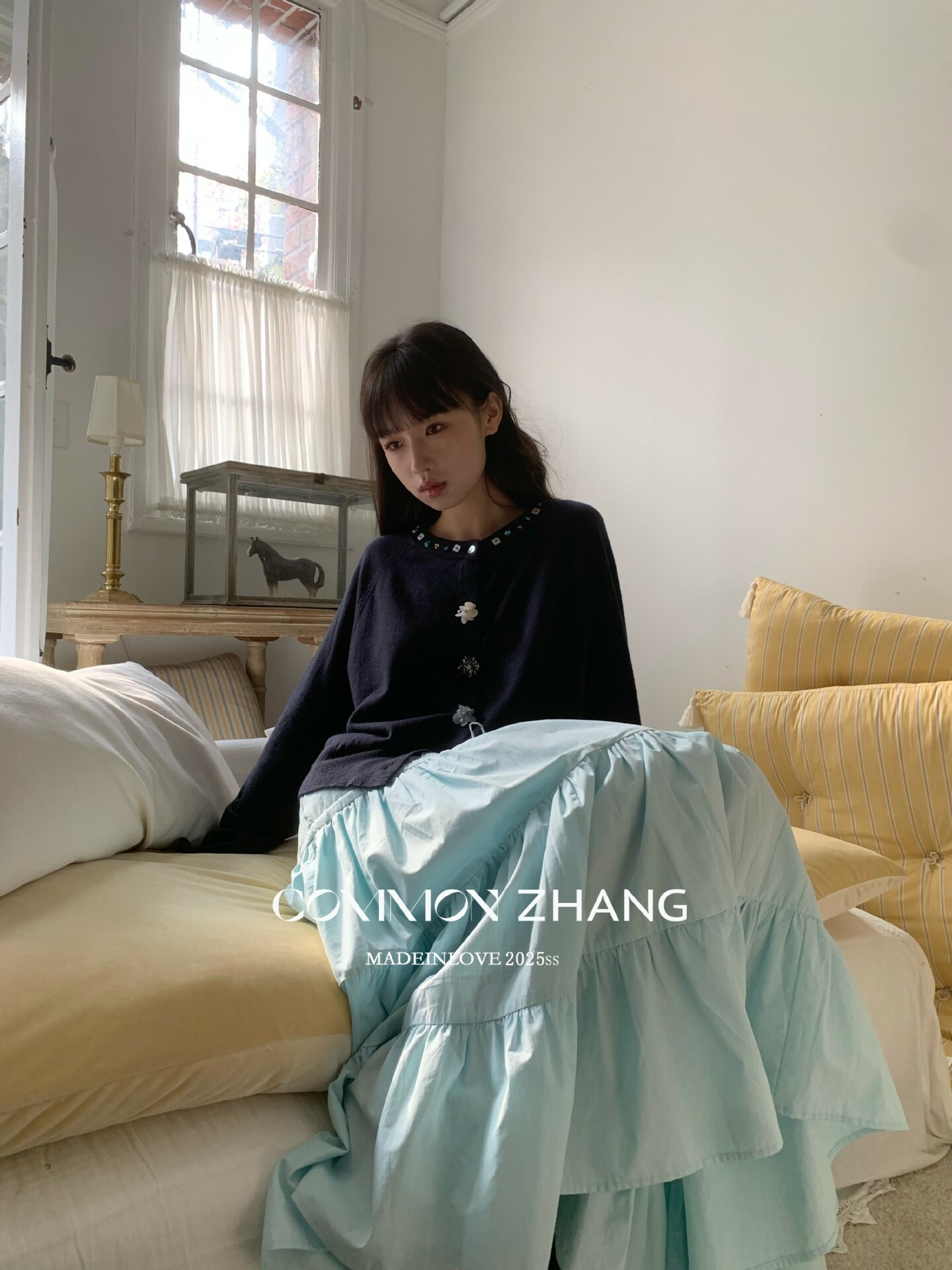*o-ha-you*【FCZ105530】春季小眾減齡彩色貝殼扣拼接圓領開襟衫純色針織衫-4色-如有需要請先諮詢
