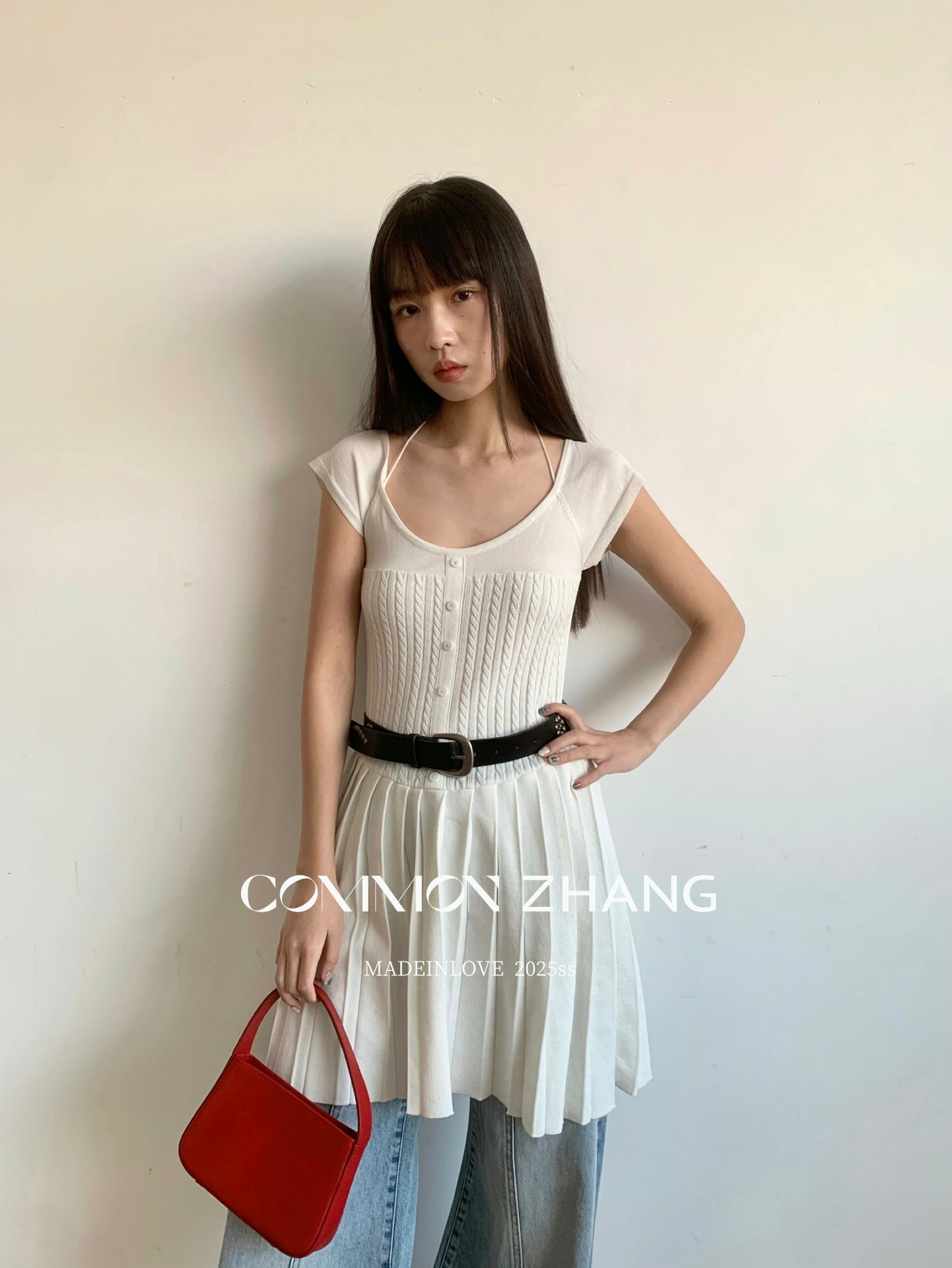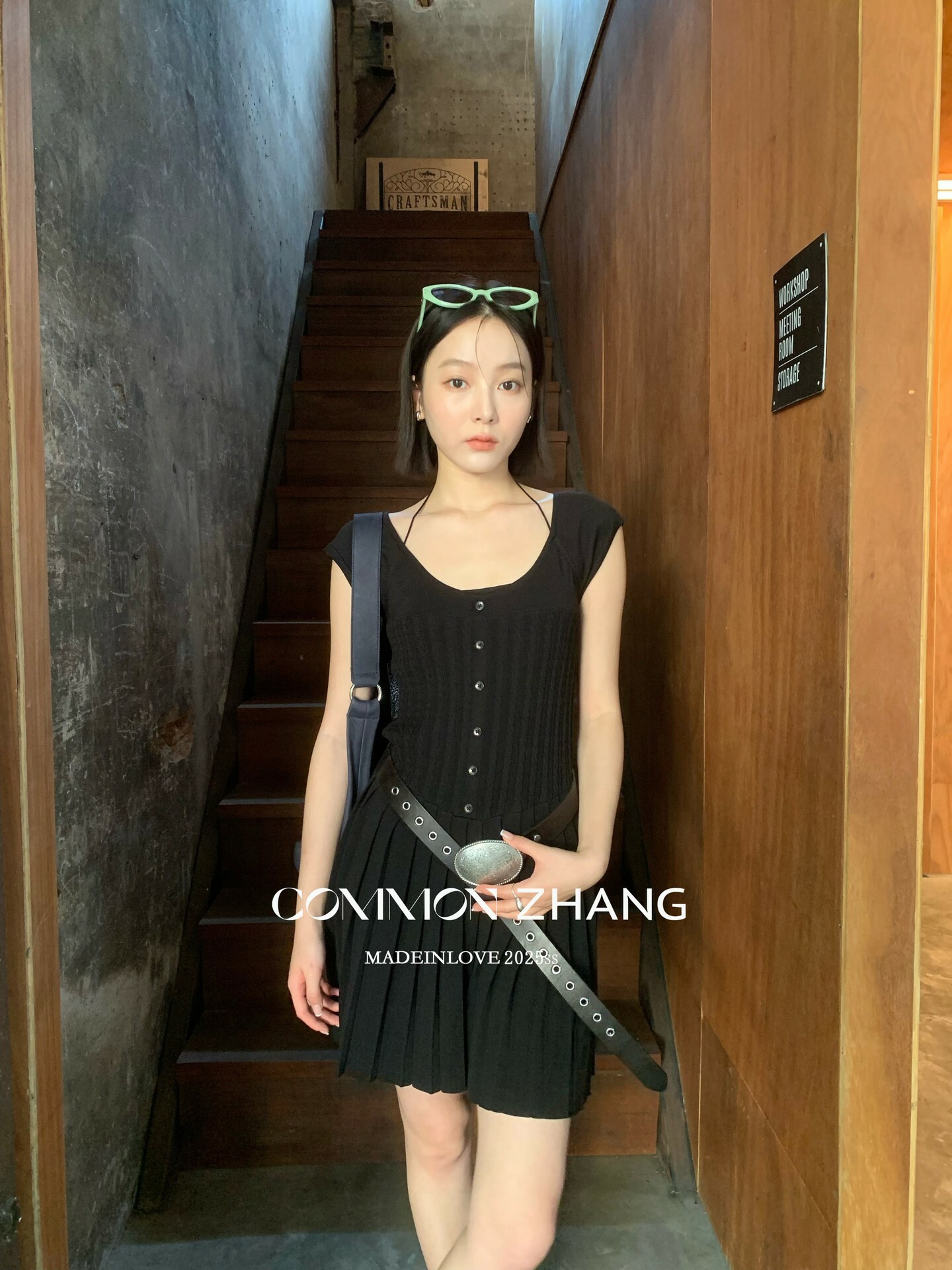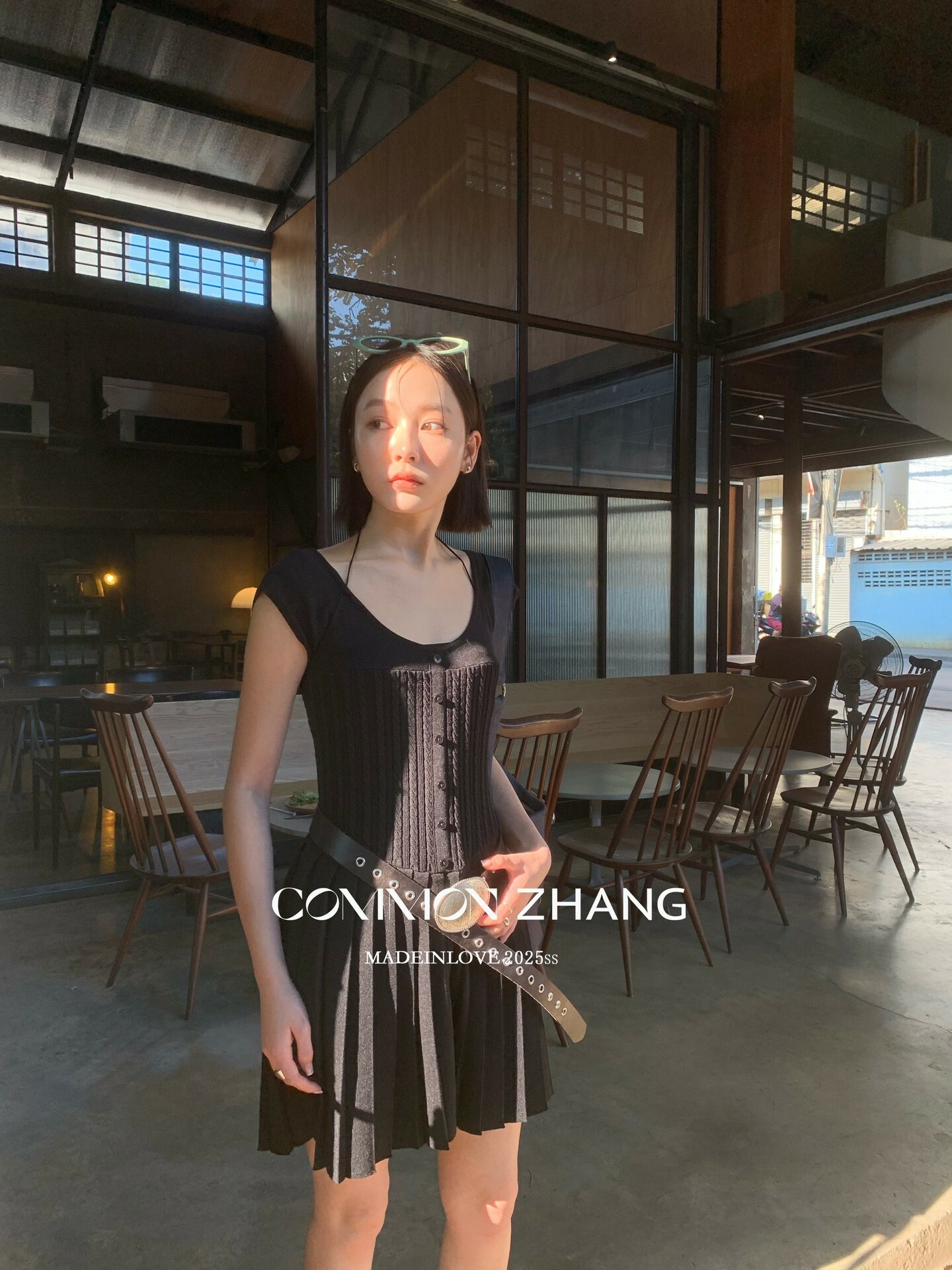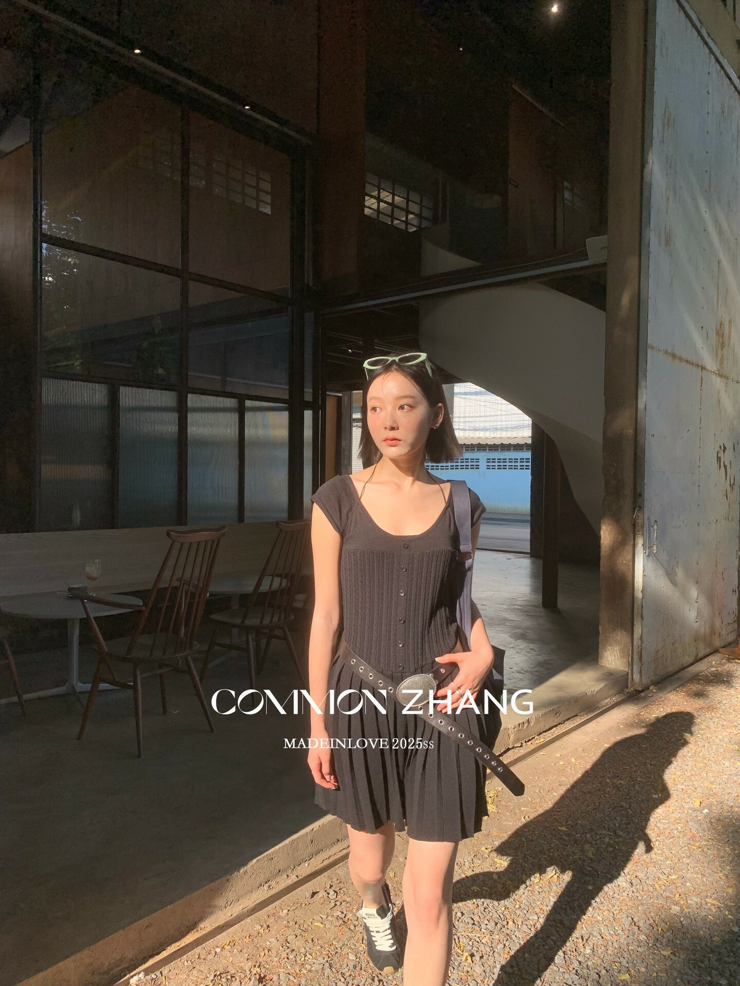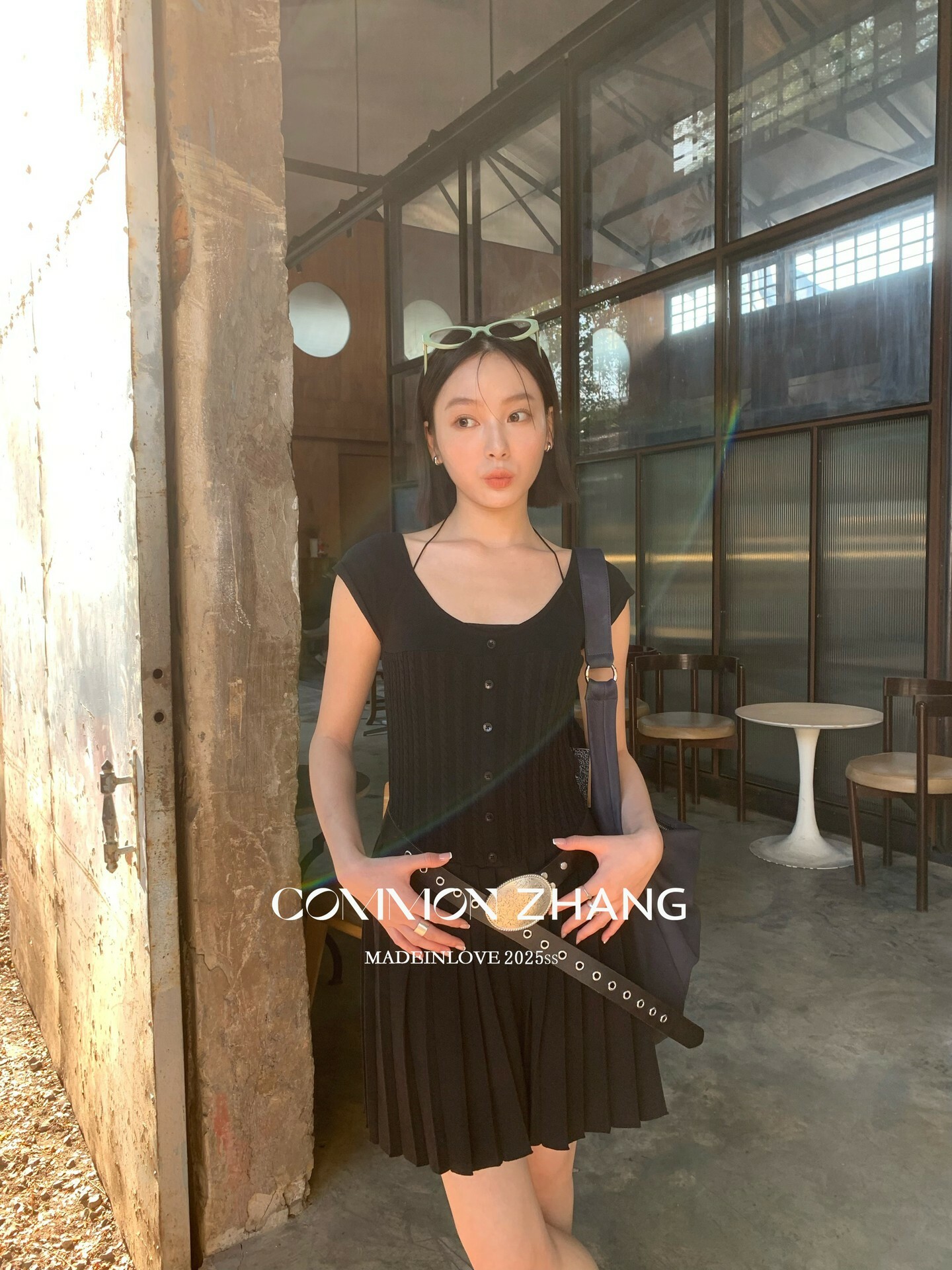 *o-ha-you*【FCZ105541】韓風少女U領百褶拼接螺紋質感針織百搭背心連衣裙洋裝-2色