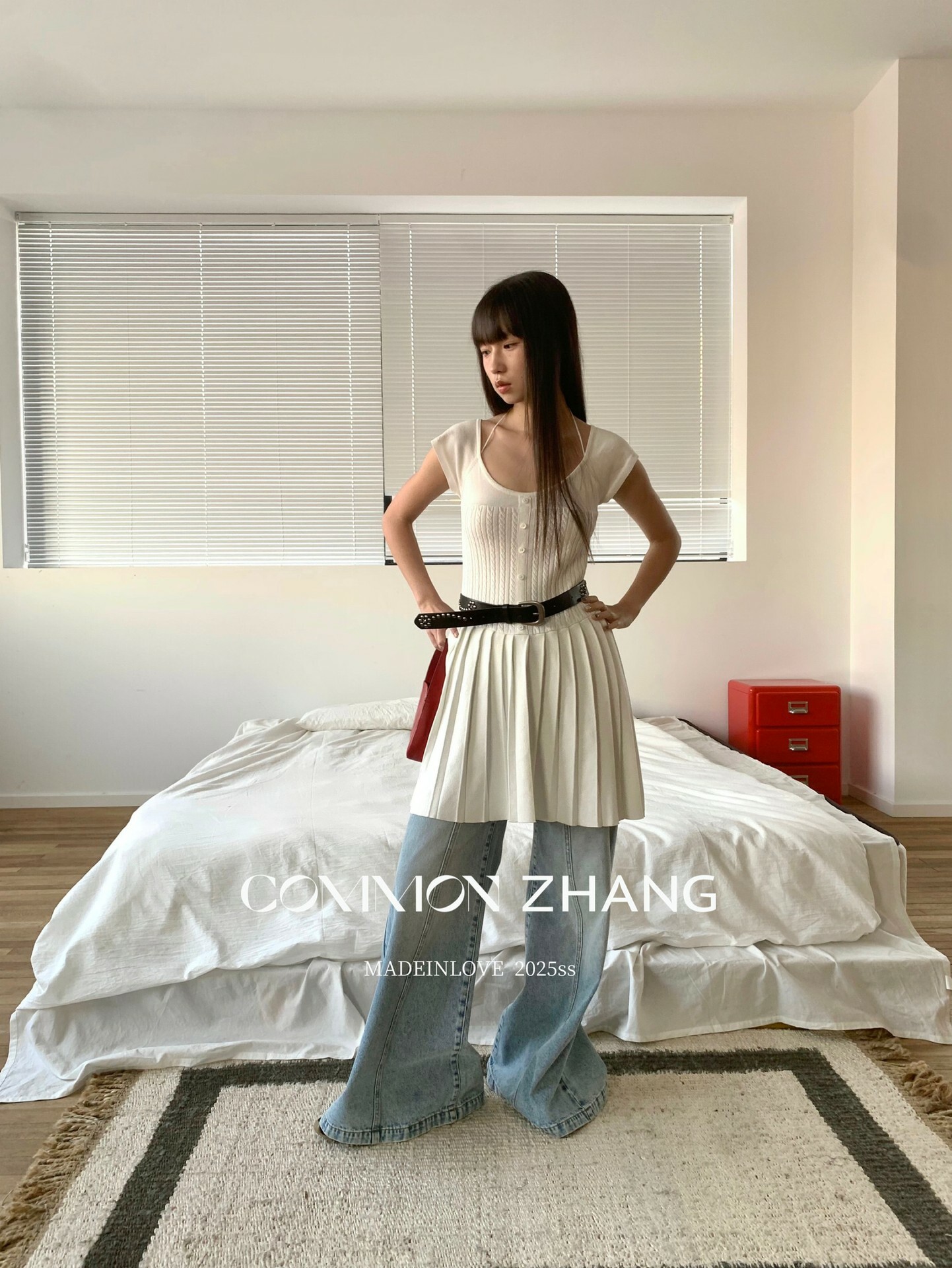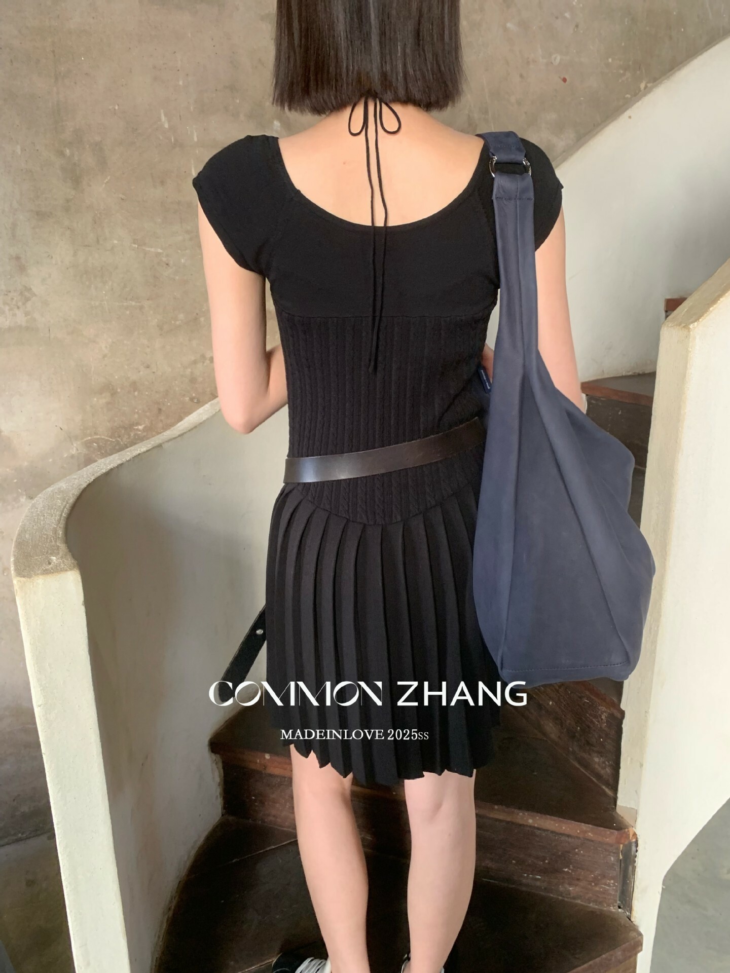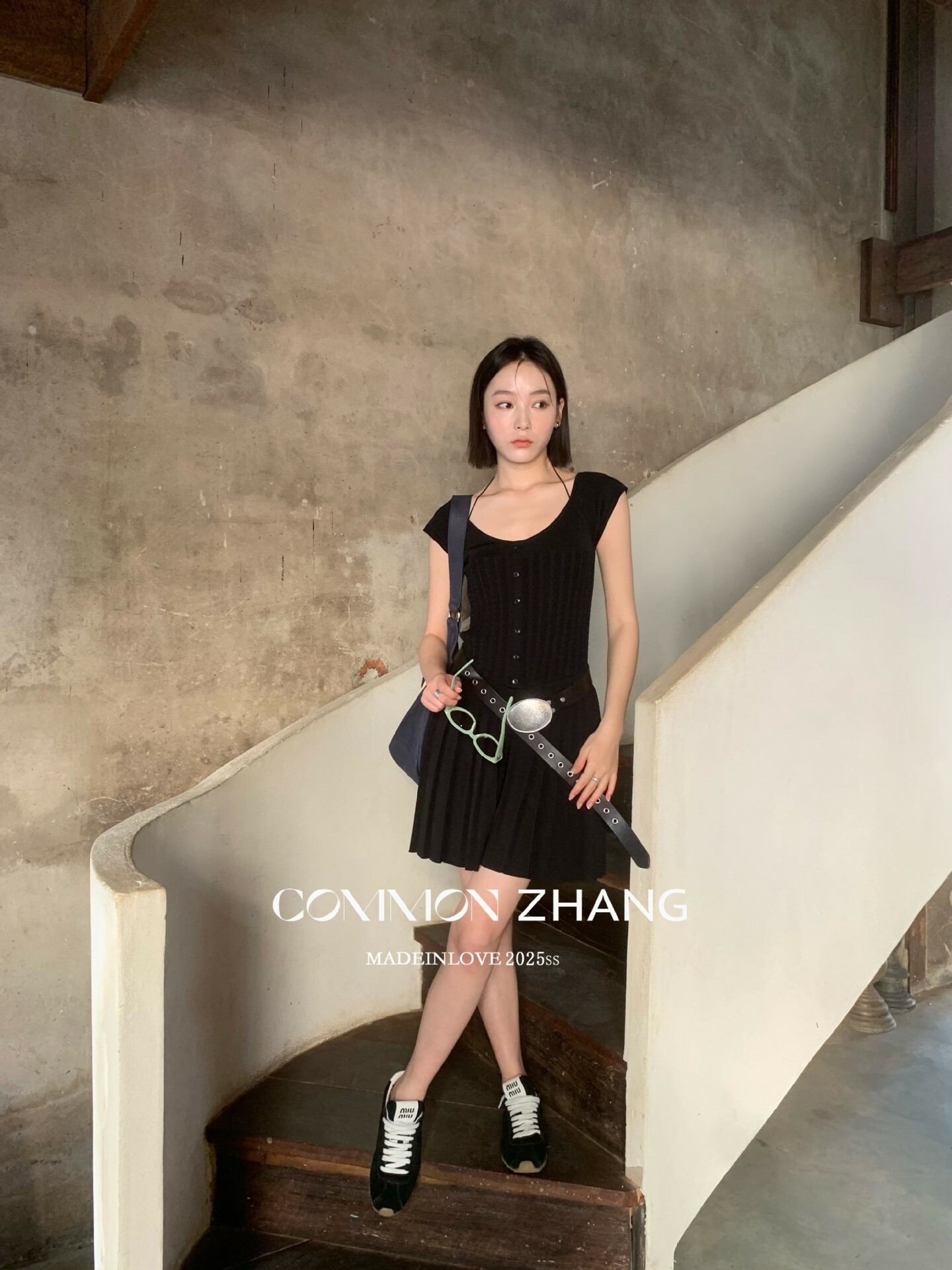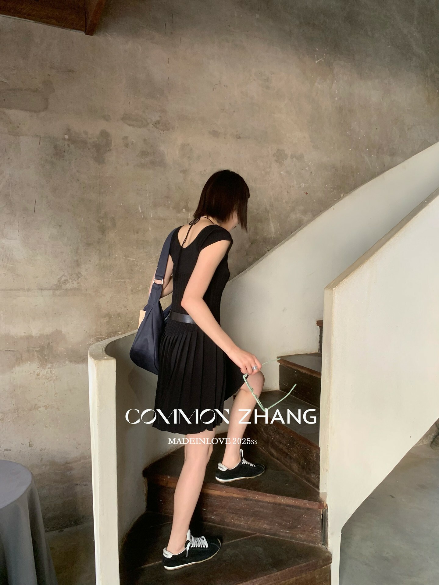 *o-ha-you*【FCZ105541】韓風少女U領百褶拼接螺紋質感針織百搭背心連衣裙洋裝-2色
