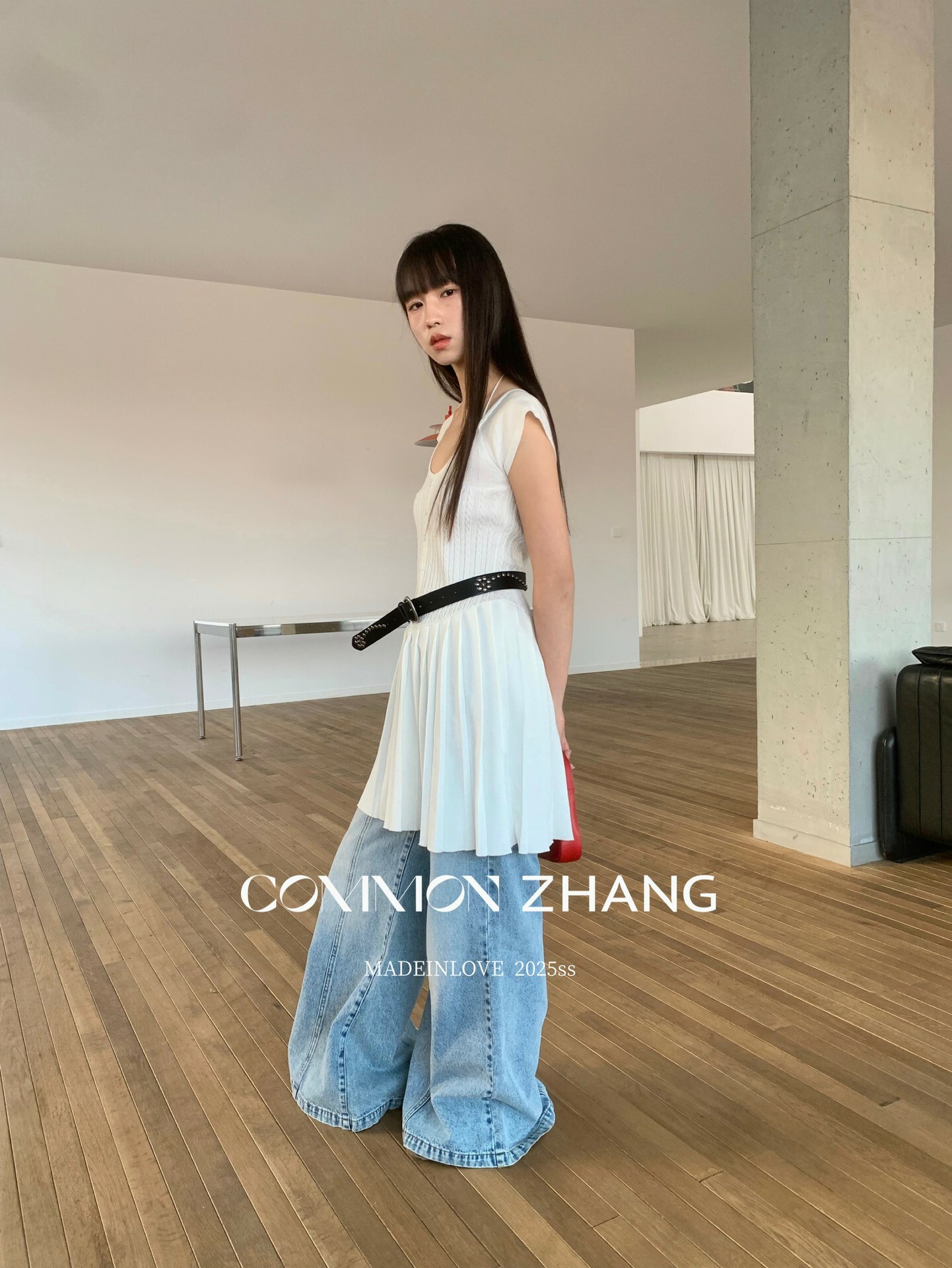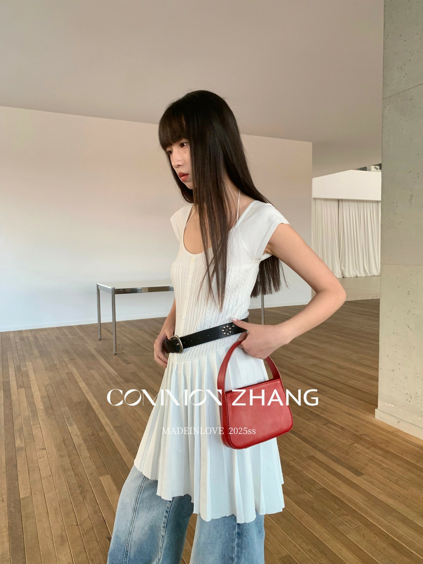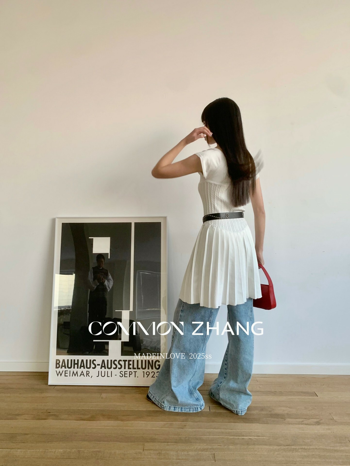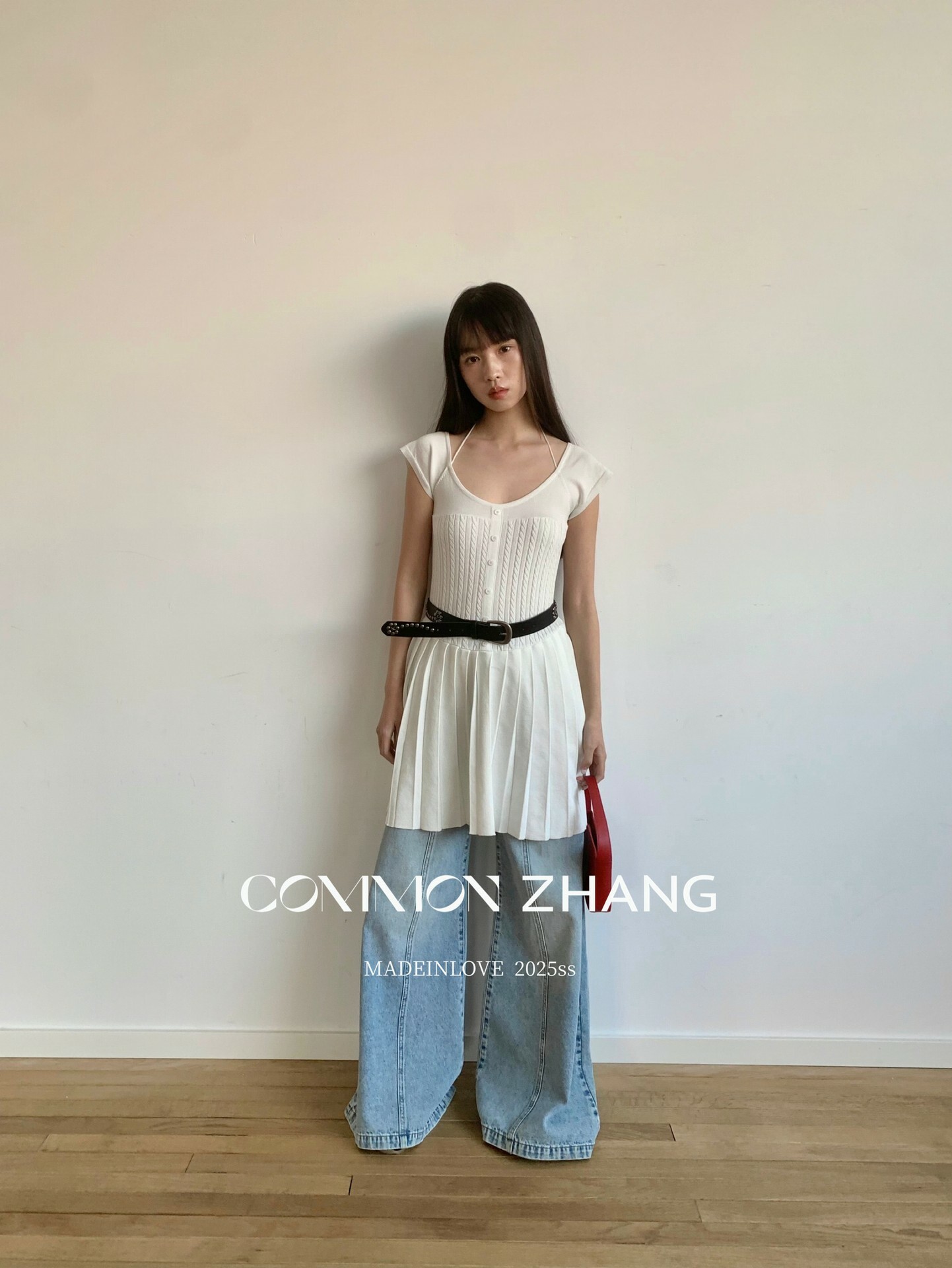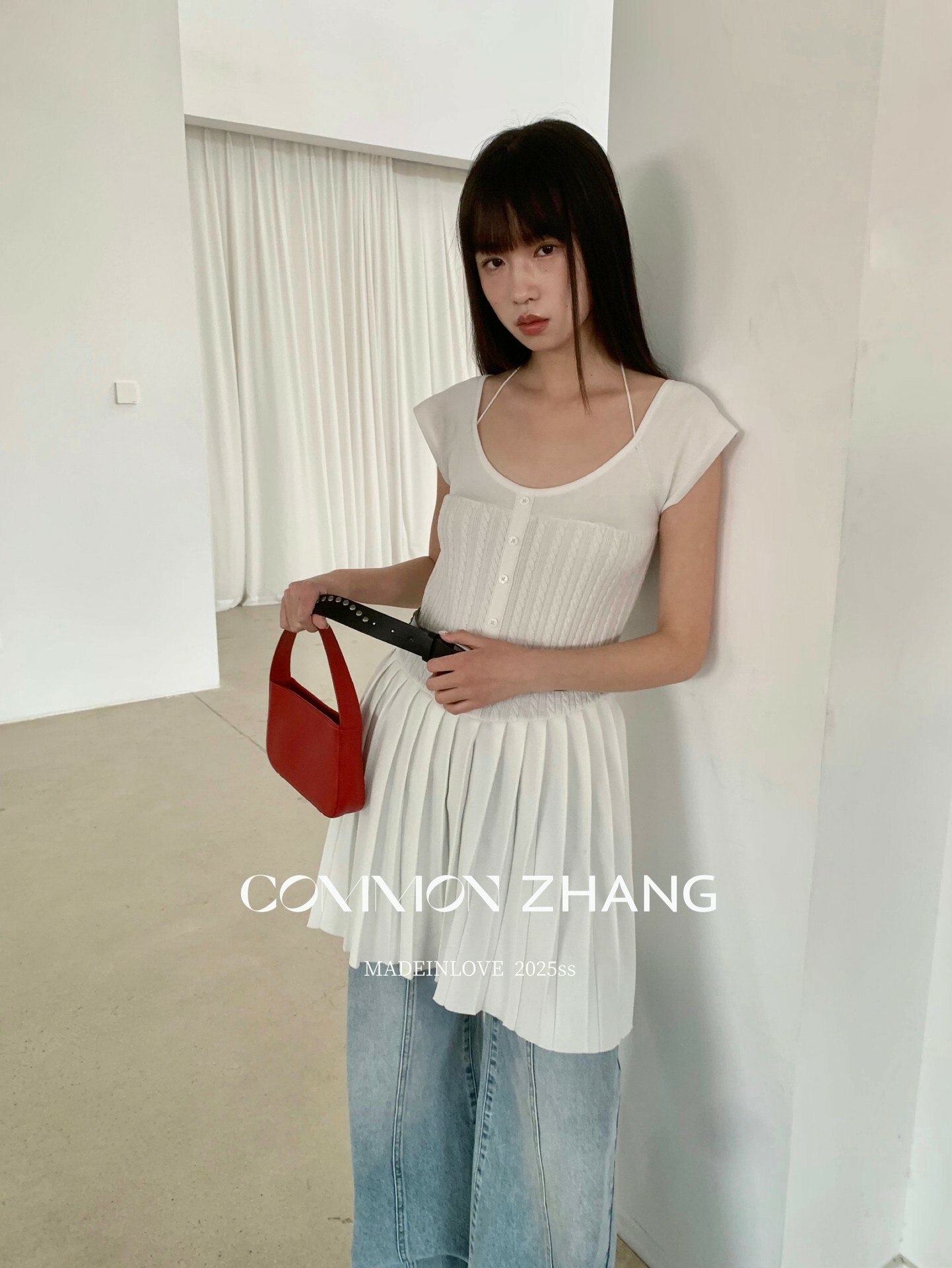 *o-ha-you*【FCZ105541】韓風少女U領百褶拼接螺紋質感針織百搭背心連衣裙洋裝-2色