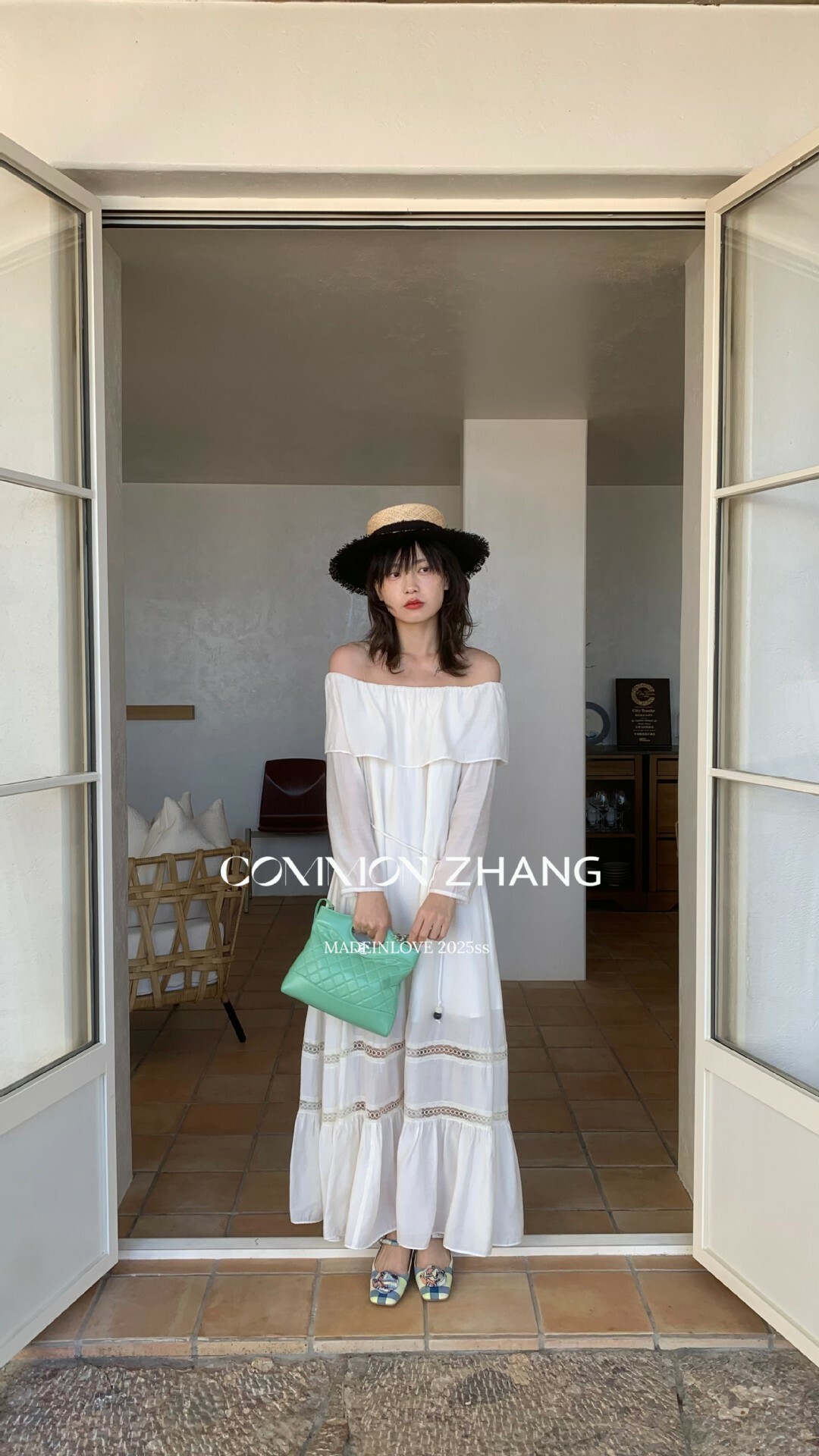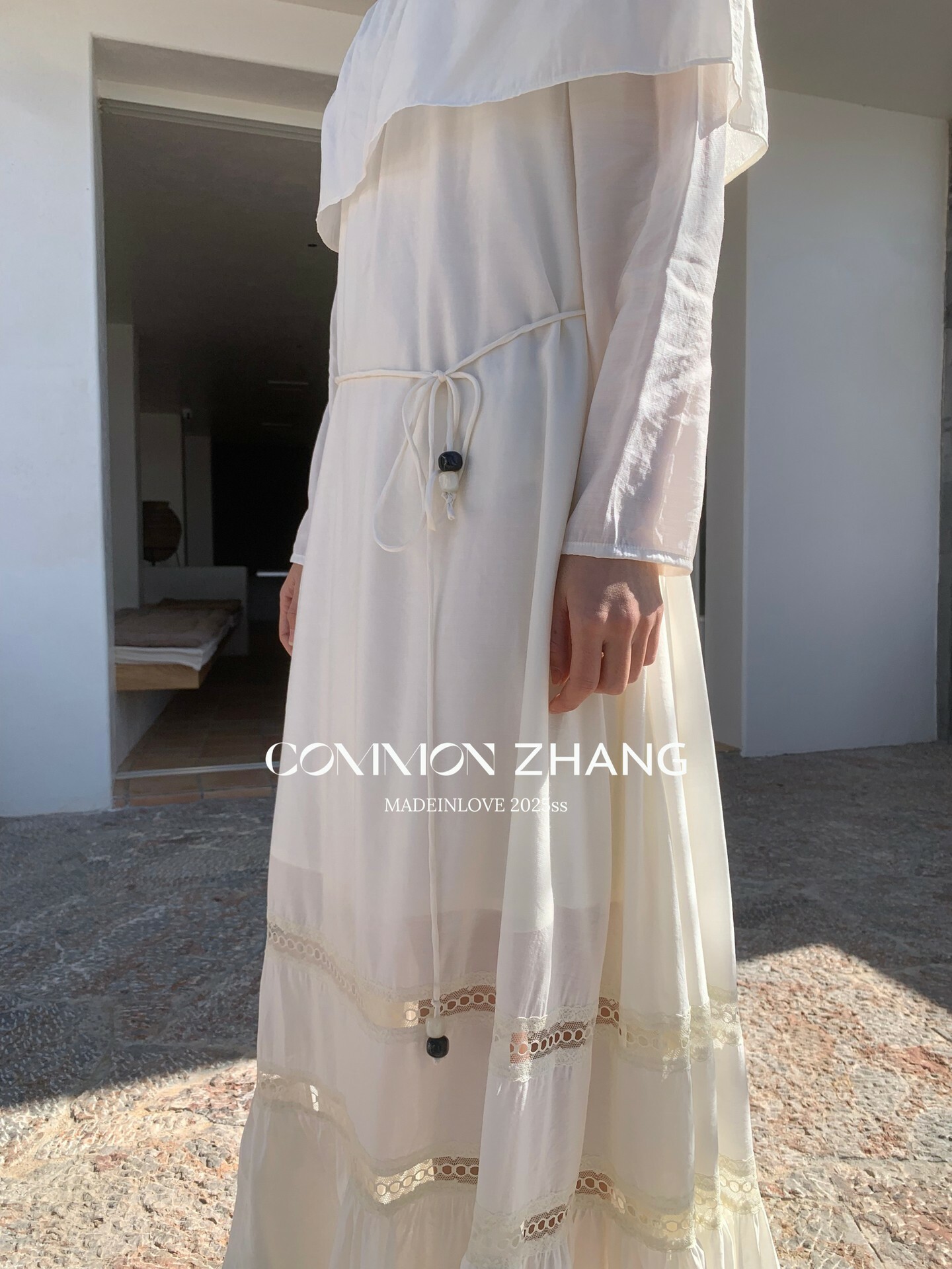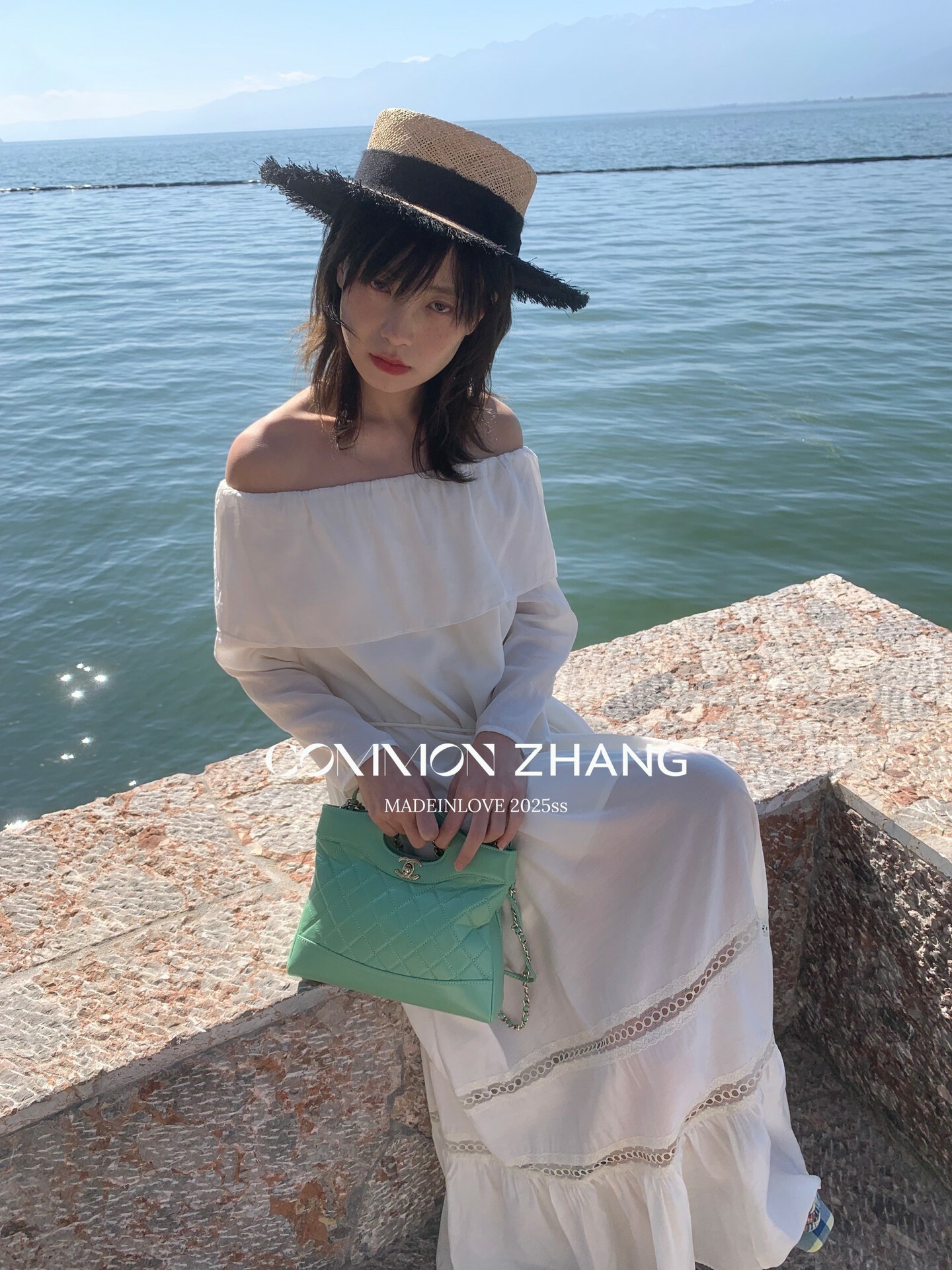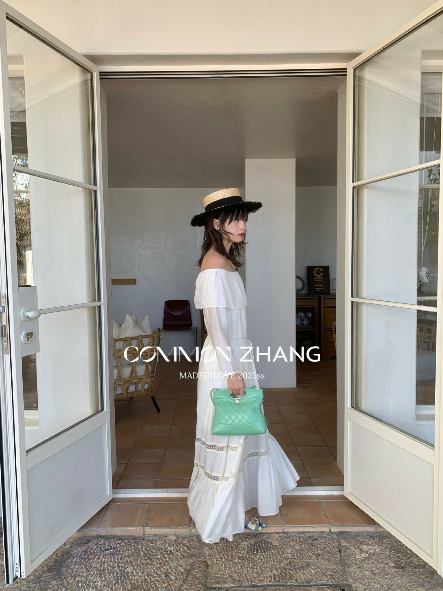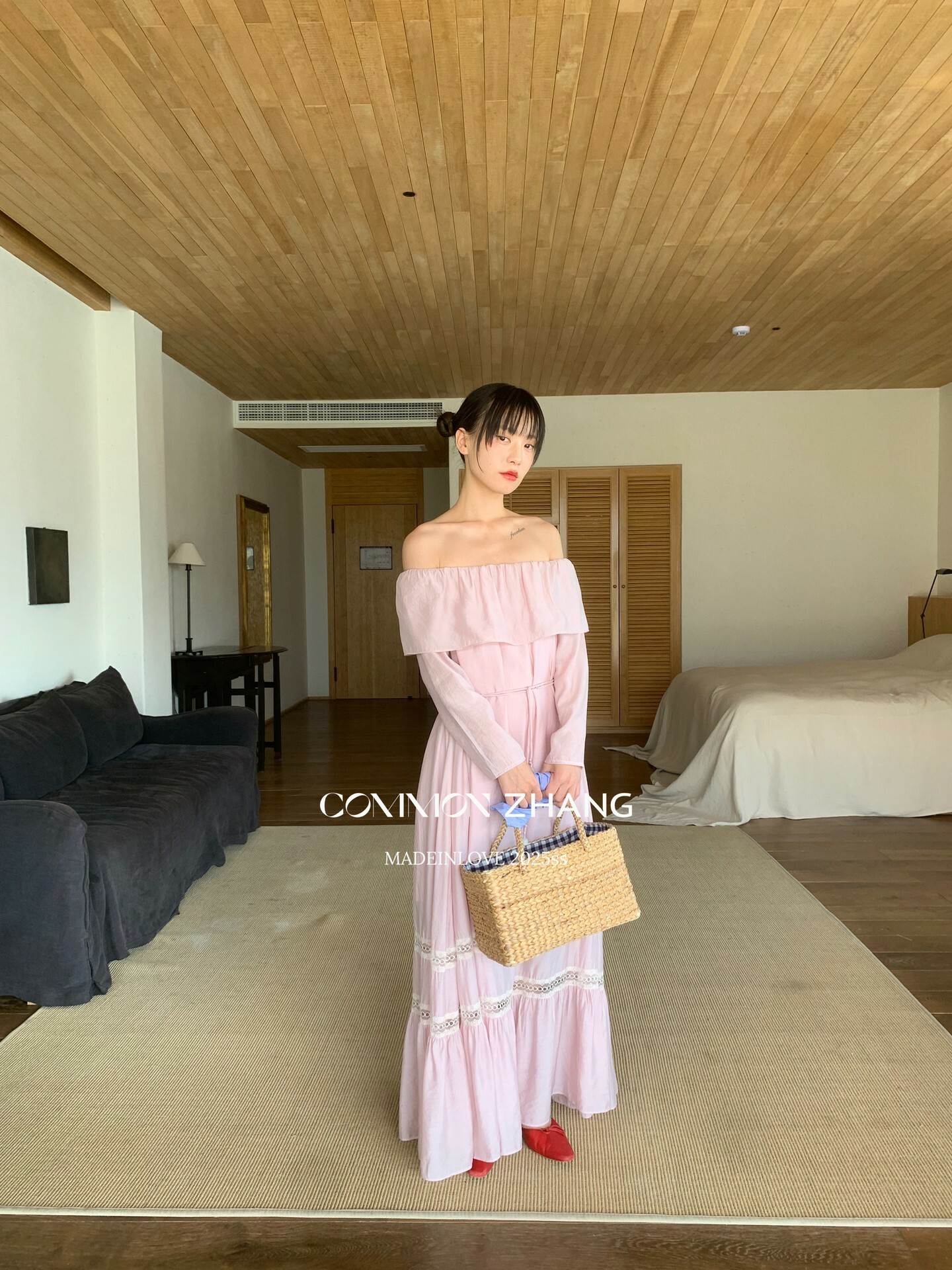 *o-ha-you*【FCZ106426】春季一字領性感露肩蕾絲微透繫帶收腰質感A字連衣裙洋裝-2色