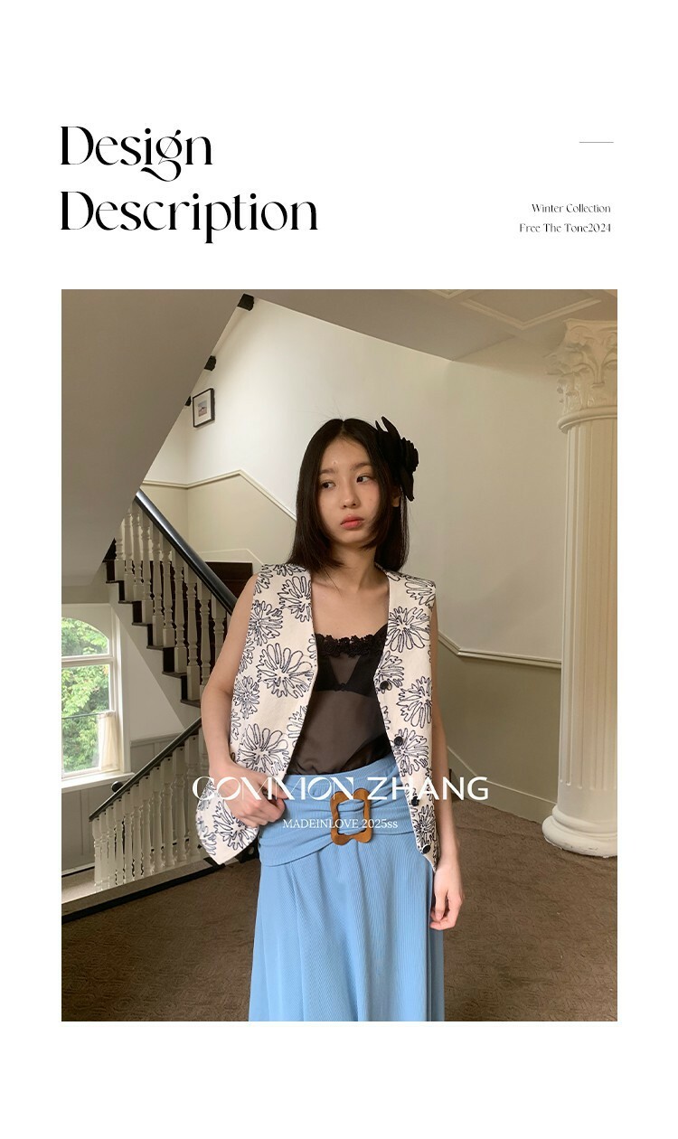 *o-ha-you*【FCZ107053】夏季新款復古風別緻花卉刺繡V領百搭開襟背心馬甲外套-2色-如有需要請先諮詢