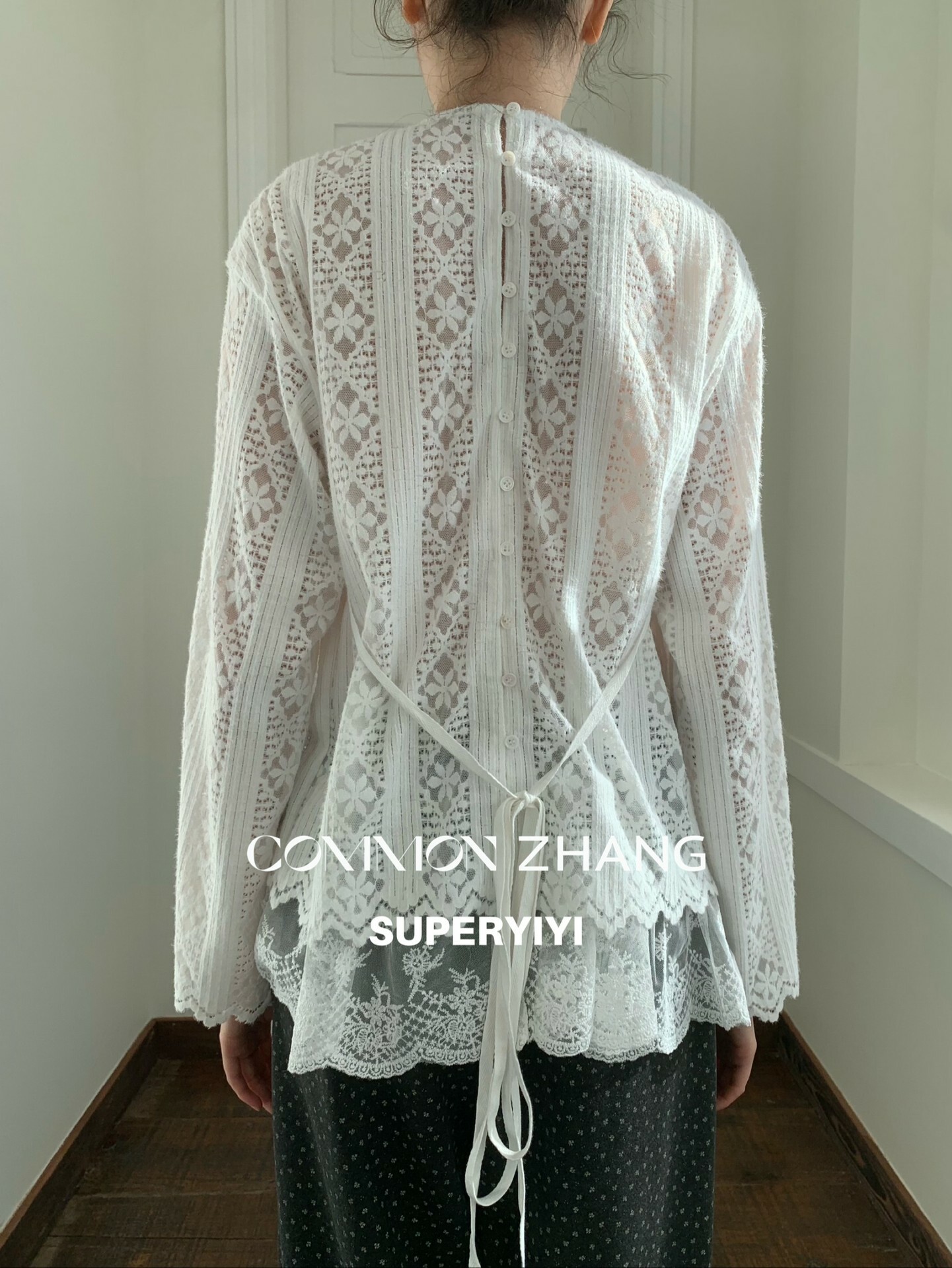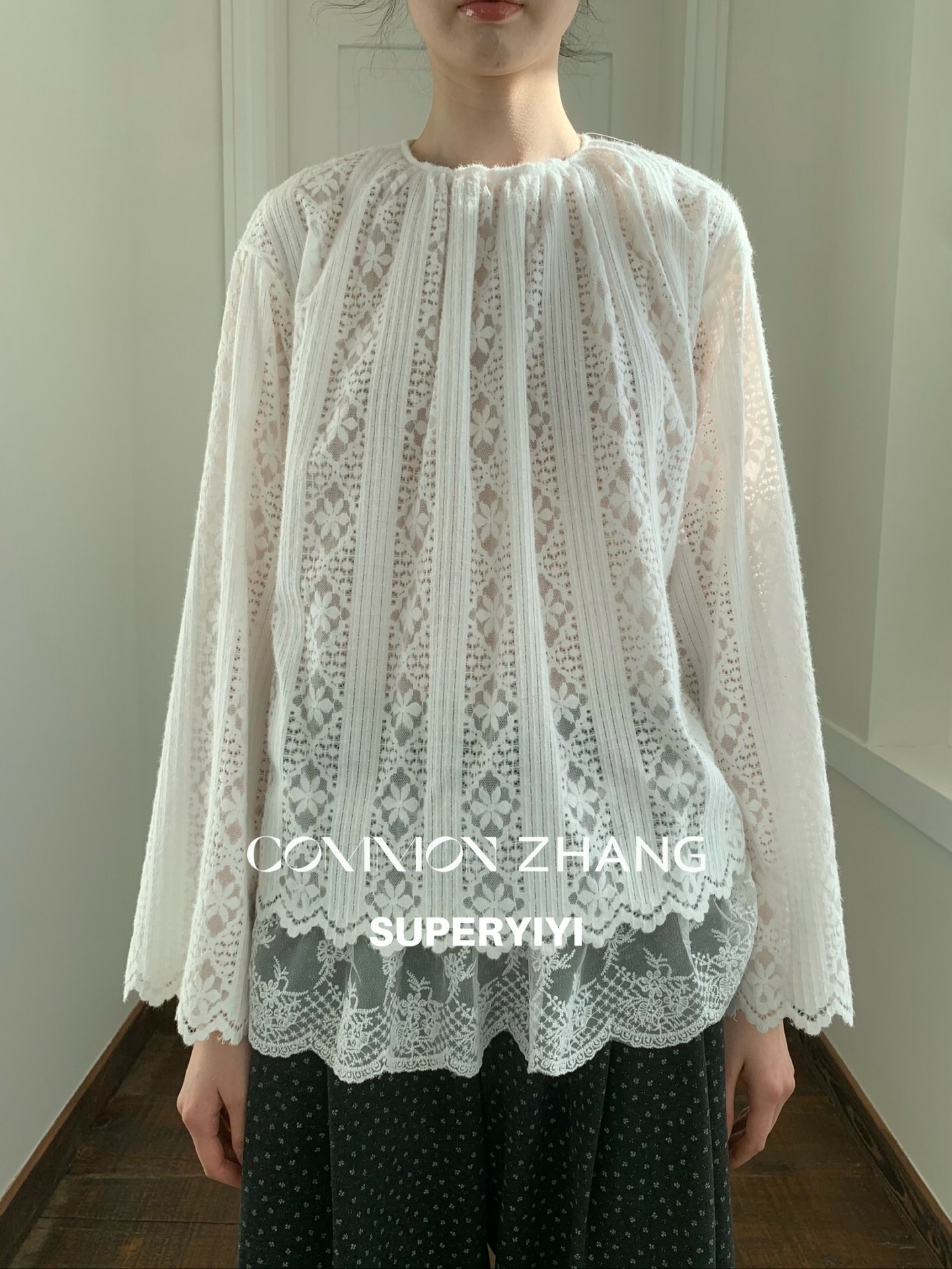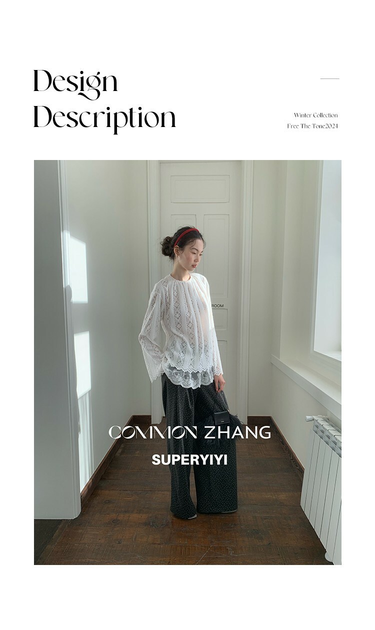 *o-ha-you*【FCZ403251-1】純色鏤空微透蕾絲拼接層次感圓領百搭內穿外搭小衫-黑色M有現貨