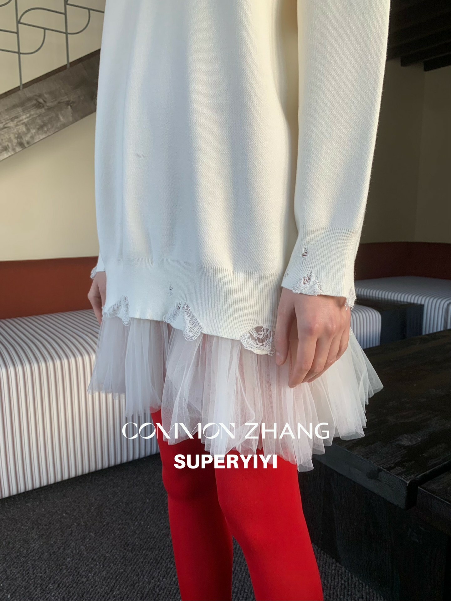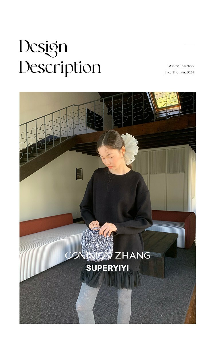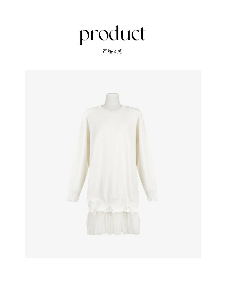 *o-ha-you*【FCZ405239】減齡加長寬鬆圓領純色百搭網紗拼接甜美質感毛衣-如有需要請先諮詢