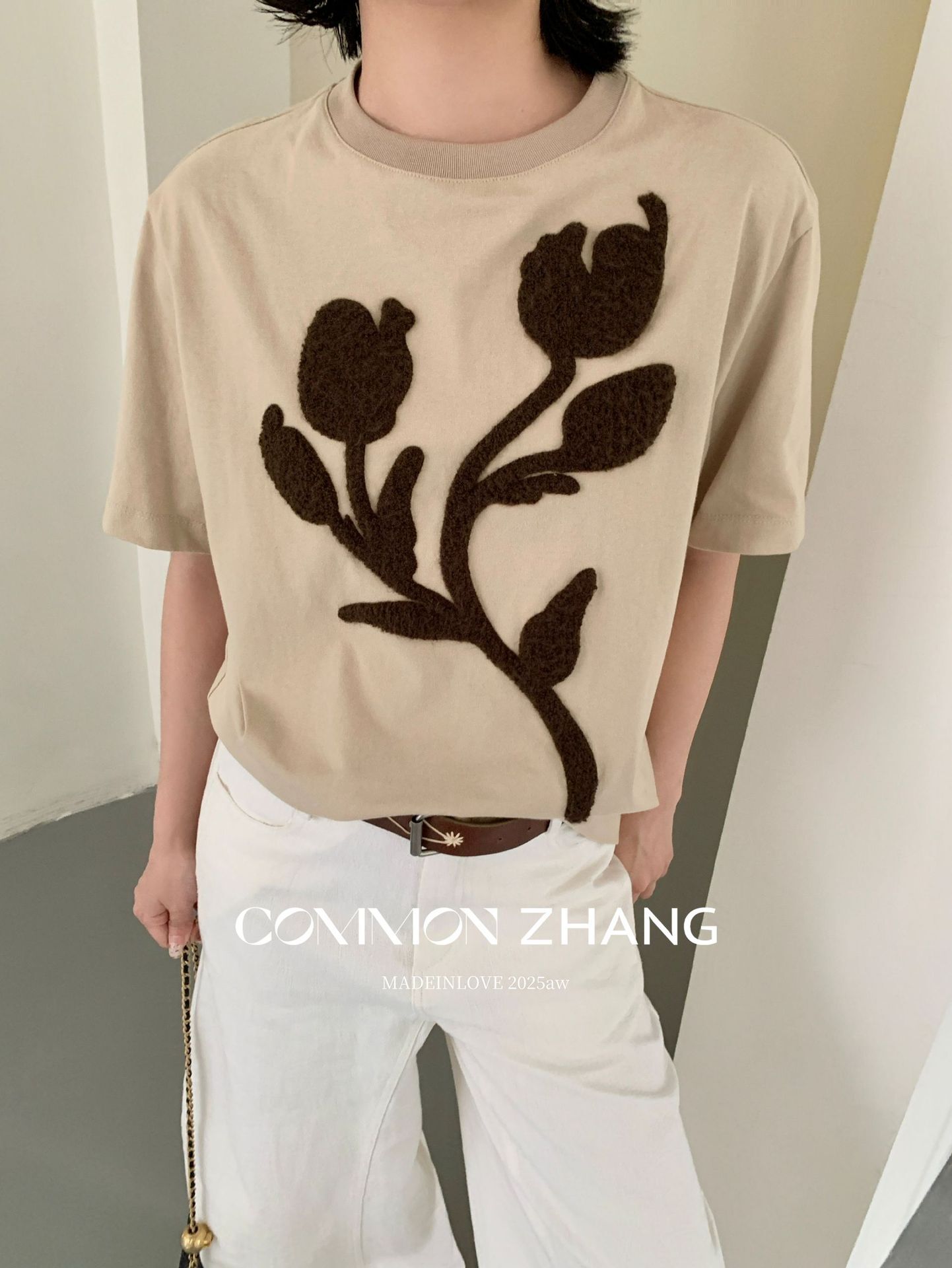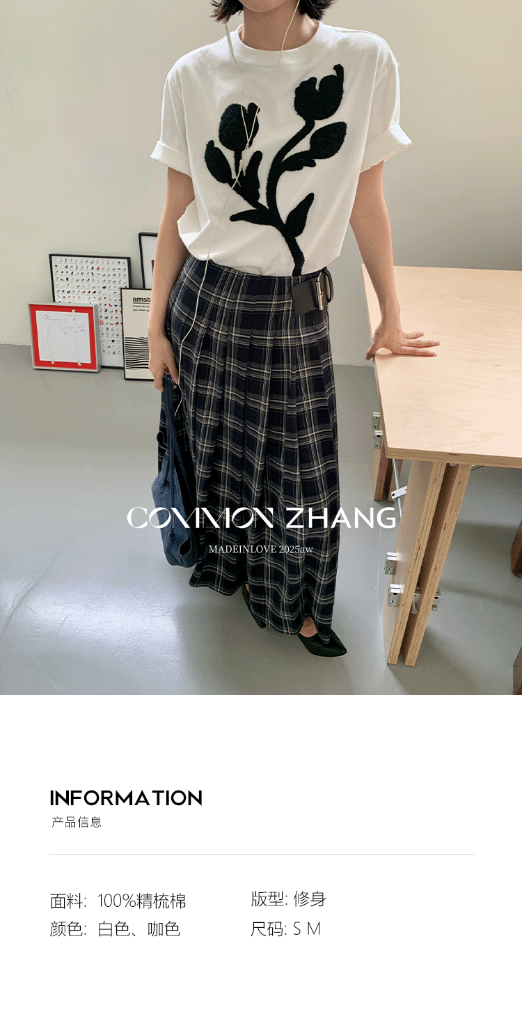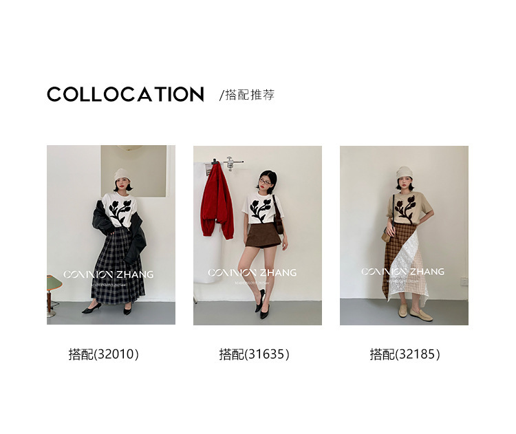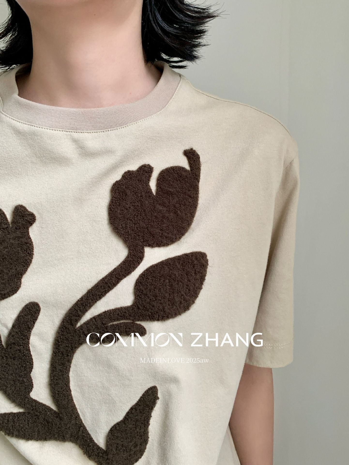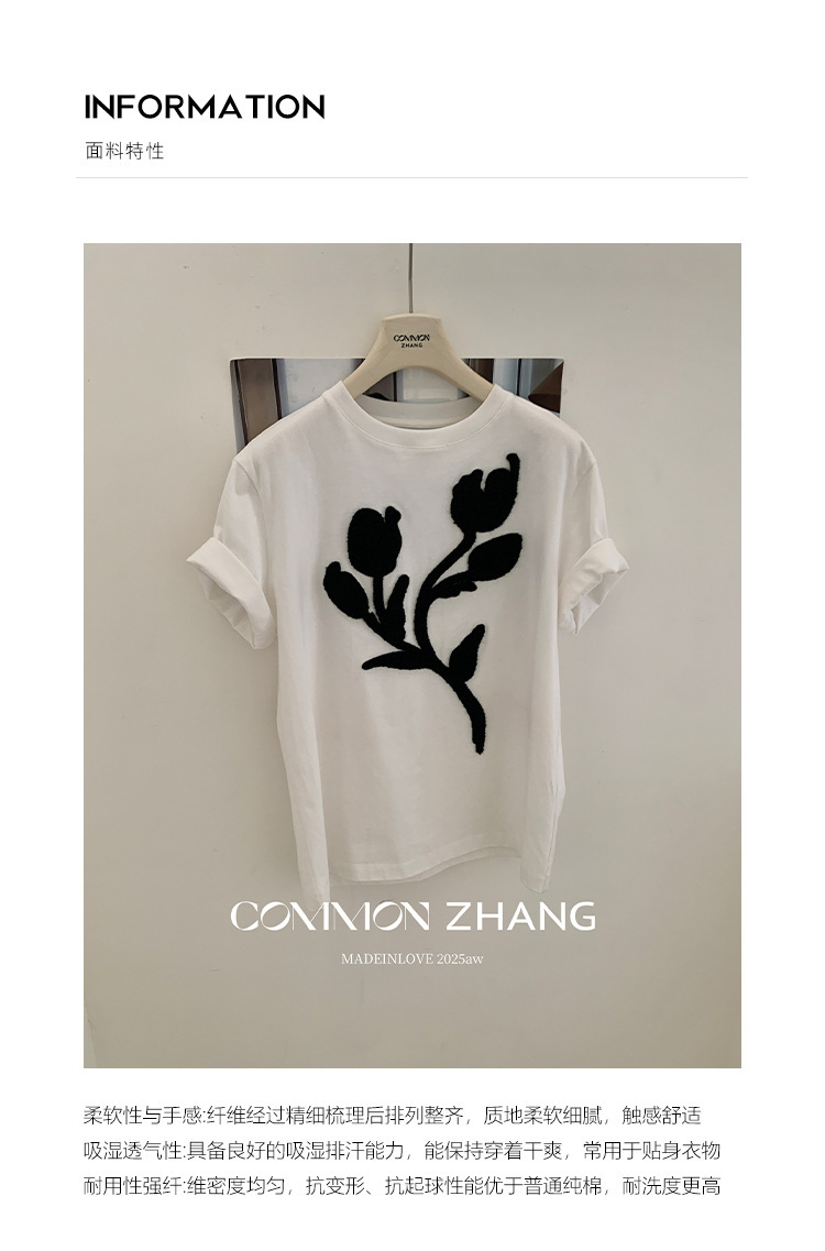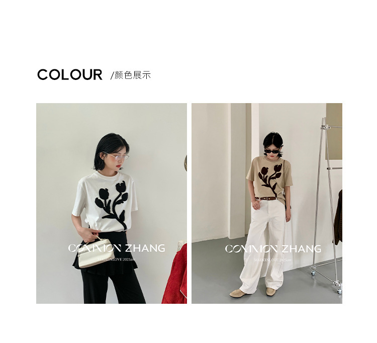 *o-ha-you*【FCZB300193】秋學院風撞色植絨花朵正肩T恤寬鬆休閒百搭打底上衣-2色