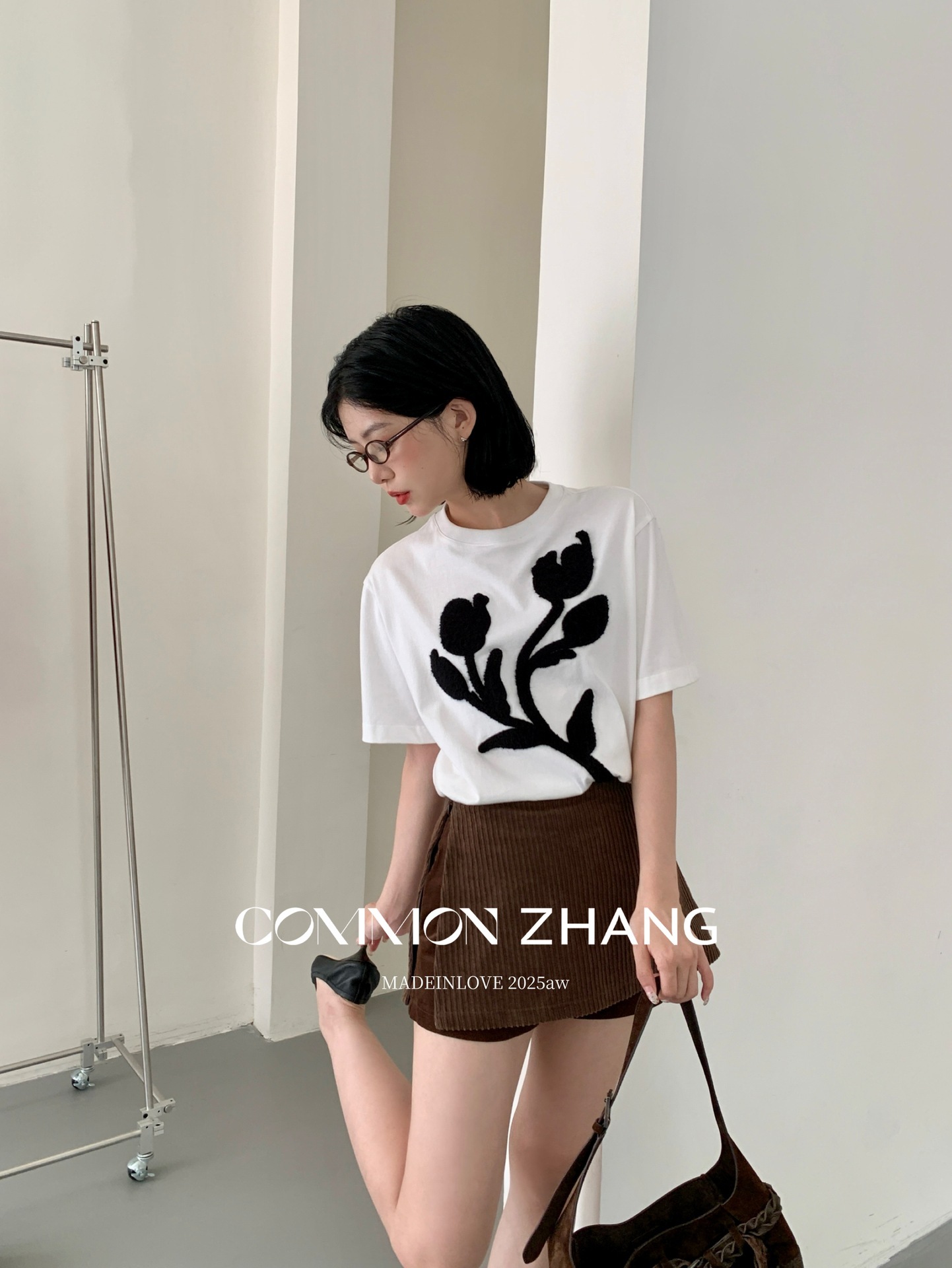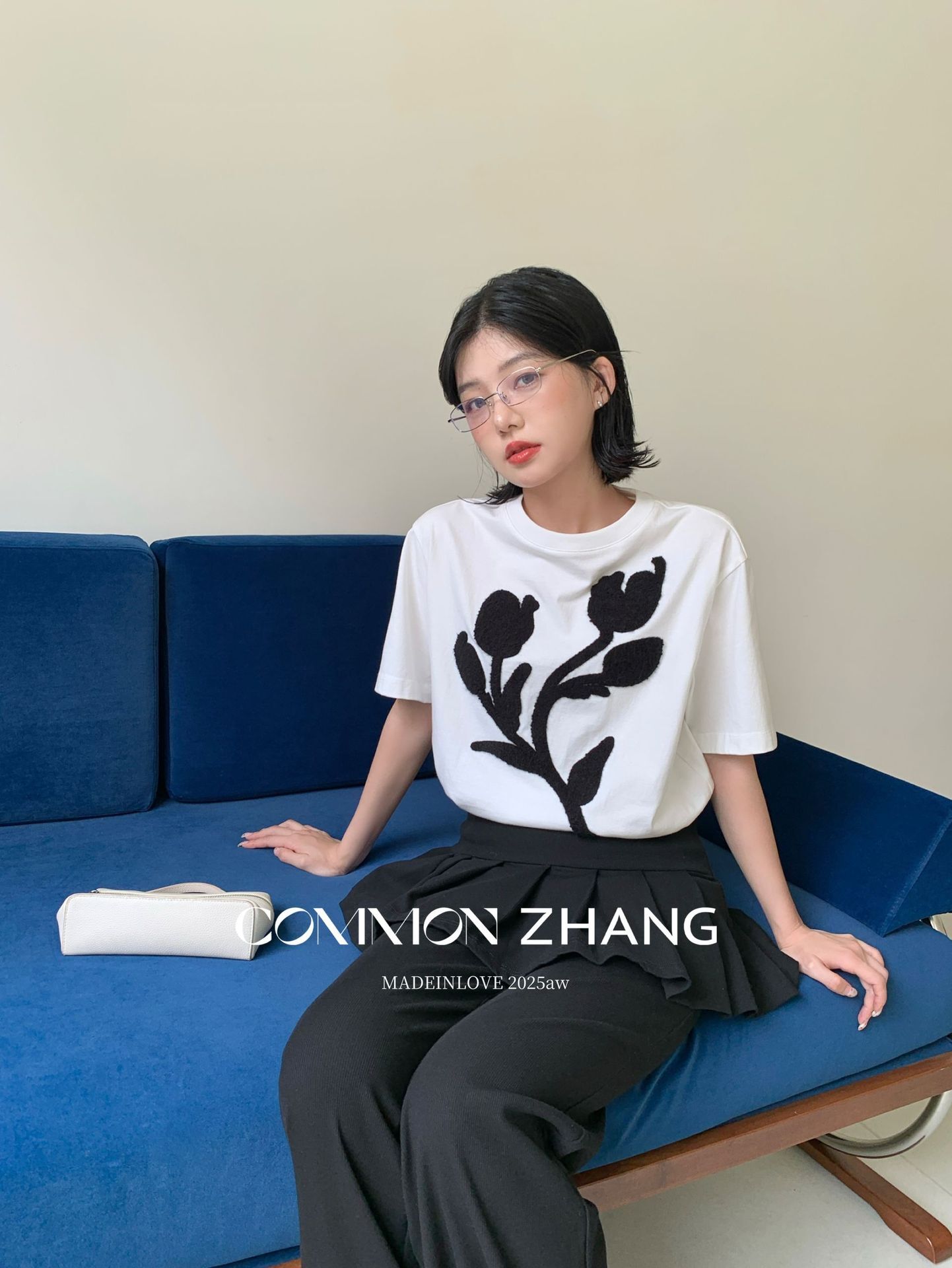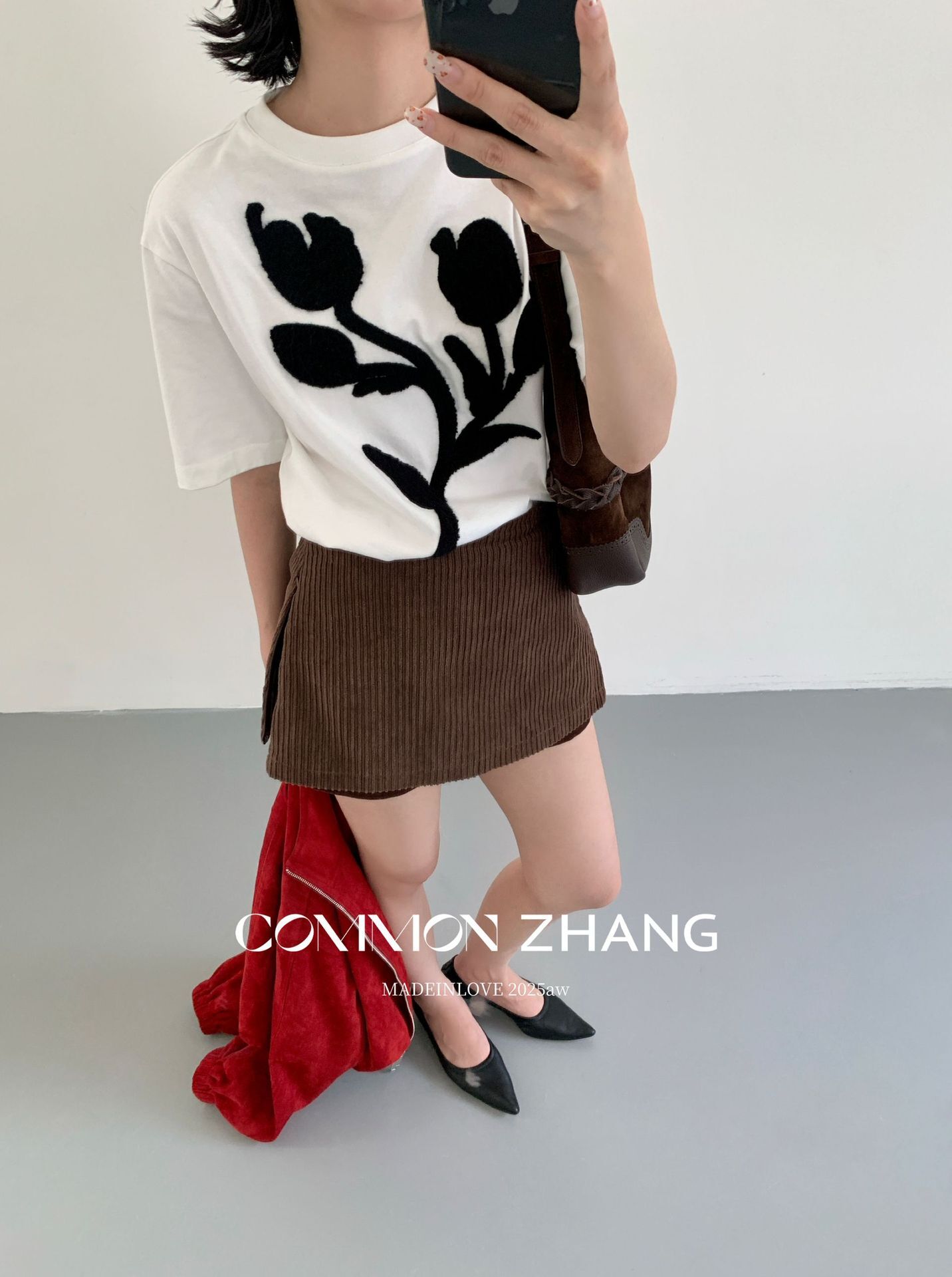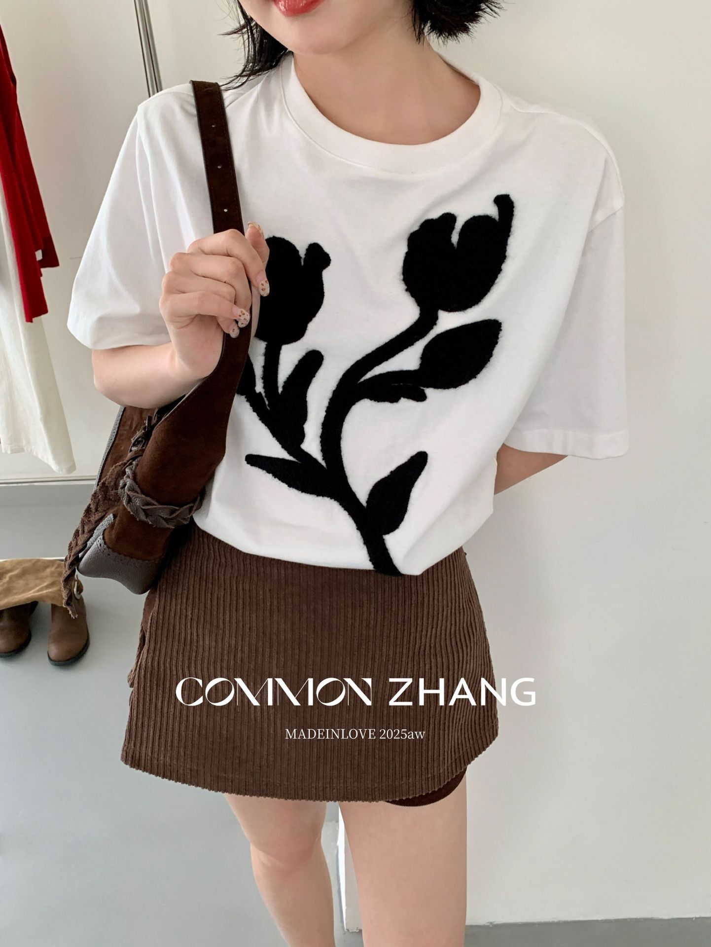*o-ha-you*【FCZB300193】秋學院風撞色植絨花朵正肩T恤寬鬆休閒百搭打底上衣-2色