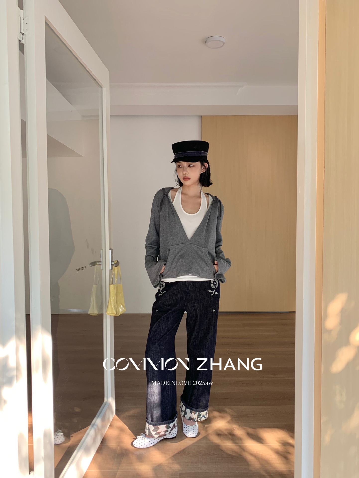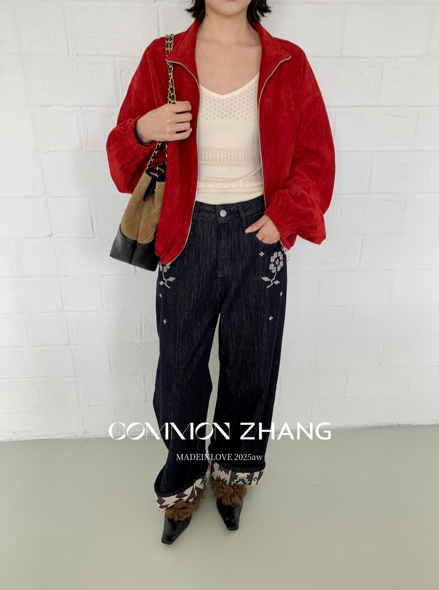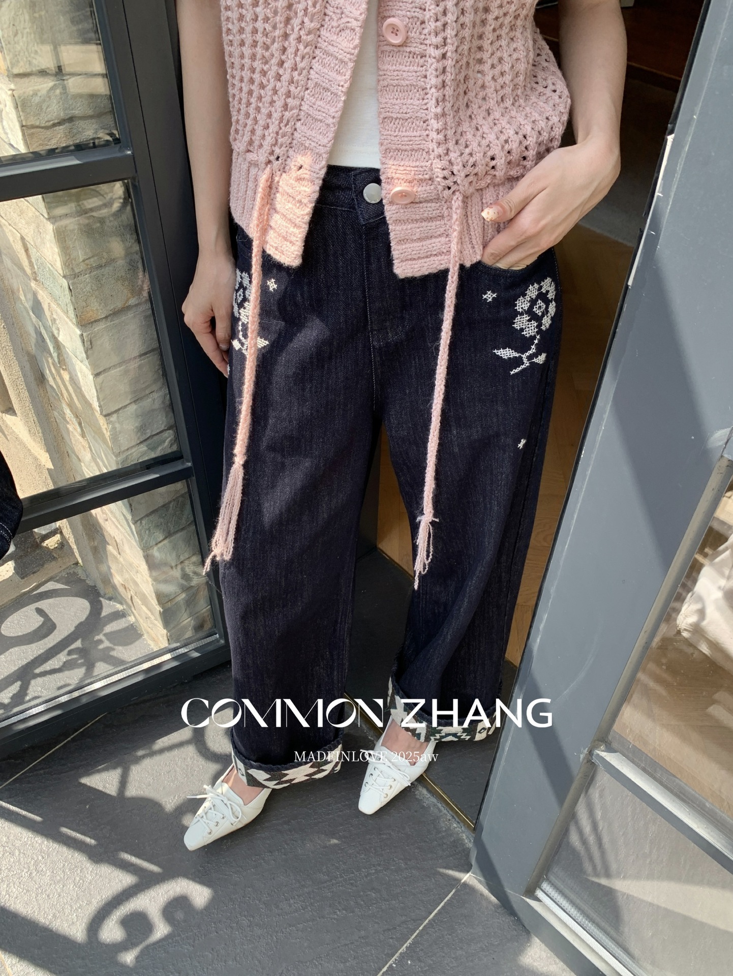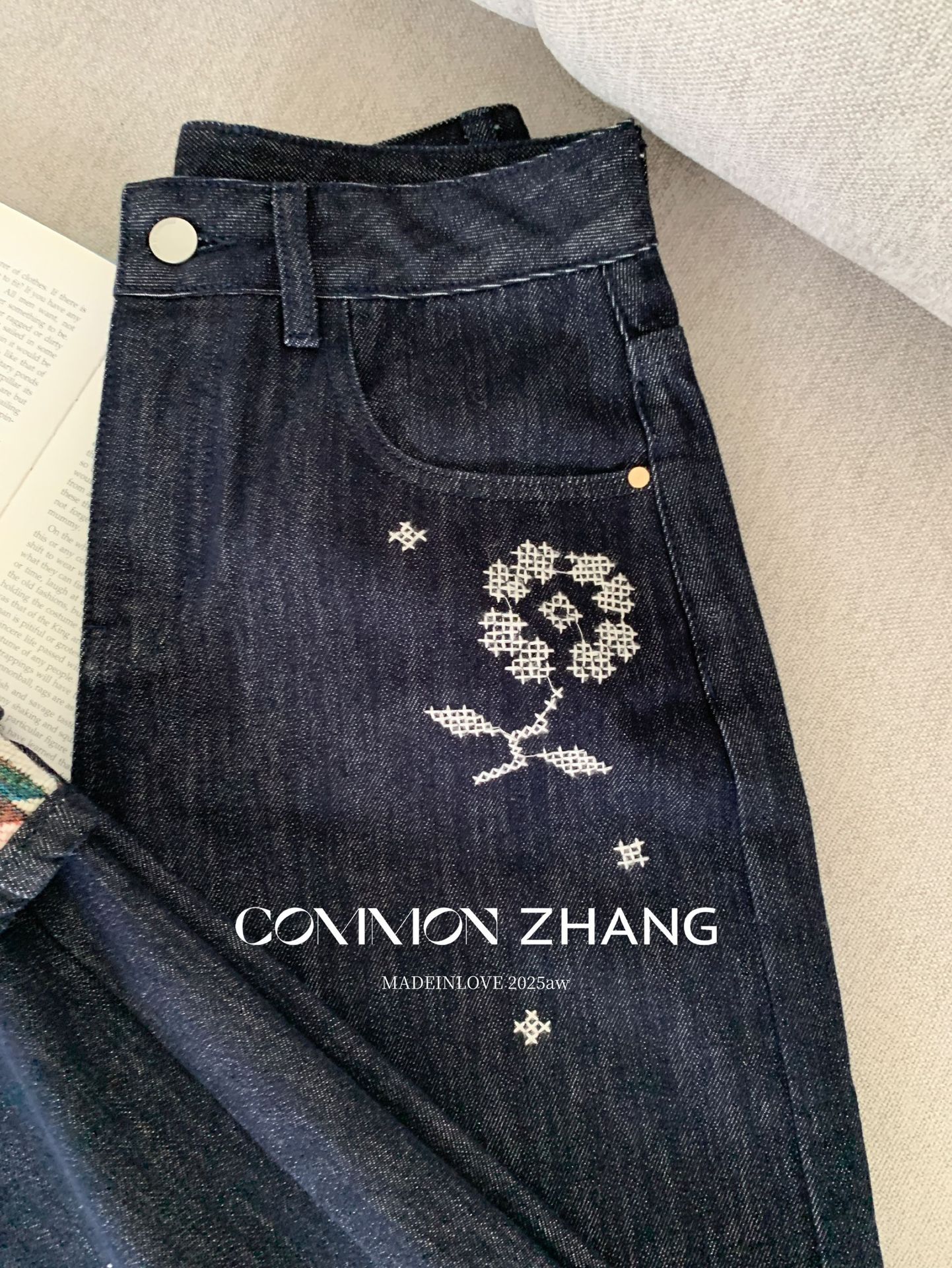 *o-ha-you*【FCZB301162】秋韓版學院風直筒繡花牛仔褲百搭拖地休閒老爹褲