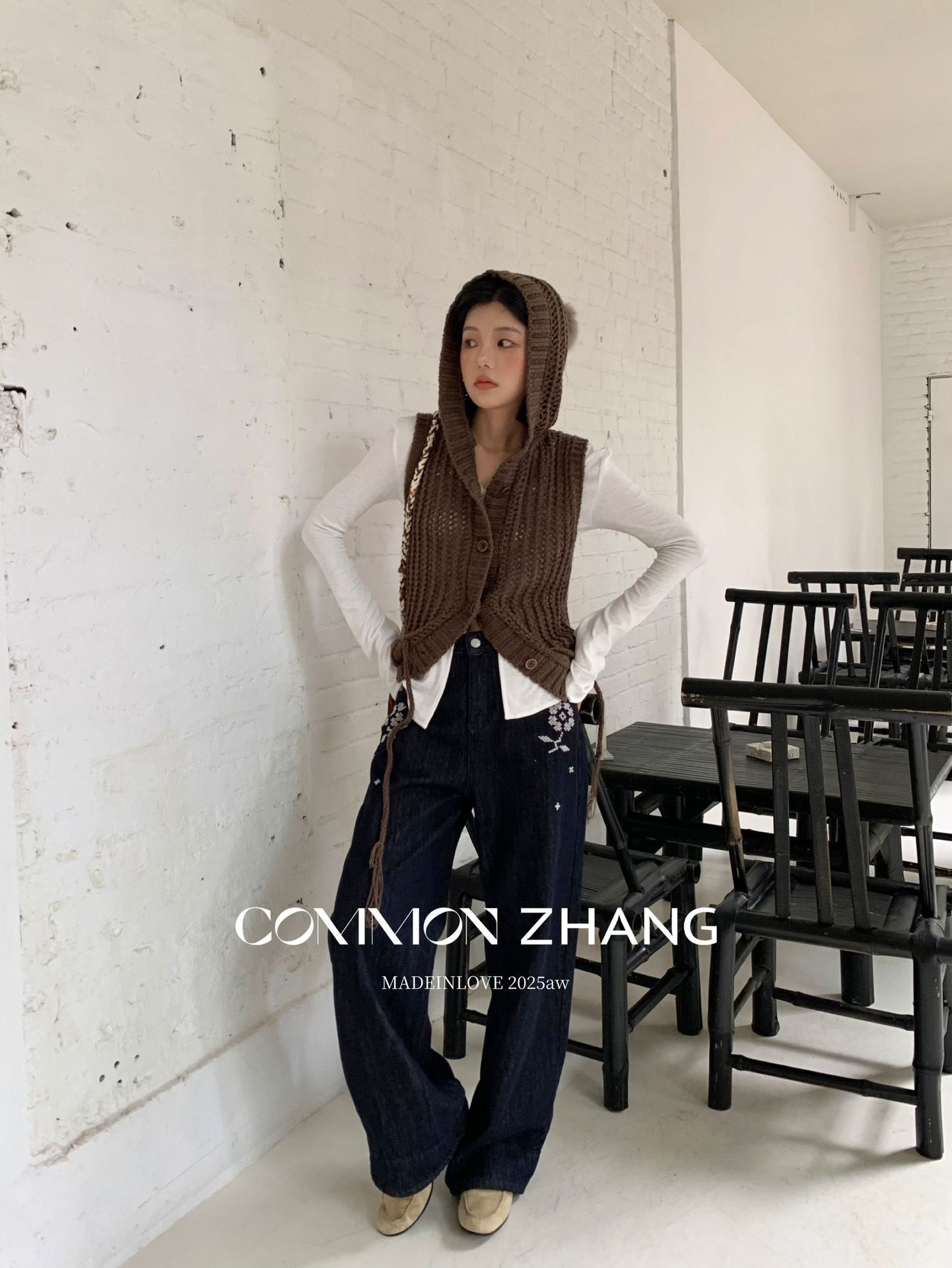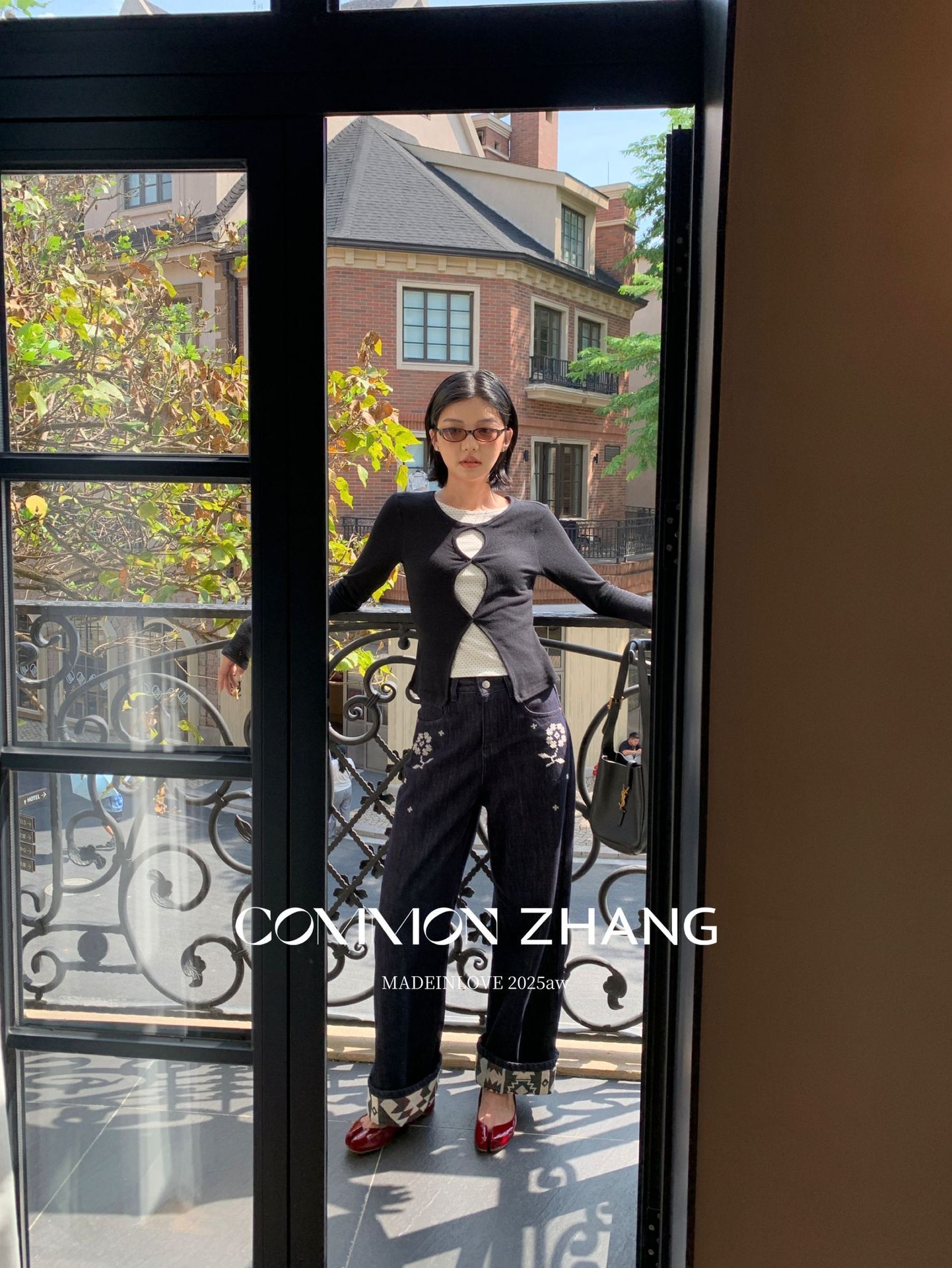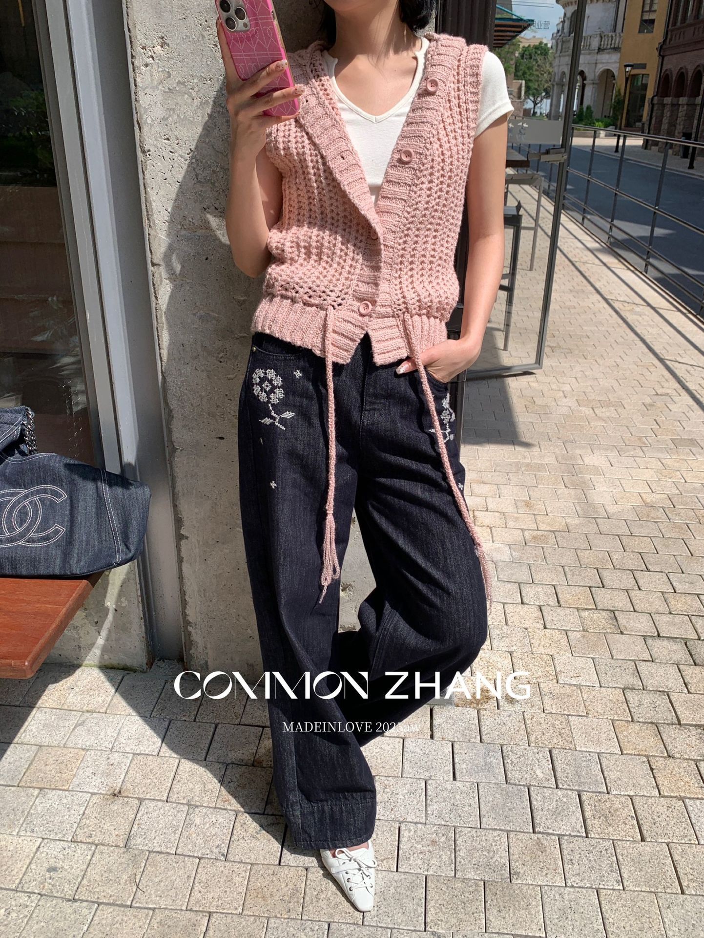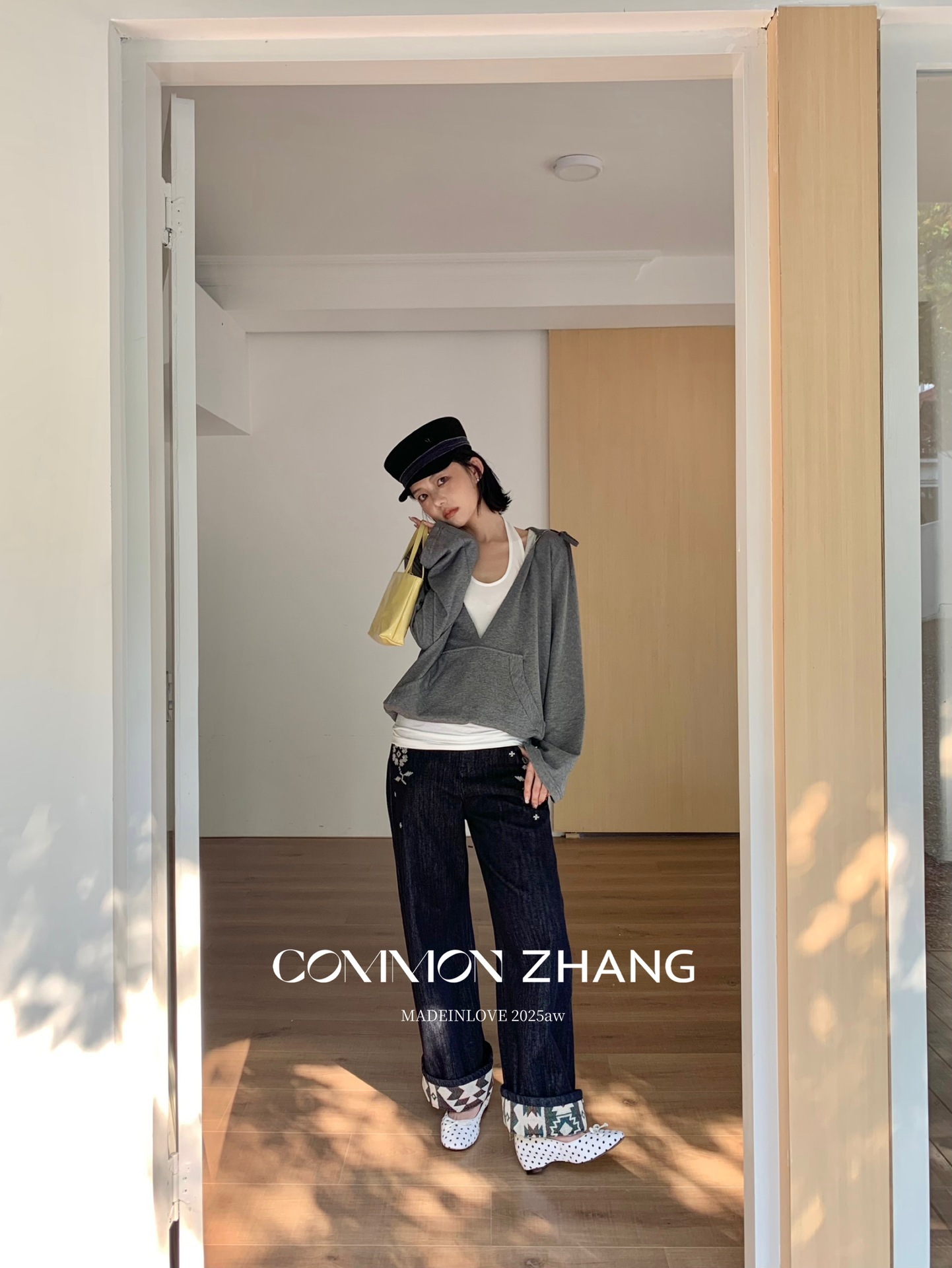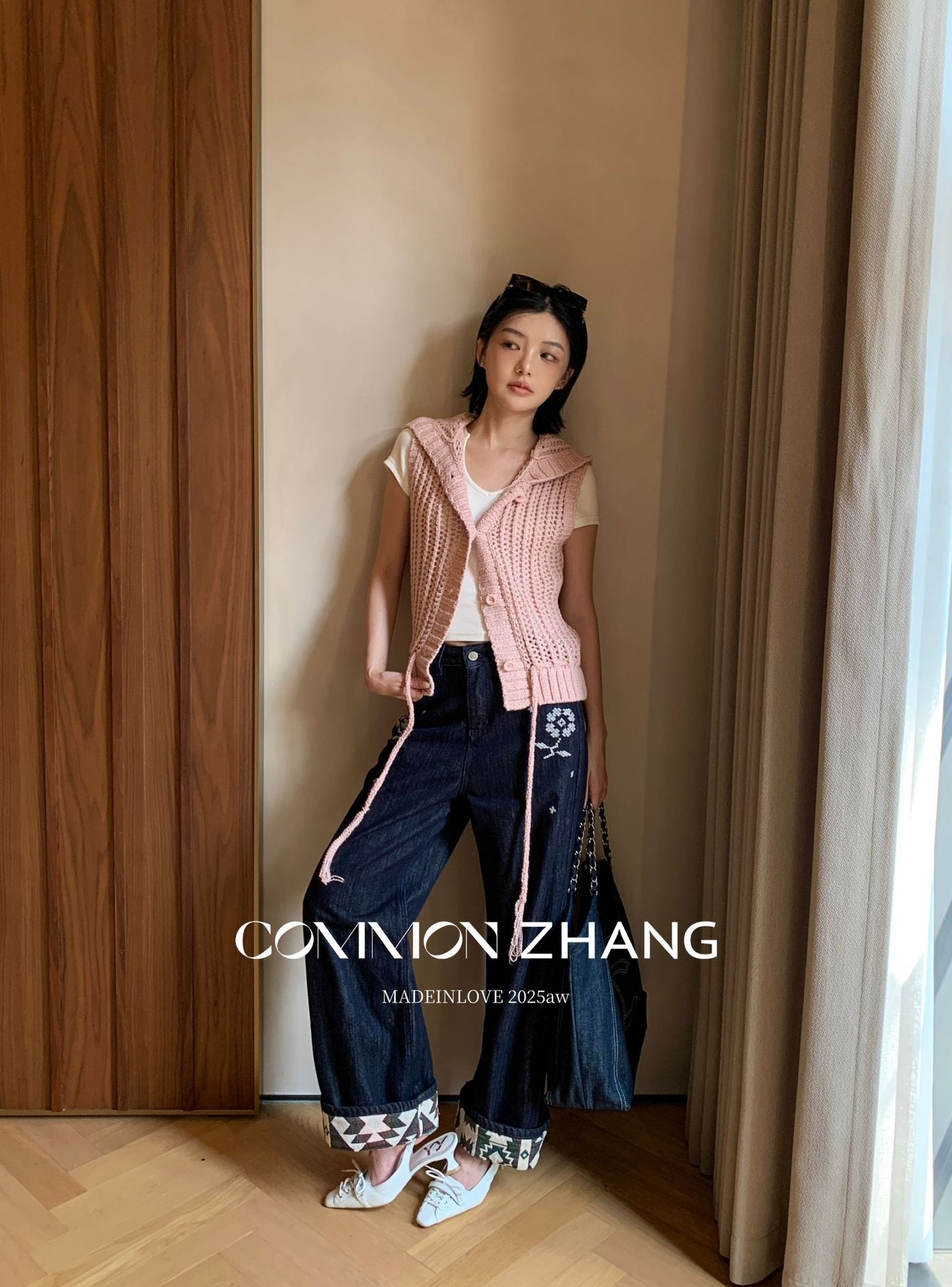 *o-ha-you*【FCZB301162】秋韓版學院風直筒繡花牛仔褲百搭拖地休閒老爹褲