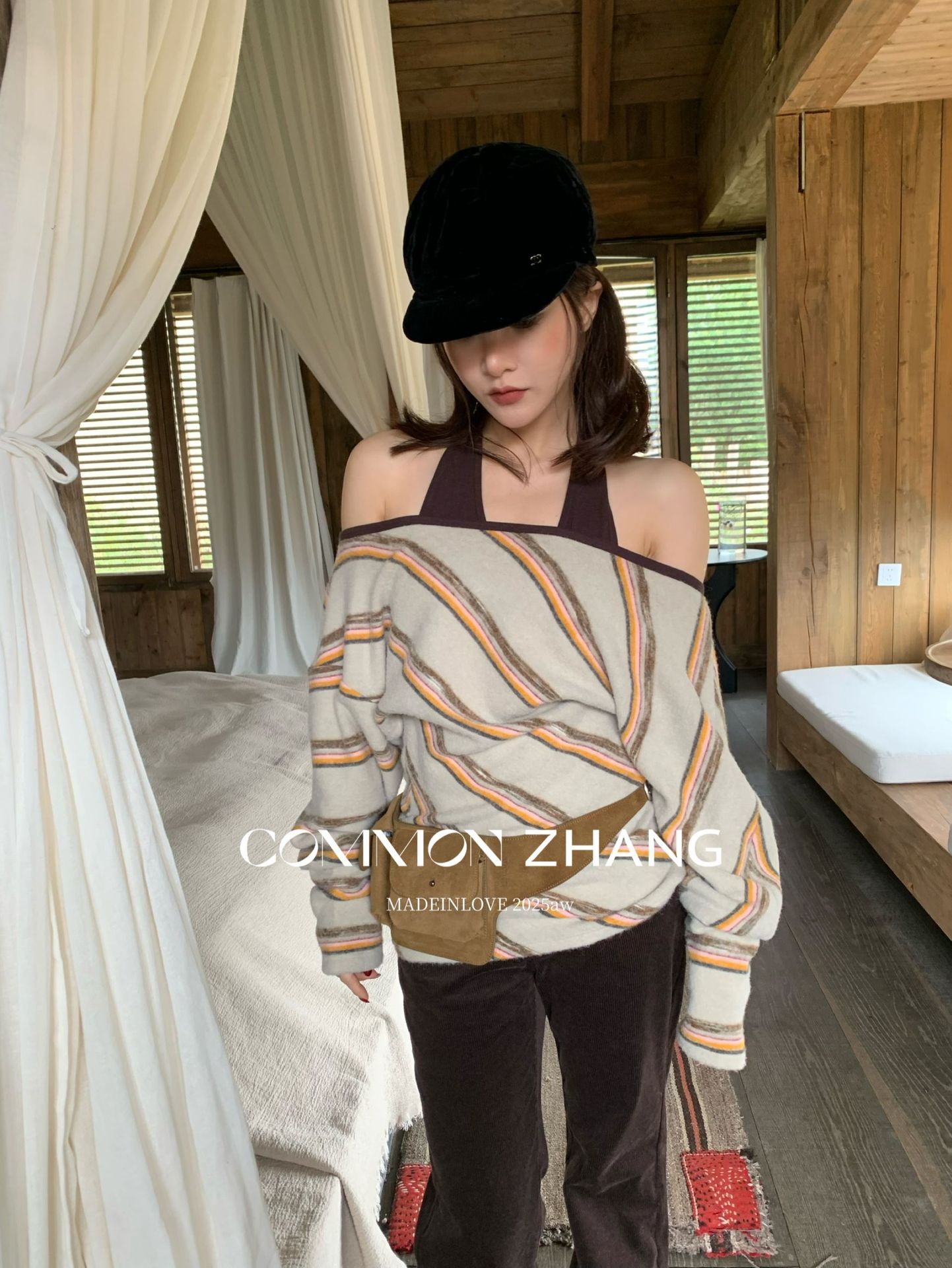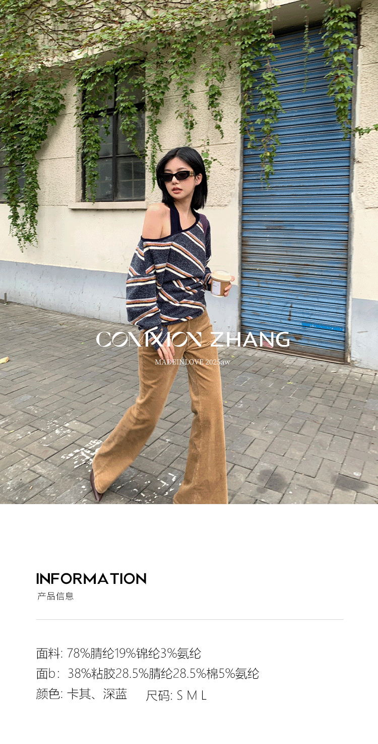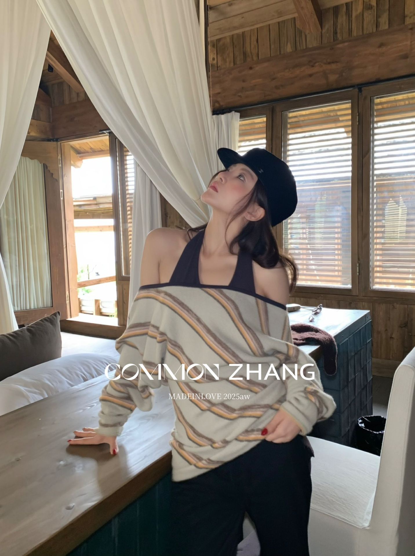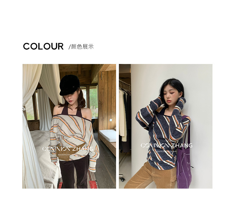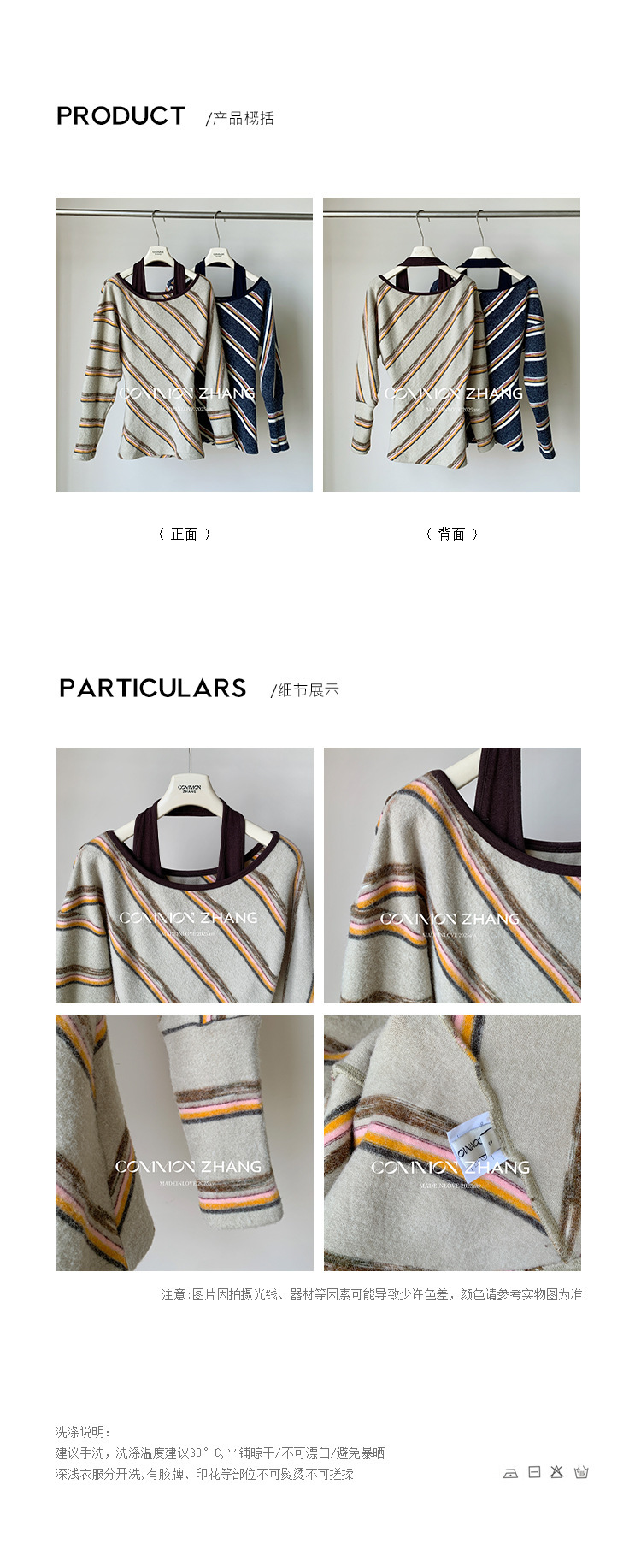 *o-ha-you*【FCZB303935】秋假兩件撞色拼接條紋掛脖長袖打底衫休閒上衣-2色