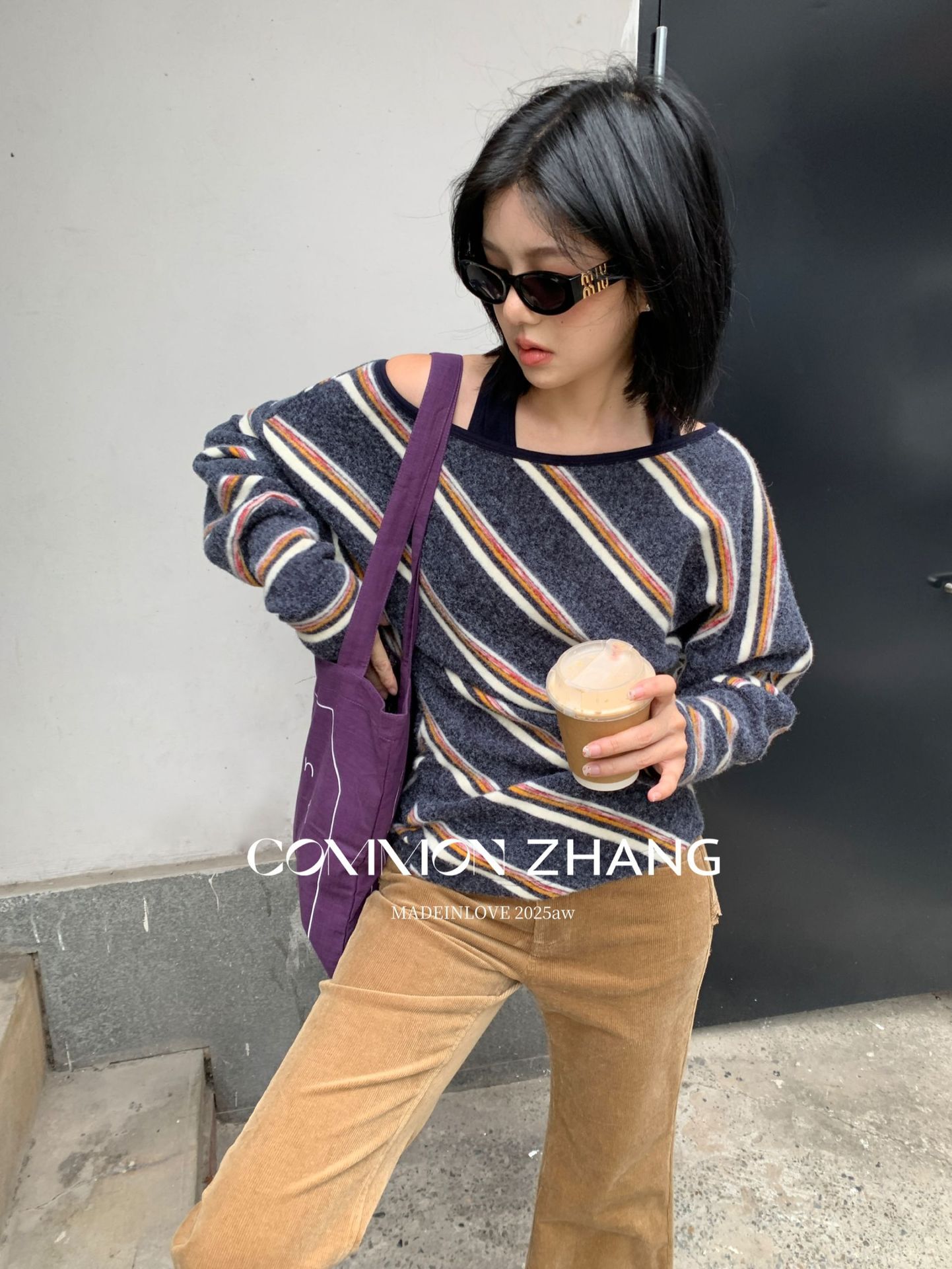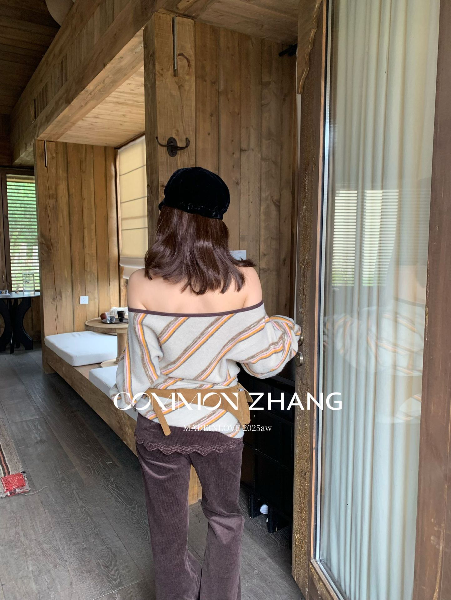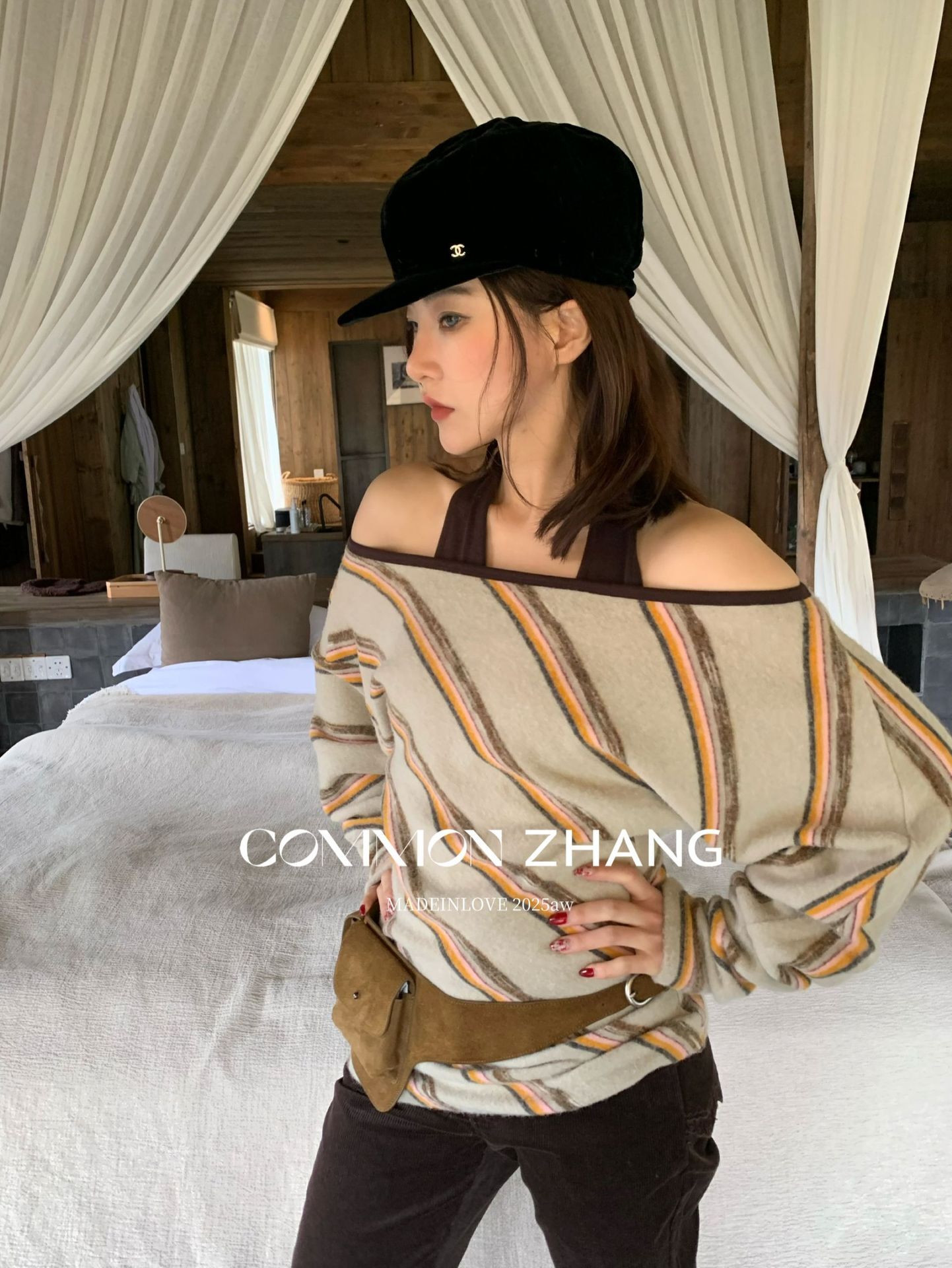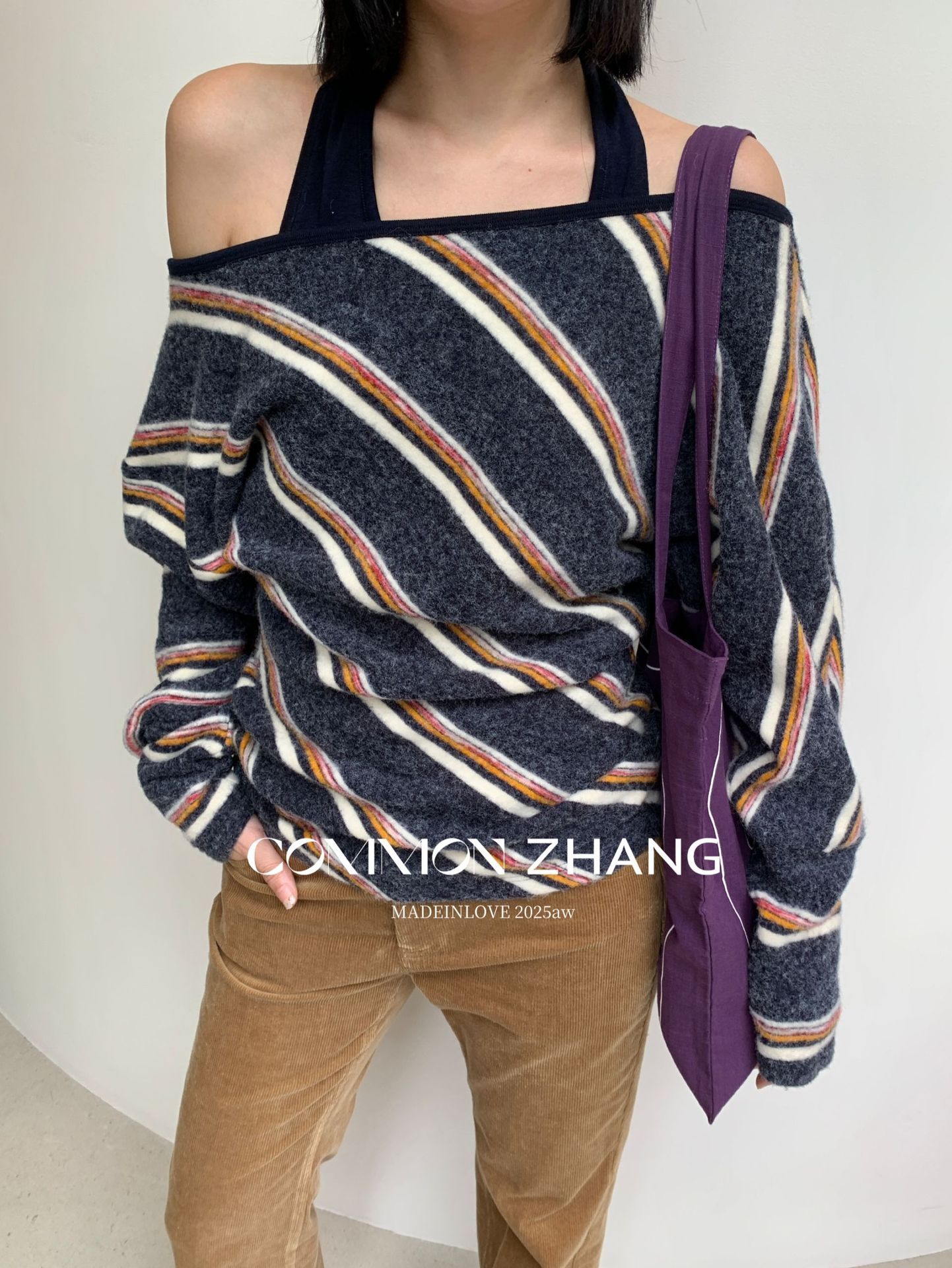 *o-ha-you*【FCZB303935】秋假兩件撞色拼接條紋掛脖長袖打底衫休閒上衣-2色