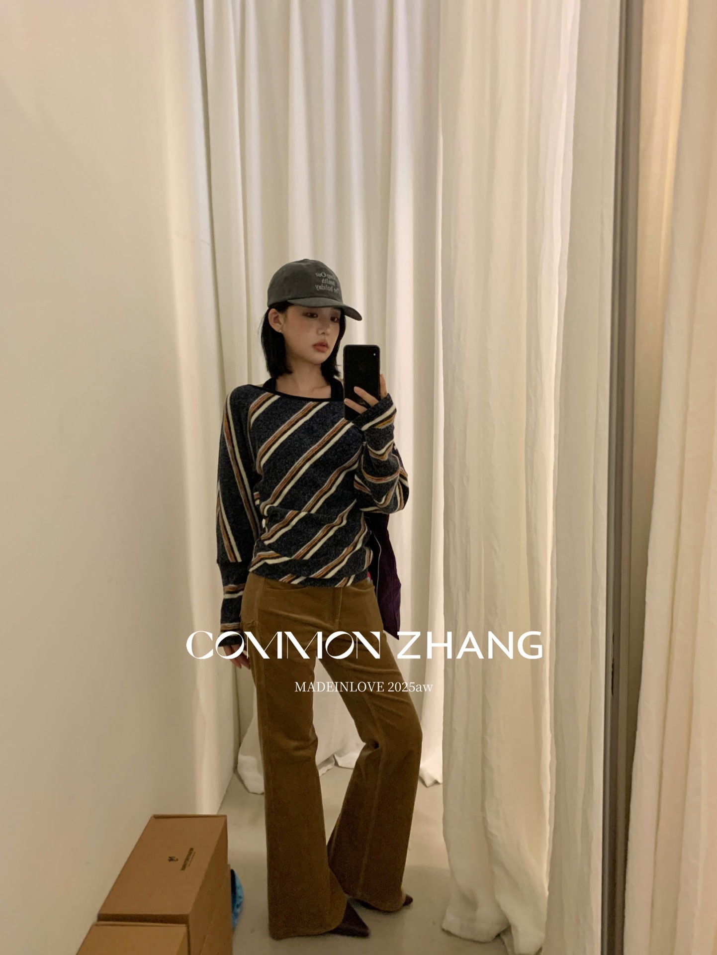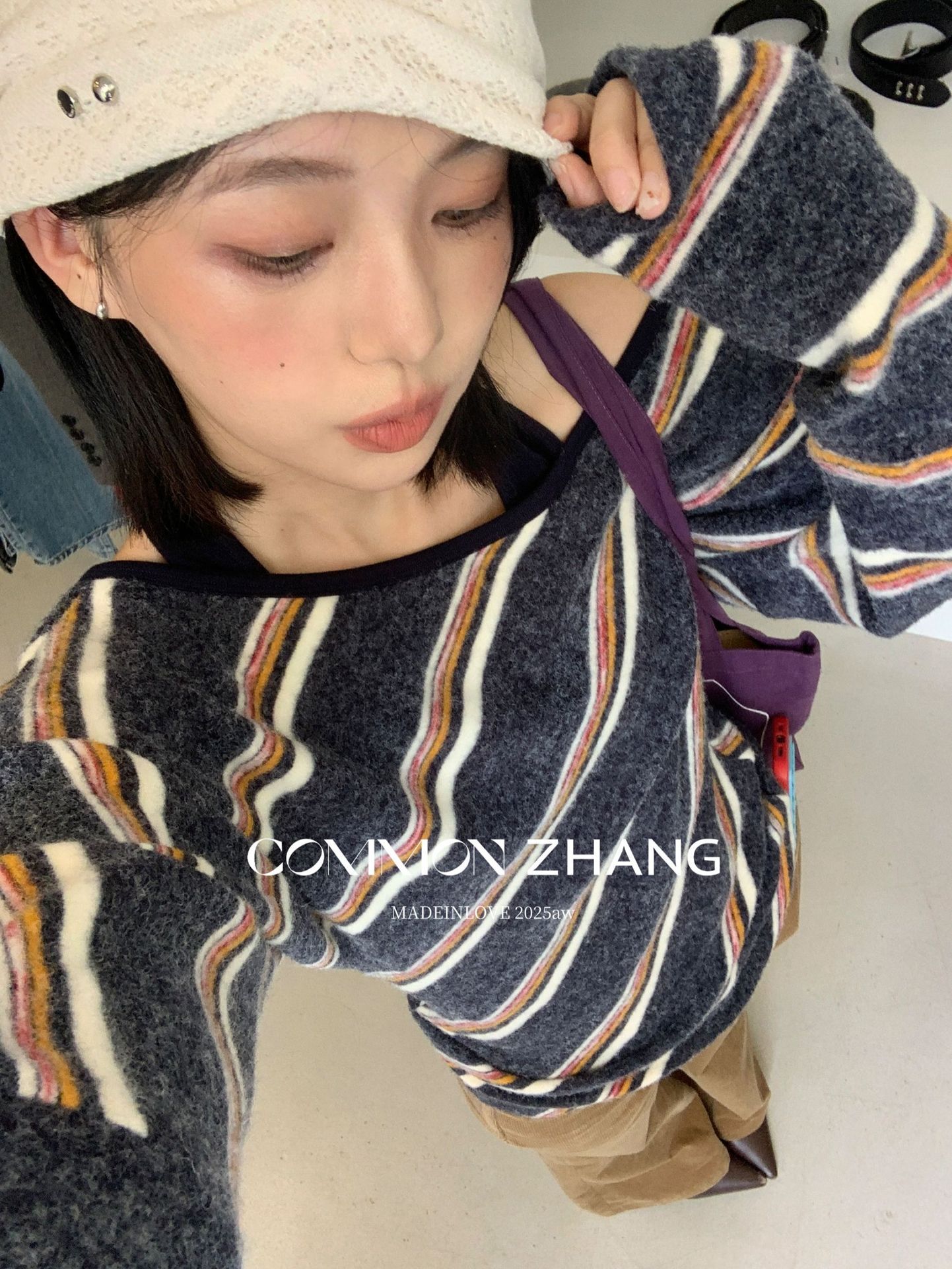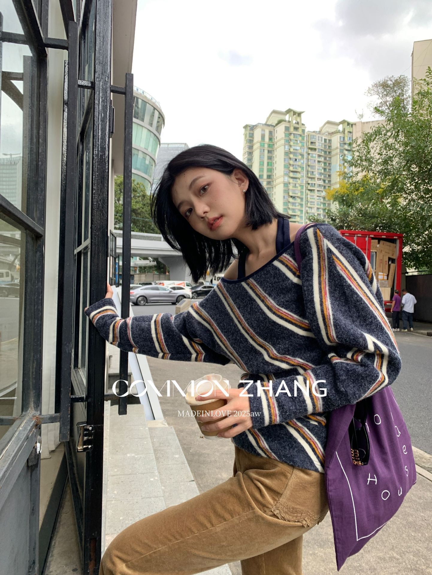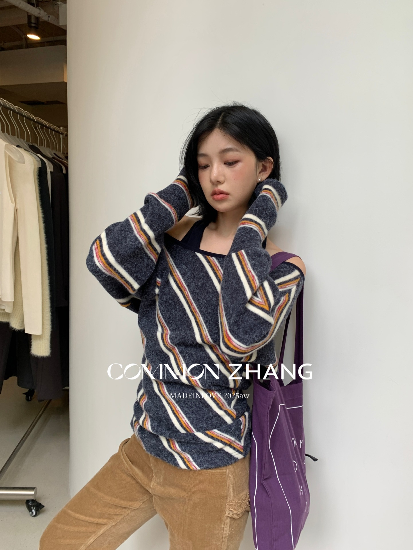 *o-ha-you*【FCZB303935】秋假兩件撞色拼接條紋掛脖長袖打底衫休閒上衣-2色