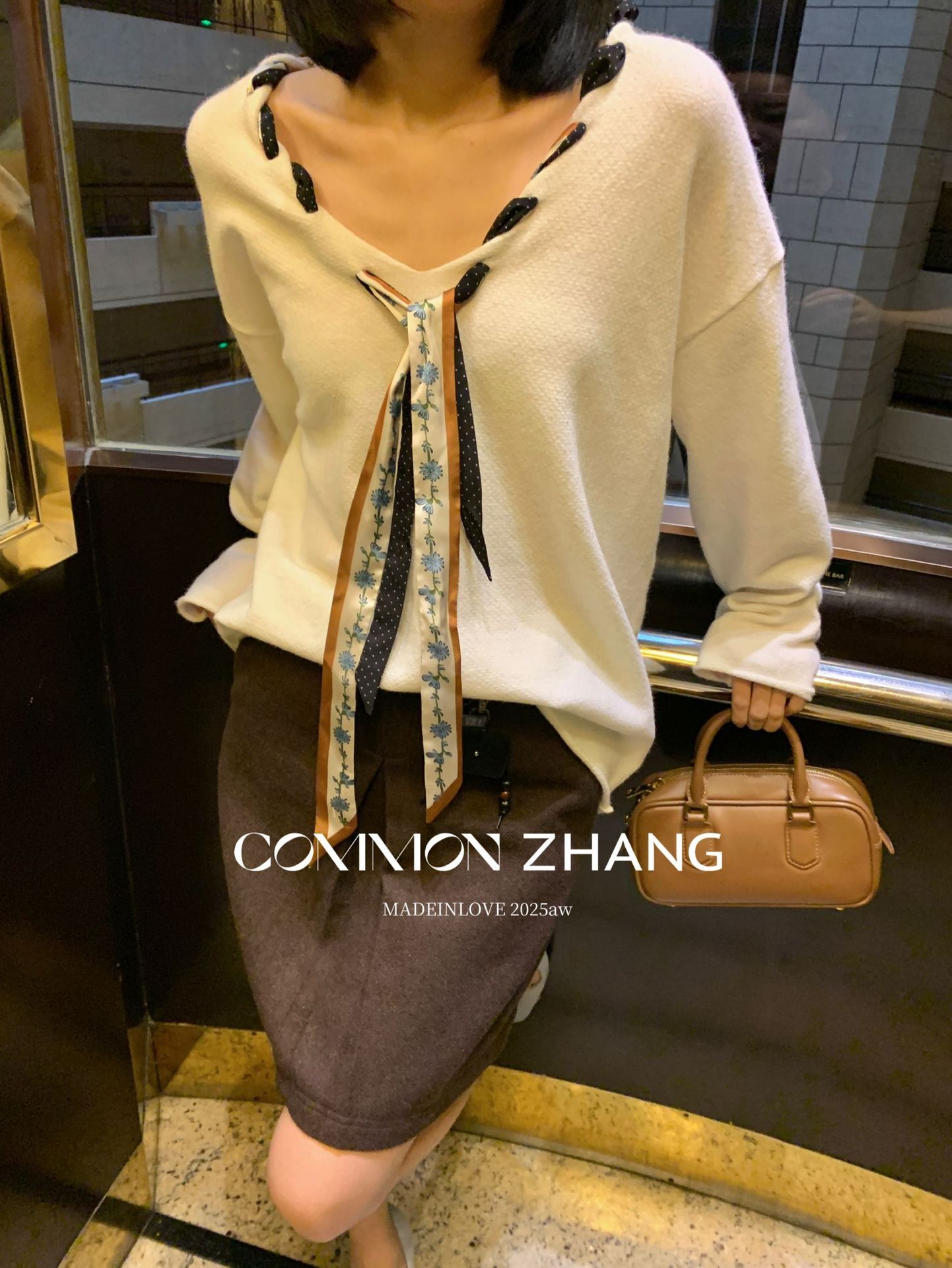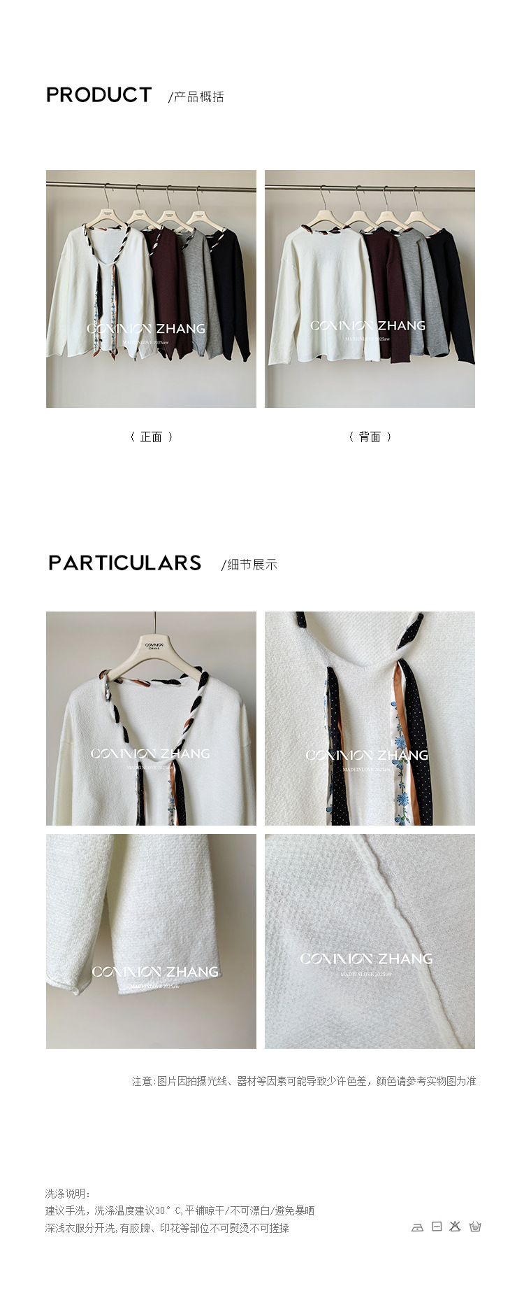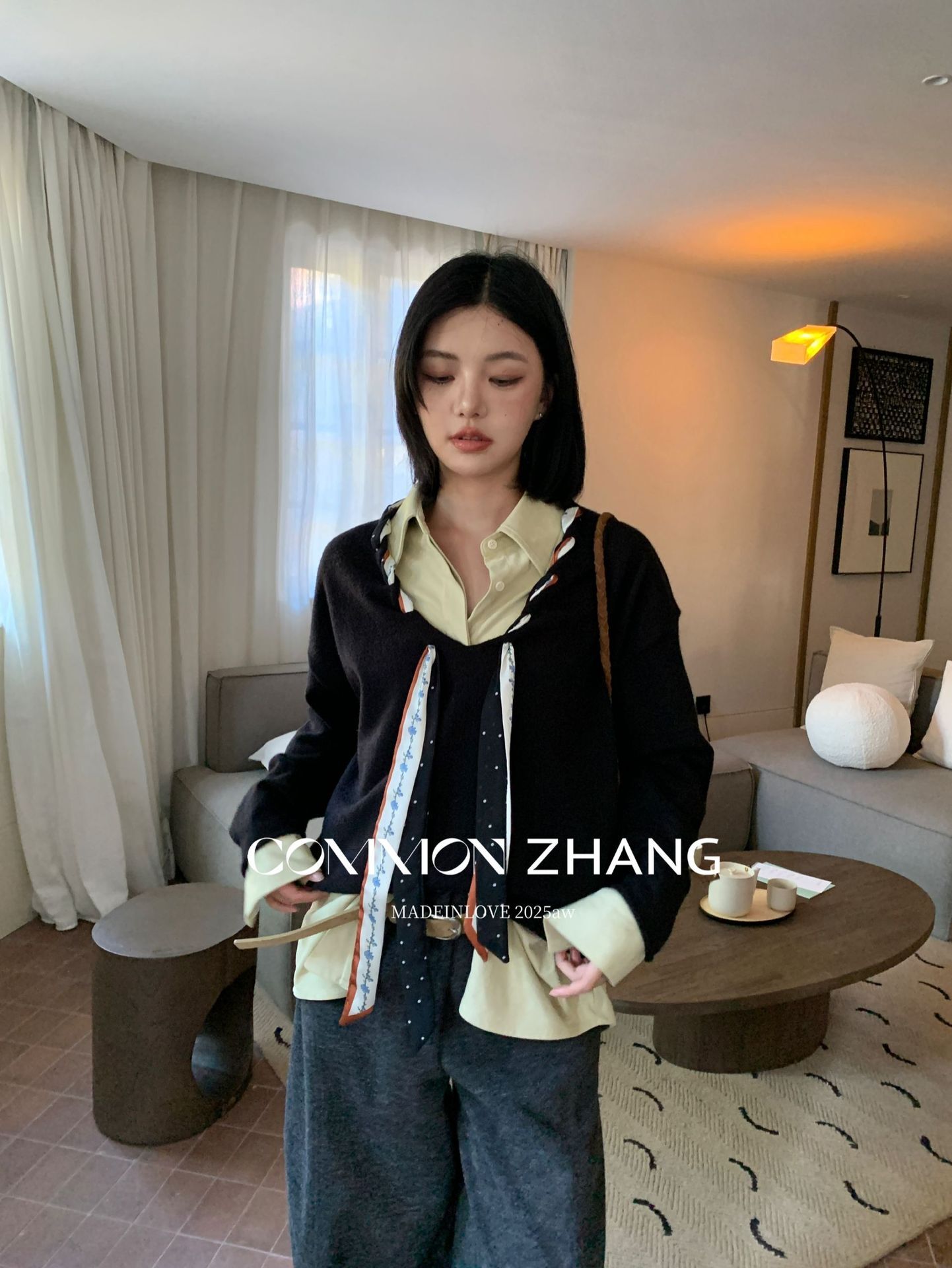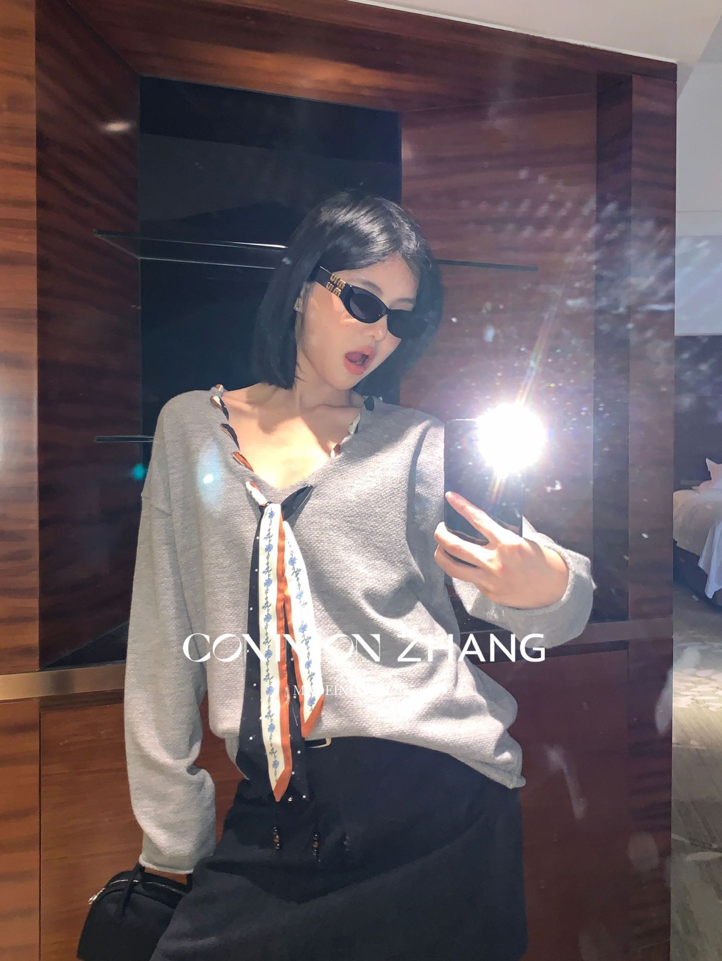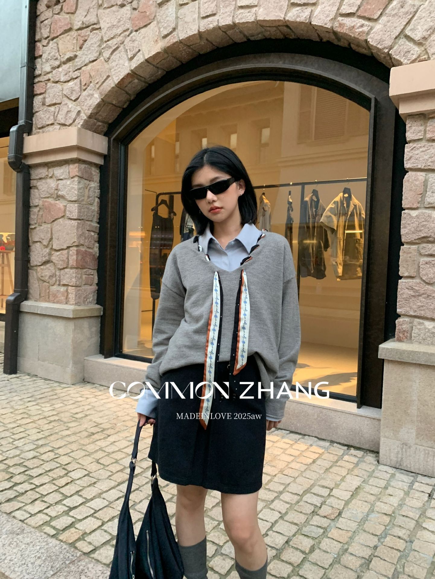 *o-ha-you*【FCZB305357】秋冬V領拼接絲巾毛衣女學院風寬鬆休閒套頭針織衫-4色