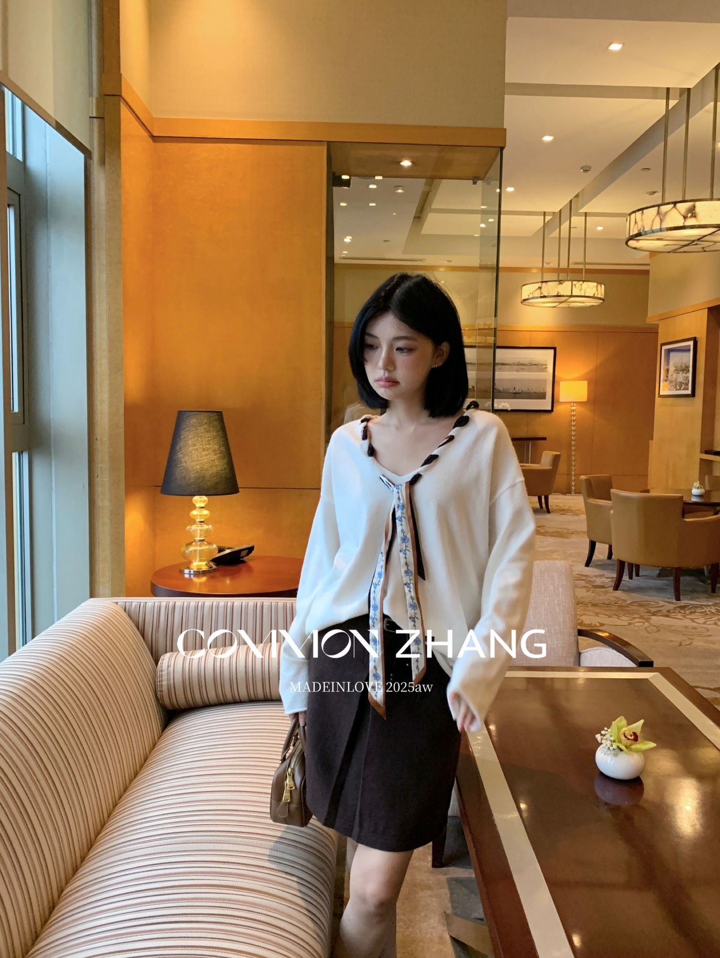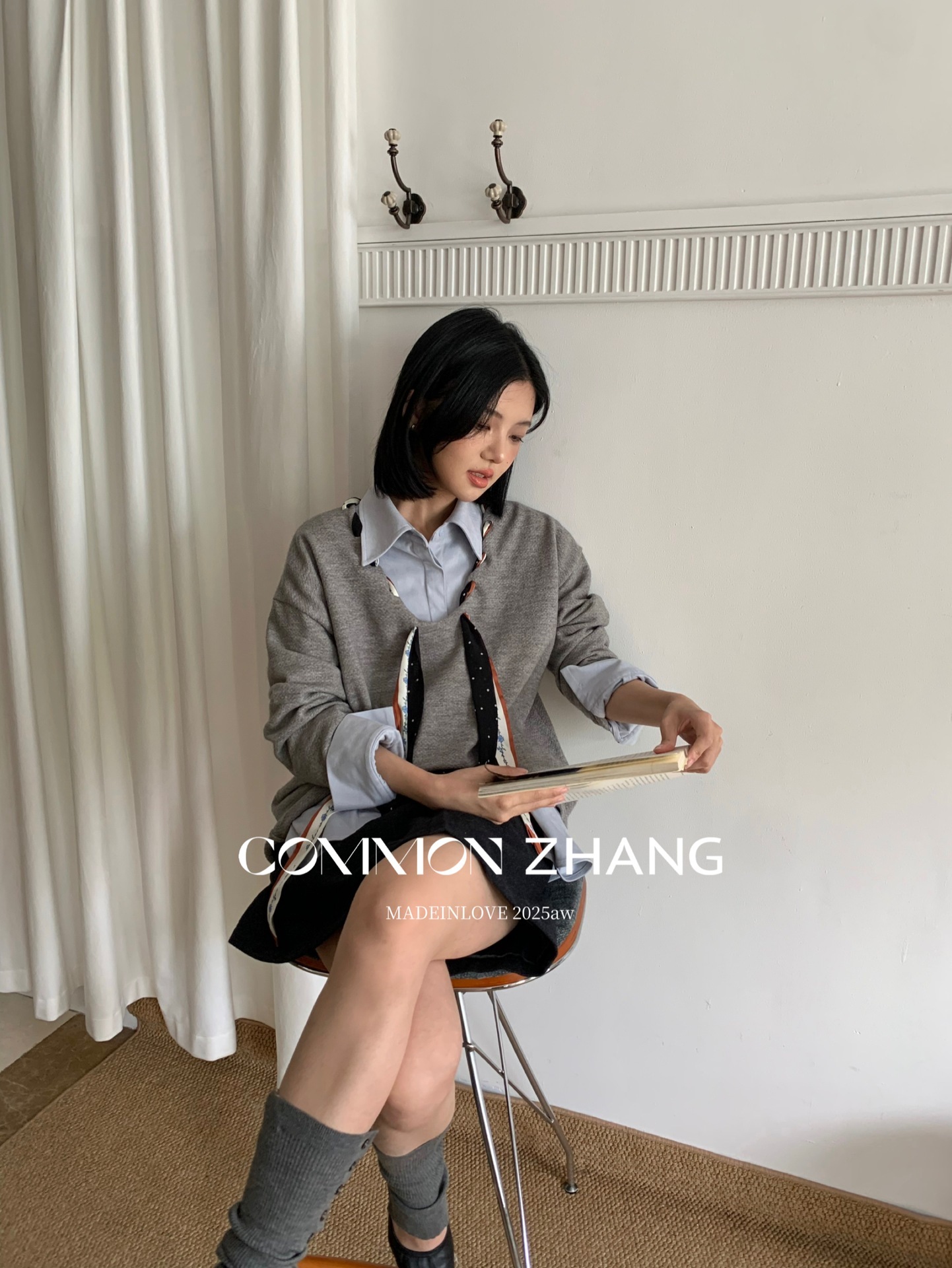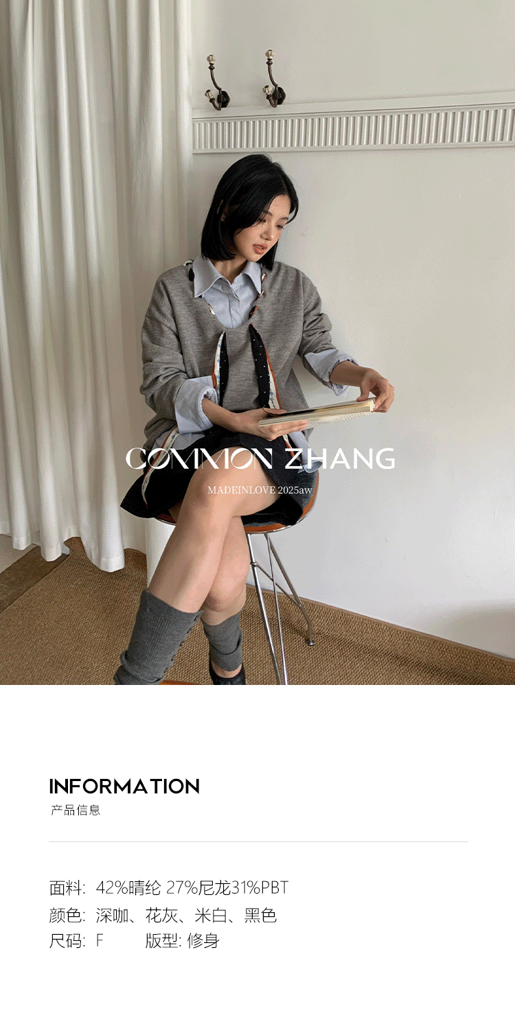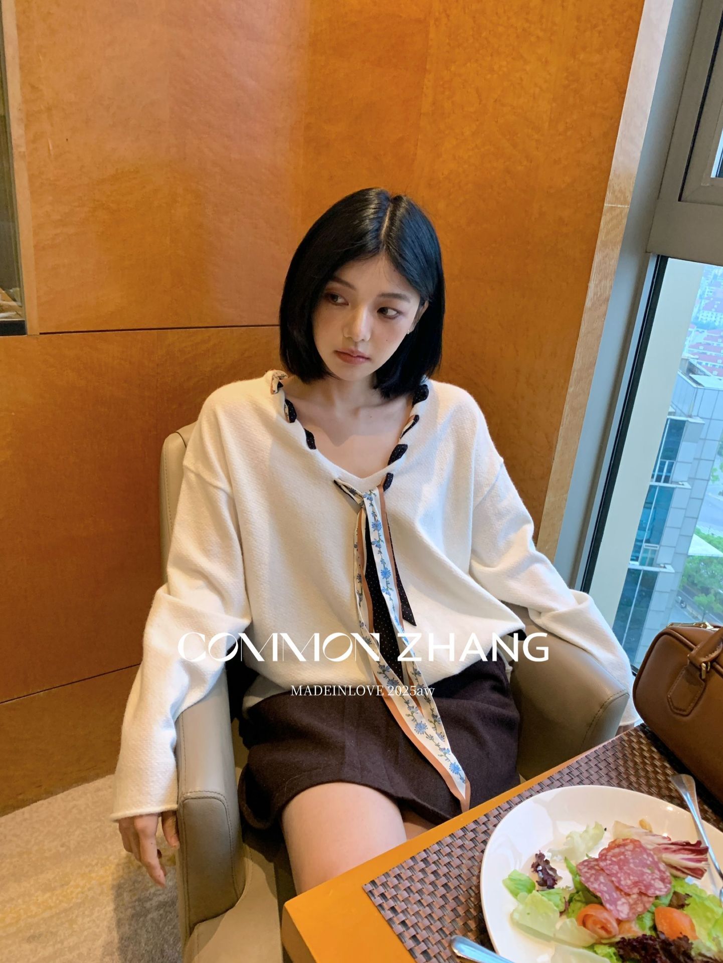 *o-ha-you*【FCZB305357】秋冬V領拼接絲巾毛衣女學院風寬鬆休閒套頭針織衫-4色