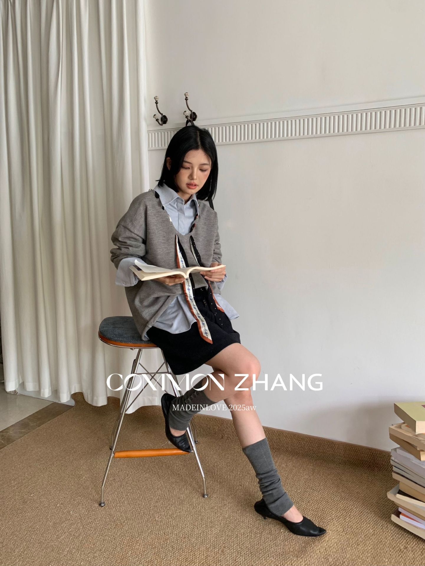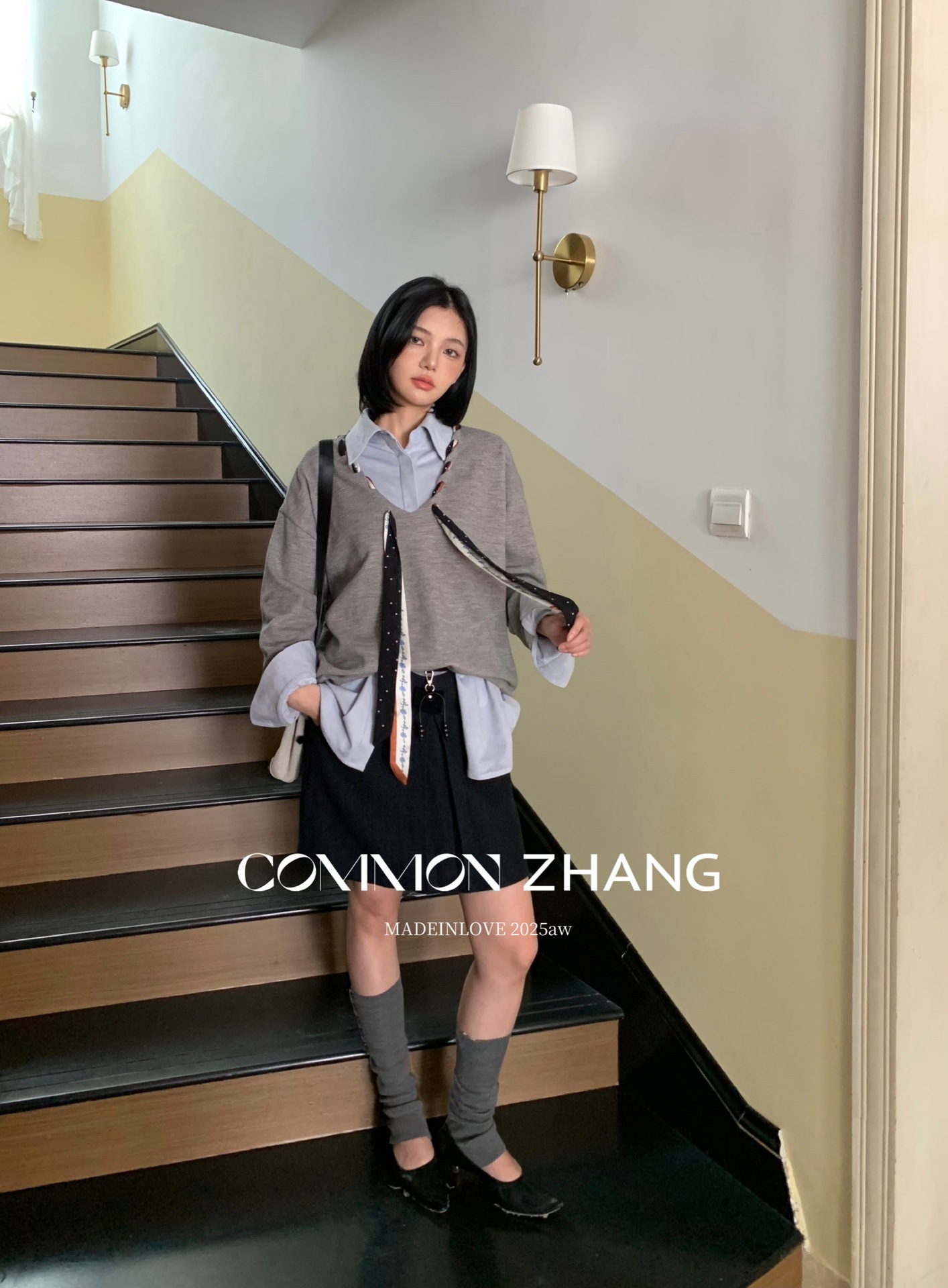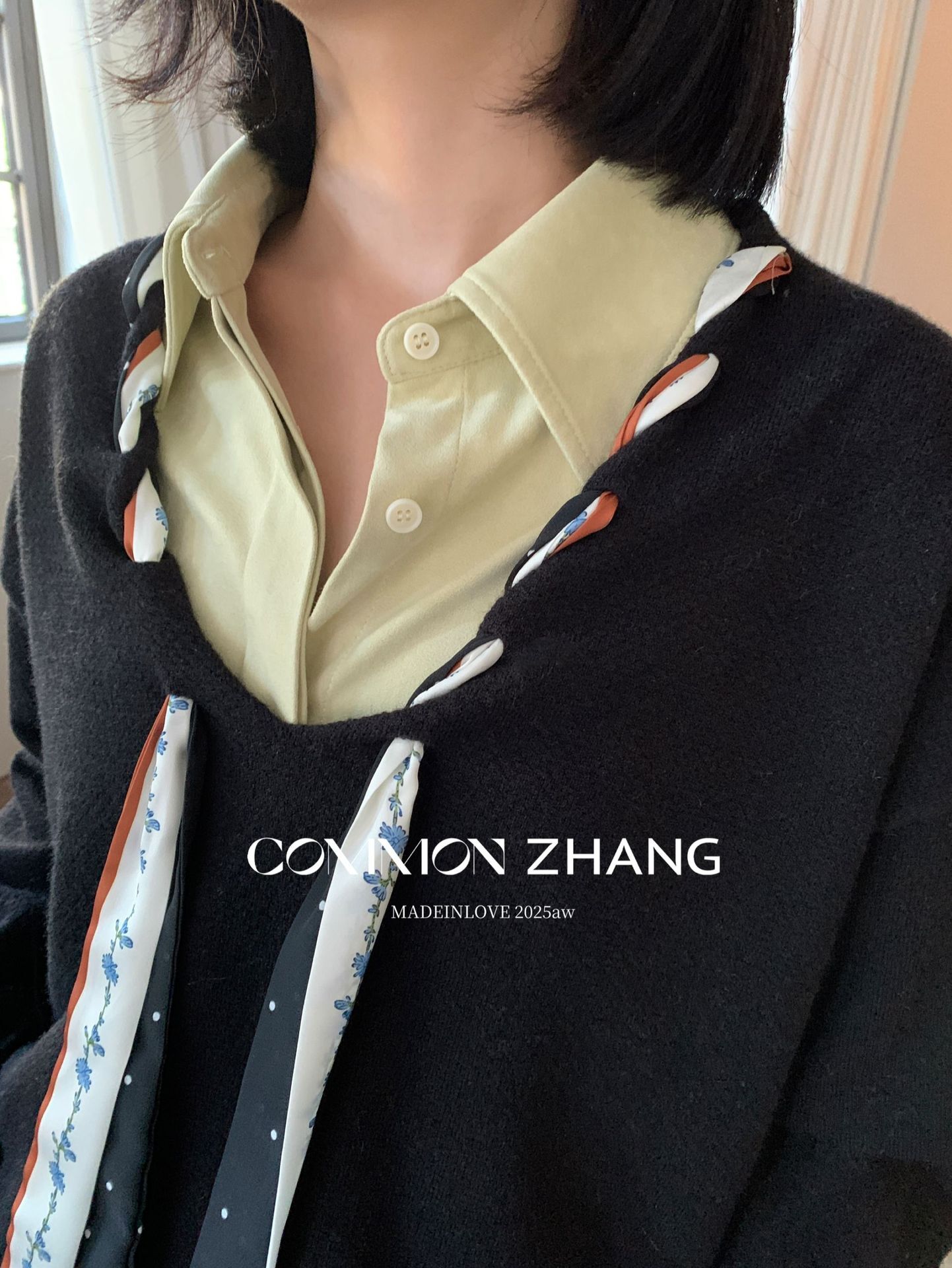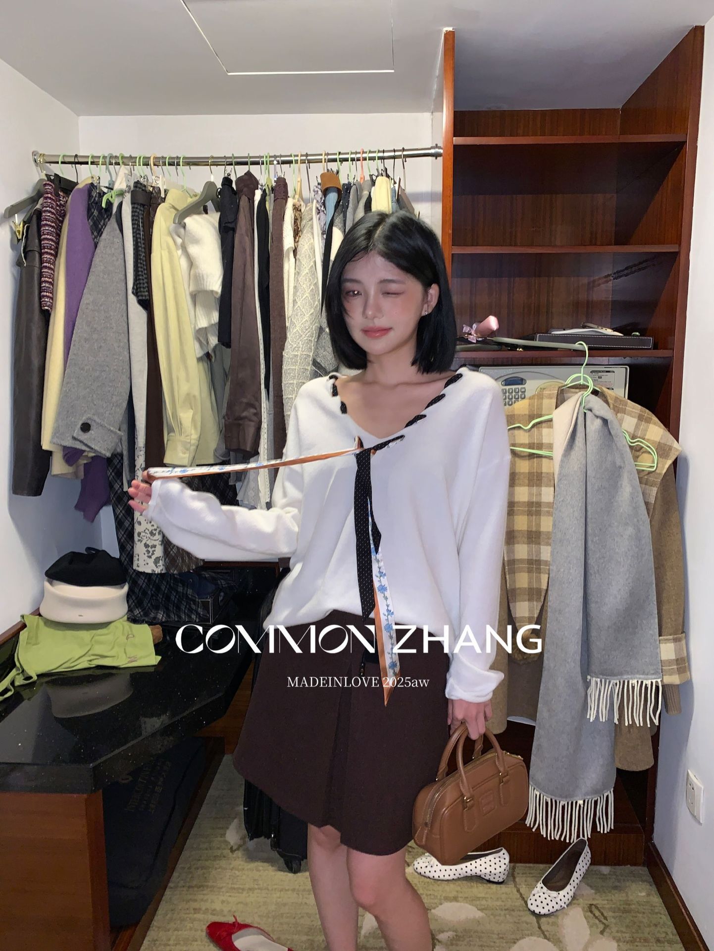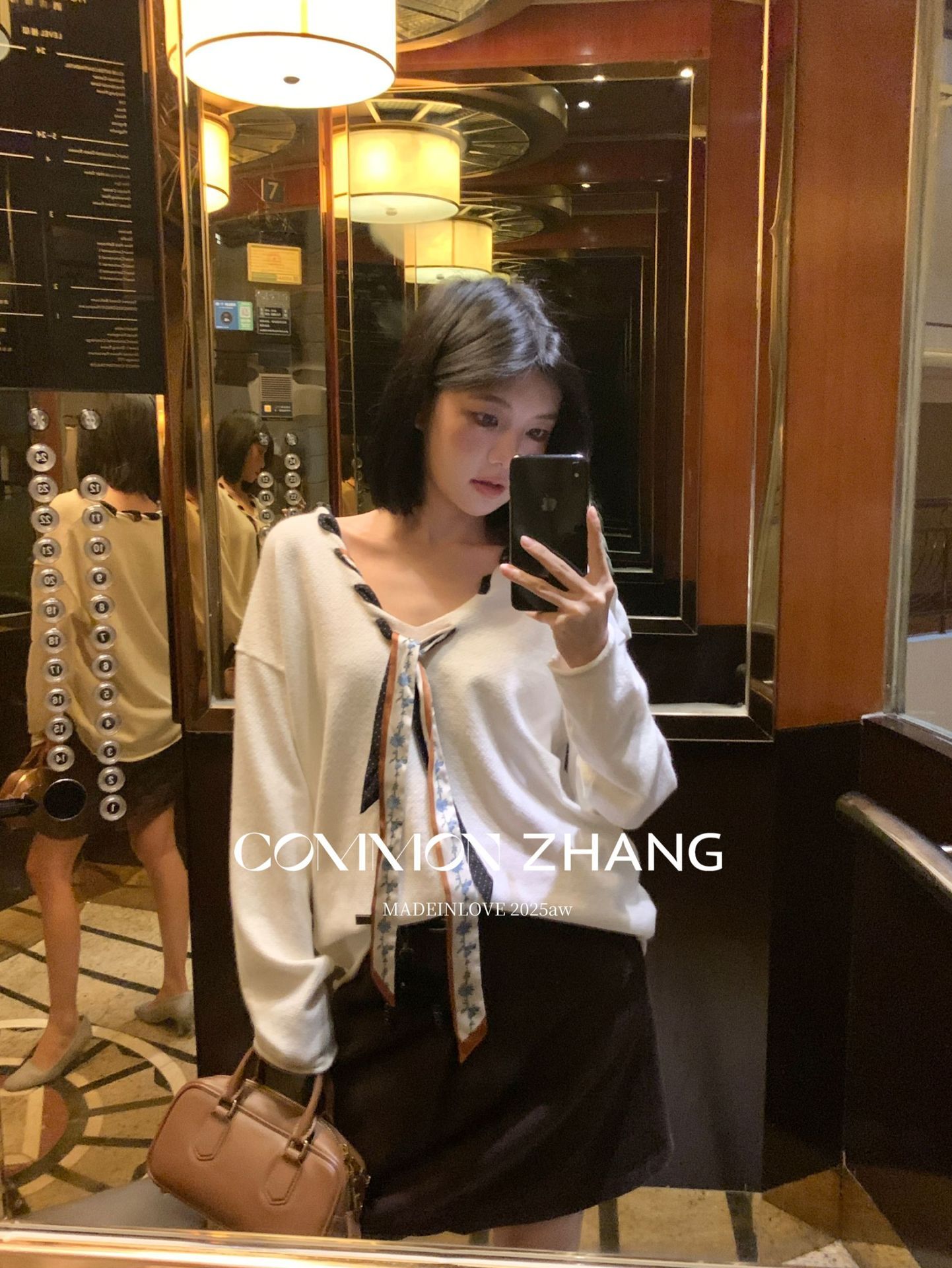*o-ha-you*【FCZB305357】秋冬V領拼接絲巾毛衣女學院風寬鬆休閒套頭針織衫-4色