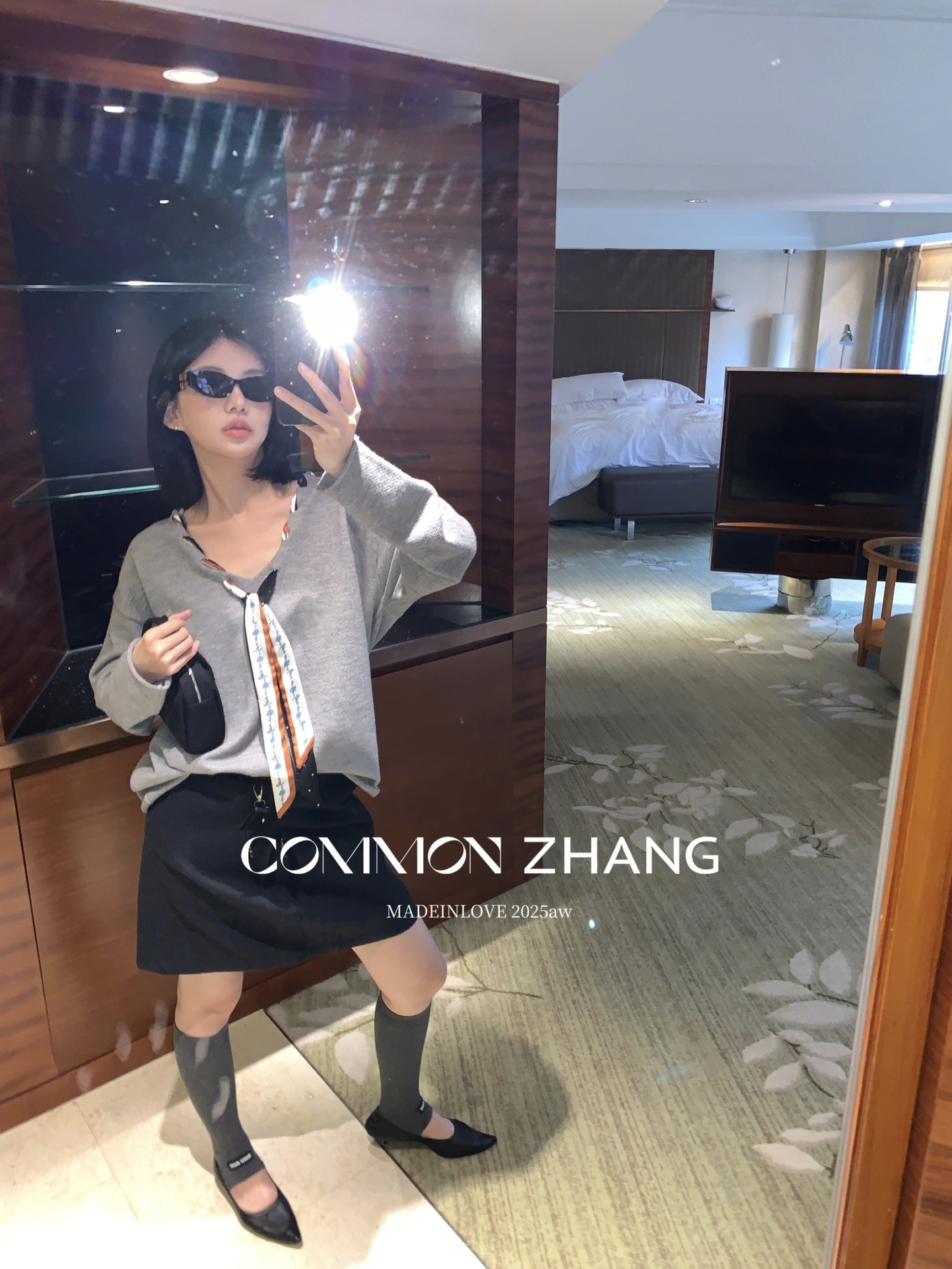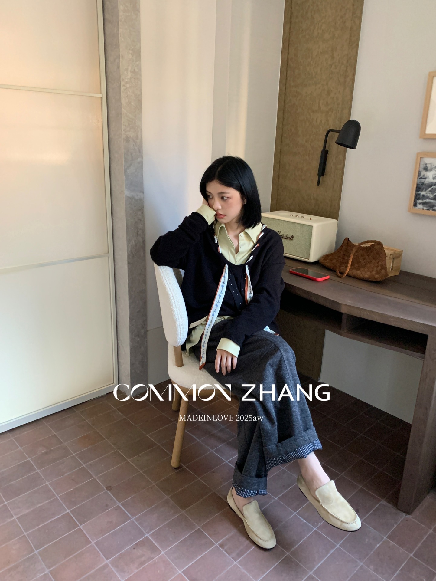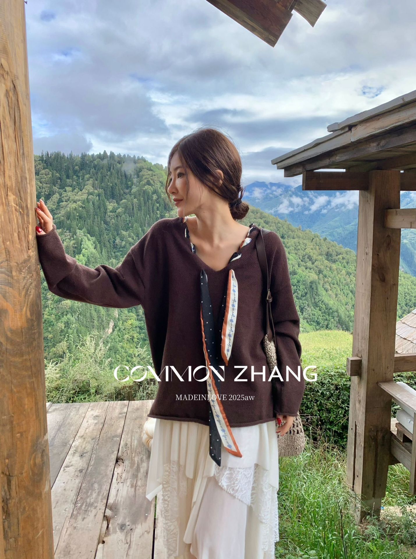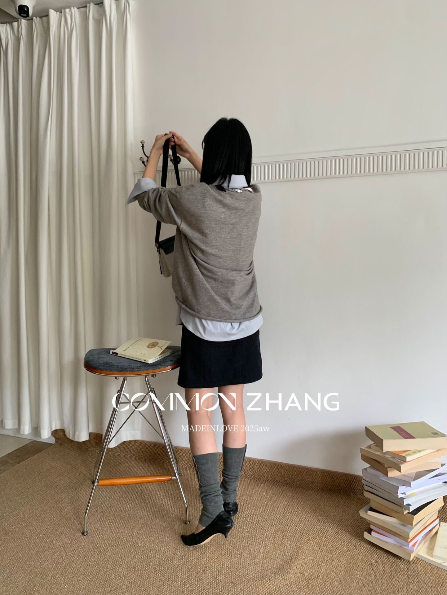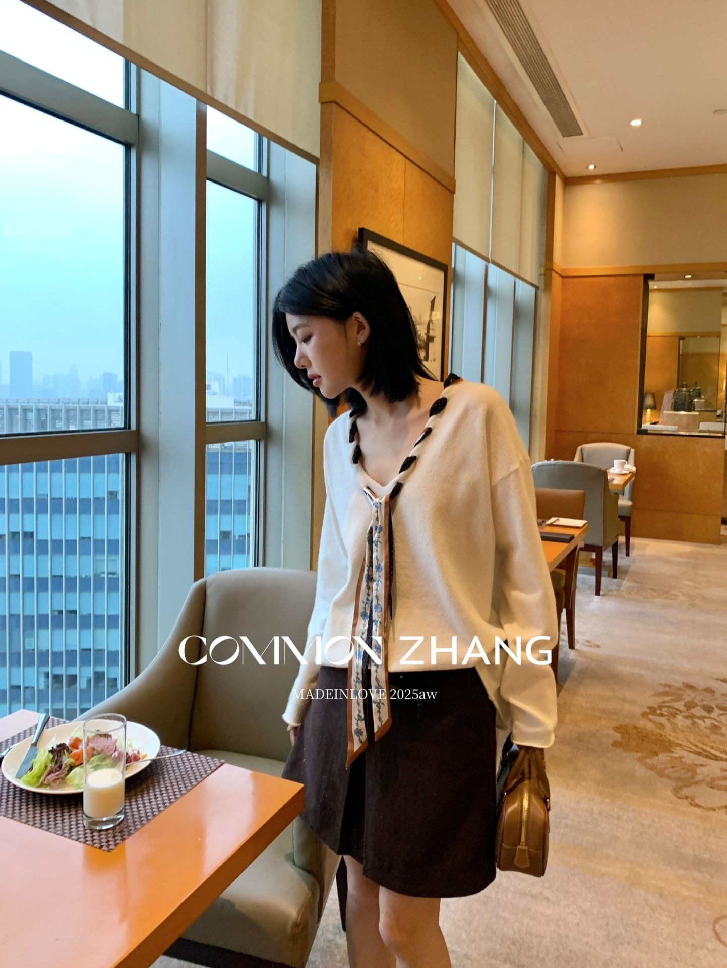 *o-ha-you*【FCZB305357】秋冬V領拼接絲巾毛衣女學院風寬鬆休閒套頭針織衫-4色