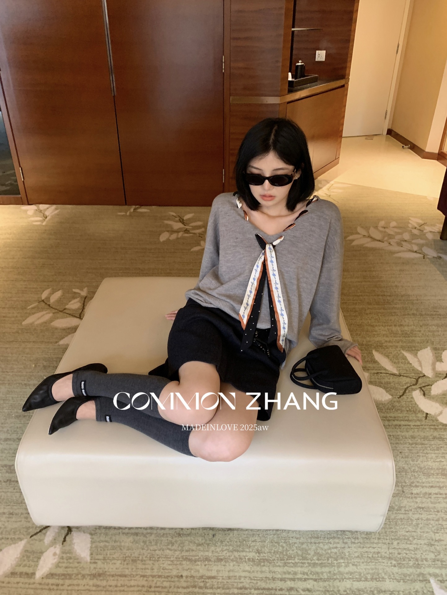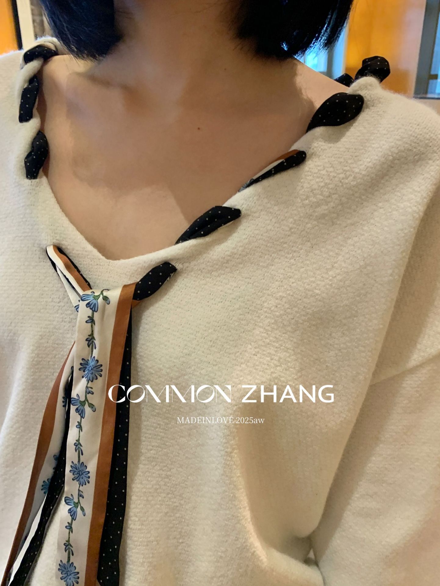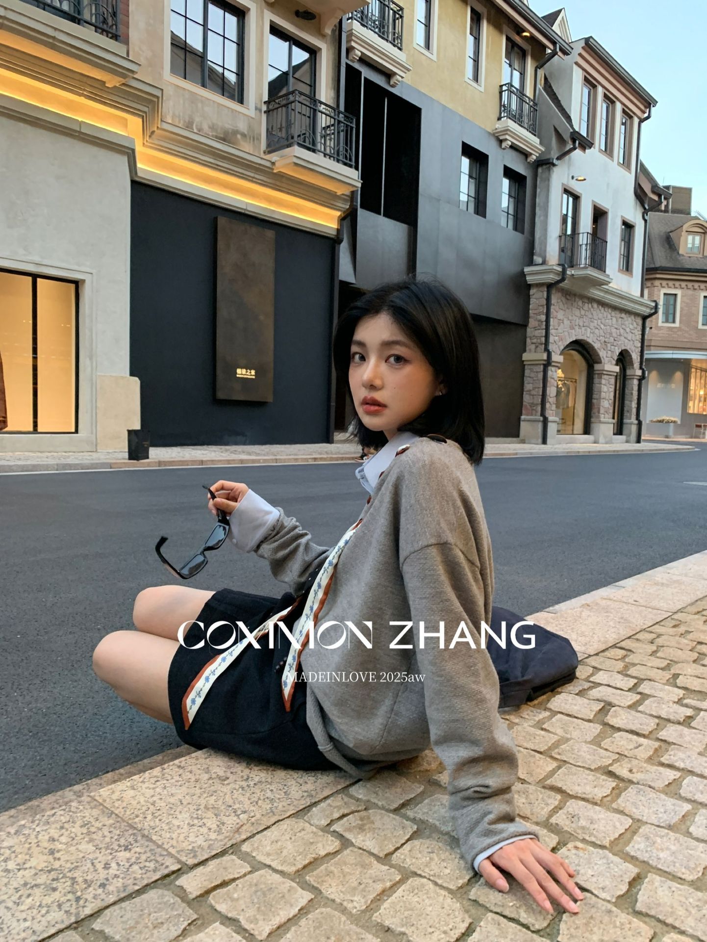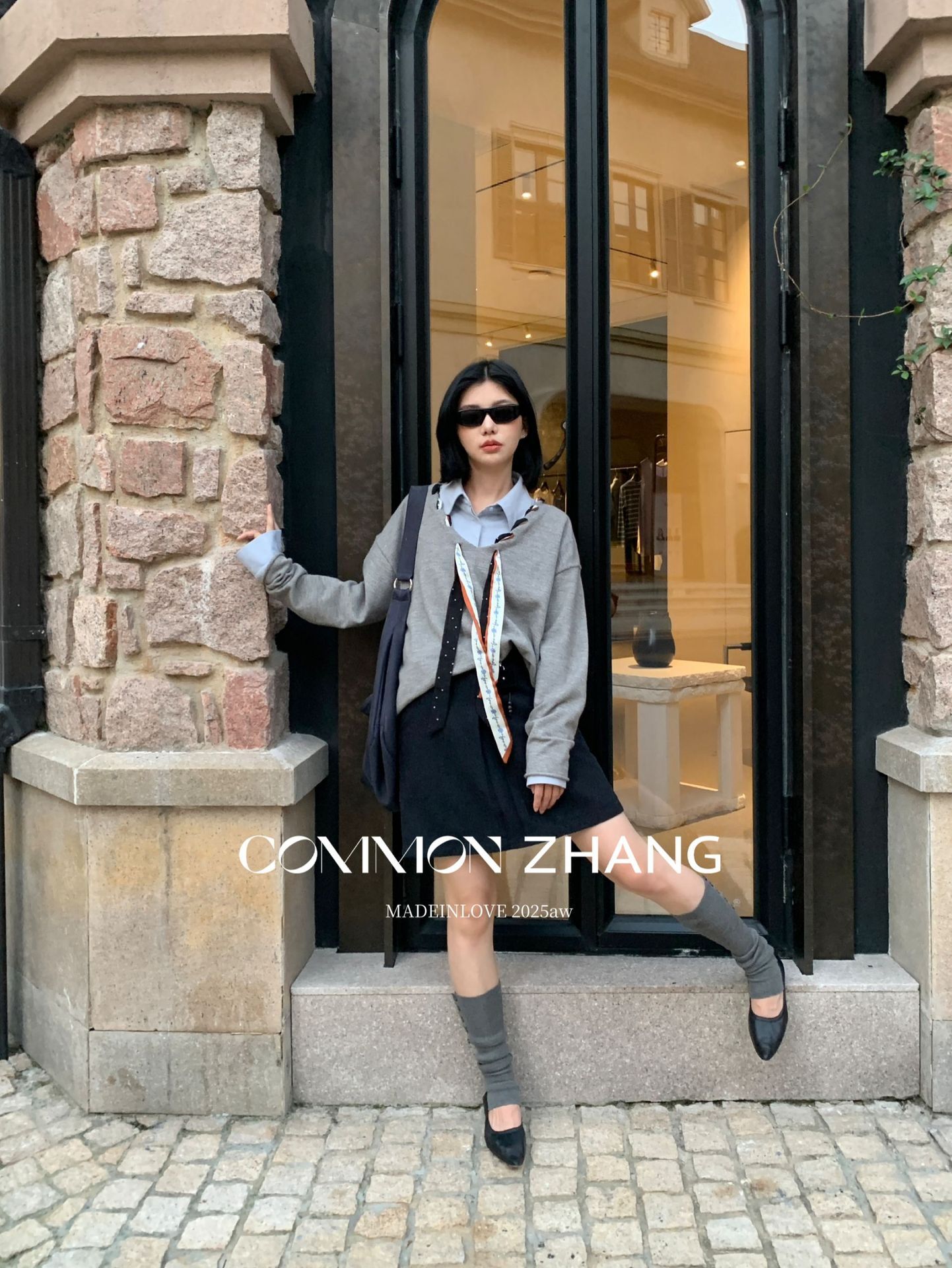 *o-ha-you*【FCZB305357】秋冬V領拼接絲巾毛衣女學院風寬鬆休閒套頭針織衫-4色