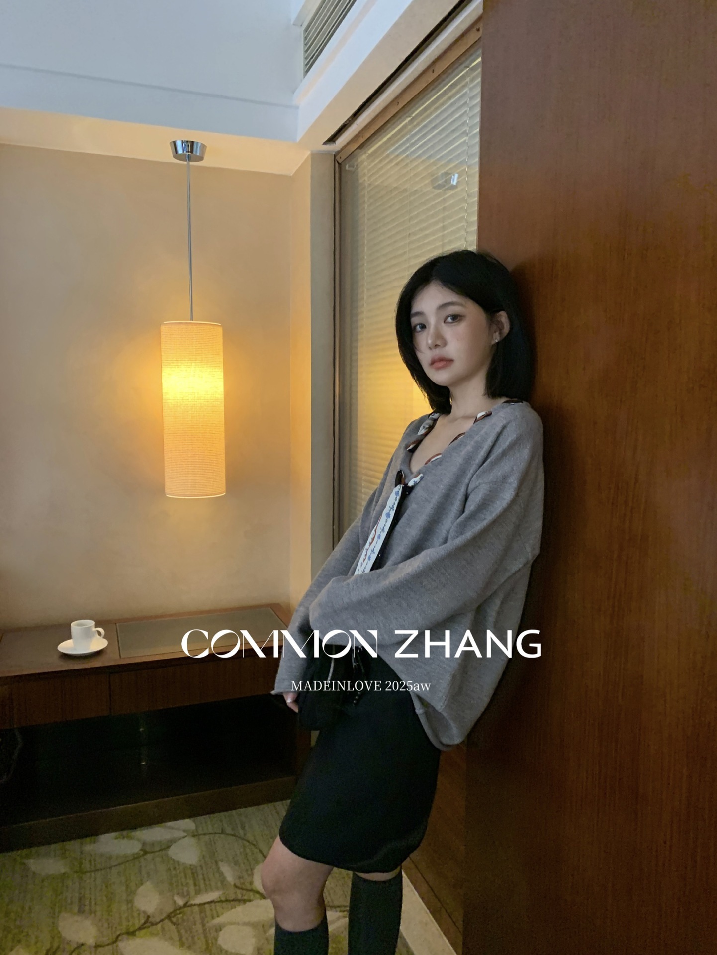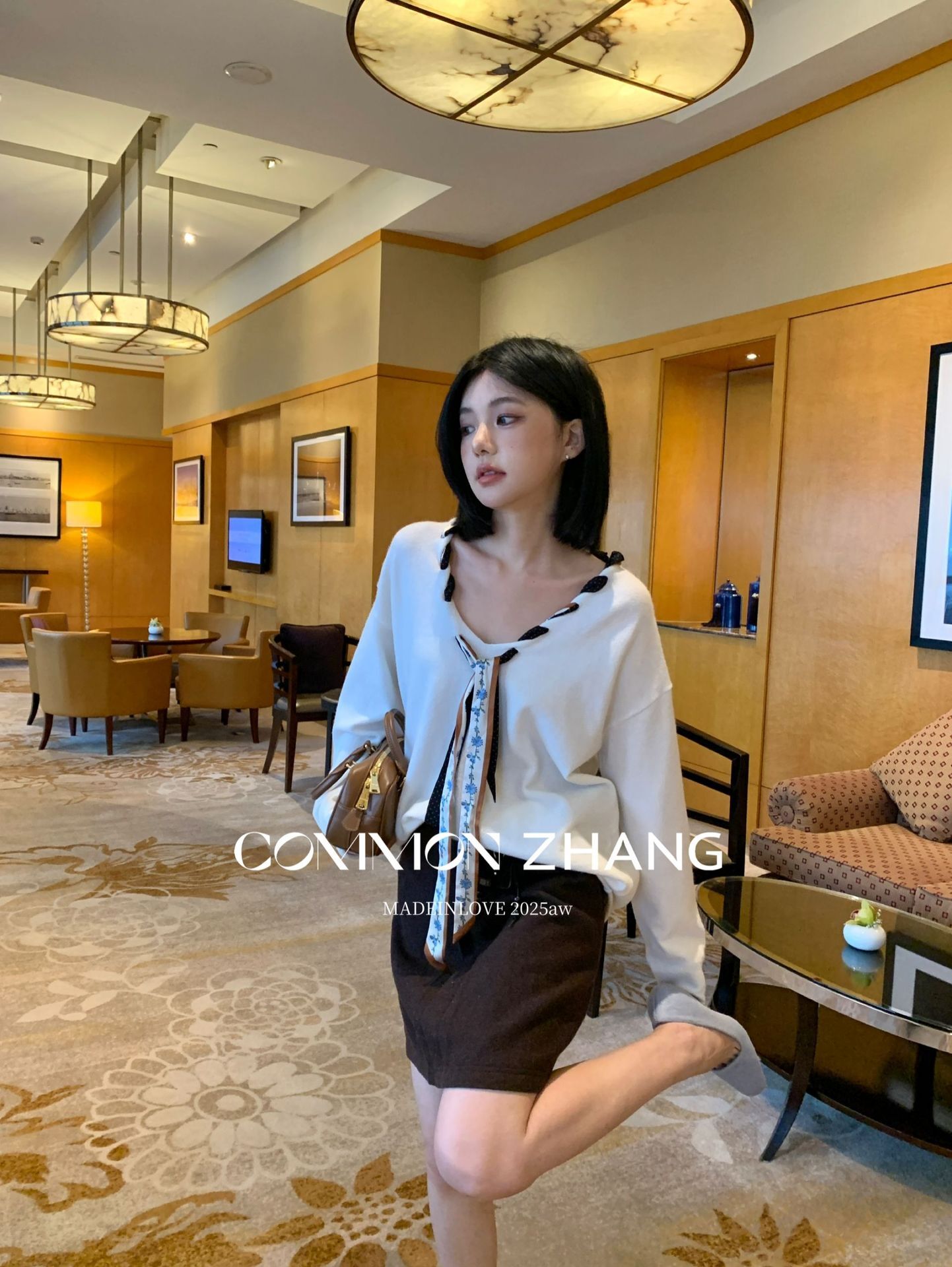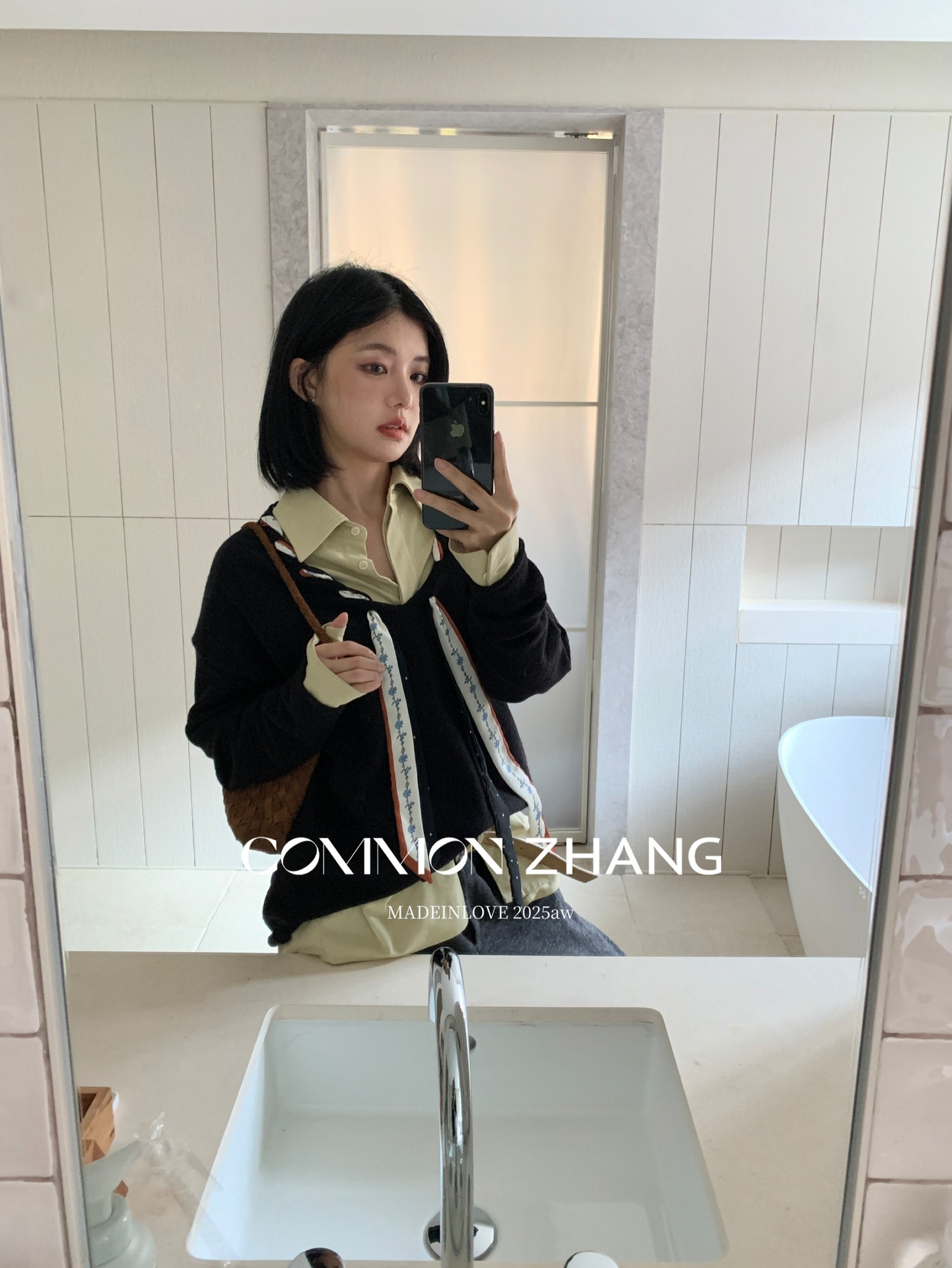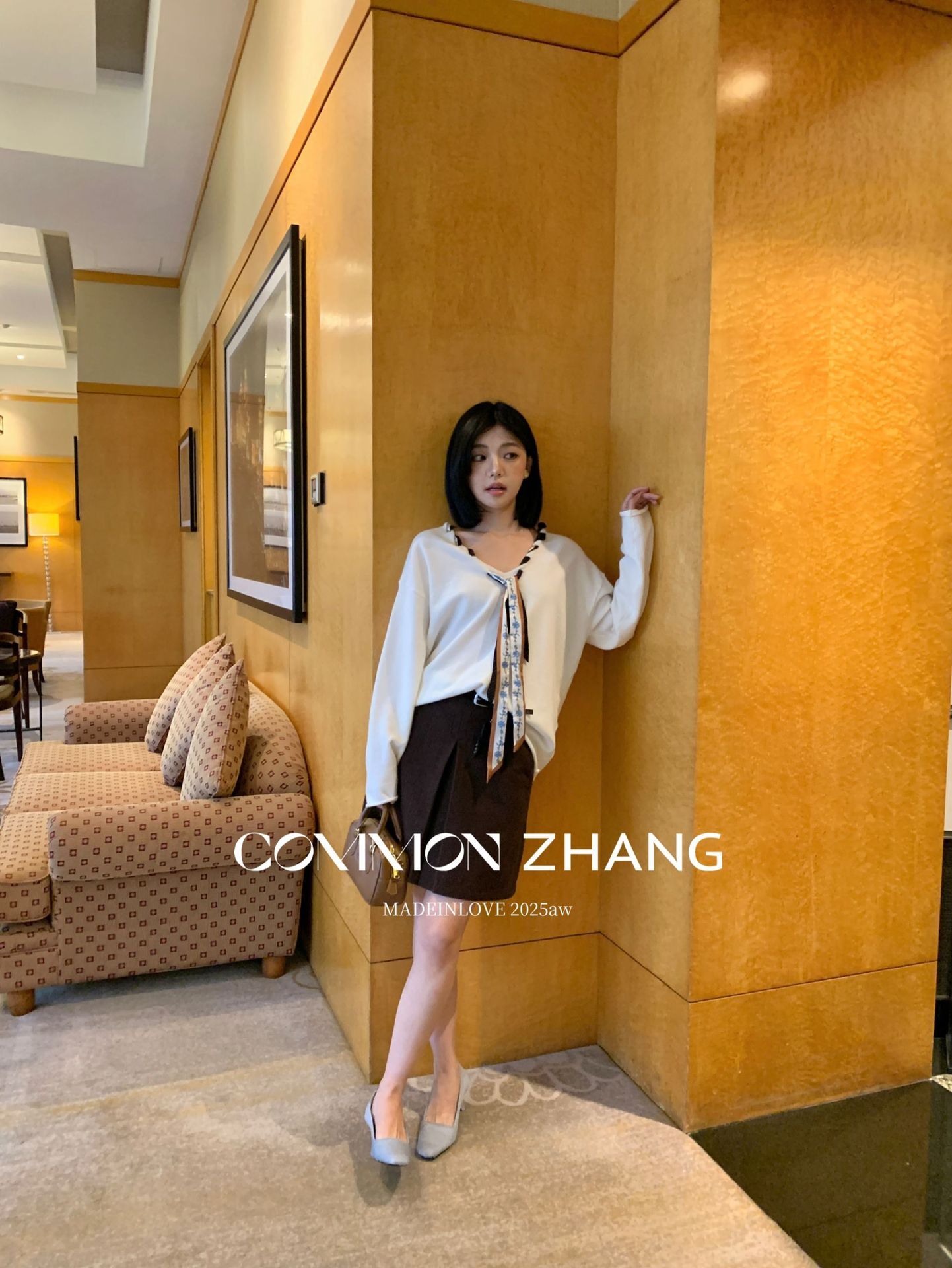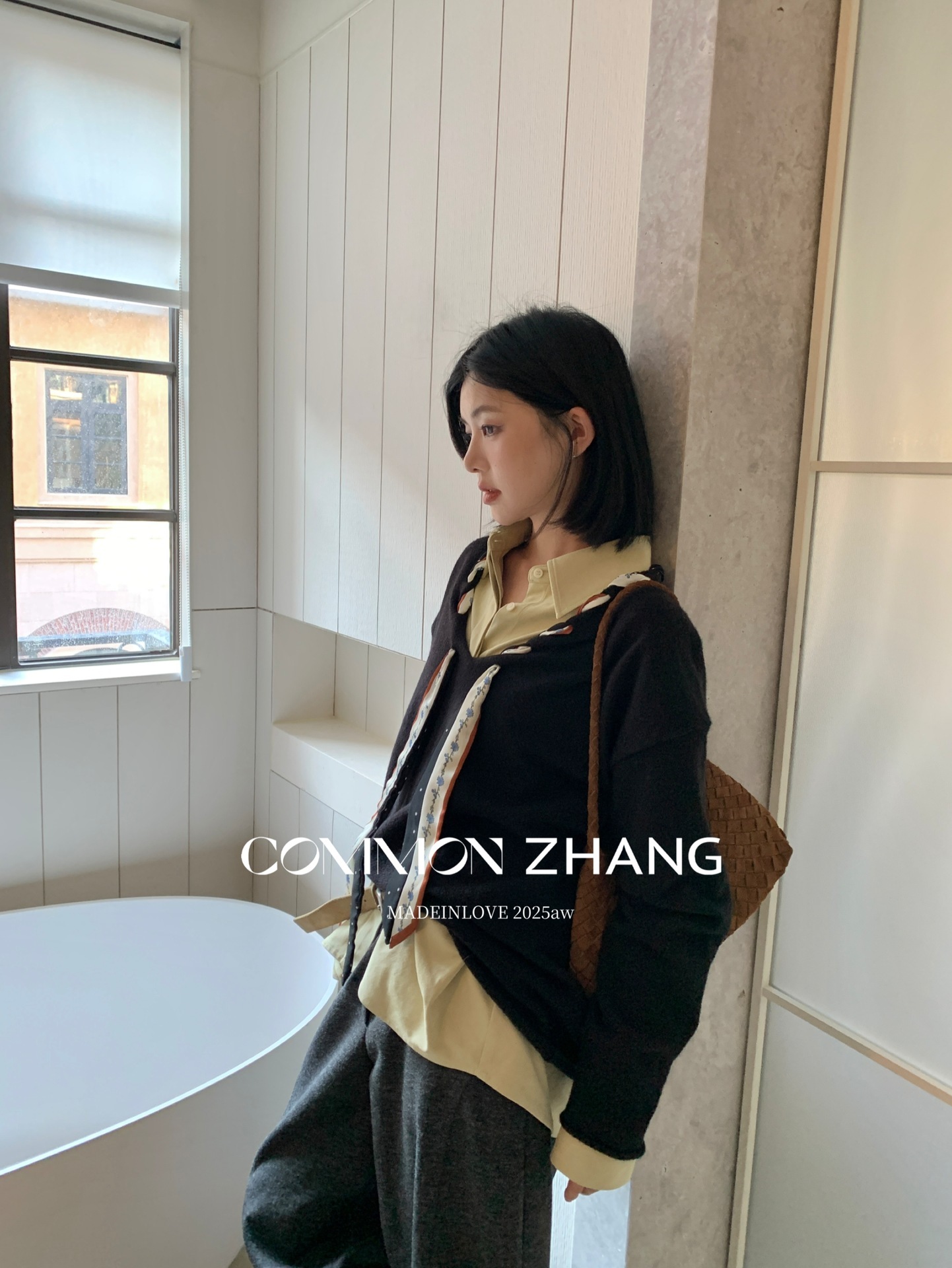 *o-ha-you*【FCZB305357】秋冬V領拼接絲巾毛衣女學院風寬鬆休閒套頭針織衫-4色