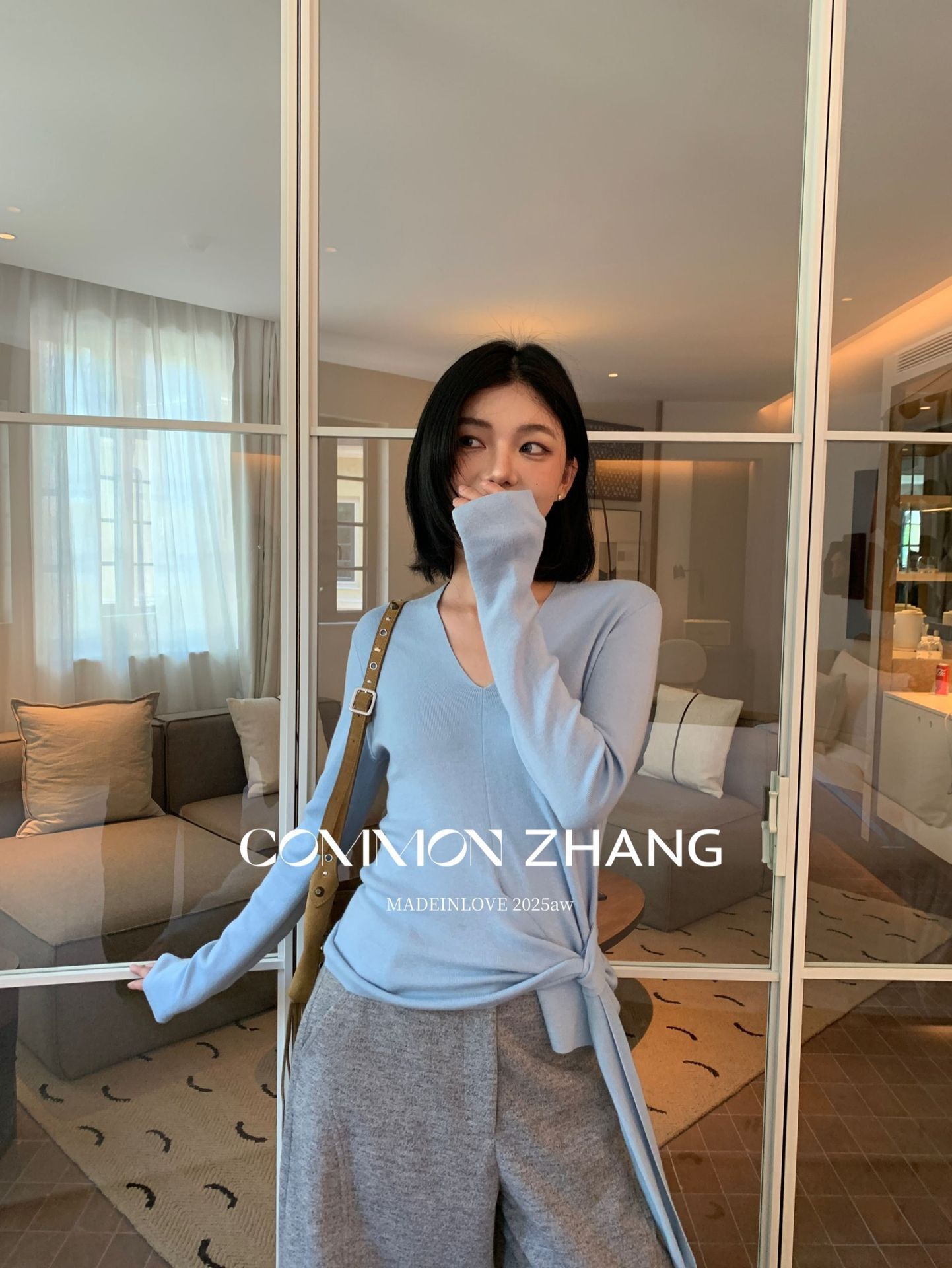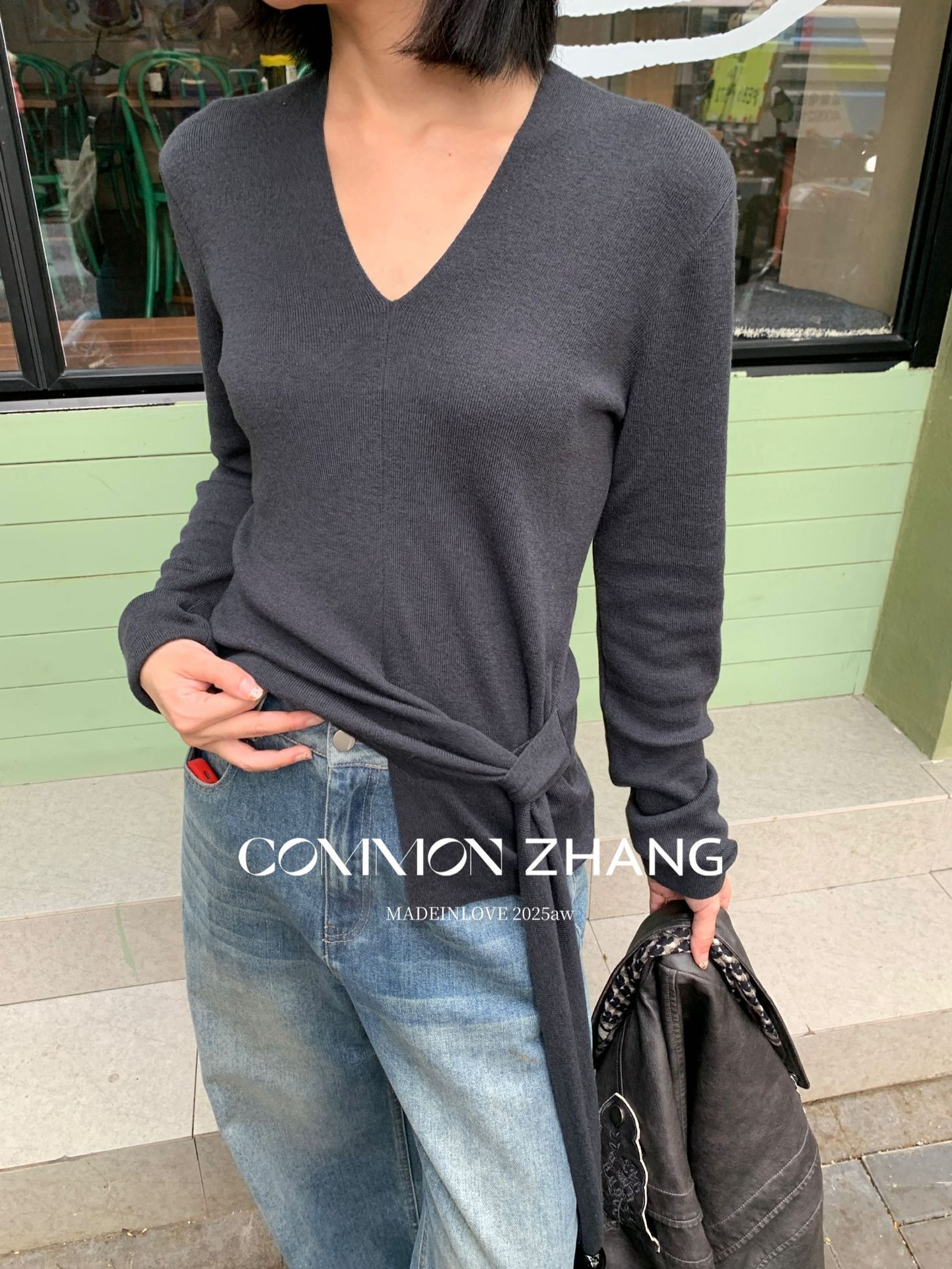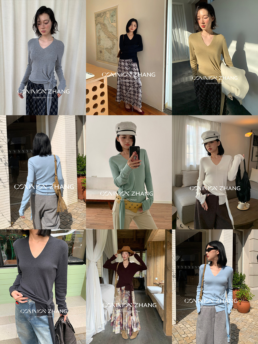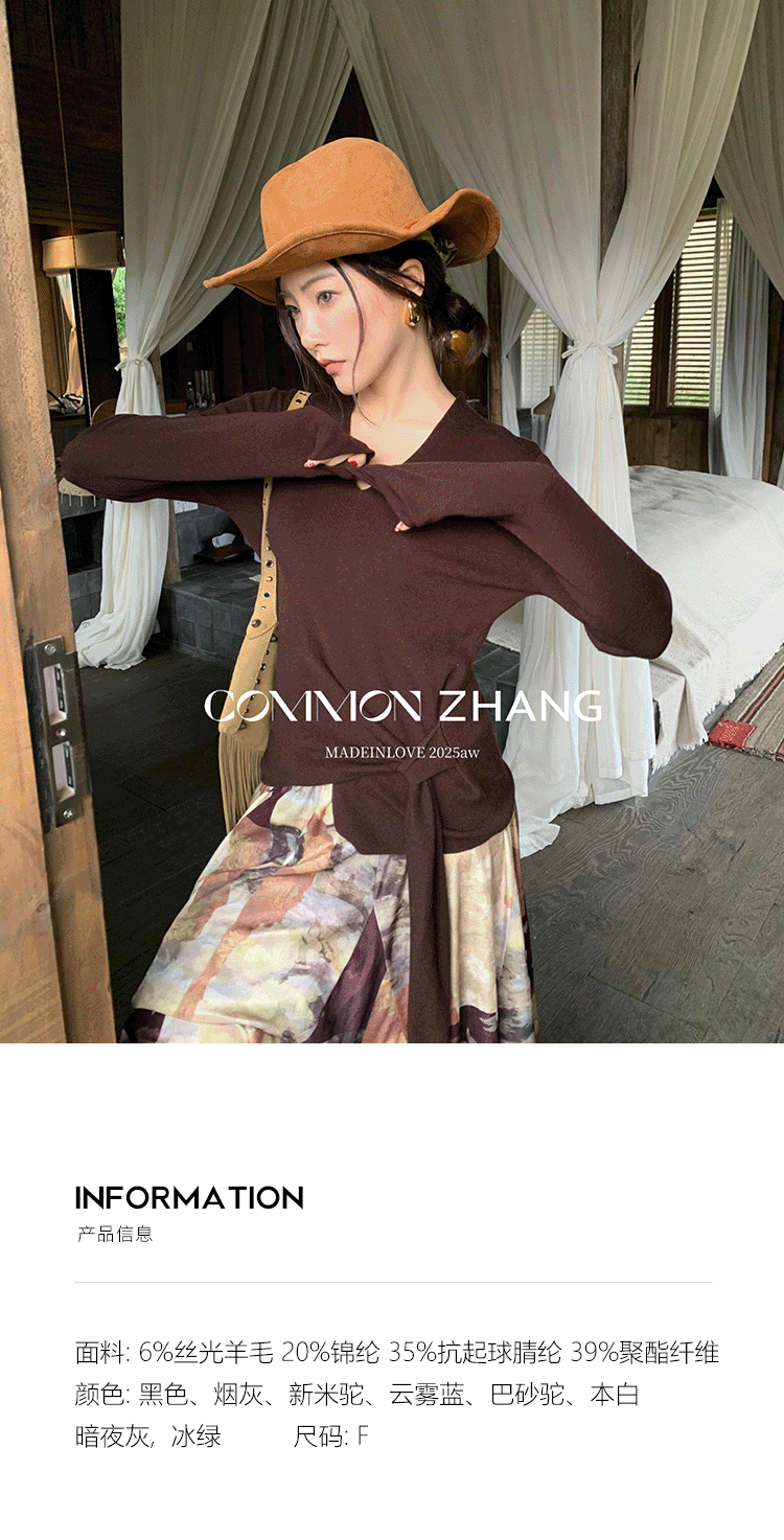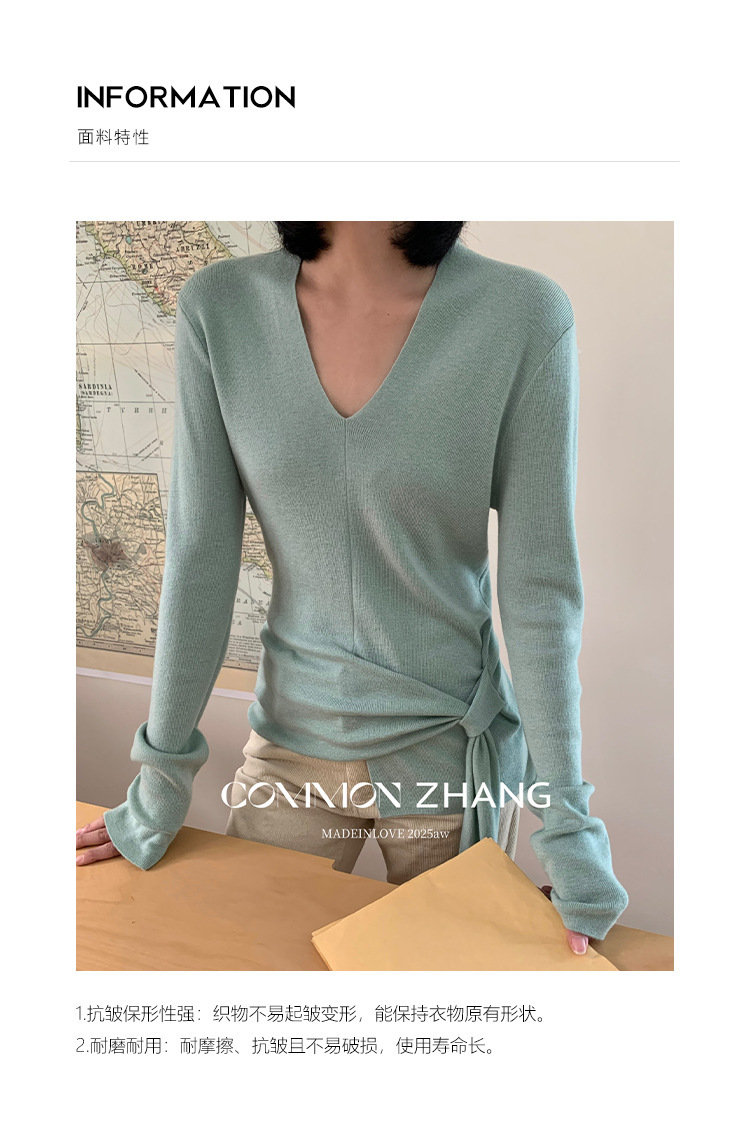 *o-ha-you*【FCZB305828】秋冬羊毛針織衫女不規則綁帶多色打底衫休閒毛衣