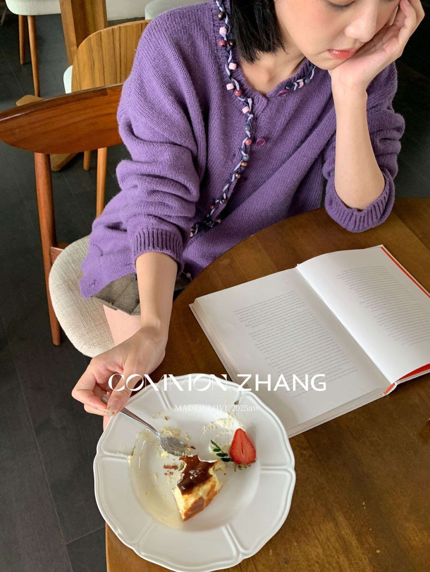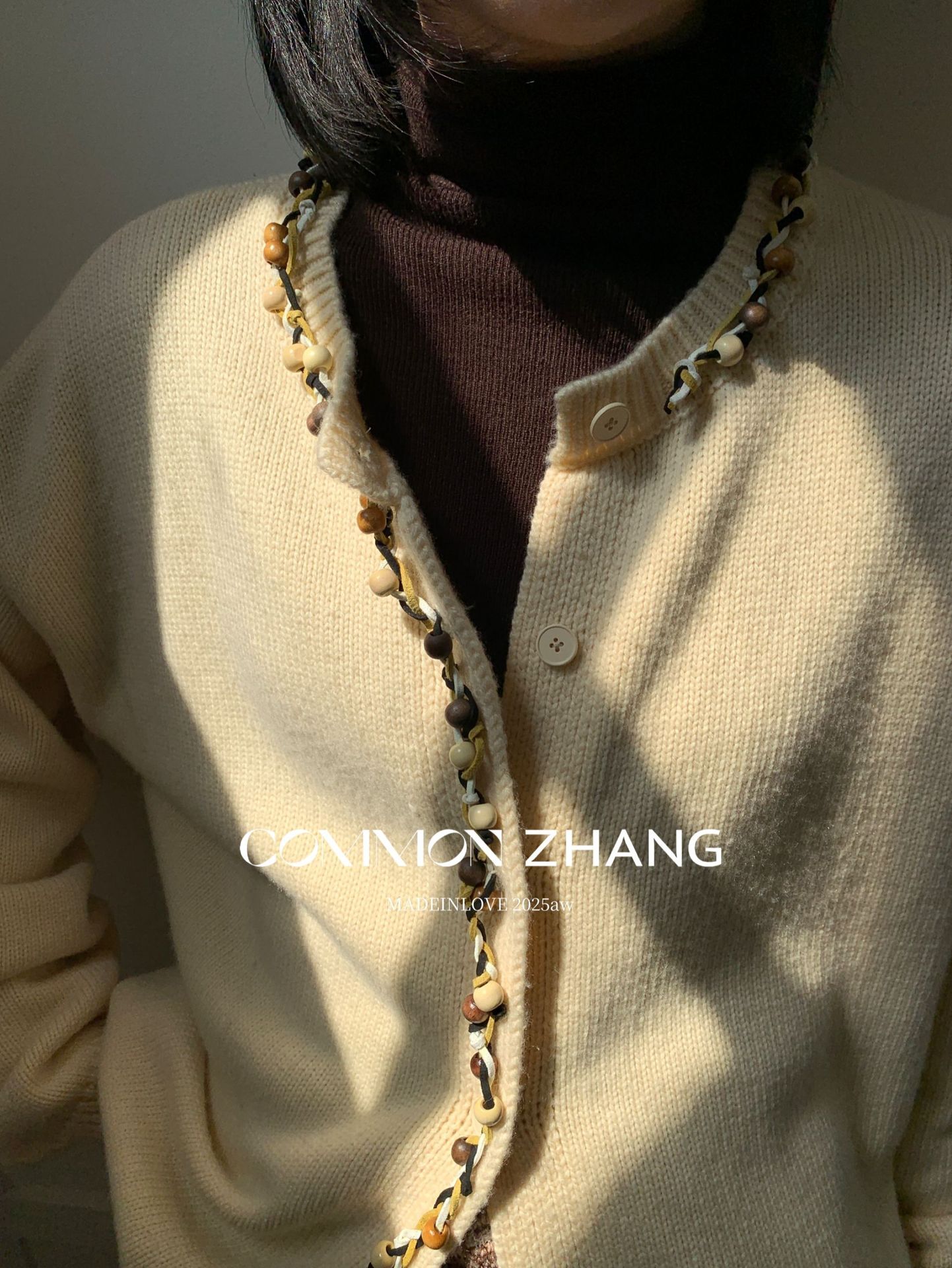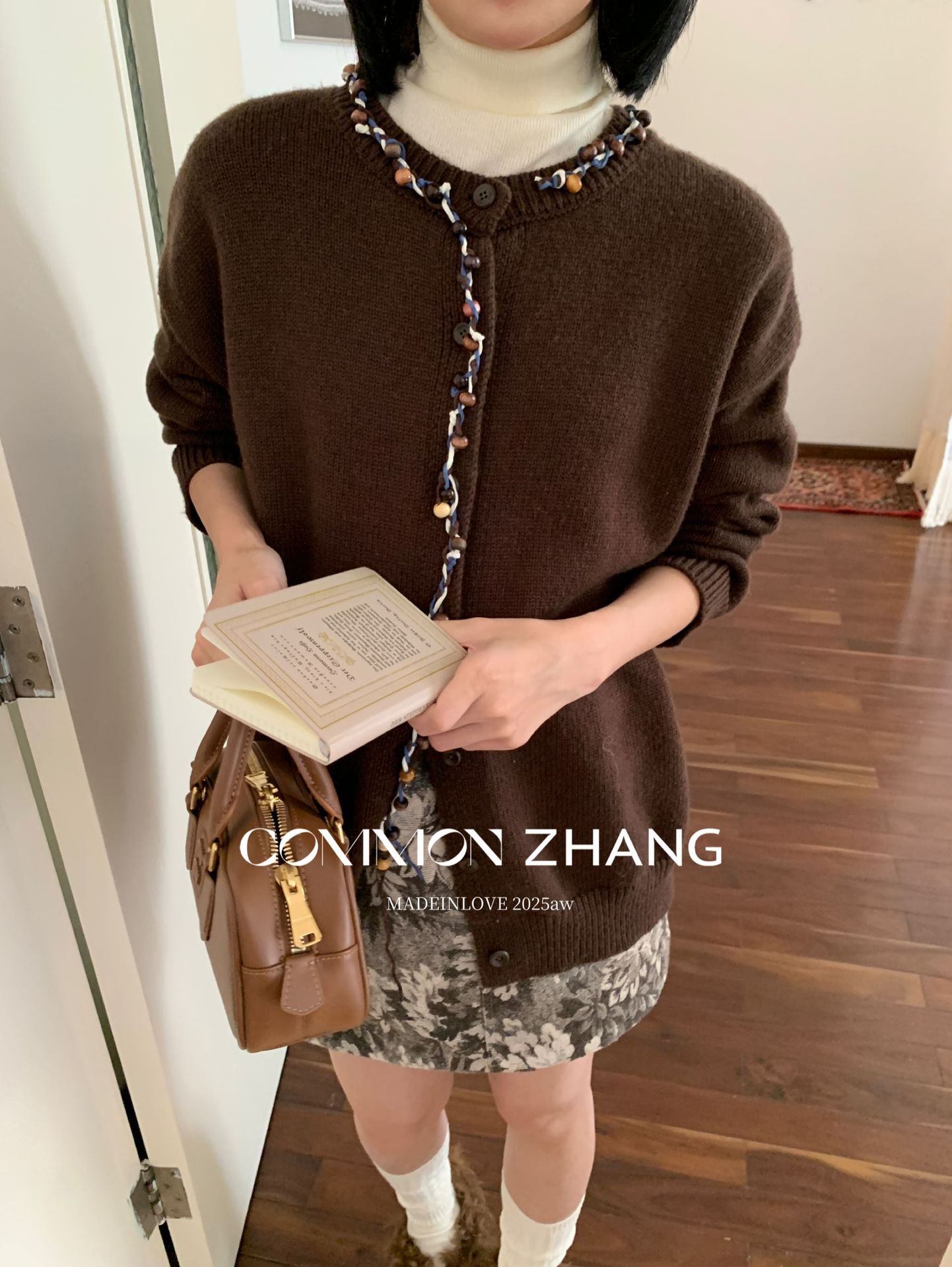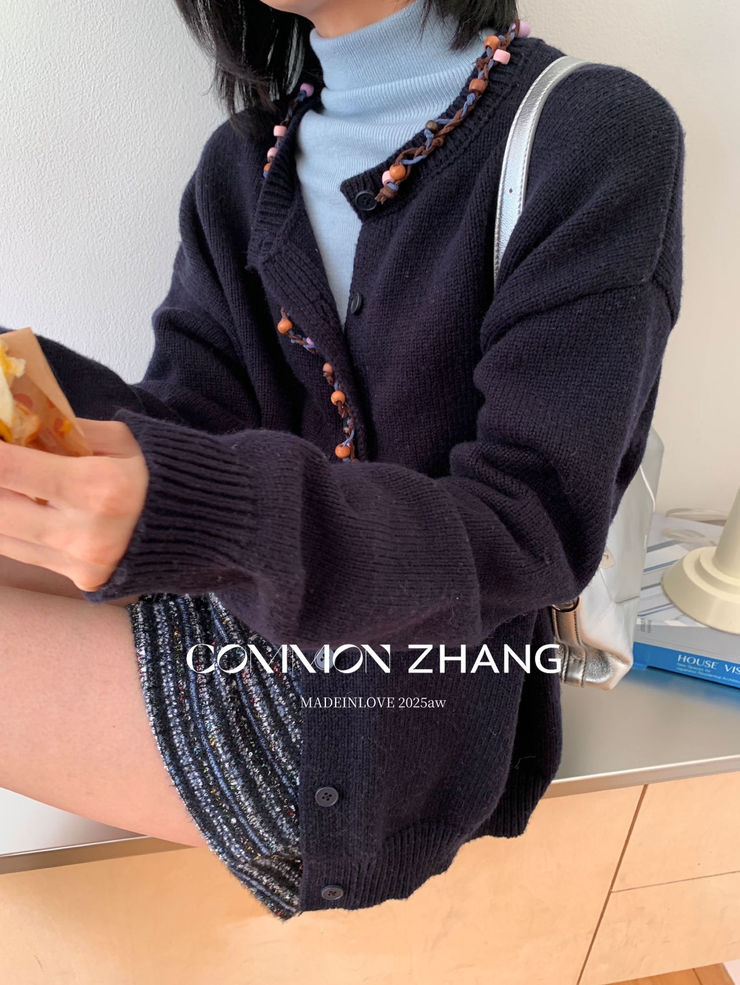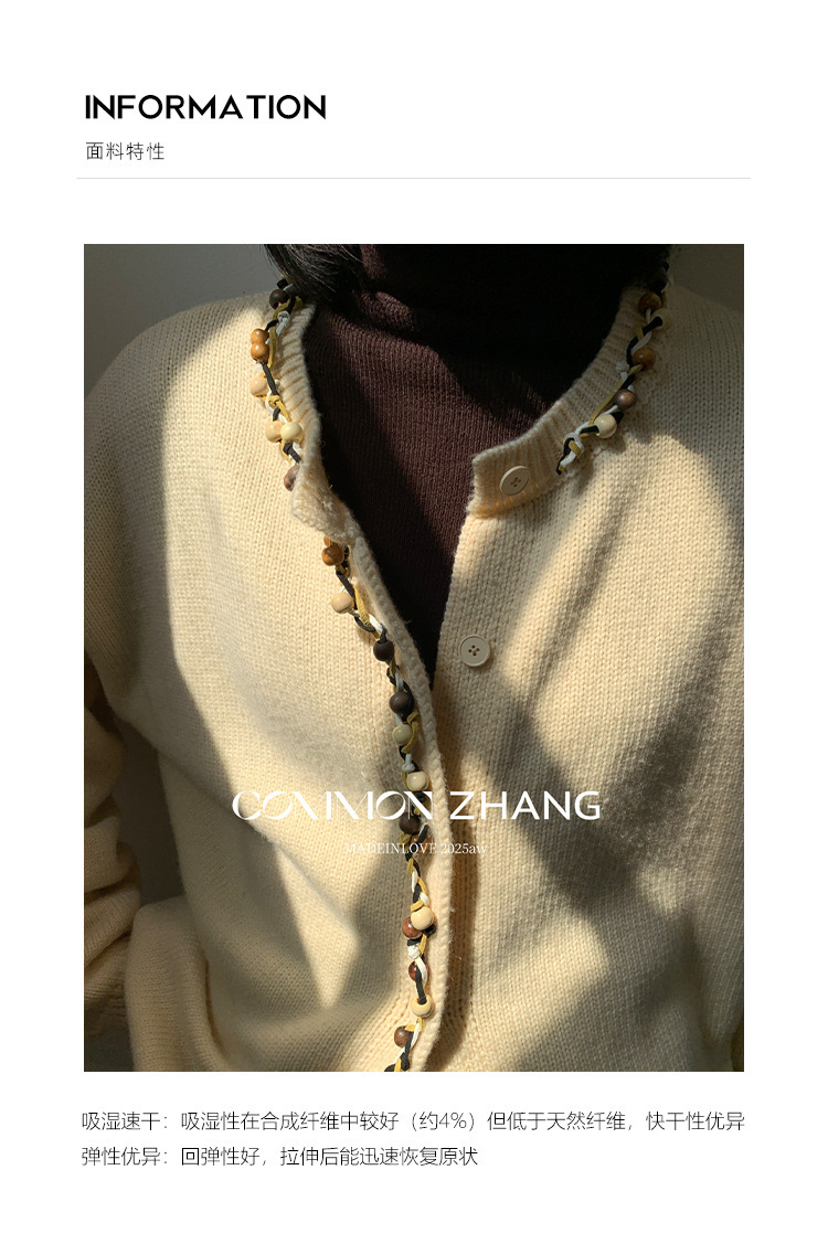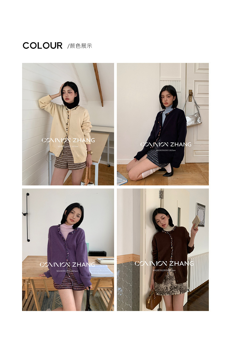 *o-ha-you*【FCZB305883】秋羊毛針織開襟衫女重工撞色釘珠寬鬆休閒毛衣外套-4色