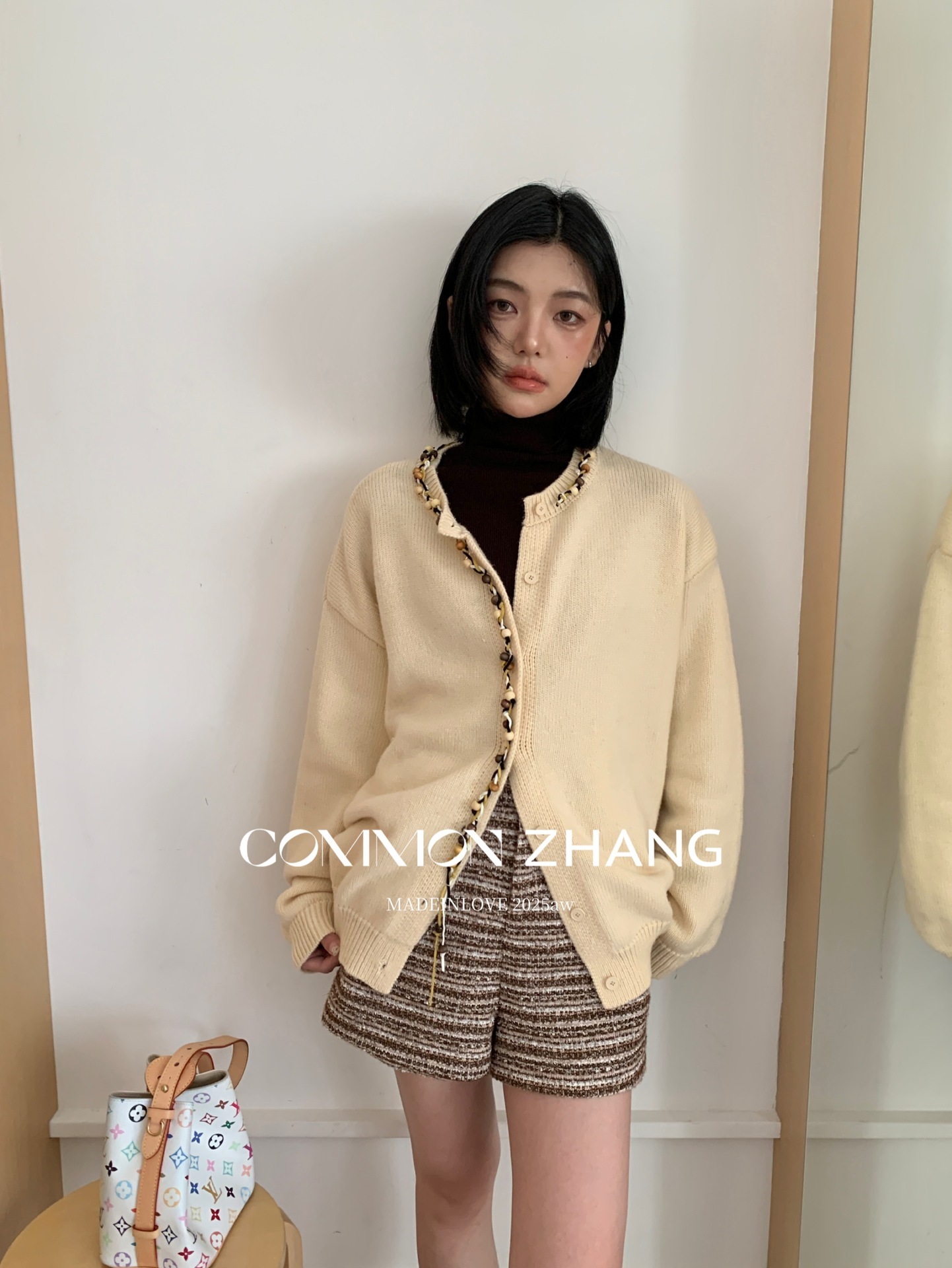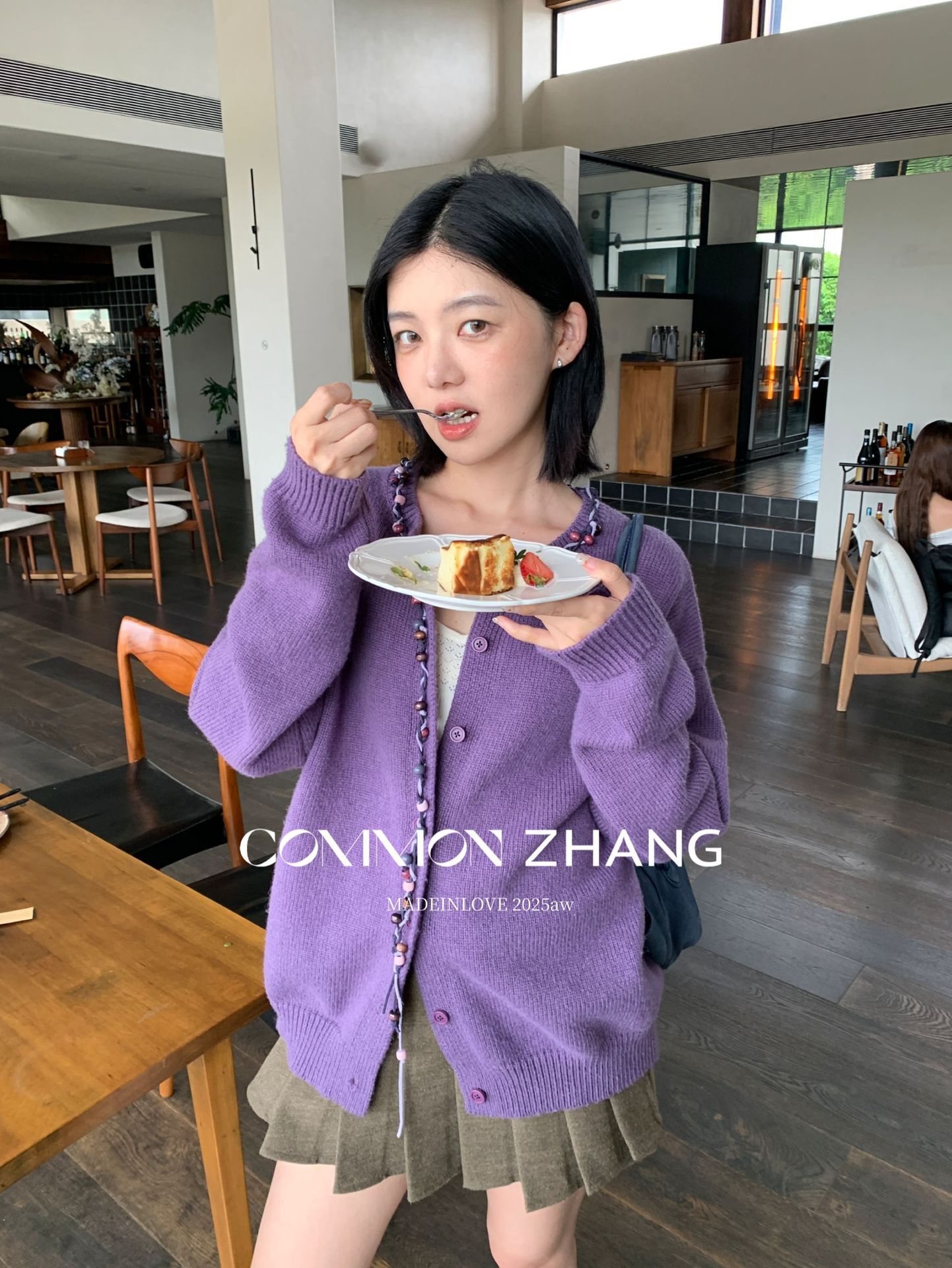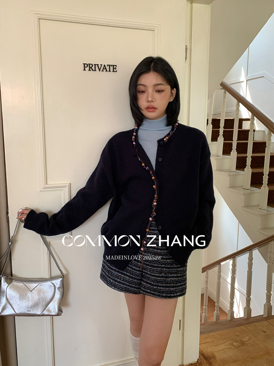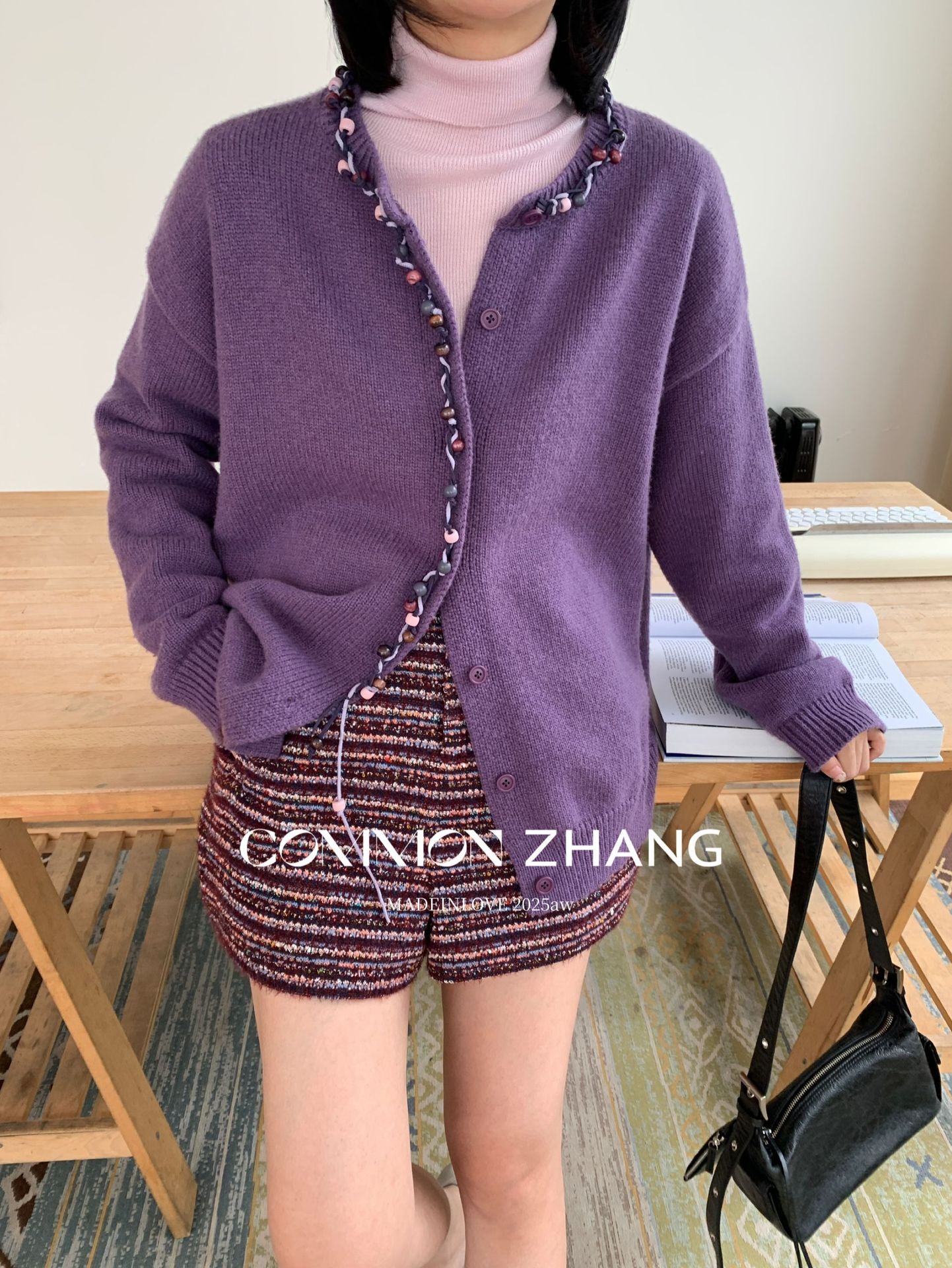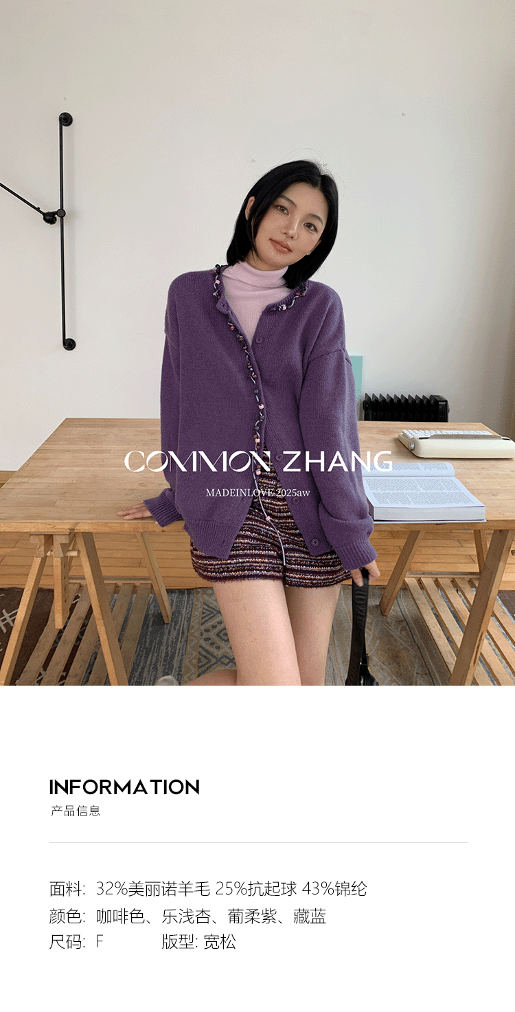 *o-ha-you*【FCZB305883】秋羊毛針織開襟衫女重工撞色釘珠寬鬆休閒毛衣外套-4色