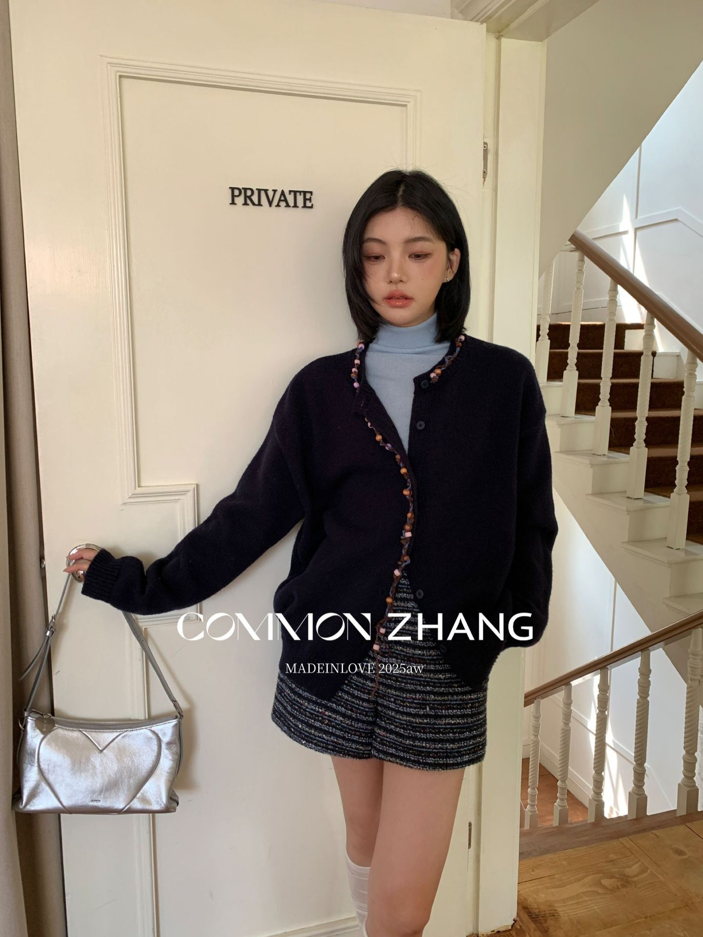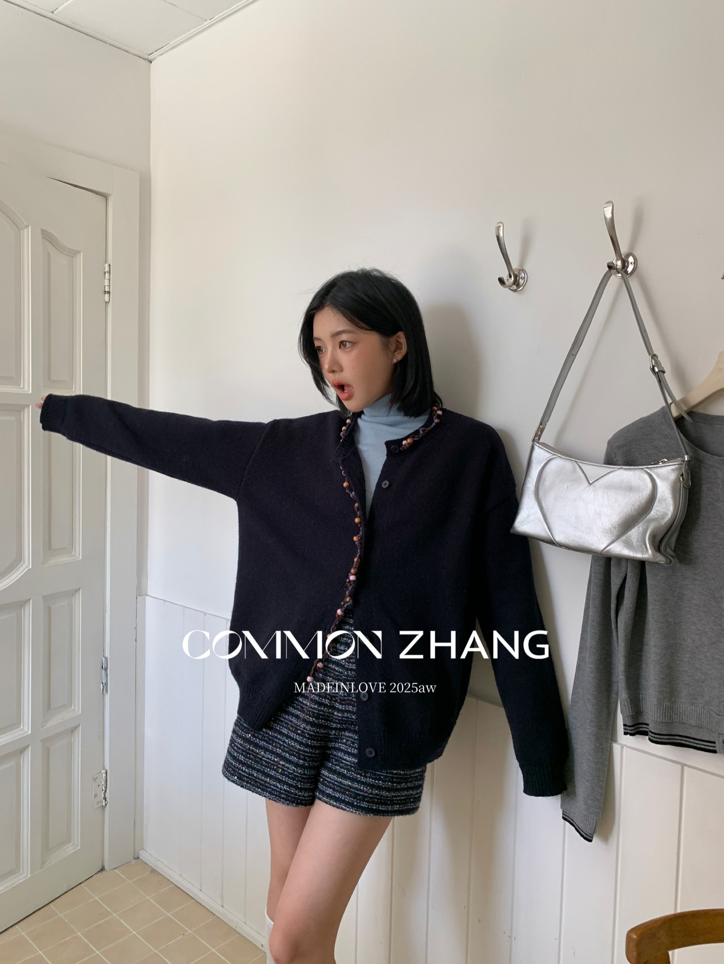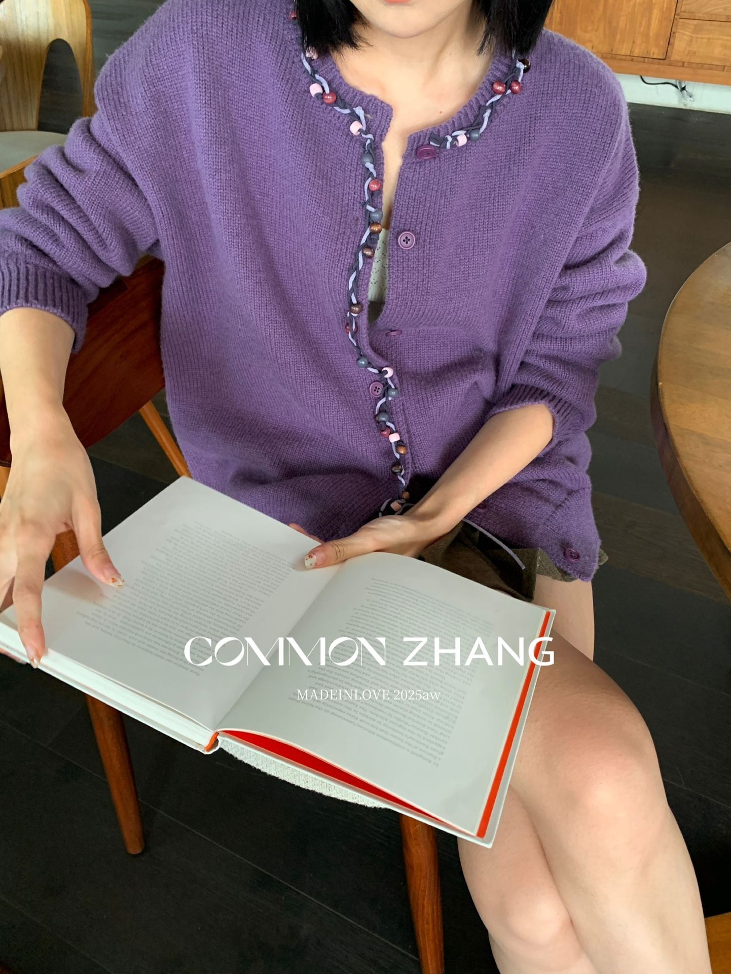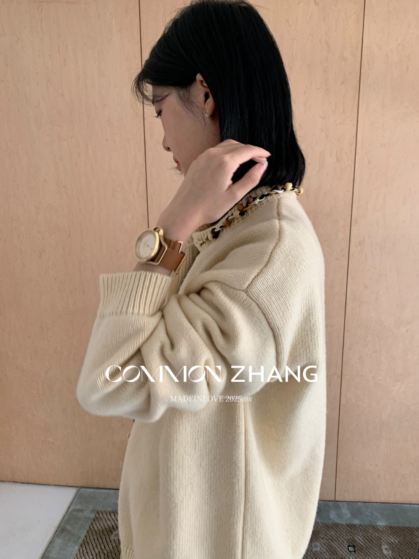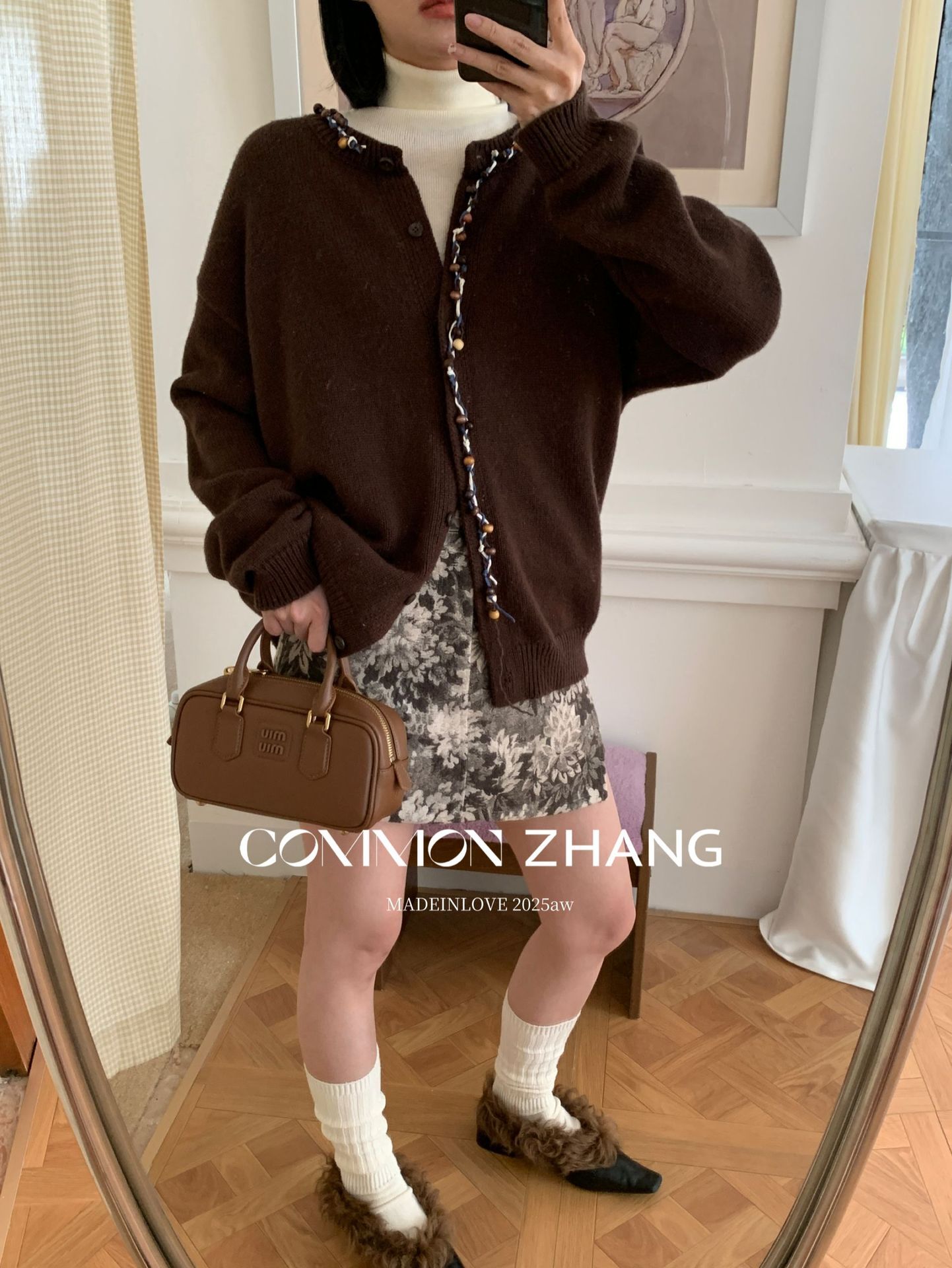 *o-ha-you*【FCZB305883】秋羊毛針織開襟衫女重工撞色釘珠寬鬆休閒毛衣外套-4色